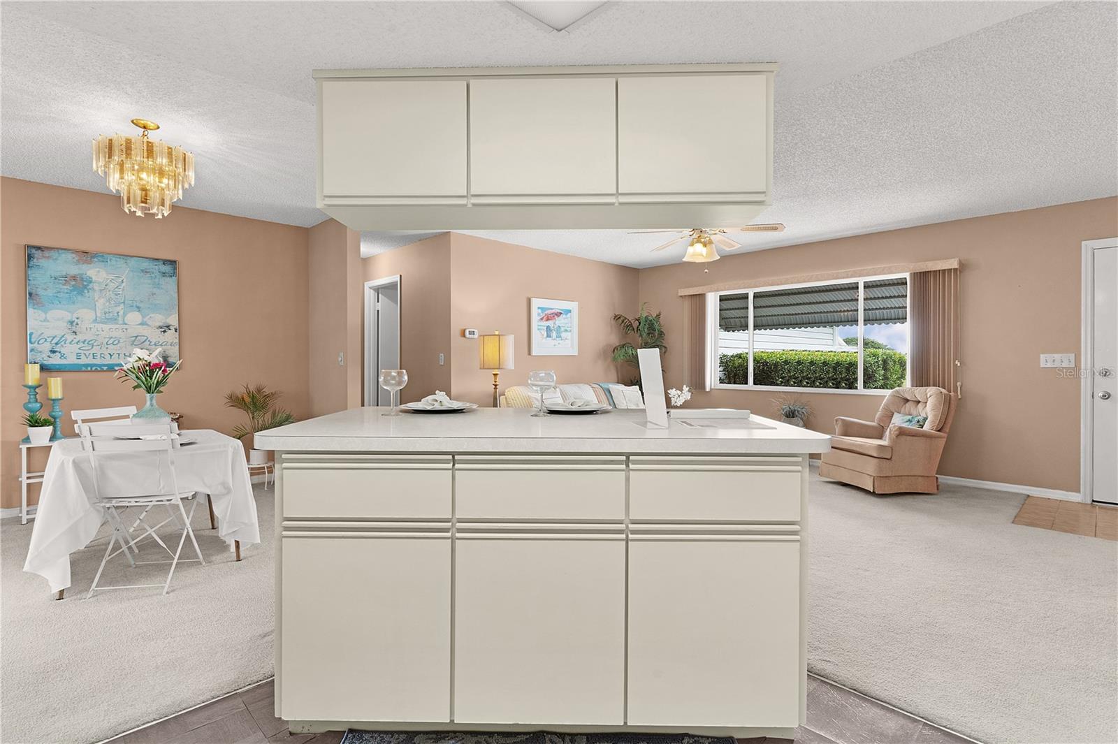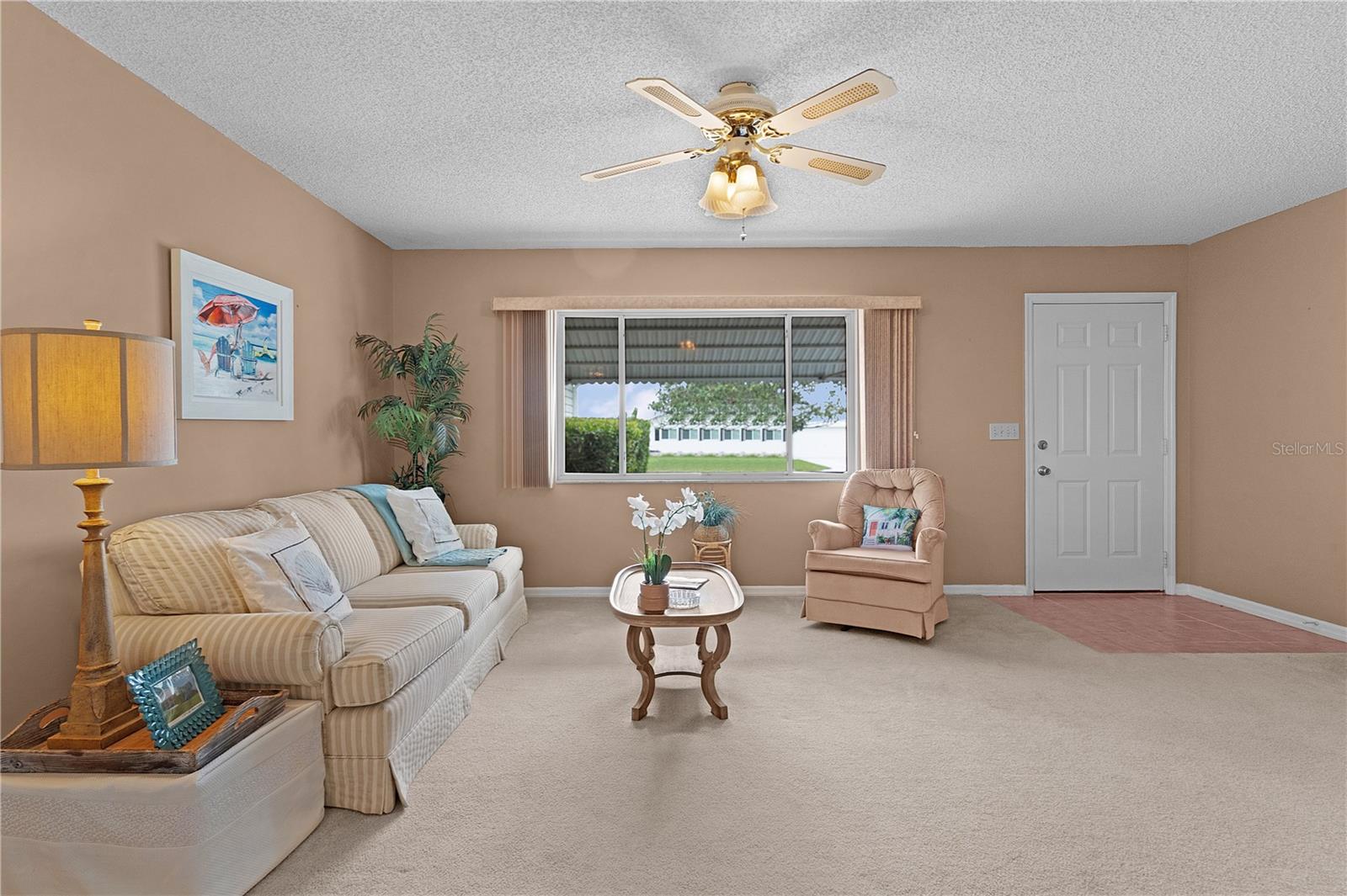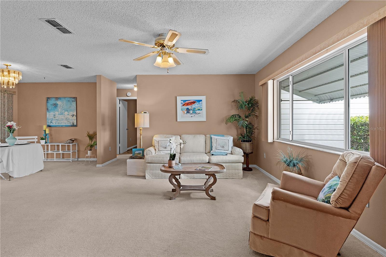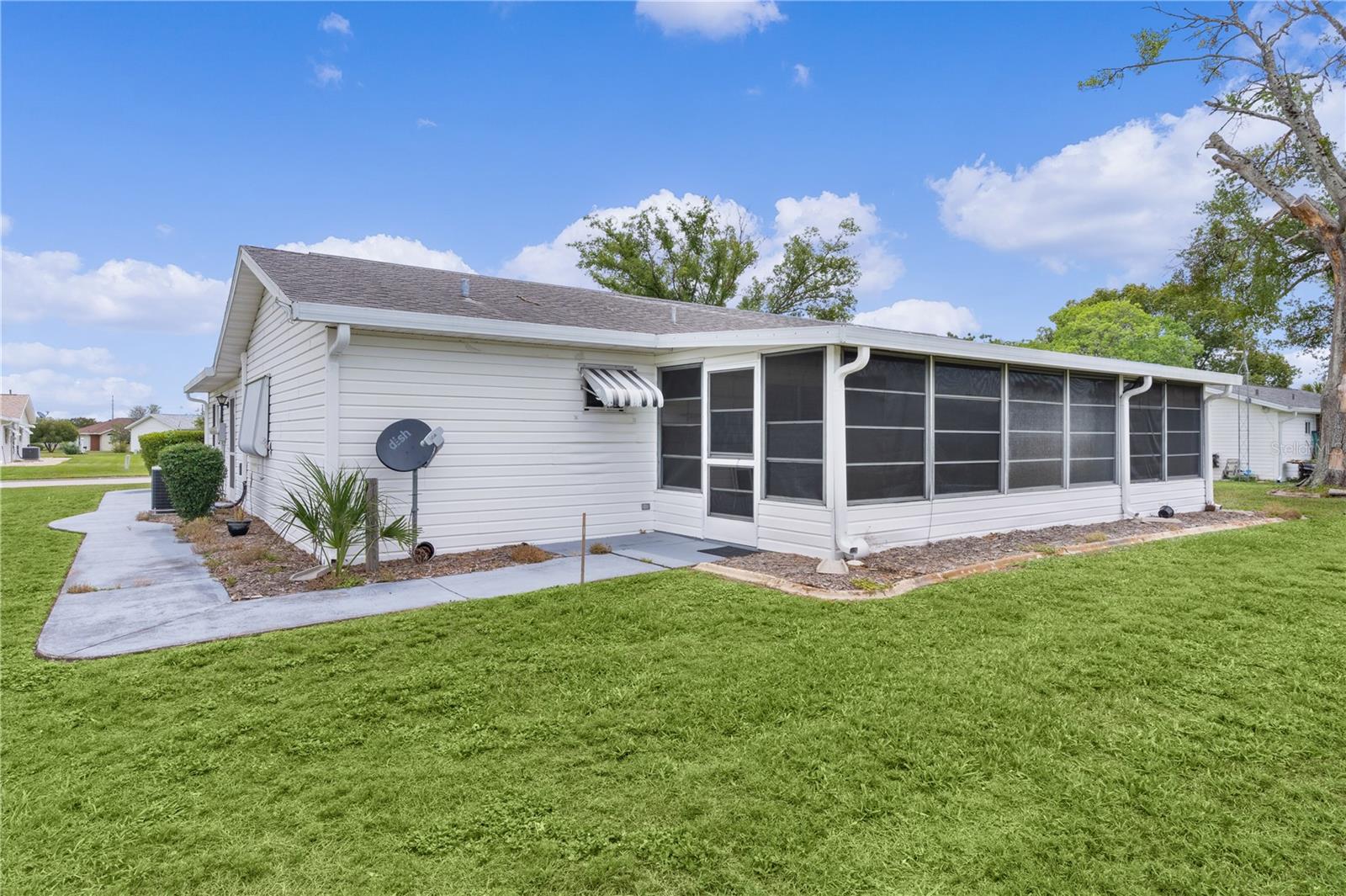 WOW!..MOTIVATED SELLER offering unbelievable incentives! $5,000 FLOORING CREDIT! NEW ROOF before closing! BEST PRICED HOME in Spruce Creek South. Welcome Home to the retirement lifestyle you've dreamed of in Central Florida! Located in charming SPRUCE CREEK SOUTH, a vibrant 55+ retirement community with spacious lots and mature trees, this ever popular Chestnut Model home is known for its open concept floor plan, 2 bedroom / 2 bathroom layout. The bright kitchen has an island overlooking your living room and dining room perfect for hosting your neighbors' book club or pot luck dinner. The primary bedroom features an elegant en suite with BRAND NEW TILED Walk-In, handicap-accessible shower and large walk-in closet. The guest bedroom (with walk-in closet) and guest bathroom are also ample in space providing your guests with privacy and room to relax. The home has a FRESHLY PAINTED INTERIOR including the extended/enclosed LANAI (which has room for outdoor dining and additional entertaining space), driveway and walkway adding to the over all curb appeal of the home. The garage door has sliding screens for added enjoyment of the outdoors, mature landscaping and a NEW HOT WATER HEATER. Nestled conveniently next to THE VILLAGES, you're only a stones throw away from fabulous dining, shopping and entertainment but let's not forget the amazing amenities you'll enjoy right here in Spruce Creek South. With NO BONDS, a low monthly HOA fee and easy access to amenities, The Links Golf Course (golf for an additional charge), you can start living your dream retirement lifestyle today!! Give me a call TODAY!