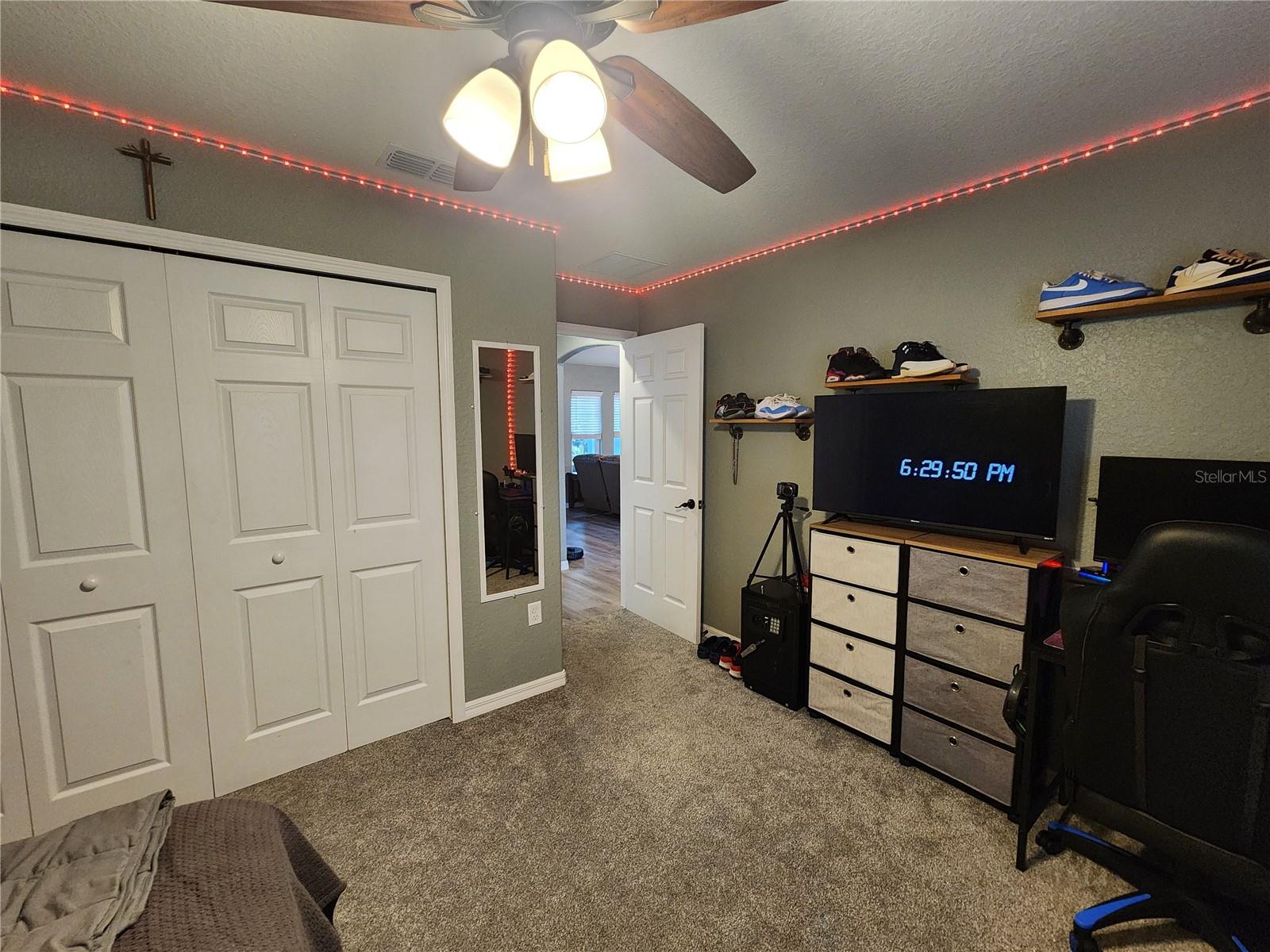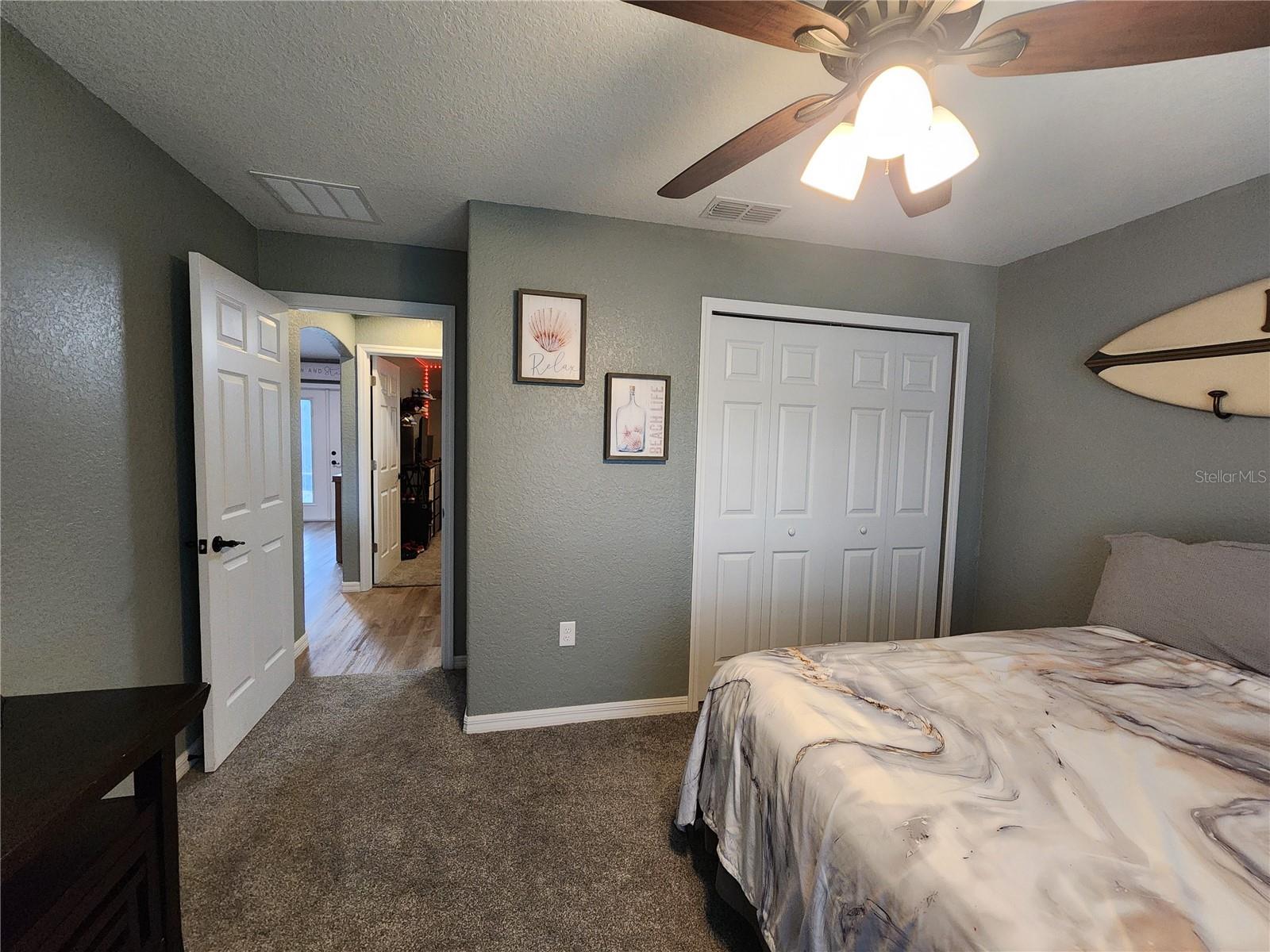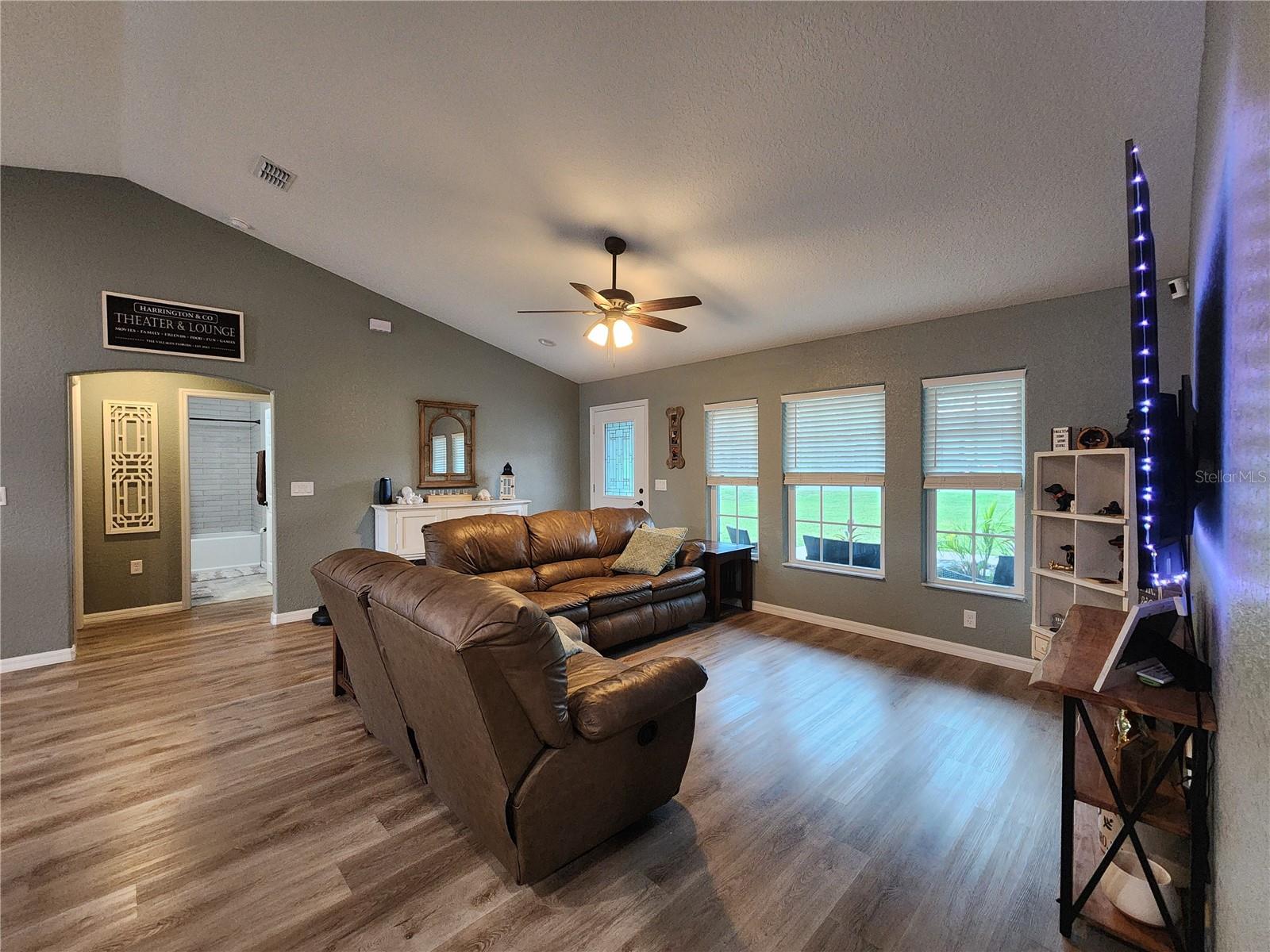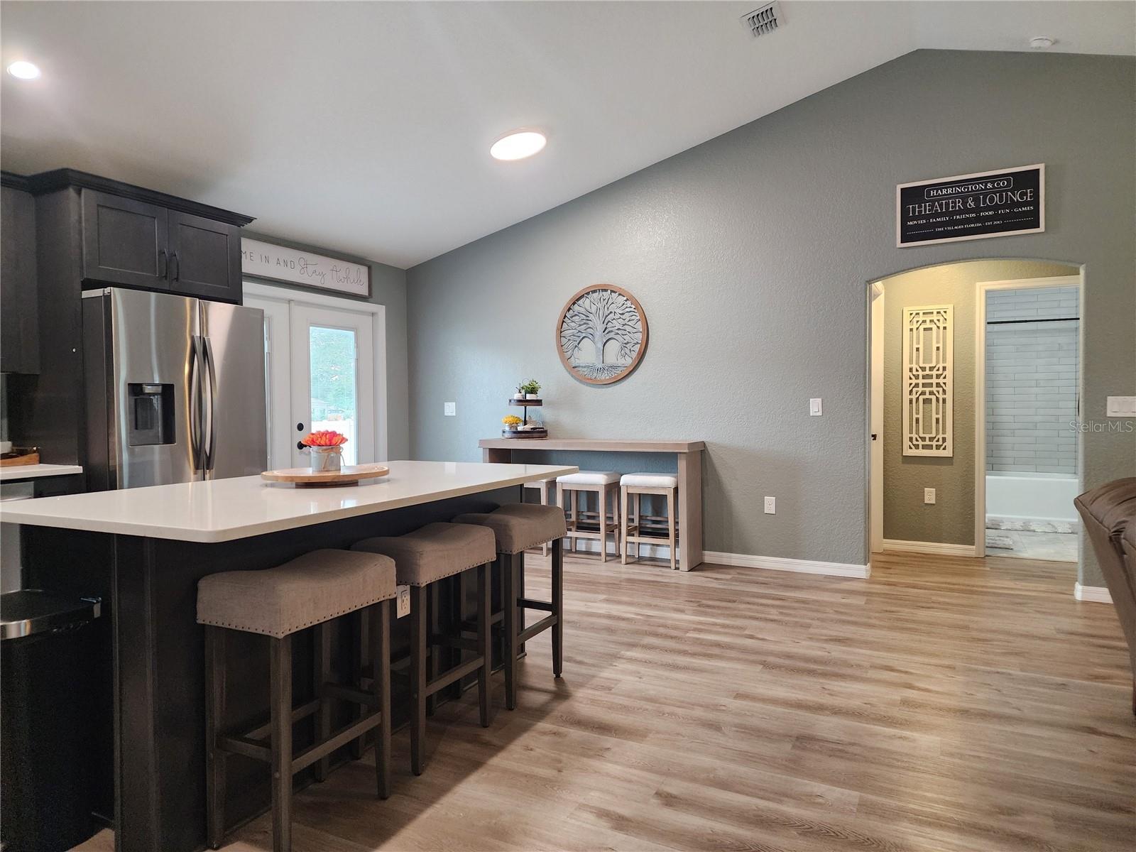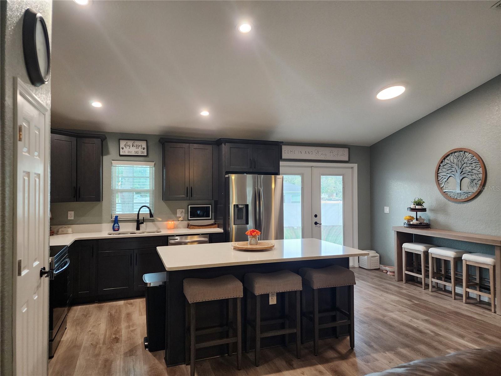 Step into this stunning 3-bedroom, 2-bathroom home in the sought-after Orange Blossom Hills community, just minutes from The Villages, Ocala, and Belleview. As you enter, you're welcomed by a spacious great room with soaring vaulted ceilings, flowing seamlessly into the dining area and kitchen, all beautifully accented by luxury vinyl plank flooring throughout for a cohesive and low-maintenance finish. The kitchen is truly the heart of the home, featuring sleek stainless steel appliances, wood cabinetry with soft-close hardware, crown molding, lazy- susan, and a pantry closet for extra storage. The beautiful quartz countertops and open kitchen with island provide ample space for meal prep, entertaining, or simply enjoying a morning coffee. With this split bedroom layout, you’ll find the inviting bedrooms, each offering plush carpeting, ceiling fans, built-in closets and natural lighting. The primary suite is a true retreat with its own; walk-in closet and bathroom with a fabulous pebble tiled floor in the shower, and linen closet. The guest bathroom is equally impressive, boasting a relaxing tub/shower combo. Step outside to discover a beautiful, large vinyl-fenced yard, offering privacy and a safe space for the family to enjoy. The outdoor space is highlighted by a front covered porch, and rear porch. Florida days or hosting summer gatherings, perfect for unwinding after a long day. Convenience is at your fingertips with an inside laundry room, while the attached 2-car garage provides plenty of room for parking and storage, epoxy finished floor, pull-down attic stairs and a garage service door. With a total of 1,955 sq. ft. under roof and 1,440 sq. ft. under air, this home offers both space and style in a prime location. Make this beautiful home your own!