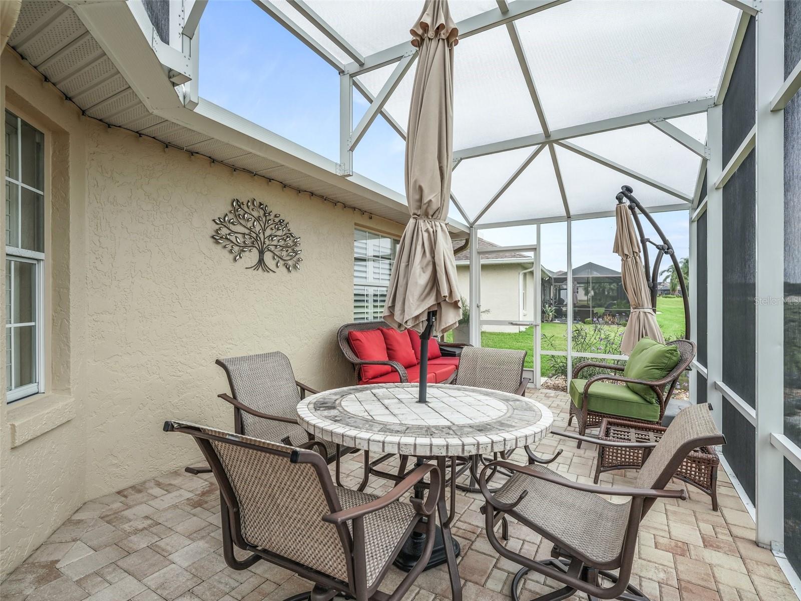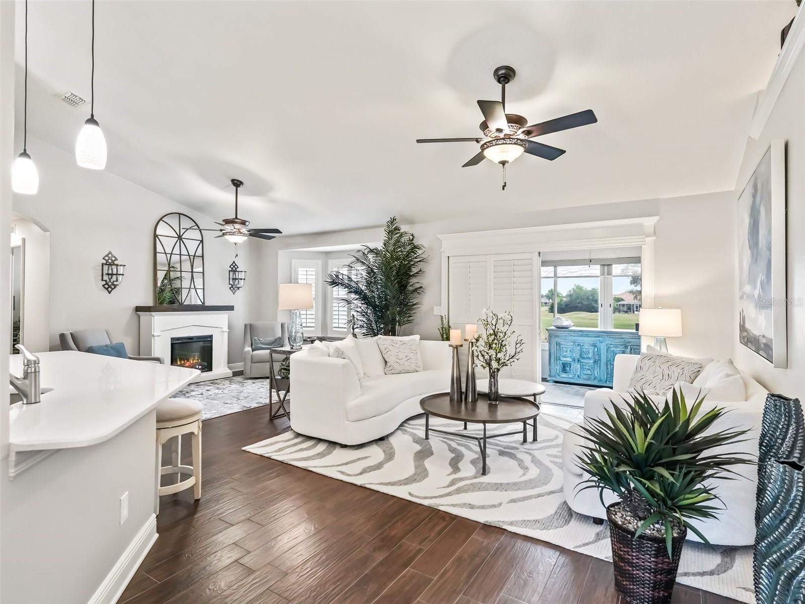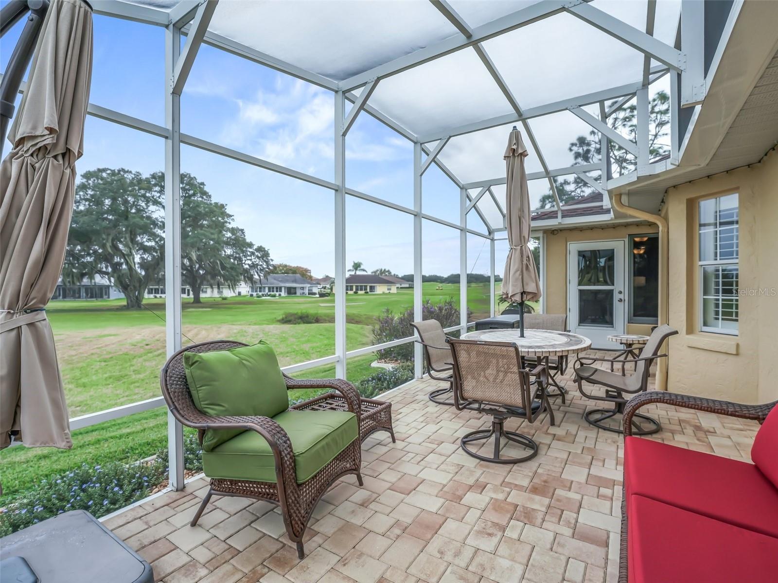 WELCOME TO A MAGNIFICENT, BEAUTIFUL THREE BEDROOM TWO BATH GOLF COURSE HOME ON THE FIRST HOLE OF THE STONECREST CHAMPIONSHIP GOLF COURSE. EVERYTHING ABOUT THS HOME EXUDES LUXURY BEGINNING WHEN YOU PULL UP TO THE FRONT OF THE BLOCK AND STUCCO HOME. THE GROUNDS HAVE BEEN METICULOUSLY MANICURED FROM THE NEW SOD TO THE TASTEFUL PLANTINGS WITH STONE BEDS AND CURB- IT SURROUNDING THE GARDENS. THE FRONT WALK LEADS UP THE PORCELAIN TILED ENTRYWAY WITH GLASS DOOR AND SIDELIGHT. ENTERING THROUGH THE FRONT FOYER, YOUR EYE IS DRAWN TO THE REAR GOLF VIEW. THE MAIN LIVING AREA IS OPEN AND AIRY WITH VOLUME CEILINGS AND WARM PAINT ON THE WALLS. THE LARGE EAT IN KITCHEN IS COMPLIMENTED BY RICH WOODEN CABINETRY, QUARTZ COUNTERS WITH SEATING AT THE ISLAND, A SUBWAY TILED BACKSPLASH AND STAINLESS-STEEL APPLIANCES. A LARGE PANTRY CLOSET COMPLETES THE KITCHEN. OFF THE KITCHEN IS A GENEROUSLY SIZED INDOOR LAUNDRY ROOM WITH CABINETRY COMPLIMENTING THE KITCHEN. PLANTATION SHUTTERS ADORN THE WINDOWS ALONG WITH 5 1/4 BASEBOARDS AND PORCELAIN TILE FLOWING THROUGH THE HOME AND OUT INTO THE GARAGE. A LARGE BANK OF GARAGE CABINETS PROVIDES THE ULTIMATE STORAGE. A NEW INSULATED GARAGE DOOR AND 1.25 HP OPENER WERE RECENTLY ADDED. THE LIVING ROOM HAS AN ABUNDANCE OF NATURAL LIGHT FLOWING IN FROM THE SPACIOUS ENCLOSED LANAI. A SLIDER LEADS FROM THE LIVING ROOM TO THE LANAI. THE DINING ROOM IS BEING USED AS A COZY SITTING AREA WITH A LOVELY FIREPLACE AND IS A PERFECT PLACE TO READ YOUR FAVORITE BOOK. THE OFFSET SPLIT BEDROOM FLOOR PLAN IS ONE OF THE MOST POPULAR. THE MASTER SUITE ALSO HAS A LARGE SLIDER LEADING TO THE LANAI. THE ENSUITE BATH WITH HIS AND HER CLOSETS, A DOUBLE VANITY, A LARGE SOAKING TUB, AND BEAUTIFULLY TILED SHOWER WITH GLASS DOOR. A PRIVATE WATER CLOSET COMPLETE THE PRIMARY BEDROOM. ON THE OPPOSITE SIDE OF THE HOME ARE TWO BEDROOMS AND A LARGE GUEST BATH. ONE OF THE BEDROOMS IS USED AS A HOME OFFICE WITH A QUEEN MURPHY BED AND COMPLIMENTING OFFICE SUITE. THE GUEST BATH FEATURES A LARGE WALK IN SHOWER WITH SLIDING GLASS DOOR, VANITY WITH QUARTZ COUNTER AND NEWER TOILET. A SMALL GLASS WINDOW ALLOWS THE FLORIDA SUNSHINE TO FLOW THROUGH INTO THE BATH. THE REAR ENCLOSED LANAI FLOWS ACROSS THE BACK OF THE HOME AND FEATURES LOTS OF NATURAL LIGHT. THE VIEW OF THE REAR GOLF COURSE AND WATER VIEW CAN BE ENJOYED IN THE LANAI OR JUST OUTSIDE IN THE ATTACHED BIRDCAGE. THE HOME HAS BEEN LOVINGLY CARED FOR AND PROVIDES YOU WITH LUXURY AND COMFORT AT EVERY TURN. THIS IS TRULY A HOME YOU WILL WANT TO ADD TO YOUR LIST OF MUST SEES.