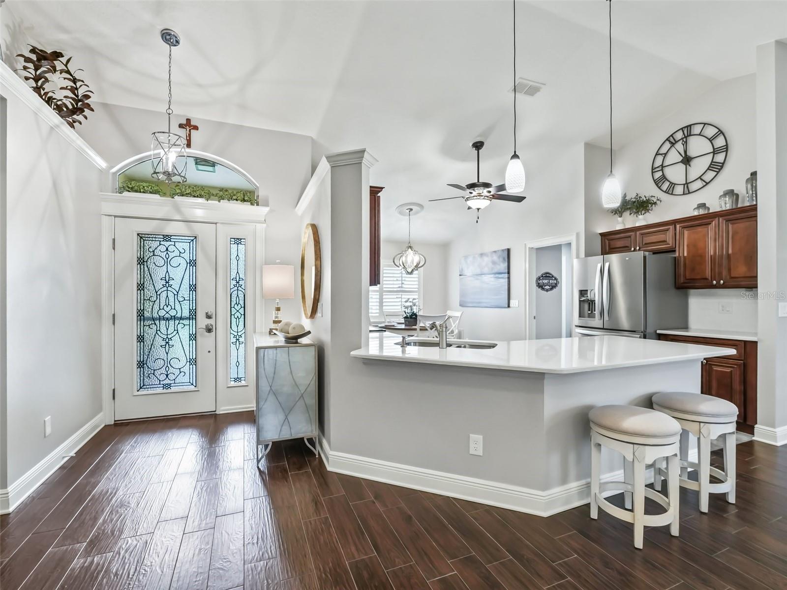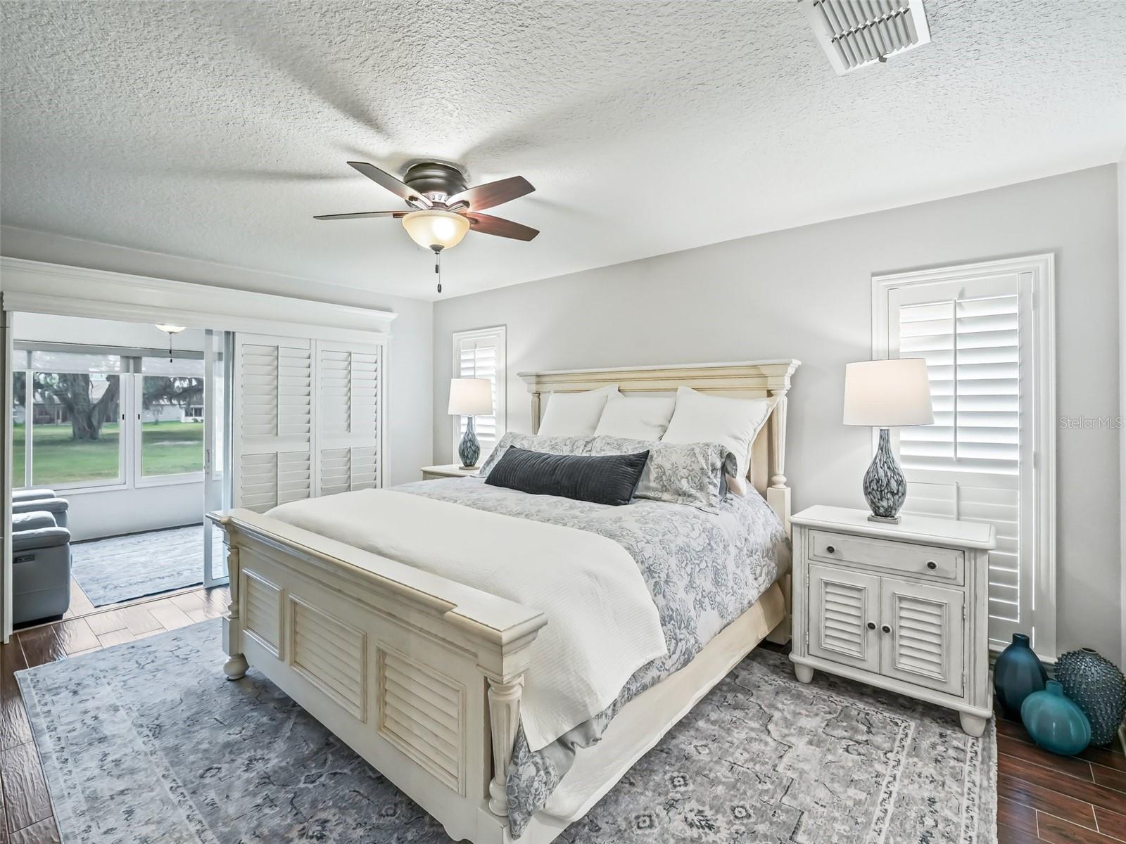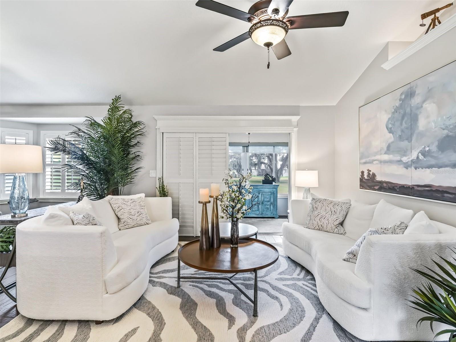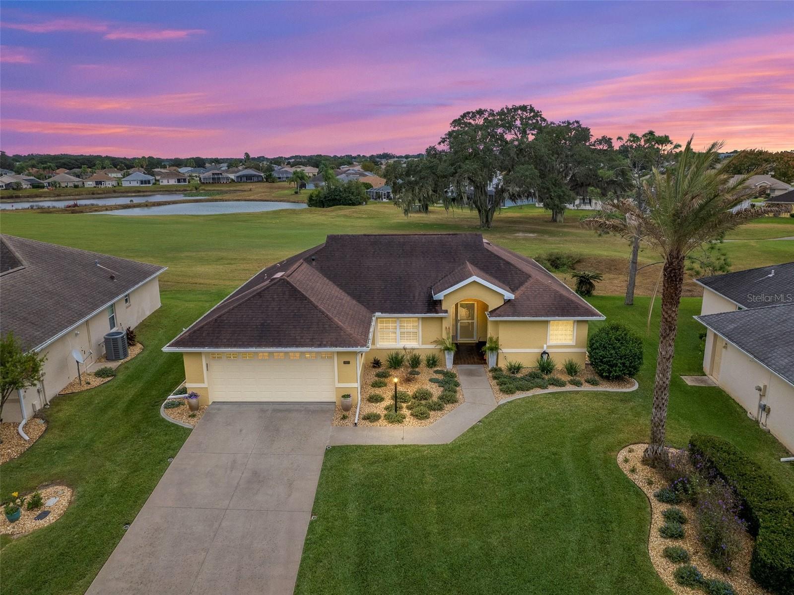 WELCOME TO A MAGNIFICENT, BEAUTIFUL THREE BEDROOM TWO BATH GOLF COURSE HOME ON THE FIRST HOLE OF THE STONECREST CHAMPIONSHIP GOLF COURSE. EVERYTHING ABOUT THS HOME EXUDES LUXURY BEGINNING WHEN YOU PULL UP TO THE FRONT OF THE BLOCK AND STUCCO HOME. THE GROUNDS HAVE BEEN METICULOUSLY MANICURED FROM THE NEW SOD TO THE TASTEFUL PLANTINGS WITH STONE BEDS AND CURB- IT SURROUNDING THE GARDENS. THE FRONT WALK LEADS UP THE PORCELAIN TILED ENTRYWAY WITH GLASS DOOR AND SIDELIGHT. ENTERING THROUGH THE FRONT FOYER, YOUR EYE IS DRAWN TO THE REAR GOLF VIEW. THE MAIN LIVING AREA IS OPEN AND AIRY WITH VOLUME CEILINGS AND WARM PAINT ON THE WALLS. THE LARGE EAT IN KITCHEN IS COMPLIMENTED BY RICH WOODEN CABINETRY, QUARTZ COUNTERS WITH SEATING AT THE ISLAND, A SUBWAY TILED BACKSPLASH AND STAINLESS-STEEL APPLIANCES. A LARGE PANTRY CLOSET COMPLETES THE KITCHEN. OFF THE KITCHEN IS A GENEROUSLY SIZED INDOOR LAUNDRY ROOM WITH CABINETRY COMPLIMENTING THE KITCHEN. PLANTATION SHUTTERS ADORN THE WINDOWS ALONG WITH 5 1/4 BASEBOARDS AND PORCELAIN TILE FLOWING THROUGH THE HOME AND OUT INTO THE GARAGE. A LARGE BANK OF GARAGE CABINETS PROVIDES THE ULTIMATE STORAGE. A NEW INSULATED GARAGE DOOR AND 1.25 HP OPENER WERE RECENTLY ADDED. THE LIVING ROOM HAS AN ABUNDANCE OF NATURAL LIGHT FLOWING IN FROM THE SPACIOUS ENCLOSED LANAI. A SLIDER LEADS FROM THE LIVING ROOM TO THE LANAI. THE DINING ROOM IS BEING USED AS A COZY SITTING AREA WITH A LOVELY FIREPLACE AND IS A PERFECT PLACE TO READ YOUR FAVORITE BOOK. THE OFFSET SPLIT BEDROOM FLOOR PLAN IS ONE OF THE MOST POPULAR. THE MASTER SUITE ALSO HAS A LARGE SLIDER LEADING TO THE LANAI. THE ENSUITE BATH WITH HIS AND HER CLOSETS, A DOUBLE VANITY, A LARGE SOAKING TUB, AND BEAUTIFULLY TILED SHOWER WITH GLASS DOOR. A PRIVATE WATER CLOSET COMPLETE THE PRIMARY BEDROOM. ON THE OPPOSITE SIDE OF THE HOME ARE TWO BEDROOMS AND A LARGE GUEST BATH. ONE OF THE BEDROOMS IS USED AS A HOME OFFICE WITH A QUEEN MURPHY BED AND COMPLIMENTING OFFICE SUITE. THE GUEST BATH FEATURES A LARGE WALK IN SHOWER WITH SLIDING GLASS DOOR, VANITY WITH QUARTZ COUNTER AND NEWER TOILET. A SMALL GLASS WINDOW ALLOWS THE FLORIDA SUNSHINE TO FLOW THROUGH INTO THE BATH. THE REAR ENCLOSED LANAI FLOWS ACROSS THE BACK OF THE HOME AND FEATURES LOTS OF NATURAL LIGHT. THE VIEW OF THE REAR GOLF COURSE AND WATER VIEW CAN BE ENJOYED IN THE LANAI OR JUST OUTSIDE IN THE ATTACHED BIRDCAGE. THE HOME HAS BEEN LOVINGLY CARED FOR AND PROVIDES YOU WITH LUXURY AND COMFORT AT EVERY TURN. THIS IS TRULY A HOME YOU WILL WANT TO ADD TO YOUR LIST OF MUST SEES.