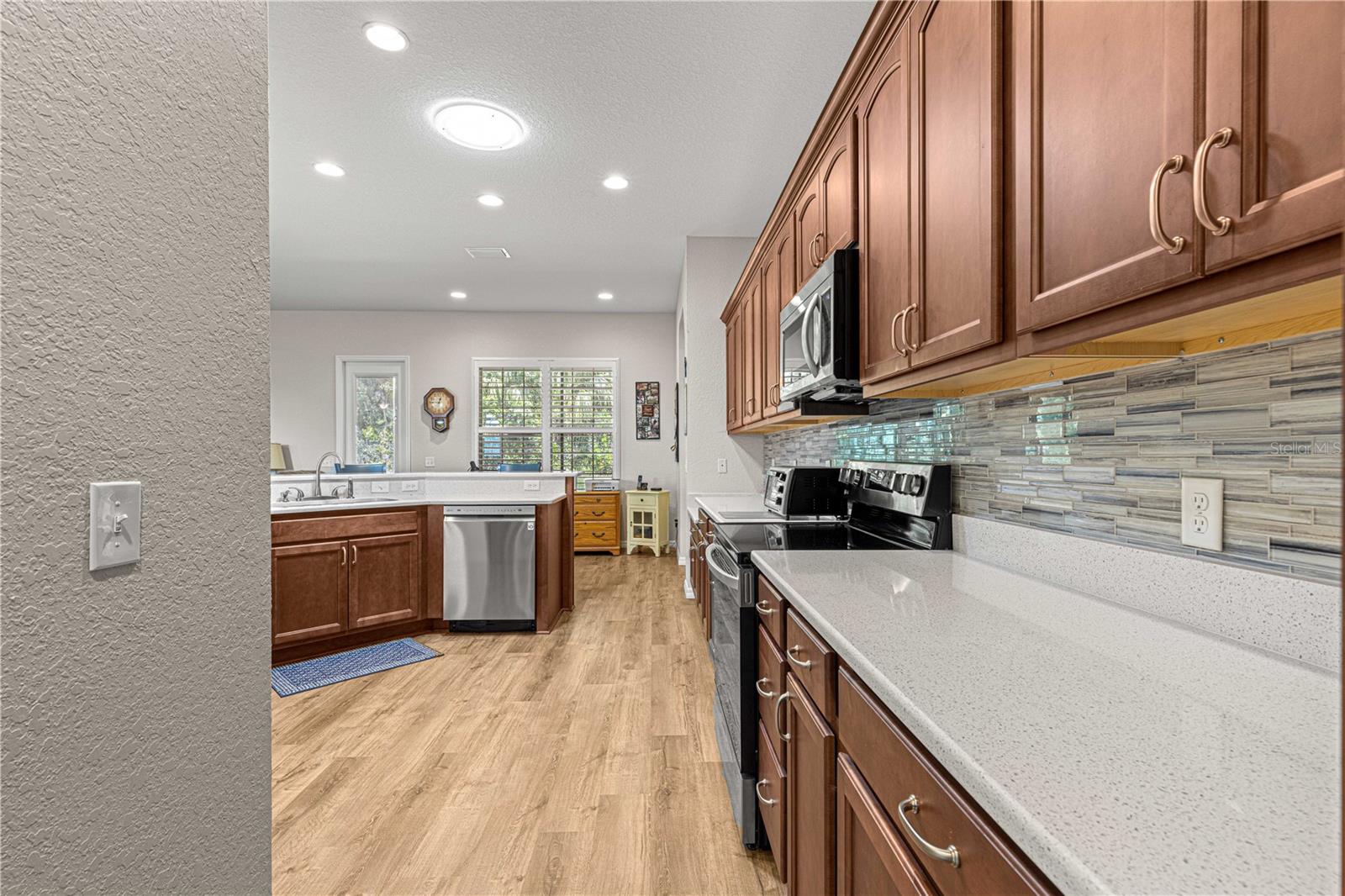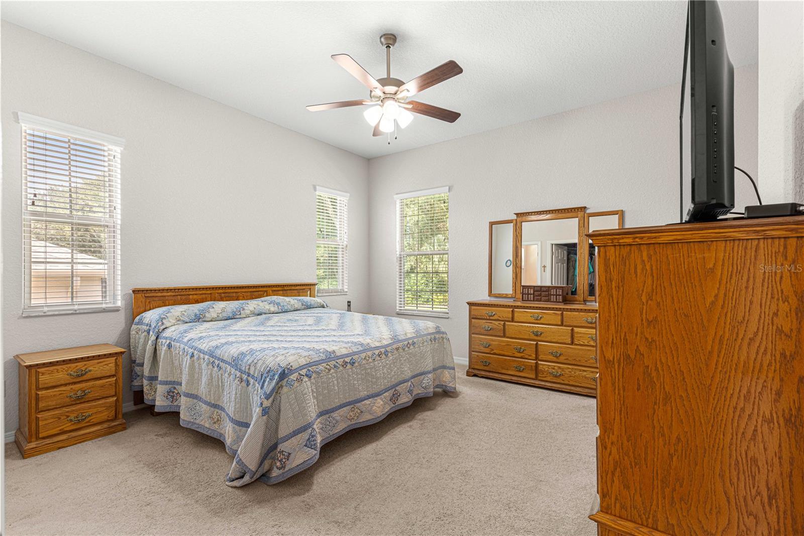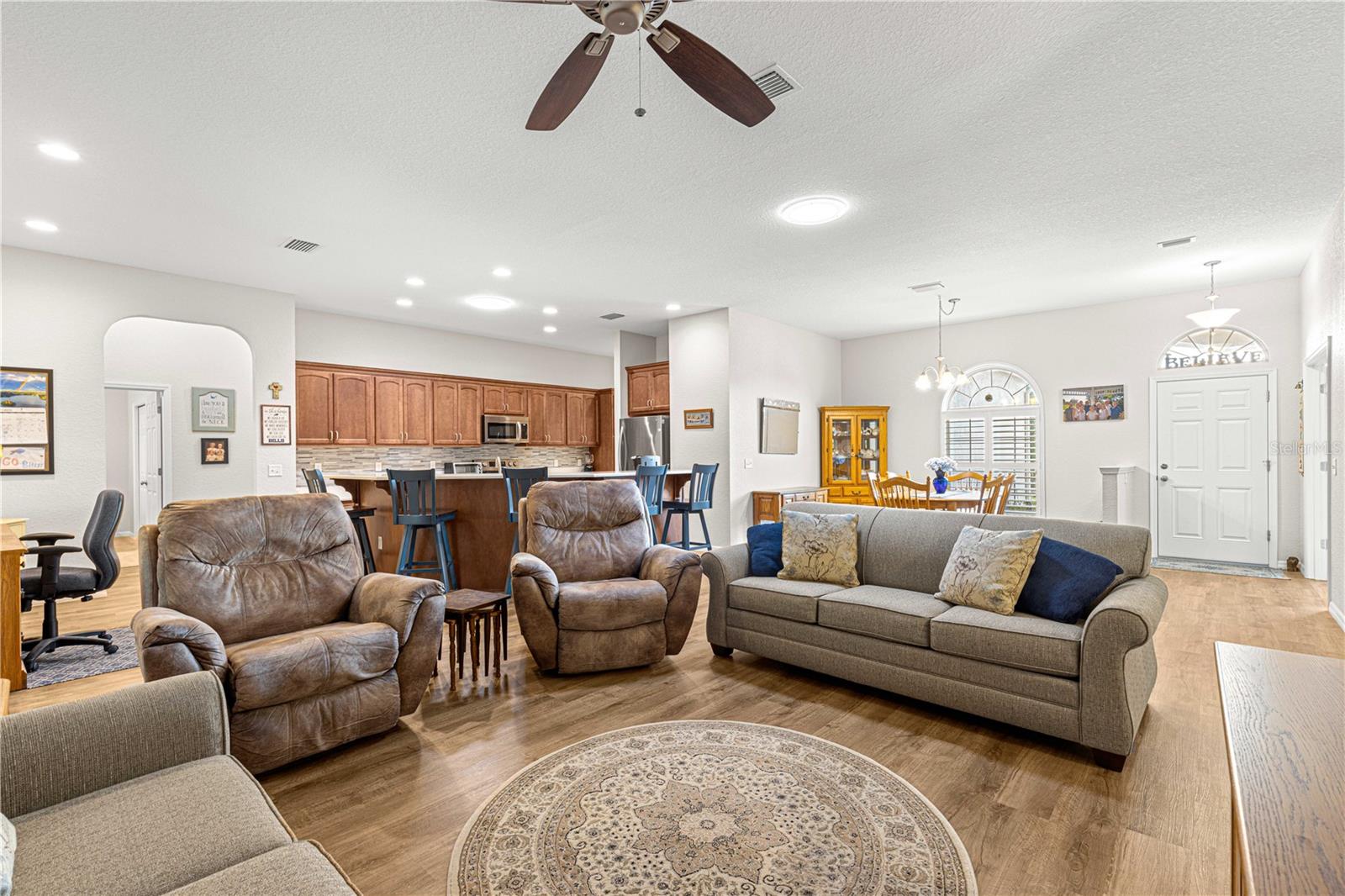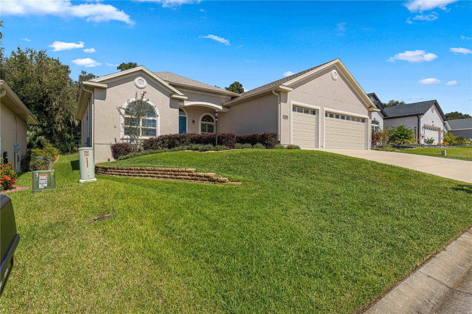 This beautifully designed 3 bedroom/ 2 bathroom home with a Den, built in 2021 is one of the largest homes in the Stonecrest 55+ gated community. The optional third bathroom was converted to provide an extra storage area, craft room or office. The split floor plan offers privacy for both owners and their guests. The large utility room includes a set tub. Enjoy the convenience of a spacious 3 car garage equipped with electric roll up screens and dual garage doors, providing easy access and versatility. With no neighbors behind you, you will appreciate the privacy of your screened in lanai. Stonecrest is a Private Golf Course Retirement Community with a restaurant and a wealth of amenities. You will have access to four pools (including one indoor), pickleball and tennis courts, softball fields, fishing pond and even an RV storage lot. Stonecrest has a workout center, library and community center for clubs, entertainment and activities for everyone to enjoy. The Stonecrest community has private roads and 24-hour security. Just minutes from the Villages, with more restaurants, shopping, movie theaters, doctors, a hospital as well as quick access to I-75 and the Florida Turnpike. Don’t miss your chance to own this beautiful property in a prime location. Schedule your showing today!