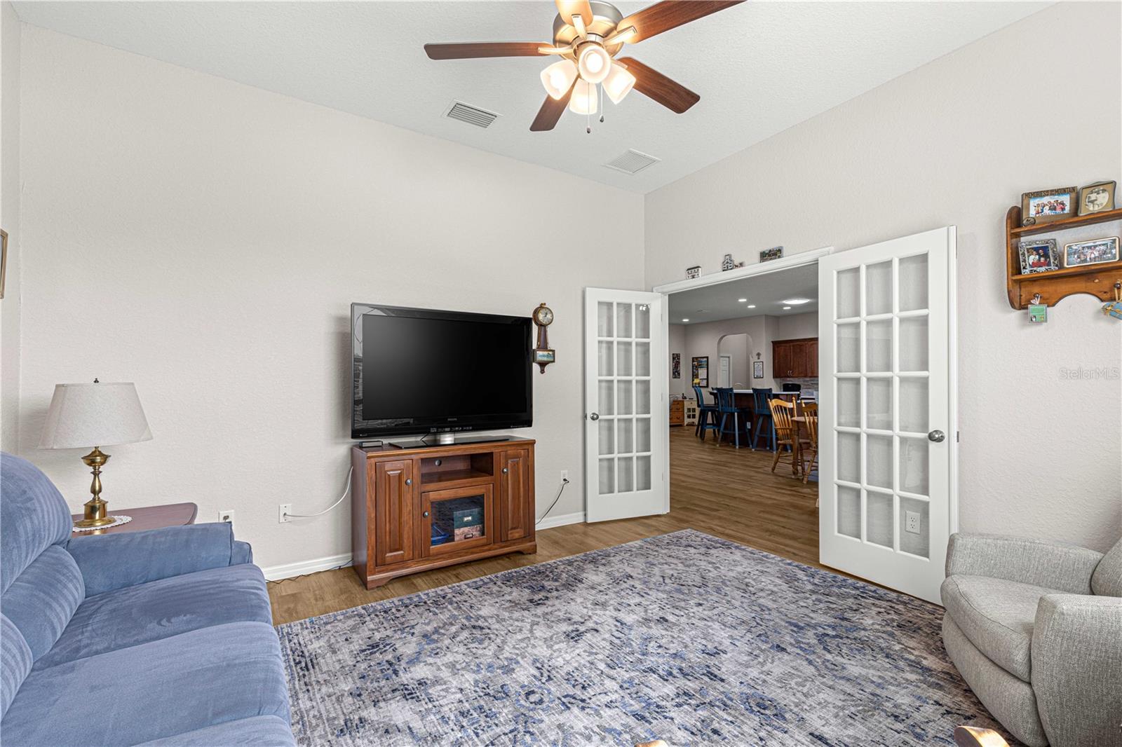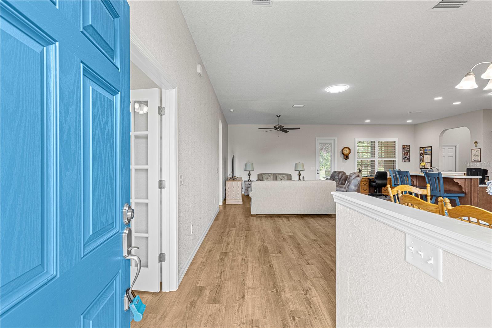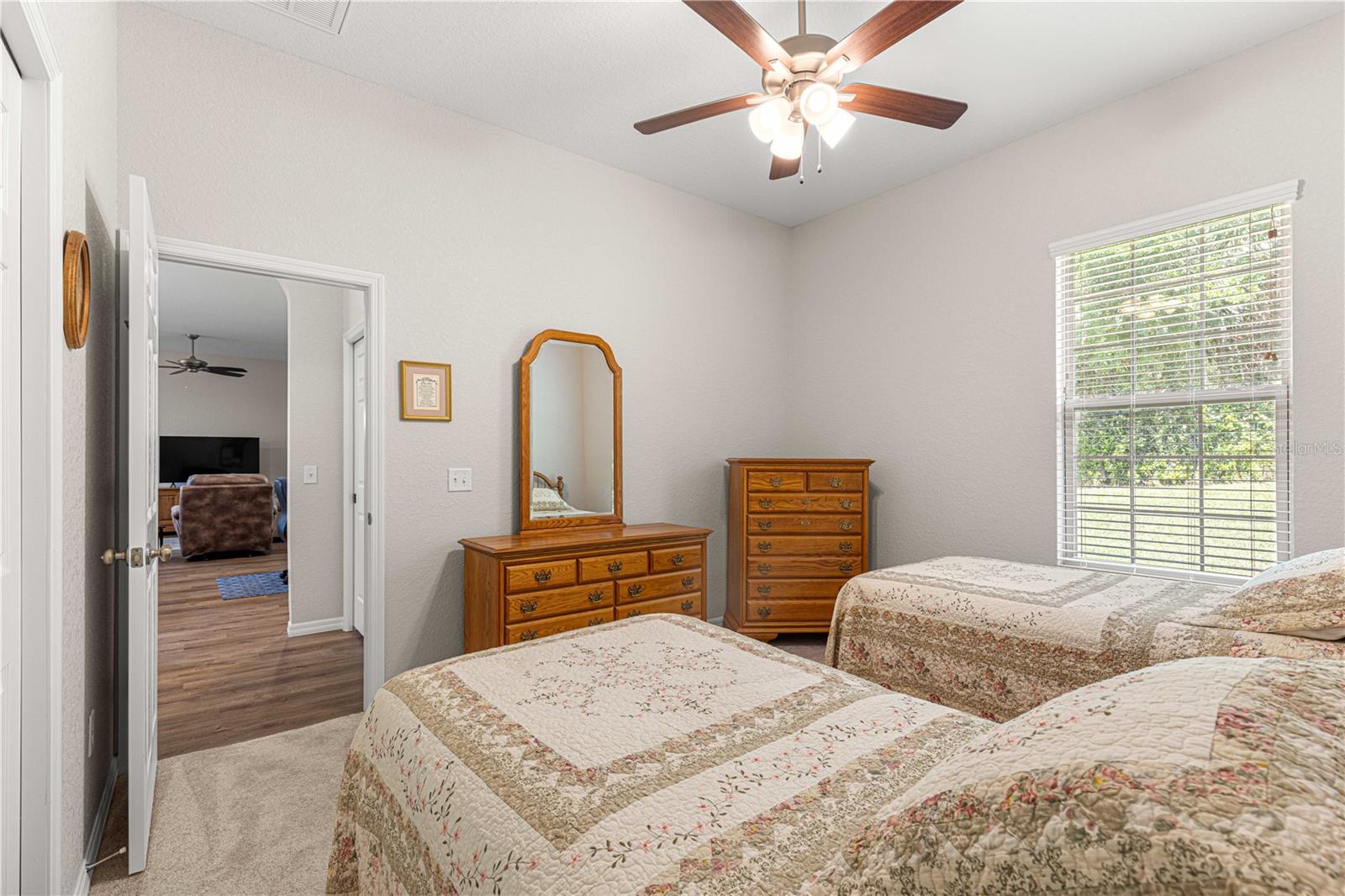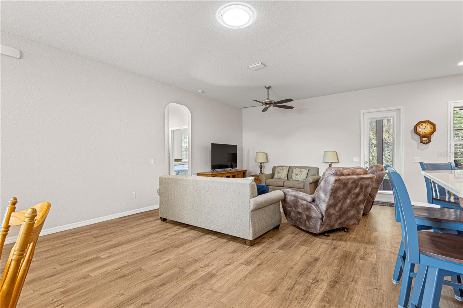 This beautifully designed 3 bedroom/ 2 bathroom home with a Den, built in 2021 is one of the largest homes in the Stonecrest 55+ gated community. The optional third bathroom was converted to provide an extra storage area, craft room or office. The split floor plan offers privacy for both owners and their guests. The large utility room includes a set tub. Enjoy the convenience of a spacious 3 car garage equipped with electric roll up screens and dual garage doors, providing easy access and versatility. With no neighbors behind you, you will appreciate the privacy of your screened in lanai. Stonecrest is a Private Golf Course Retirement Community with a restaurant and a wealth of amenities. You will have access to four pools (including one indoor), pickleball and tennis courts, softball fields, fishing pond and even an RV storage lot. Stonecrest has a workout center, library and community center for clubs, entertainment and activities for everyone to enjoy. The Stonecrest community has private roads and 24-hour security. Just minutes from the Villages, with more restaurants, shopping, movie theaters, doctors, a hospital as well as quick access to I-75 and the Florida Turnpike. Don’t miss your chance to own this beautiful property in a prime location. Schedule your showing today!