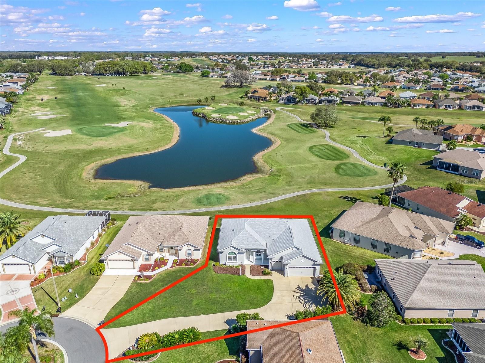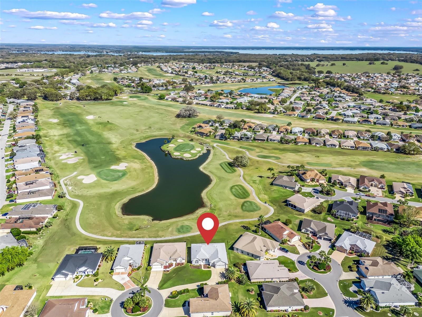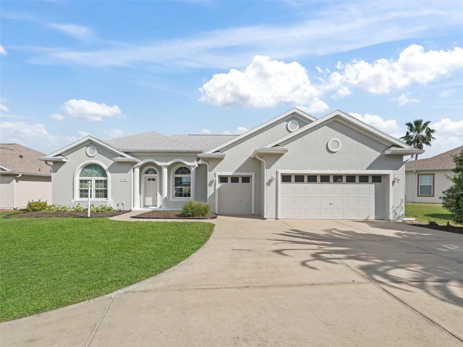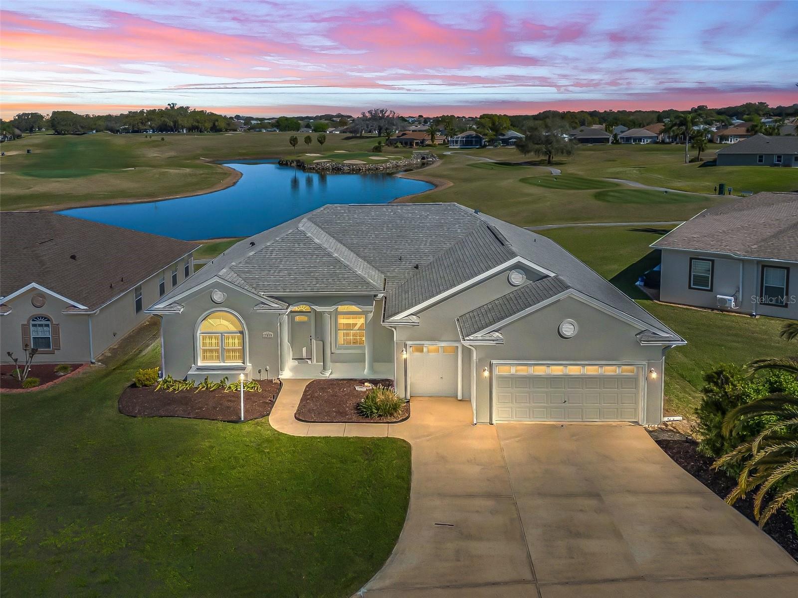 STONECREST is a 55+ Golf Course Community With All The Amenities, and just a Bridge Away By Golf Cart To The Villages! Stunning GOLF FRONT 3/3 Concrete Block and Stucco Cedar with a Water View, and a 2 + Golf Cart Garage on a Quiet Cul de Sac Lot with Room for a Pool! ROOF 2019! HVAC 2019! This well appointed home boasts a Tremendous Golf Course View, Water View, Upgraded light fixtures, Newer interior paint, 10' ceilings, and French door entry to the Study/Den (Living Room in original floor plan)! This Cedar model offers an Open Concept Floor plan with Soaring 10' ceilings throughout, and a Large Great Room off the Eat in Kitchen with stackable sliders to the Large Screened Lanai, creating a Spectacular Space for Social Gatherings, and relaxing with Family! This Spacious Kitchen features Quartz countertops that Sparkle like Diamonds, a nice size Pantry Closet, Wood cabinets, an Eat in Area, a Generous Breakfast bar, and Stunning Golf Course, and Water Views. The Split Floor plan provides Privacy for both the Owners and their Guest, with the Primary Suite commanding one side of the home, while the guest bedrooms and bathrooms are located on the opposite side of the home. The Luxurious Primary suite offers a Private access to the lanai, Walk in Closet, and an En Suite Bathroom. The En Suite Bathroom features a Two Sink Vanity, large Soaking Tub, Linen Closet, and a Walk in Shower. Guest bedroom 2 offers a Double closet, and an En suite bathroom with a Tiled Walk in shower, providing your guests with Convenience, and Privacy! Guest bedroom 3 is conveniently situated next to the additional guest bathroom with a Tub and Shower combination, a Private door to the Lanai, and has a double closet, offering plenty of space for the comfort of your guests! Enjoy the additional entertaining space provided by the Screened Lanai with tile flooring, and appreciate the beautiful Florida Sunsets from the comfort of the large screened lanai with unencumbered views, enhancing the outdoor living experience! This Stunning Cedar model offers a well designed floor plan, Room for a Pool, a Fabulous Golf Course, and Water View! Stonecrest is a 55+ gated golf course community with all the amenities, pools, pickleball courts, softball, 18 hole championship golf course, Broad Stripes Golf & Social Club and over 80 different clubs to join! Stonecrest is just a bridge away by golf cart to the Villages. It is a community with Private Roads and 24 Hour Security! As a private gated golf course community, you can expect a high level of privacy and security. Overall, this home offers a combination of Tremendous Outdoor Space, luxurious features, a desirable location, and a secure community setting. A WONDERFUL LIFESTYLE AWAITS YOU IN STONECREST!