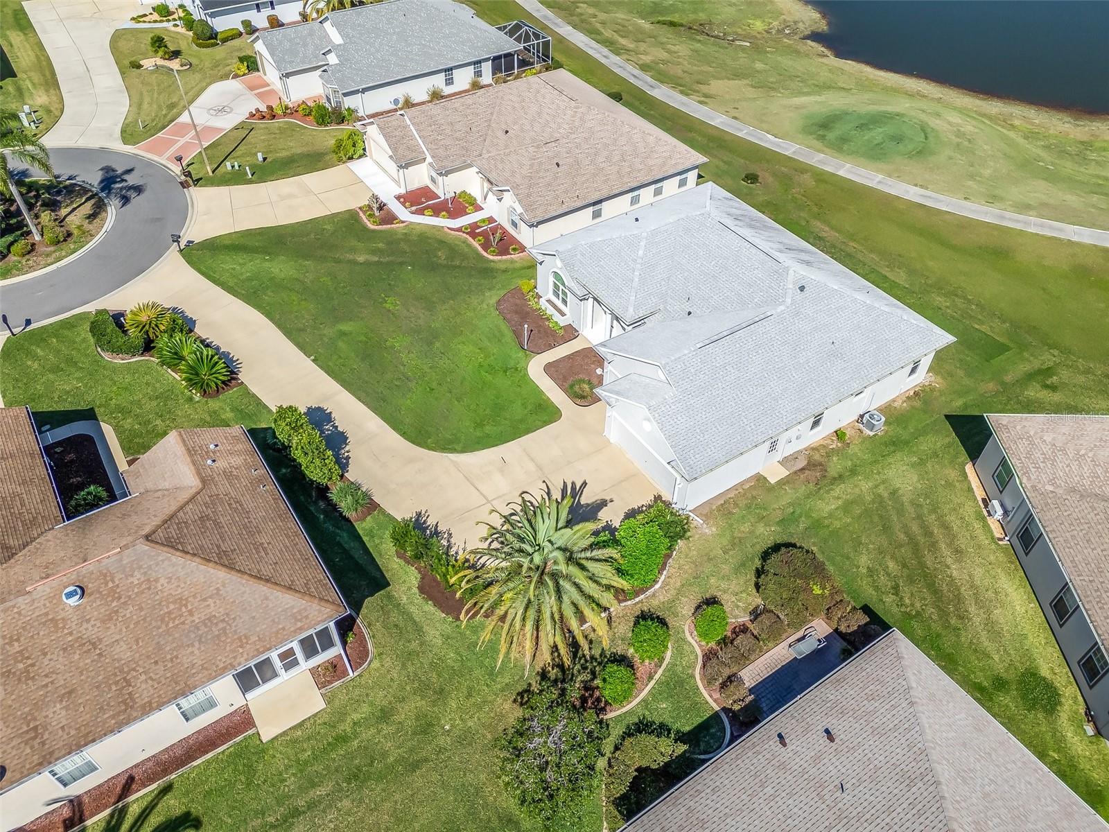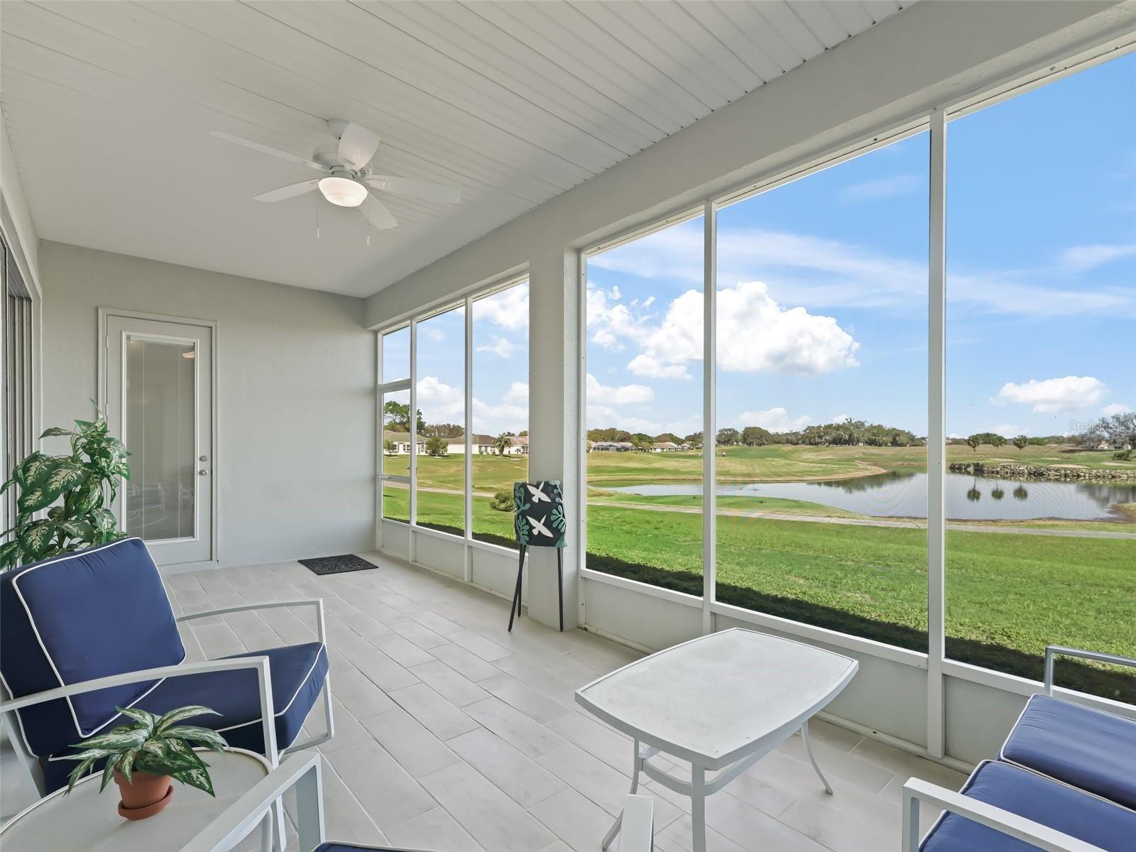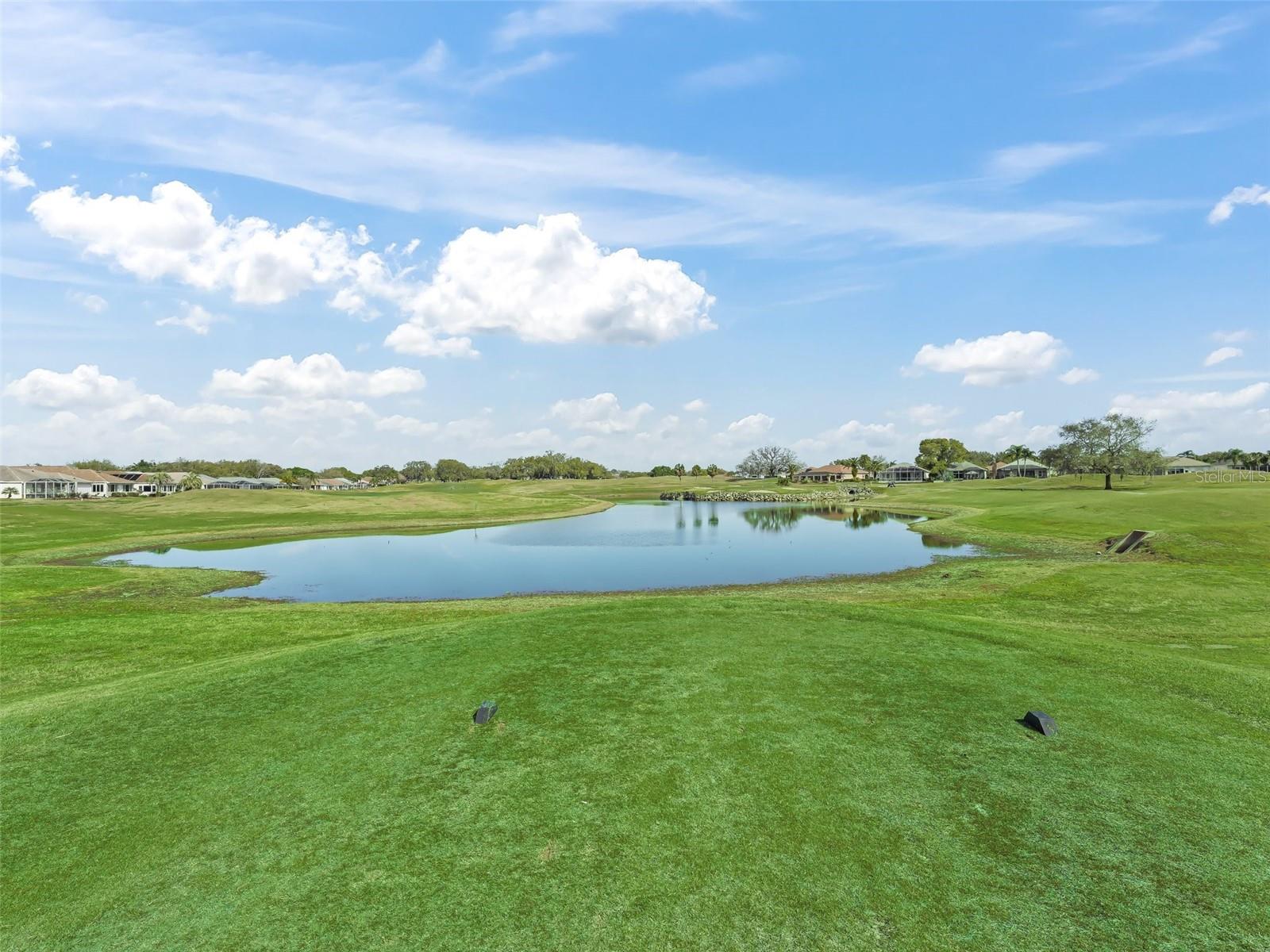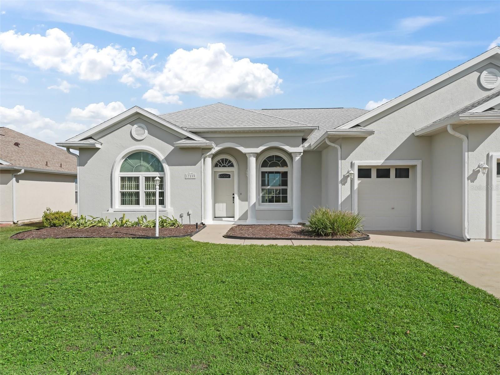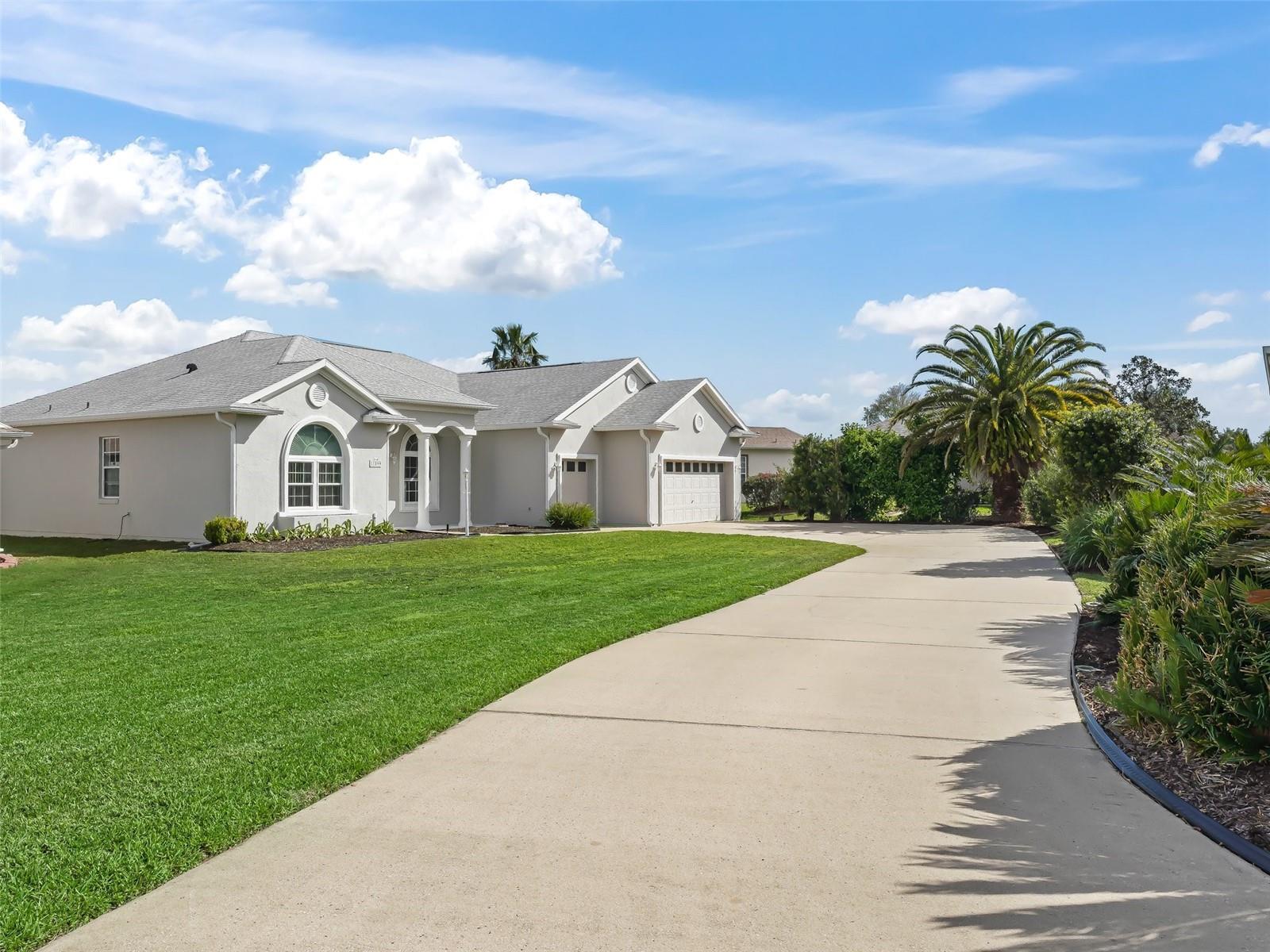 STONECREST is a 55+ Golf Course Community With All The Amenities, and just a Bridge Away By Golf Cart To The Villages! Stunning GOLF FRONT 3/3 Concrete Block and Stucco Cedar with a Water View, and a 2 + Golf Cart Garage on a Quiet Cul de Sac Lot with Room for a Pool! ROOF 2019! HVAC 2019! This well appointed home boasts a Tremendous Golf Course View, Water View, Upgraded light fixtures, Newer interior paint, 10' ceilings, and French door entry to the Study/Den (Living Room in original floor plan)! This Cedar model offers an Open Concept Floor plan with Soaring 10' ceilings throughout, and a Large Great Room off the Eat in Kitchen with stackable sliders to the Large Screened Lanai, creating a Spectacular Space for Social Gatherings, and relaxing with Family! This Spacious Kitchen features Quartz countertops that Sparkle like Diamonds, a nice size Pantry Closet, Wood cabinets, an Eat in Area, a Generous Breakfast bar, and Stunning Golf Course, and Water Views. The Split Floor plan provides Privacy for both the Owners and their Guest, with the Primary Suite commanding one side of the home, while the guest bedrooms and bathrooms are located on the opposite side of the home. The Luxurious Primary suite offers a Private access to the lanai, Walk in Closet, and an En Suite Bathroom. The En Suite Bathroom features a Two Sink Vanity, large Soaking Tub, Linen Closet, and a Walk in Shower. Guest bedroom 2 offers a Double closet, and an En suite bathroom with a Tiled Walk in shower, providing your guests with Convenience, and Privacy! Guest bedroom 3 is conveniently situated next to the additional guest bathroom with a Tub and Shower combination, a Private door to the Lanai, and has a double closet, offering plenty of space for the comfort of your guests! Enjoy the additional entertaining space provided by the Screened Lanai with tile flooring, and appreciate the beautiful Florida Sunsets from the comfort of the large screened lanai with unencumbered views, enhancing the outdoor living experience! This Stunning Cedar model offers a well designed floor plan, Room for a Pool, a Fabulous Golf Course, and Water View! Stonecrest is a 55+ gated golf course community with all the amenities, pools, pickleball courts, softball, 18 hole championship golf course, Broad Stripes Golf & Social Club and over 80 different clubs to join! Stonecrest is just a bridge away by golf cart to the Villages. It is a community with Private Roads and 24 Hour Security! As a private gated golf course community, you can expect a high level of privacy and security. Overall, this home offers a combination of Tremendous Outdoor Space, luxurious features, a desirable location, and a secure community setting. A WONDERFUL LIFESTYLE AWAITS YOU IN STONECREST!