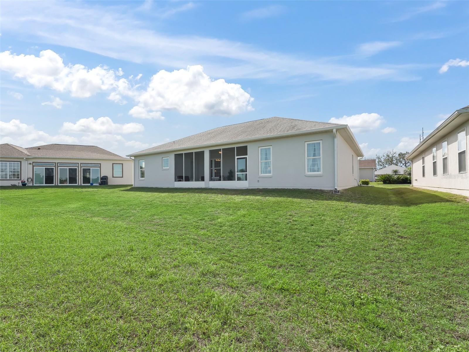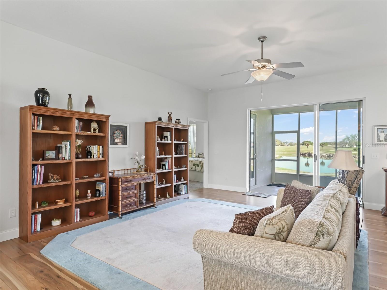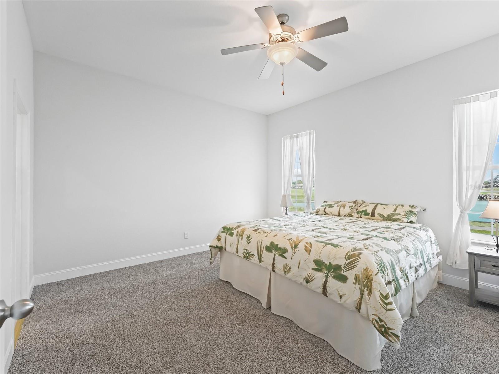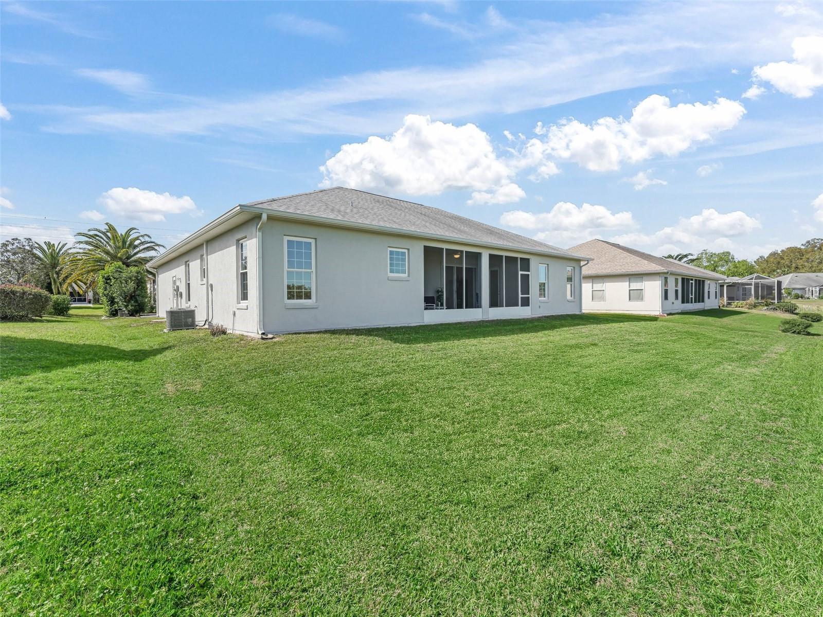 STONECREST is a 55+ Golf Course Community With All The Amenities, and just a Bridge Away By Golf Cart To The Villages! Stunning GOLF FRONT 3/3 Concrete Block and Stucco Cedar with a Water View, and a 2 + Golf Cart Garage on a Quiet Cul de Sac Lot with Room for a Pool! ROOF 2019! HVAC 2019! This well appointed home boasts a Tremendous Golf Course View, Water View, Upgraded light fixtures, Newer interior paint, 10' ceilings, and French door entry to the Study/Den (Living Room in original floor plan)! This Cedar model offers an Open Concept Floor plan with Soaring 10' ceilings throughout, and a Large Great Room off the Eat in Kitchen with stackable sliders to the Large Screened Lanai, creating a Spectacular Space for Social Gatherings, and relaxing with Family! This Spacious Kitchen features Quartz countertops that Sparkle like Diamonds, a nice size Pantry Closet, Wood cabinets, an Eat in Area, a Generous Breakfast bar, and Stunning Golf Course, and Water Views. The Split Floor plan provides Privacy for both the Owners and their Guest, with the Primary Suite commanding one side of the home, while the guest bedrooms and bathrooms are located on the opposite side of the home. The Luxurious Primary suite offers a Private access to the lanai, Walk in Closet, and an En Suite Bathroom. The En Suite Bathroom features a Two Sink Vanity, large Soaking Tub, Linen Closet, and a Walk in Shower. Guest bedroom 2 offers a Double closet, and an En suite bathroom with a Tiled Walk in shower, providing your guests with Convenience, and Privacy! Guest bedroom 3 is conveniently situated next to the additional guest bathroom with a Tub and Shower combination, a Private door to the Lanai, and has a double closet, offering plenty of space for the comfort of your guests! Enjoy the additional entertaining space provided by the Screened Lanai with tile flooring, and appreciate the beautiful Florida Sunsets from the comfort of the large screened lanai with unencumbered views, enhancing the outdoor living experience! This Stunning Cedar model offers a well designed floor plan, Room for a Pool, a Fabulous Golf Course, and Water View! Stonecrest is a 55+ gated golf course community with all the amenities, pools, pickleball courts, softball, 18 hole championship golf course, Broad Stripes Golf & Social Club and over 80 different clubs to join! Stonecrest is just a bridge away by golf cart to the Villages. It is a community with Private Roads and 24 Hour Security! As a private gated golf course community, you can expect a high level of privacy and security. Overall, this home offers a combination of Tremendous Outdoor Space, luxurious features, a desirable location, and a secure community setting. A WONDERFUL LIFESTYLE AWAITS YOU IN STONECREST!