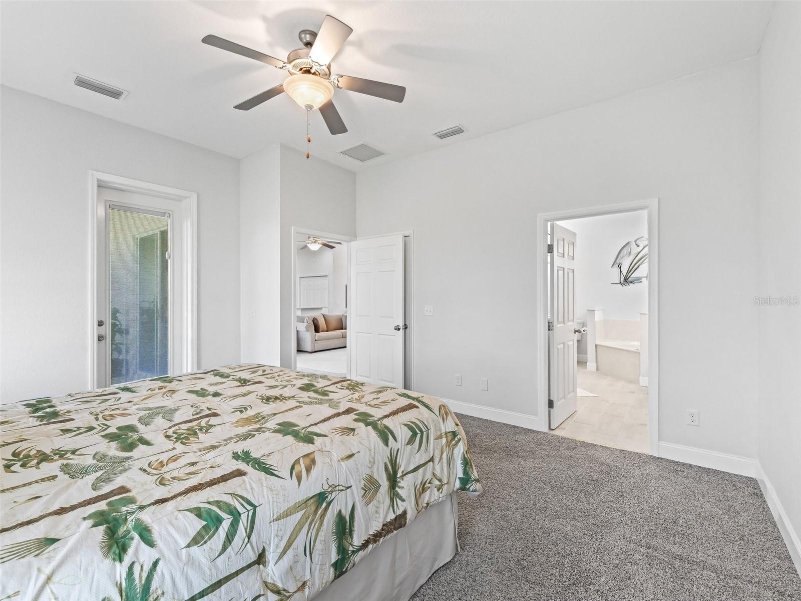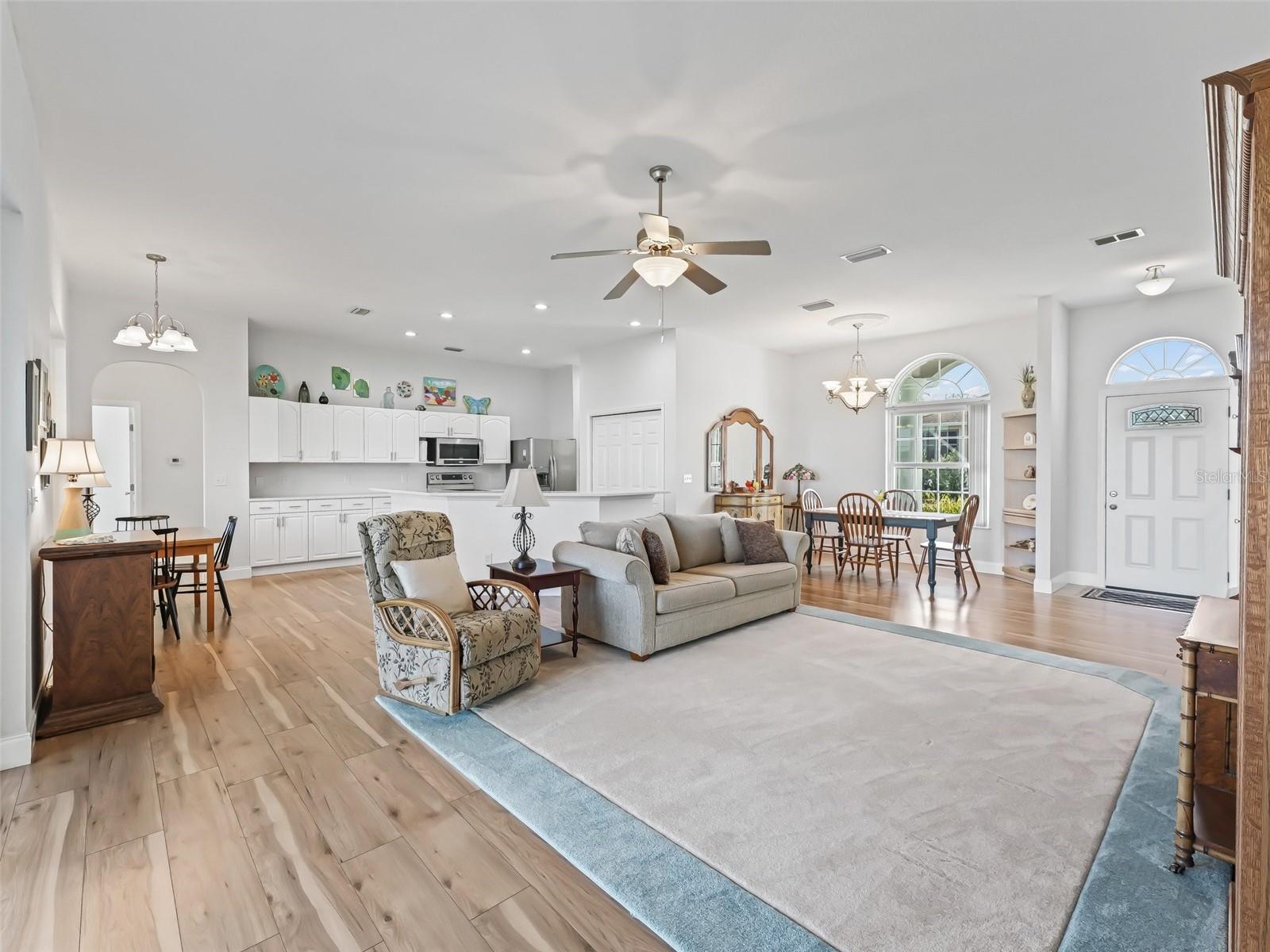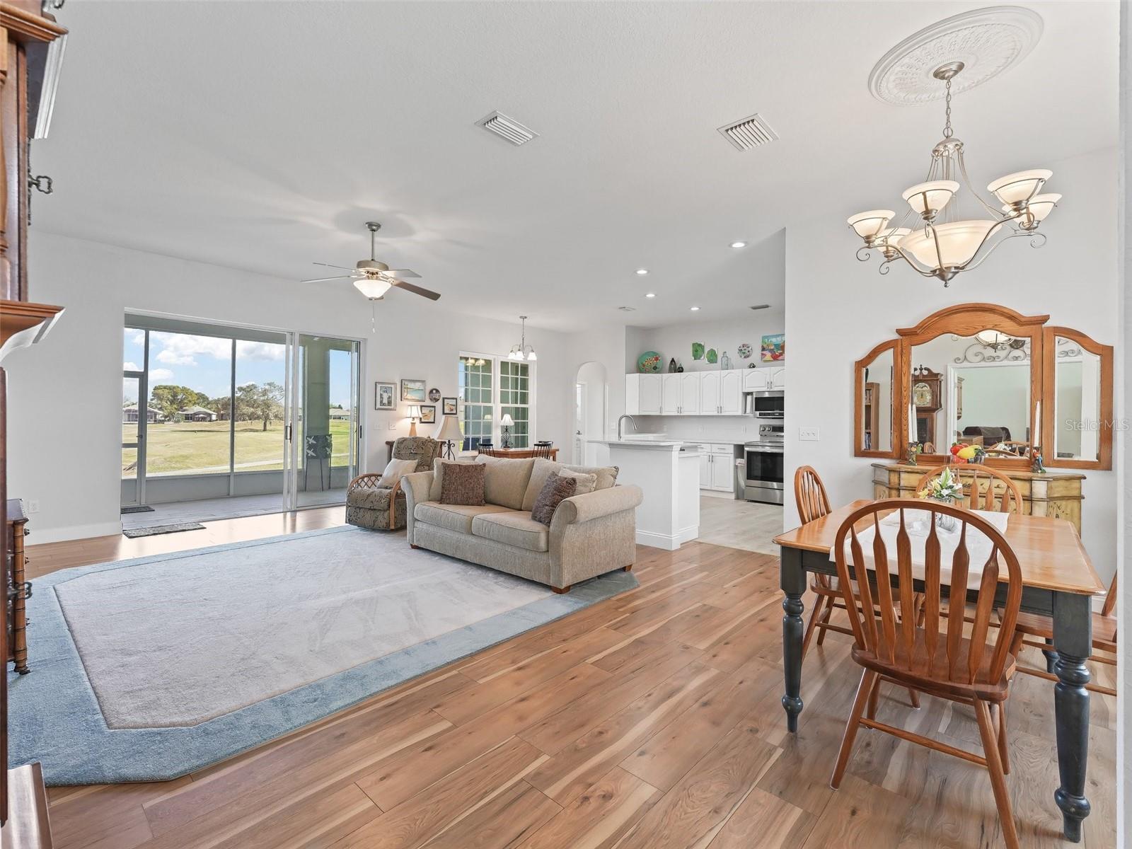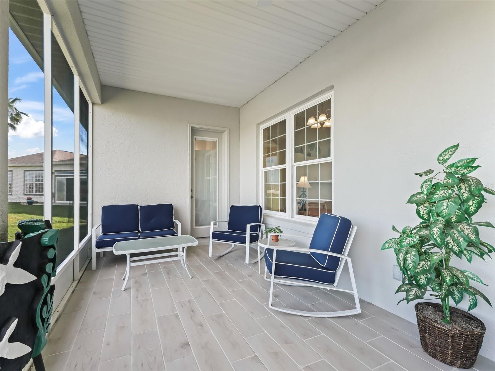 STONECREST is a 55+ Golf Course Community With All The Amenities, and just a Bridge Away By Golf Cart To The Villages! Stunning GOLF FRONT 3/3 Concrete Block and Stucco Cedar with a Water View, and a 2 + Golf Cart Garage on a Quiet Cul de Sac Lot with Room for a Pool! ROOF 2019! HVAC 2019! This well appointed home boasts a Tremendous Golf Course View, Water View, Upgraded light fixtures, Newer interior paint, 10' ceilings, and French door entry to the Study/Den (Living Room in original floor plan)! This Cedar model offers an Open Concept Floor plan with Soaring 10' ceilings throughout, and a Large Great Room off the Eat in Kitchen with stackable sliders to the Large Screened Lanai, creating a Spectacular Space for Social Gatherings, and relaxing with Family! This Spacious Kitchen features Quartz countertops that Sparkle like Diamonds, a nice size Pantry Closet, Wood cabinets, an Eat in Area, a Generous Breakfast bar, and Stunning Golf Course, and Water Views. The Split Floor plan provides Privacy for both the Owners and their Guest, with the Primary Suite commanding one side of the home, while the guest bedrooms and bathrooms are located on the opposite side of the home. The Luxurious Primary suite offers a Private access to the lanai, Walk in Closet, and an En Suite Bathroom. The En Suite Bathroom features a Two Sink Vanity, large Soaking Tub, Linen Closet, and a Walk in Shower. Guest bedroom 2 offers a Double closet, and an En suite bathroom with a Tiled Walk in shower, providing your guests with Convenience, and Privacy! Guest bedroom 3 is conveniently situated next to the additional guest bathroom with a Tub and Shower combination, a Private door to the Lanai, and has a double closet, offering plenty of space for the comfort of your guests! Enjoy the additional entertaining space provided by the Screened Lanai with tile flooring, and appreciate the beautiful Florida Sunsets from the comfort of the large screened lanai with unencumbered views, enhancing the outdoor living experience! This Stunning Cedar model offers a well designed floor plan, Room for a Pool, a Fabulous Golf Course, and Water View! Stonecrest is a 55+ gated golf course community with all the amenities, pools, pickleball courts, softball, 18 hole championship golf course, Broad Stripes Golf & Social Club and over 80 different clubs to join! Stonecrest is just a bridge away by golf cart to the Villages. It is a community with Private Roads and 24 Hour Security! As a private gated golf course community, you can expect a high level of privacy and security. Overall, this home offers a combination of Tremendous Outdoor Space, luxurious features, a desirable location, and a secure community setting. A WONDERFUL LIFESTYLE AWAITS YOU IN STONECREST!