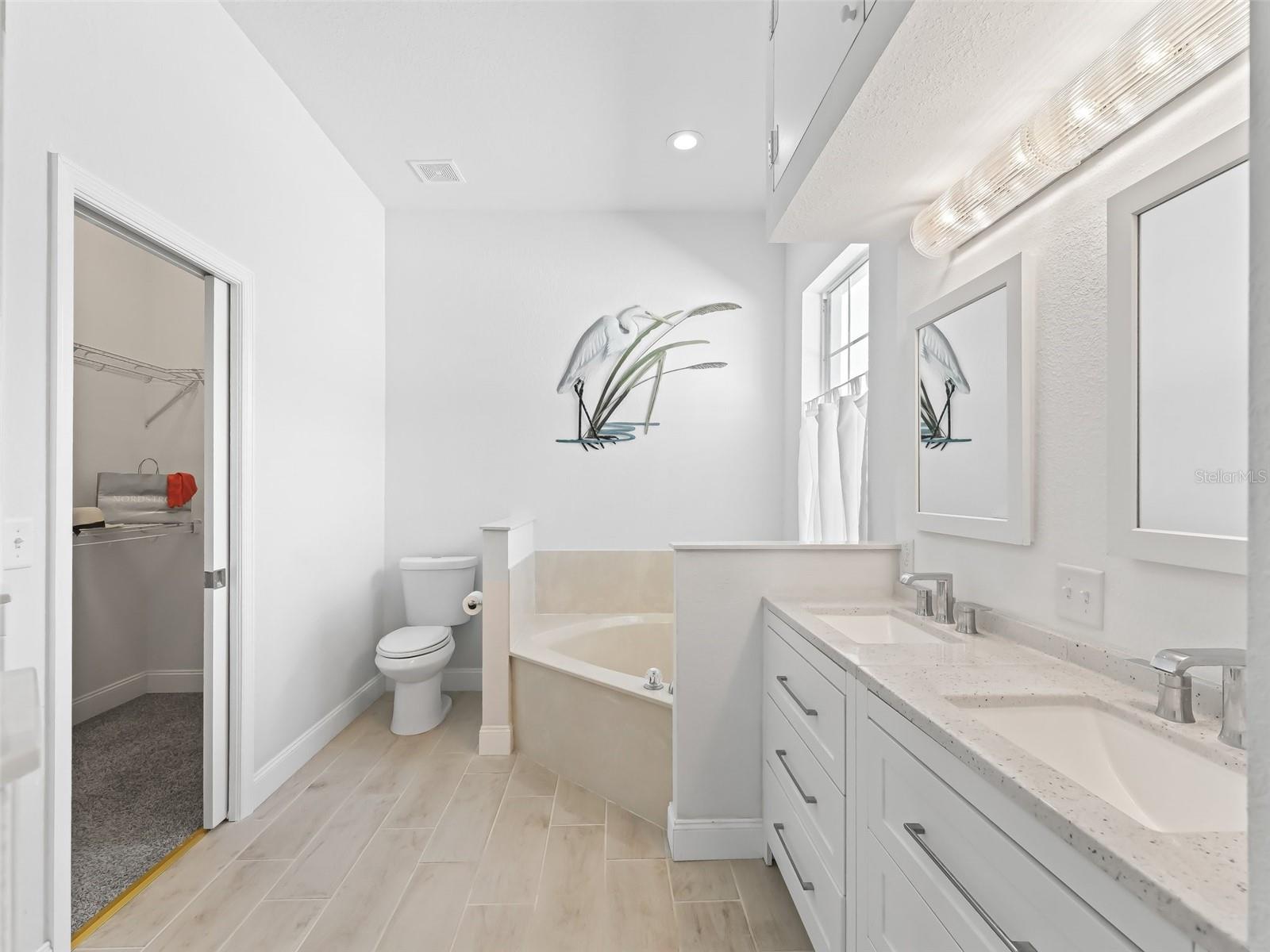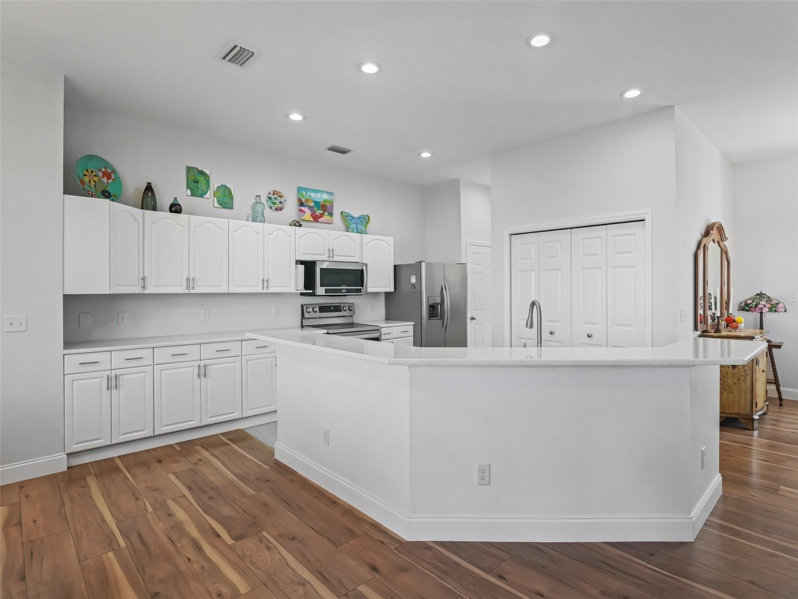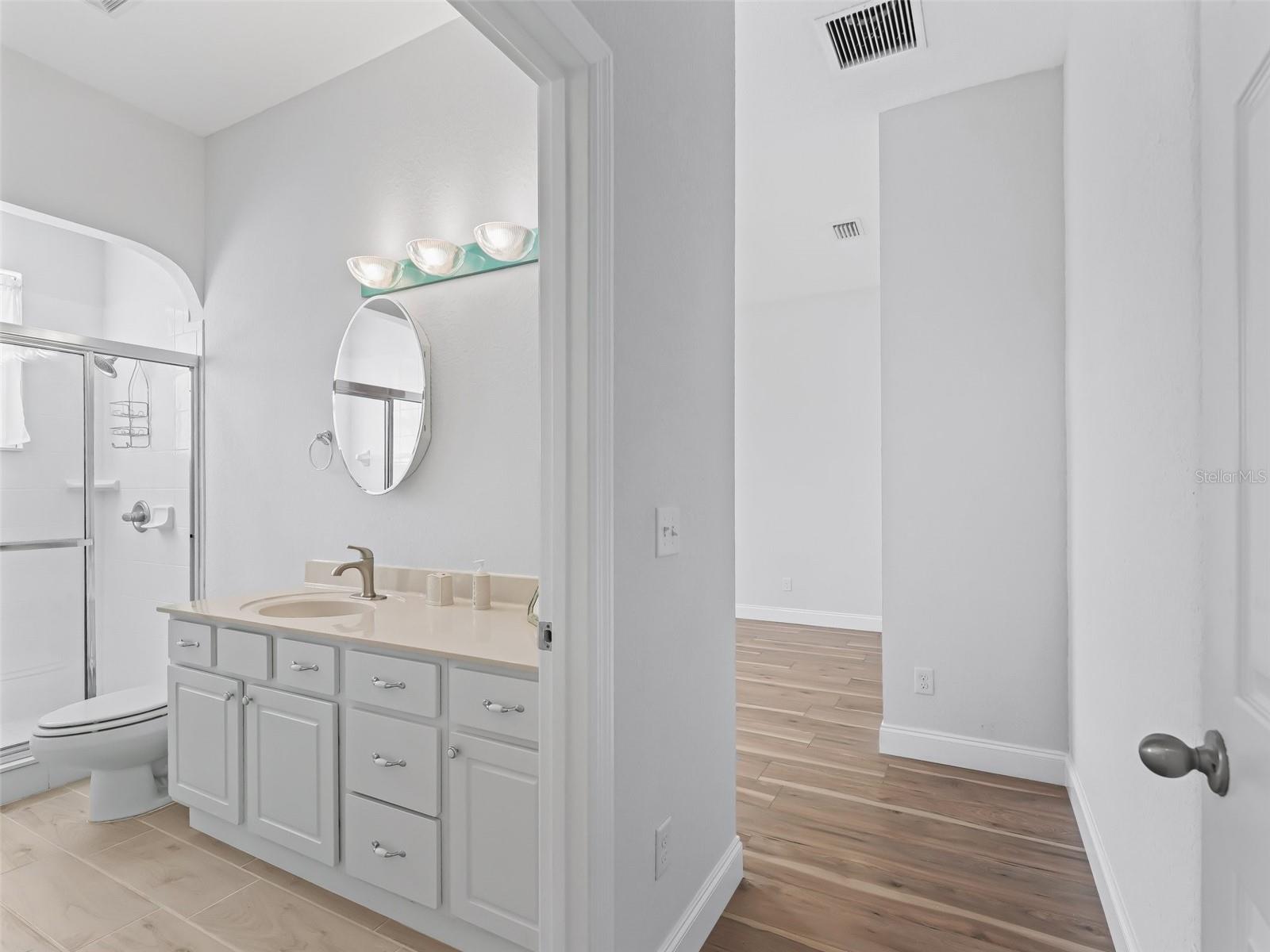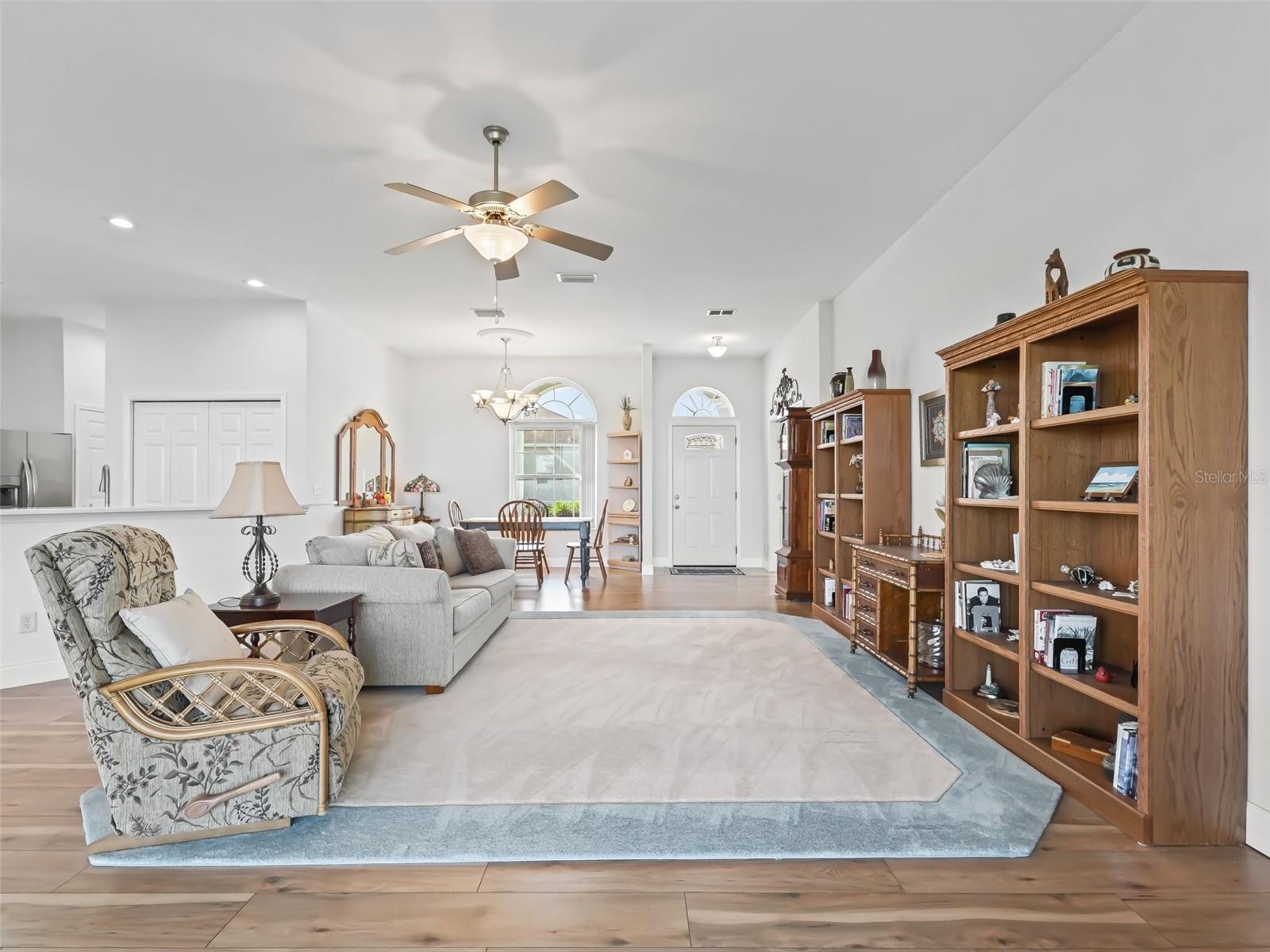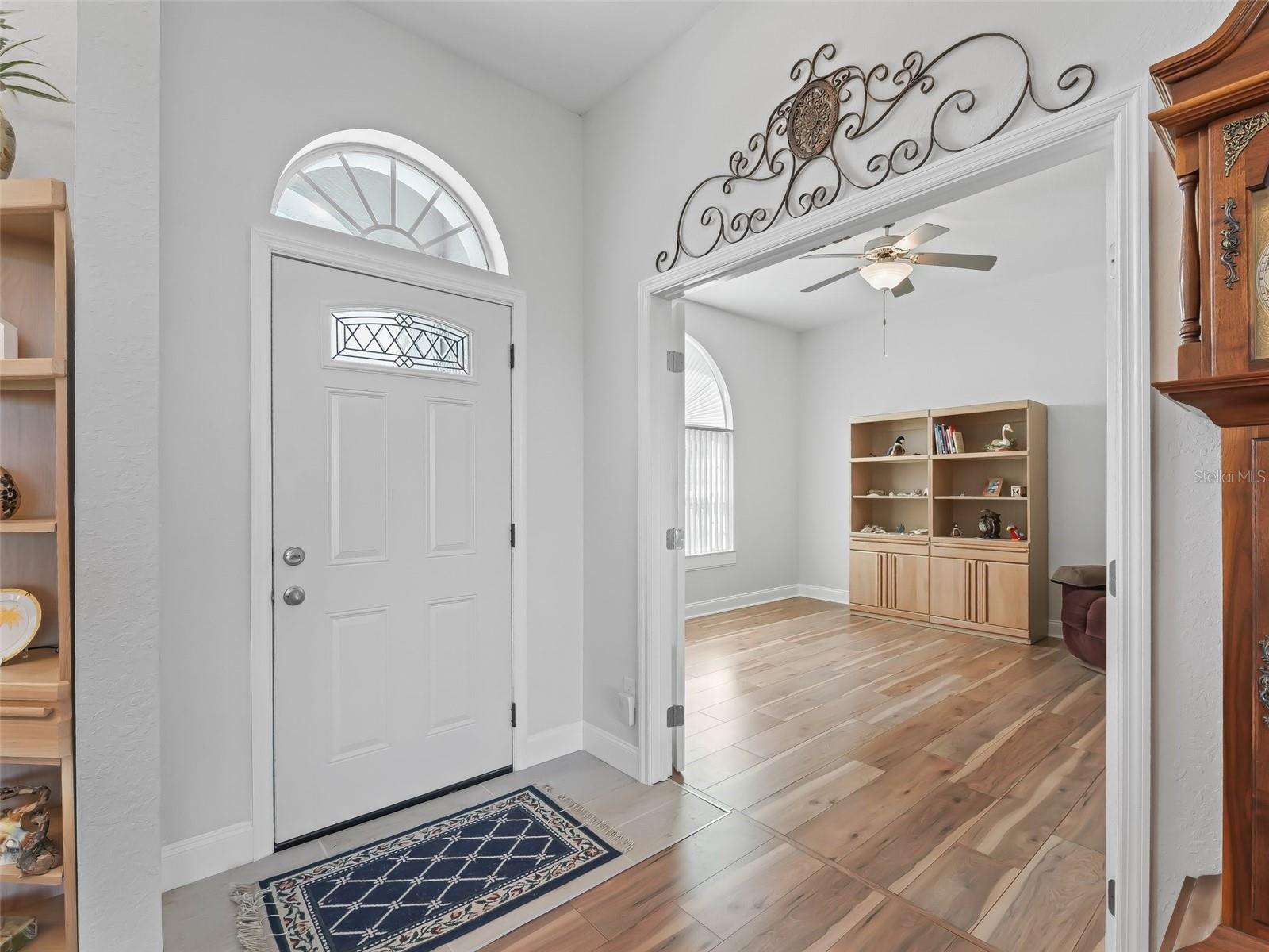 STONECREST is a 55+ Golf Course Community With All The Amenities, and just a Bridge Away By Golf Cart To The Villages! Stunning GOLF FRONT 3/3 Concrete Block and Stucco Cedar with a Water View, and a 2 + Golf Cart Garage on a Quiet Cul de Sac Lot with Room for a Pool! ROOF 2019! HVAC 2019! This well appointed home boasts a Tremendous Golf Course View, Water View, Upgraded light fixtures, Newer interior paint, 10' ceilings, and French door entry to the Study/Den (Living Room in original floor plan)! This Cedar model offers an Open Concept Floor plan with Soaring 10' ceilings throughout, and a Large Great Room off the Eat in Kitchen with stackable sliders to the Large Screened Lanai, creating a Spectacular Space for Social Gatherings, and relaxing with Family! This Spacious Kitchen features Quartz countertops that Sparkle like Diamonds, a nice size Pantry Closet, Wood cabinets, an Eat in Area, a Generous Breakfast bar, and Stunning Golf Course, and Water Views. The Split Floor plan provides Privacy for both the Owners and their Guest, with the Primary Suite commanding one side of the home, while the guest bedrooms and bathrooms are located on the opposite side of the home. The Luxurious Primary suite offers a Private access to the lanai, Walk in Closet, and an En Suite Bathroom. The En Suite Bathroom features a Two Sink Vanity, large Soaking Tub, Linen Closet, and a Walk in Shower. Guest bedroom 2 offers a Double closet, and an En suite bathroom with a Tiled Walk in shower, providing your guests with Convenience, and Privacy! Guest bedroom 3 is conveniently situated next to the additional guest bathroom with a Tub and Shower combination, a Private door to the Lanai, and has a double closet, offering plenty of space for the comfort of your guests! Enjoy the additional entertaining space provided by the Screened Lanai with tile flooring, and appreciate the beautiful Florida Sunsets from the comfort of the large screened lanai with unencumbered views, enhancing the outdoor living experience! This Stunning Cedar model offers a well designed floor plan, Room for a Pool, a Fabulous Golf Course, and Water View! Stonecrest is a 55+ gated golf course community with all the amenities, pools, pickleball courts, softball, 18 hole championship golf course, Broad Stripes Golf & Social Club and over 80 different clubs to join! Stonecrest is just a bridge away by golf cart to the Villages. It is a community with Private Roads and 24 Hour Security! As a private gated golf course community, you can expect a high level of privacy and security. Overall, this home offers a combination of Tremendous Outdoor Space, luxurious features, a desirable location, and a secure community setting. A WONDERFUL LIFESTYLE AWAITS YOU IN STONECREST!
