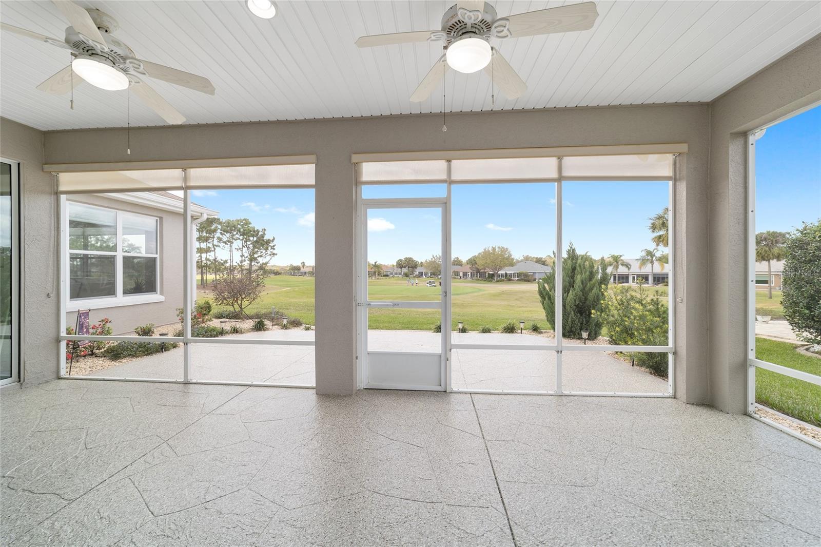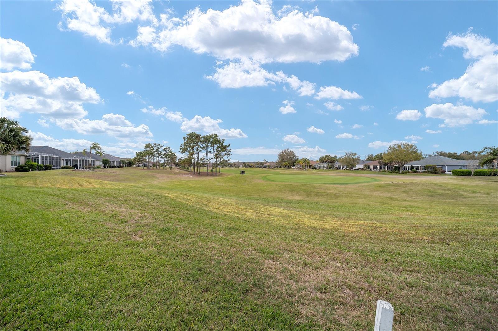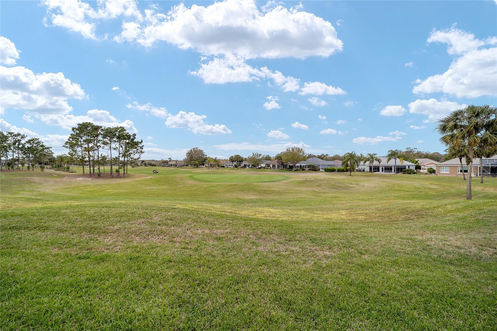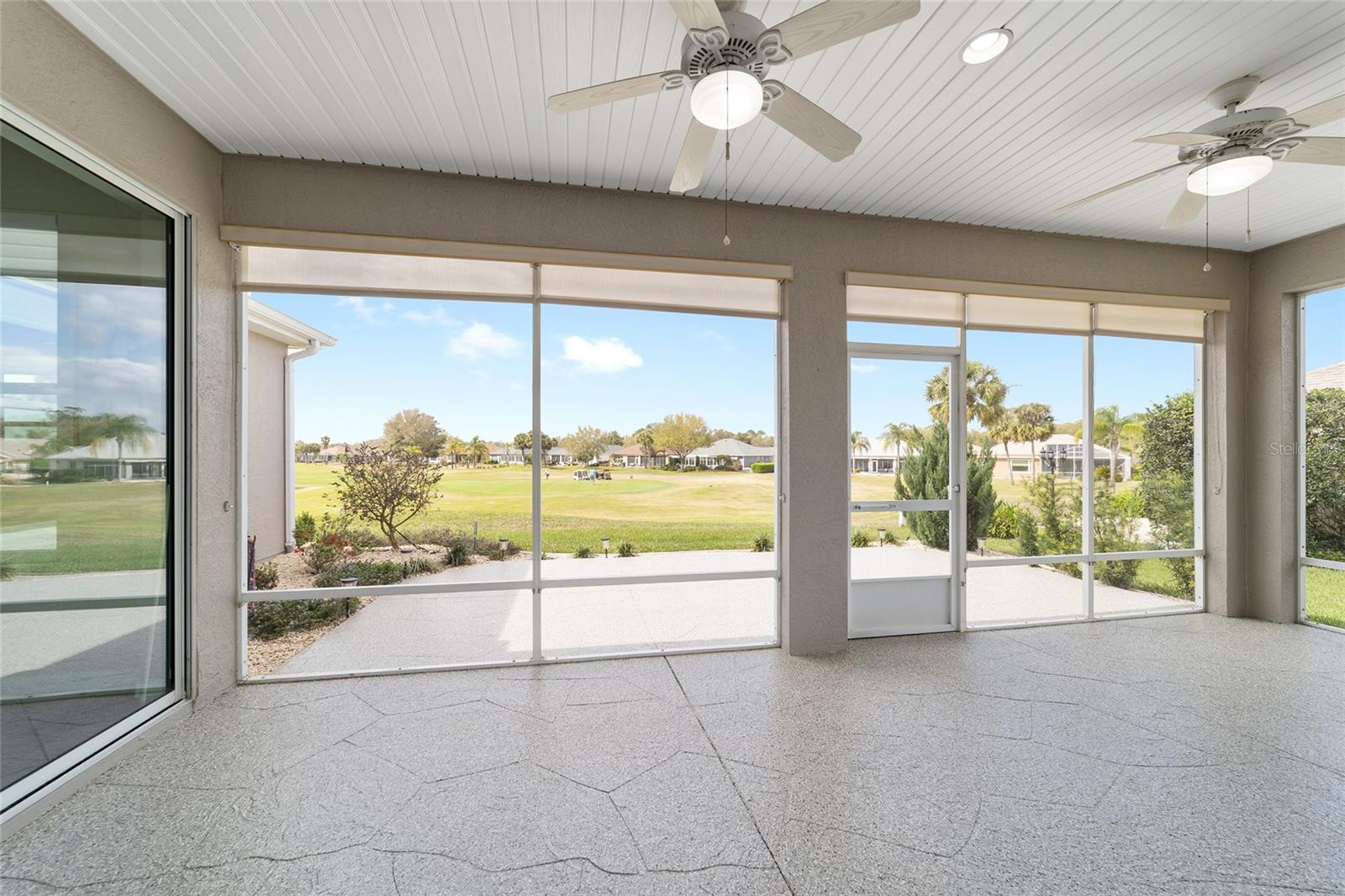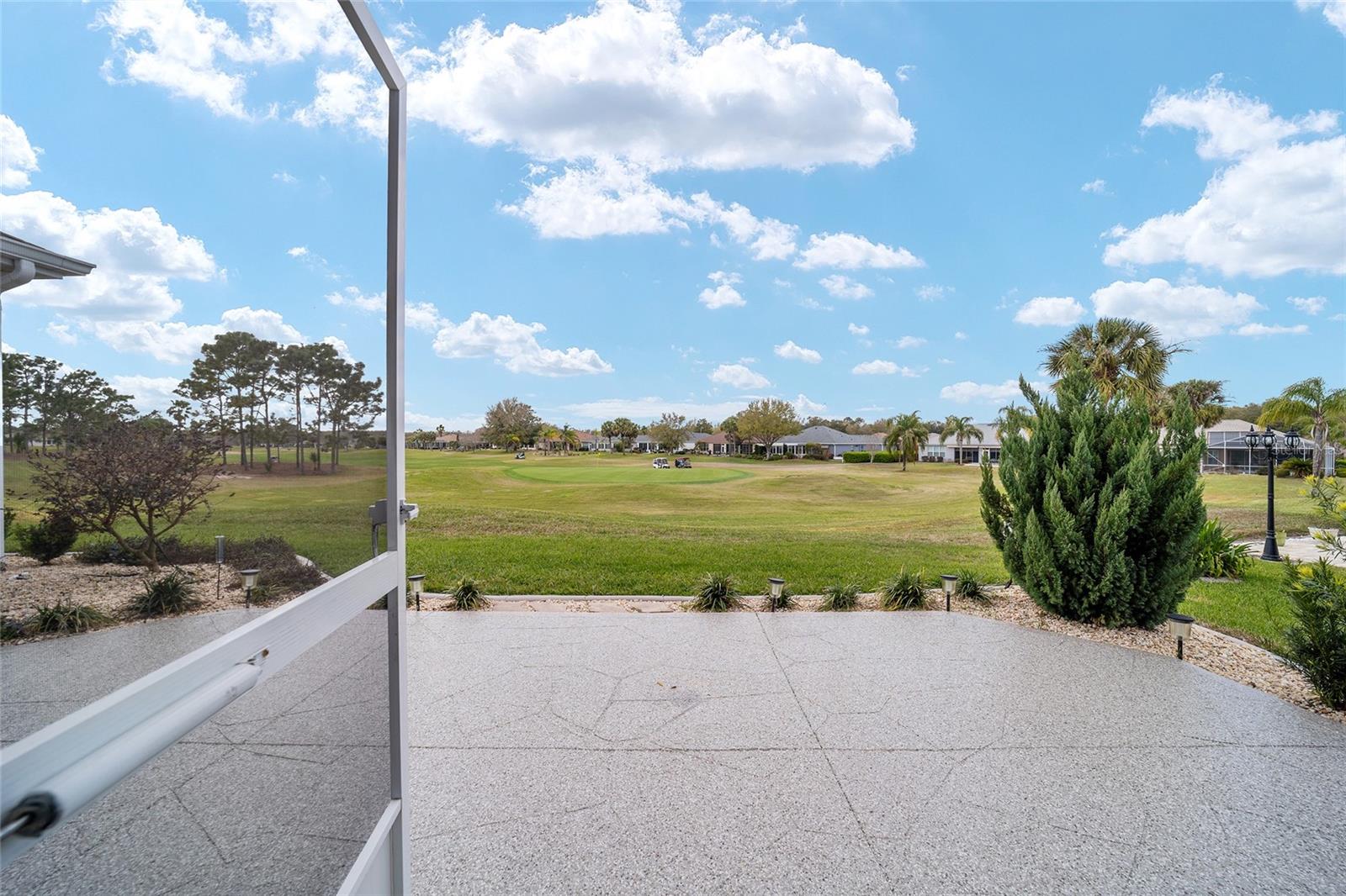 Some homes truly have it all, and this Kingston 3-bedroom, 2-bath home is one of them! A unique property with an unbeatable location just off the 5th green of the Memorial Golf Course, this home offers both stunning views and exceptional privacy. From the moment you step through the leaded glass front doors, the breathtaking golf course vista immediately captures your attention. The interior is equally impressive, featuring ceramic tile throughout, except for the three bedrooms, which boast engineered wood flooring.The dream kitchen is designed for both style and functionality, showcasing granite countertops, a tiled backsplash, top-of-the-line stainless steel appliances, white cabinets with double-rollout drawers, ample recessed lighting, and a solar tube for natural light. The kitchen flows effortlessly into the family room, a perfect spot to relax or enjoy golf course views. The living and dining rooms are enhanced by elegant silhouetted shades, while the family room, living room, and all bedrooms are equipped with fans featuring light packages.The primary suite is a showstopper, extending the entire length of the home and leading to a spacious primary bath with a large separate shower, an oval soaking tub, and raised double vanities. Outdoor living is just as spectacular, with a screened lanai opening to a designer concrete patio, ideal for grilling, soaking up the sun, or watching golfers up close. Recently, the lanai floor and patio received a fresh coat of paint, matching the newly painted designer driveway.The landscaping is professionally designed and meticulously maintained, complementing the home's pristine curb appeal. The garage, extended by 4 feet, also includes a separate golf cart garage. Both the garage and driveway feature a durable epoxy finish. Additional updates include a 5-year-old HVAC system, and to top it off, a brand-new roof was installed April 2025. Don’t miss out on this beautiful, move-in-ready home in a sought-after location! Call today to schedule your private showing.