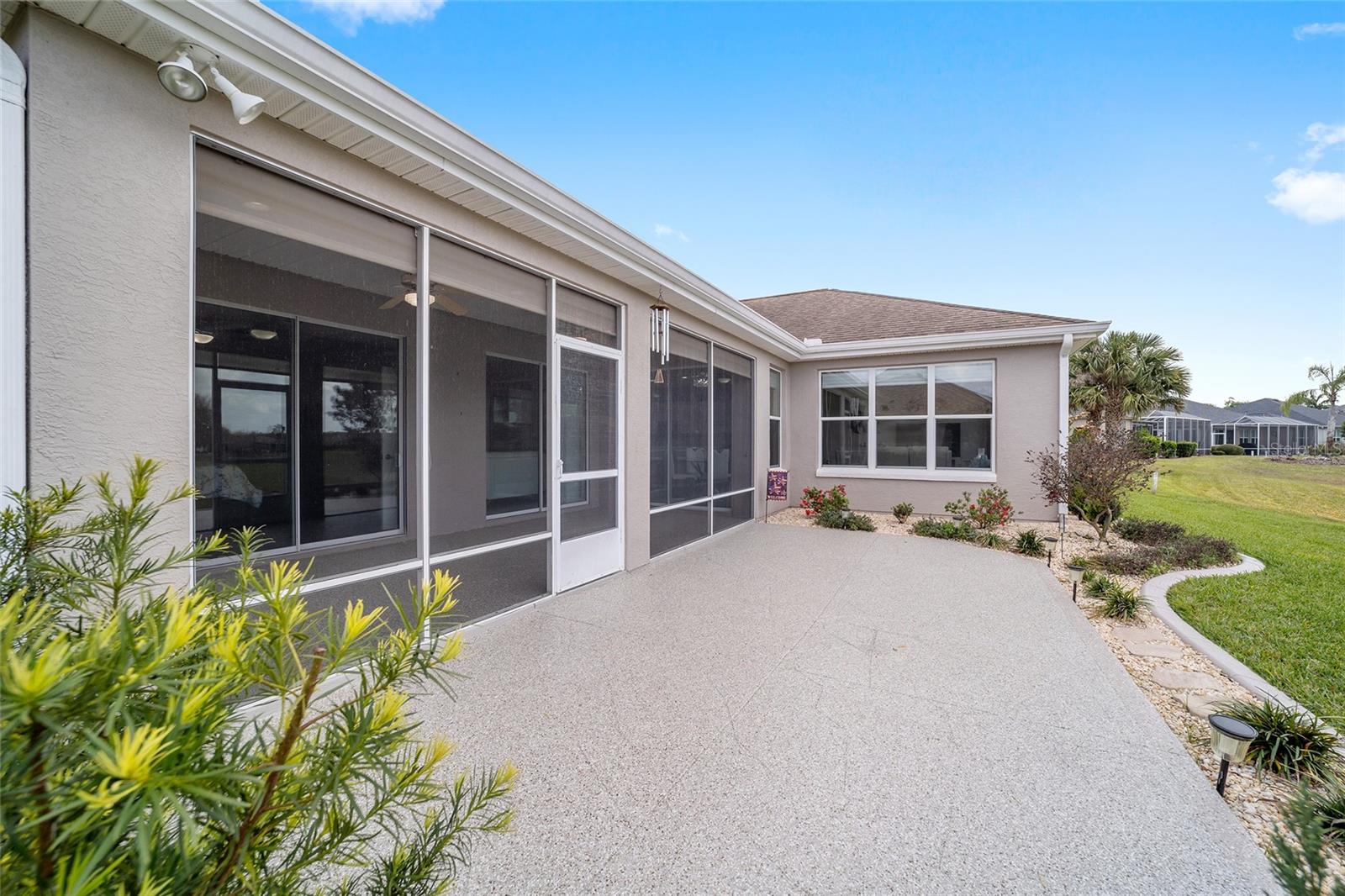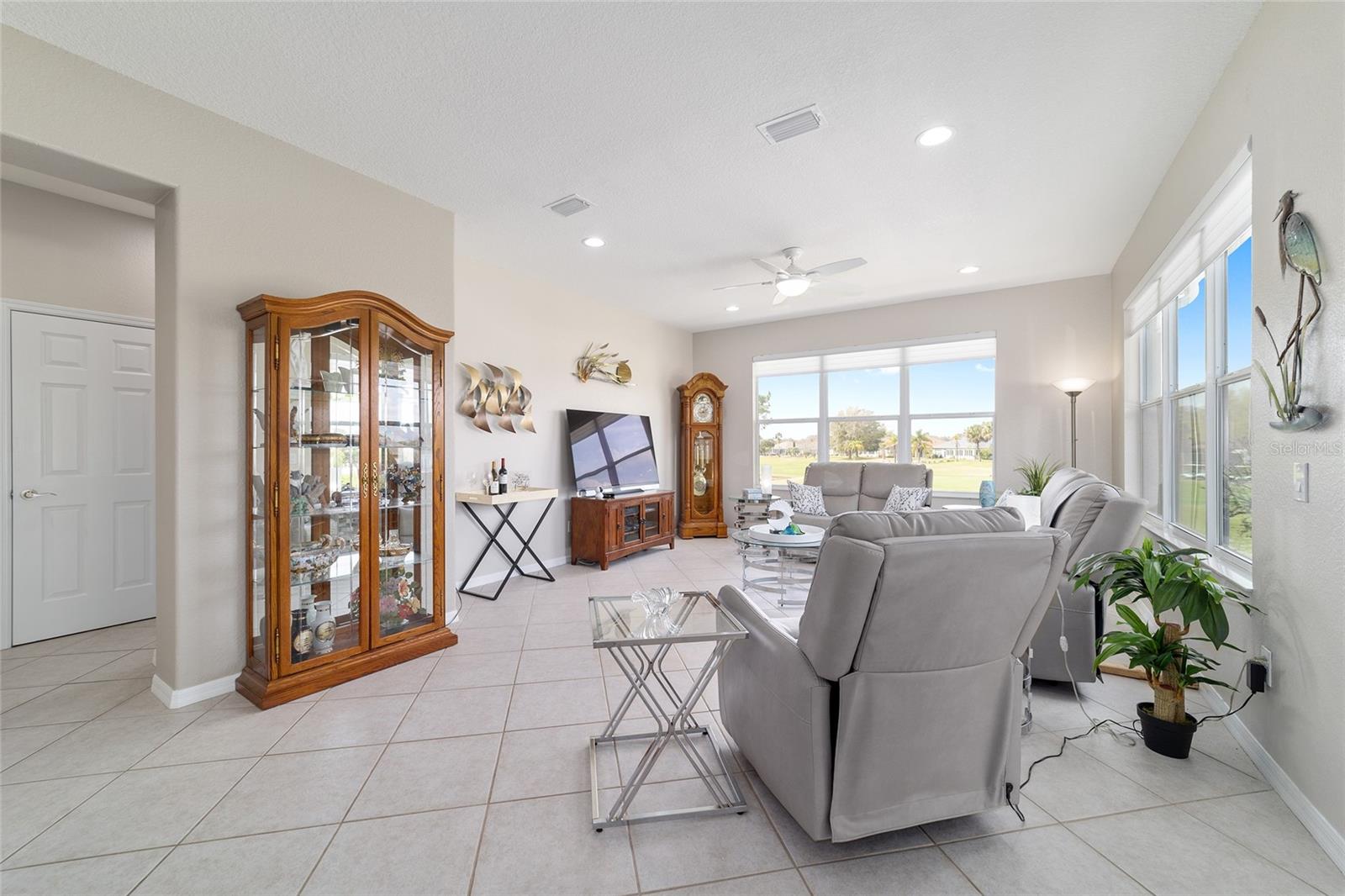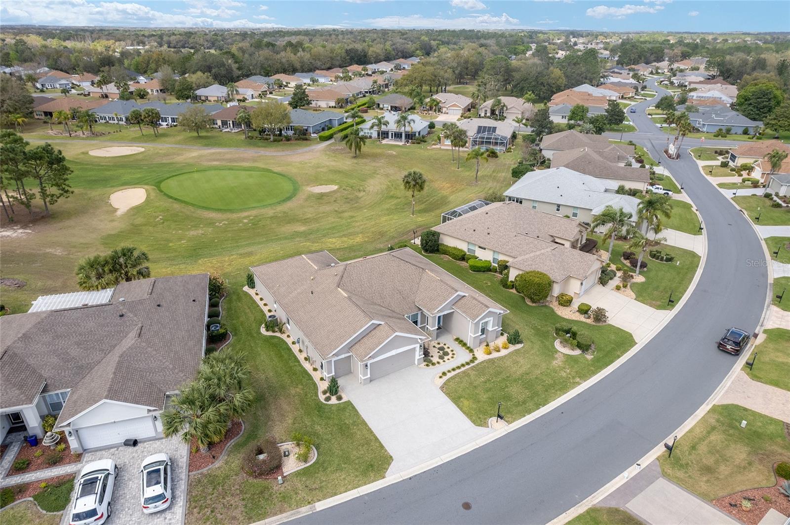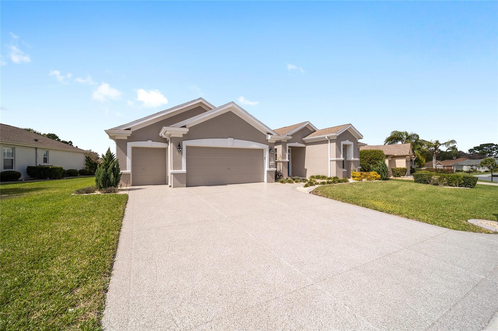 Some homes truly have it all, and this Kingston 3-bedroom, 2-bath home is one of them! A unique property with an unbeatable location just off the 5th green of the Memorial Golf Course, this home offers both stunning views and exceptional privacy. From the moment you step through the leaded glass front doors, the breathtaking golf course vista immediately captures your attention. The interior is equally impressive, featuring ceramic tile throughout, except for the three bedrooms, which boast engineered wood flooring.The dream kitchen is designed for both style and functionality, showcasing granite countertops, a tiled backsplash, top-of-the-line stainless steel appliances, white cabinets with double-rollout drawers, ample recessed lighting, and a solar tube for natural light. The kitchen flows effortlessly into the family room, a perfect spot to relax or enjoy golf course views. The living and dining rooms are enhanced by elegant silhouetted shades, while the family room, living room, and all bedrooms are equipped with fans featuring light packages.The primary suite is a showstopper, extending the entire length of the home and leading to a spacious primary bath with a large separate shower, an oval soaking tub, and raised double vanities. Outdoor living is just as spectacular, with a screened lanai opening to a designer concrete patio, ideal for grilling, soaking up the sun, or watching golfers up close. Recently, the lanai floor and patio received a fresh coat of paint, matching the newly painted designer driveway.The landscaping is professionally designed and meticulously maintained, complementing the home's pristine curb appeal. The garage, extended by 4 feet, also includes a separate golf cart garage. Both the garage and driveway feature a durable epoxy finish. Additional updates include a 5-year-old HVAC system, and to top it off, a brand-new roof was installed April 2025. Don’t miss out on this beautiful, move-in-ready home in a sought-after location! Call today to schedule your private showing.