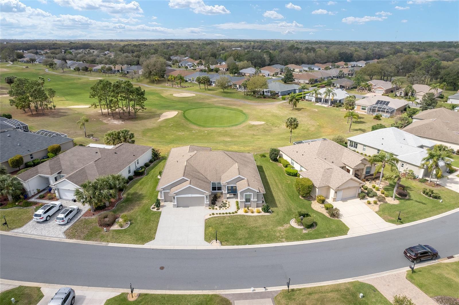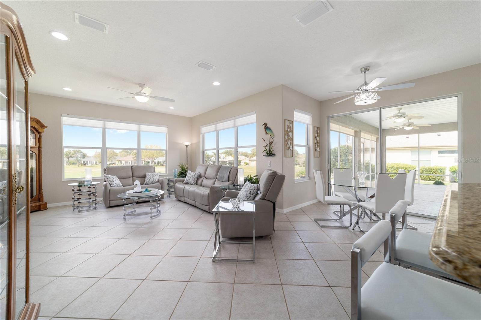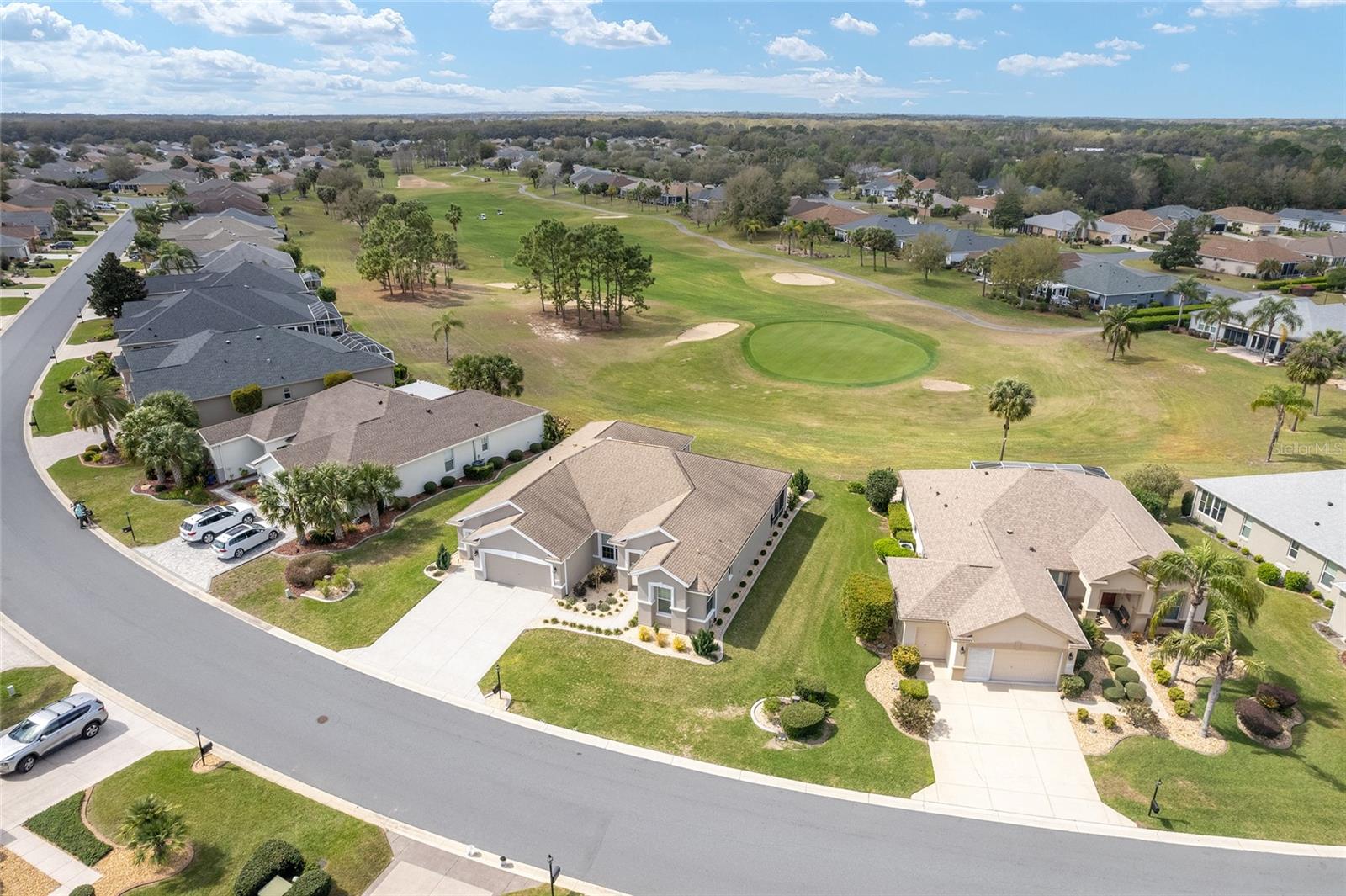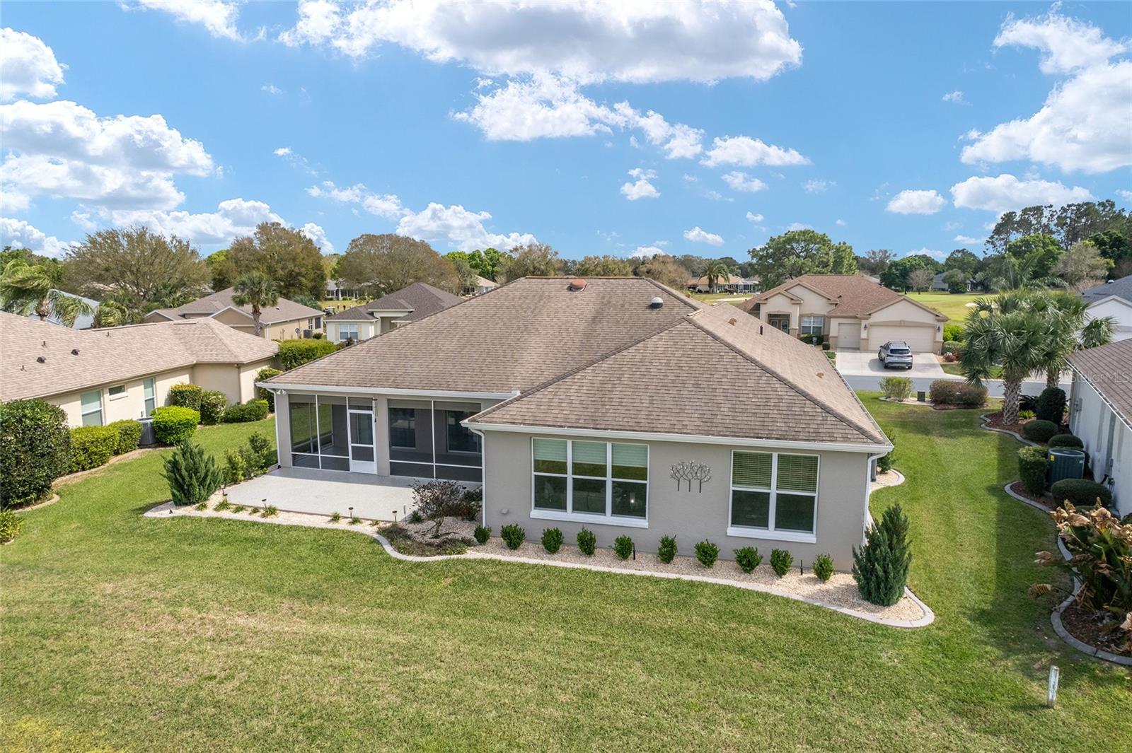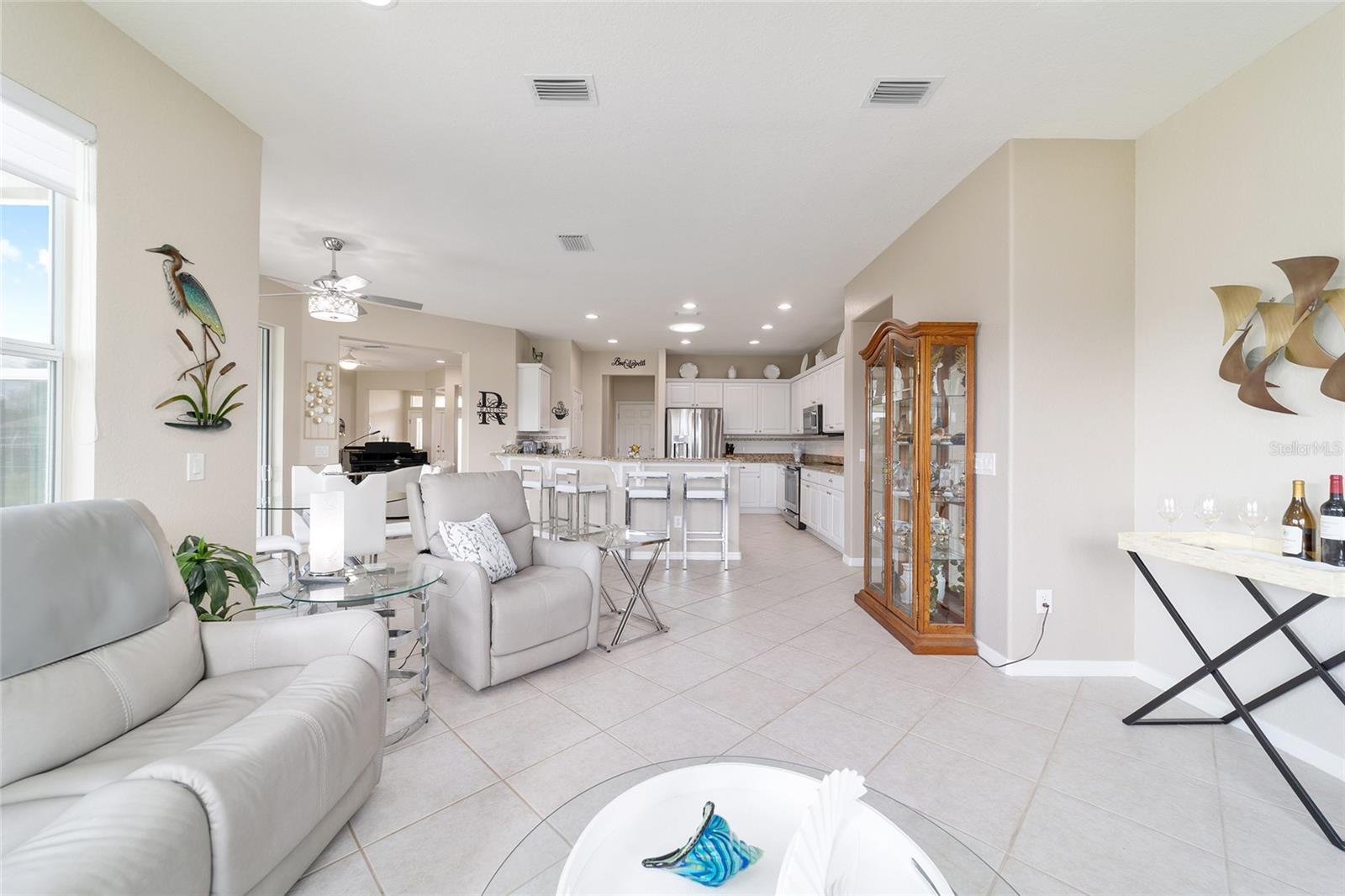 Some homes truly have it all, and this Kingston 3-bedroom, 2-bath home is one of them! A unique property with an unbeatable location just off the 5th green of the Memorial Golf Course, this home offers both stunning views and exceptional privacy. From the moment you step through the leaded glass front doors, the breathtaking golf course vista immediately captures your attention. The interior is equally impressive, featuring ceramic tile throughout, except for the three bedrooms, which boast engineered wood flooring.The dream kitchen is designed for both style and functionality, showcasing granite countertops, a tiled backsplash, top-of-the-line stainless steel appliances, white cabinets with double-rollout drawers, ample recessed lighting, and a solar tube for natural light. The kitchen flows effortlessly into the family room, a perfect spot to relax or enjoy golf course views. The living and dining rooms are enhanced by elegant silhouetted shades, while the family room, living room, and all bedrooms are equipped with fans featuring light packages.The primary suite is a showstopper, extending the entire length of the home and leading to a spacious primary bath with a large separate shower, an oval soaking tub, and raised double vanities. Outdoor living is just as spectacular, with a screened lanai opening to a designer concrete patio, ideal for grilling, soaking up the sun, or watching golfers up close. Recently, the lanai floor and patio received a fresh coat of paint, matching the newly painted designer driveway.The landscaping is professionally designed and meticulously maintained, complementing the home's pristine curb appeal. The garage, extended by 4 feet, also includes a separate golf cart garage. Both the garage and driveway feature a durable epoxy finish. Additional updates include a 5-year-old HVAC system, and to top it off, a brand-new roof was installed April 2025. Don’t miss out on this beautiful, move-in-ready home in a sought-after location! Call today to schedule your private showing.