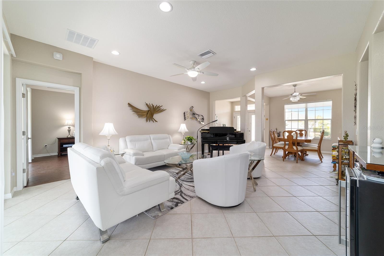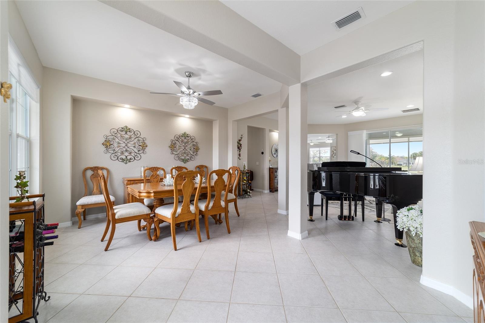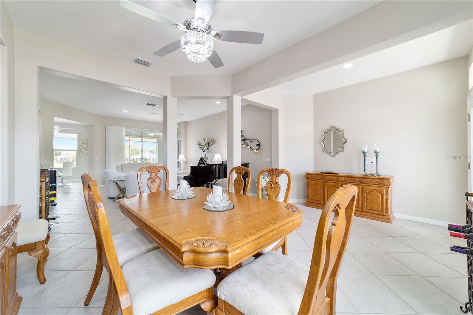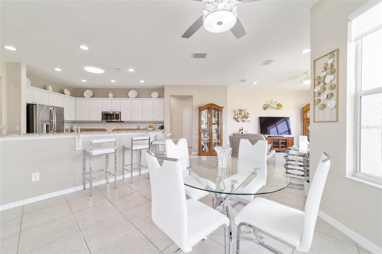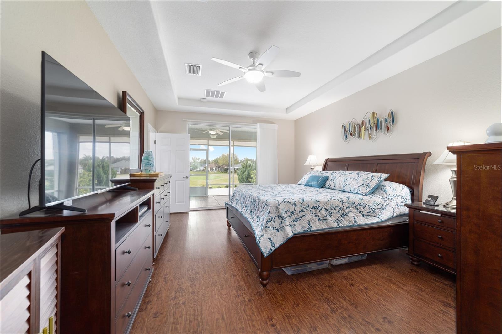 Some homes truly have it all, and this Kingston 3-bedroom, 2-bath home is one of them! A unique property with an unbeatable location just off the 5th green of the Memorial Golf Course, this home offers both stunning views and exceptional privacy. From the moment you step through the leaded glass front doors, the breathtaking golf course vista immediately captures your attention. The interior is equally impressive, featuring ceramic tile throughout, except for the three bedrooms, which boast engineered wood flooring.The dream kitchen is designed for both style and functionality, showcasing granite countertops, a tiled backsplash, top-of-the-line stainless steel appliances, white cabinets with double-rollout drawers, ample recessed lighting, and a solar tube for natural light. The kitchen flows effortlessly into the family room, a perfect spot to relax or enjoy golf course views. The living and dining rooms are enhanced by elegant silhouetted shades, while the family room, living room, and all bedrooms are equipped with fans featuring light packages.The primary suite is a showstopper, extending the entire length of the home and leading to a spacious primary bath with a large separate shower, an oval soaking tub, and raised double vanities. Outdoor living is just as spectacular, with a screened lanai opening to a designer concrete patio, ideal for grilling, soaking up the sun, or watching golfers up close. Recently, the lanai floor and patio received a fresh coat of paint, matching the newly painted designer driveway.The landscaping is professionally designed and meticulously maintained, complementing the home's pristine curb appeal. The garage, extended by 4 feet, also includes a separate golf cart garage. Both the garage and driveway feature a durable epoxy finish. Additional updates include a 5-year-old HVAC system, and to top it off, a brand-new roof was installed April 2025. Don’t miss out on this beautiful, move-in-ready home in a sought-after location! Call today to schedule your private showing.