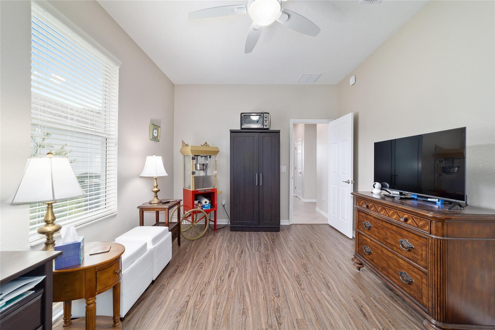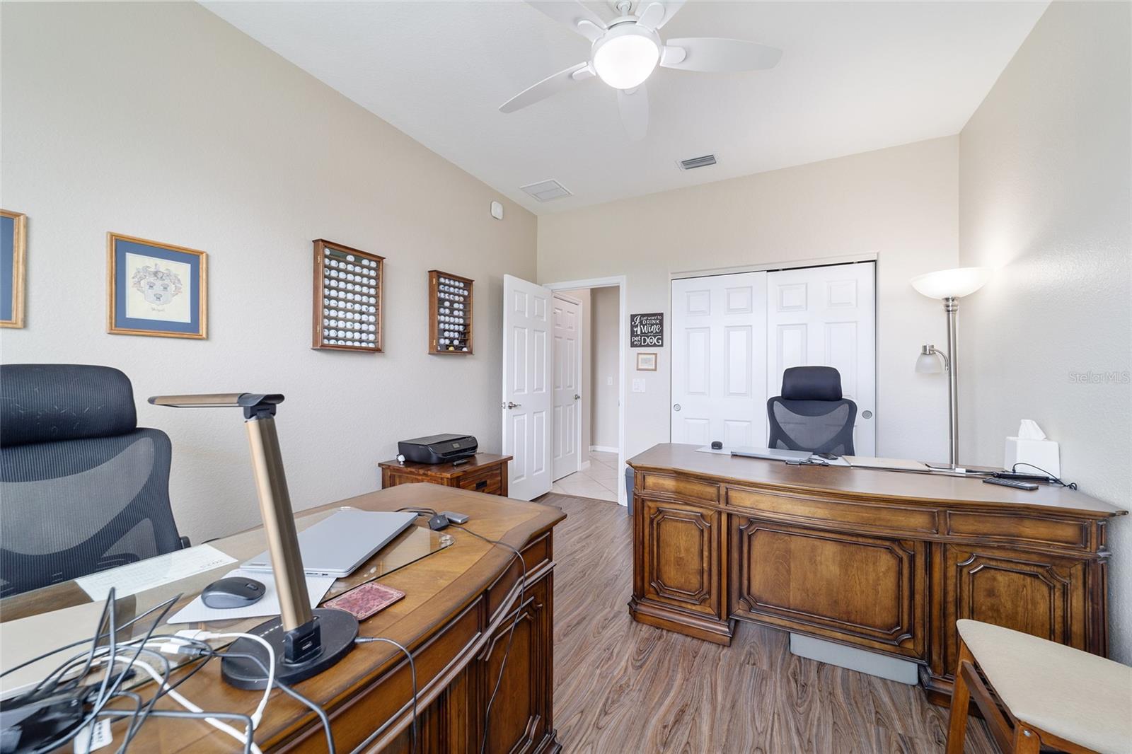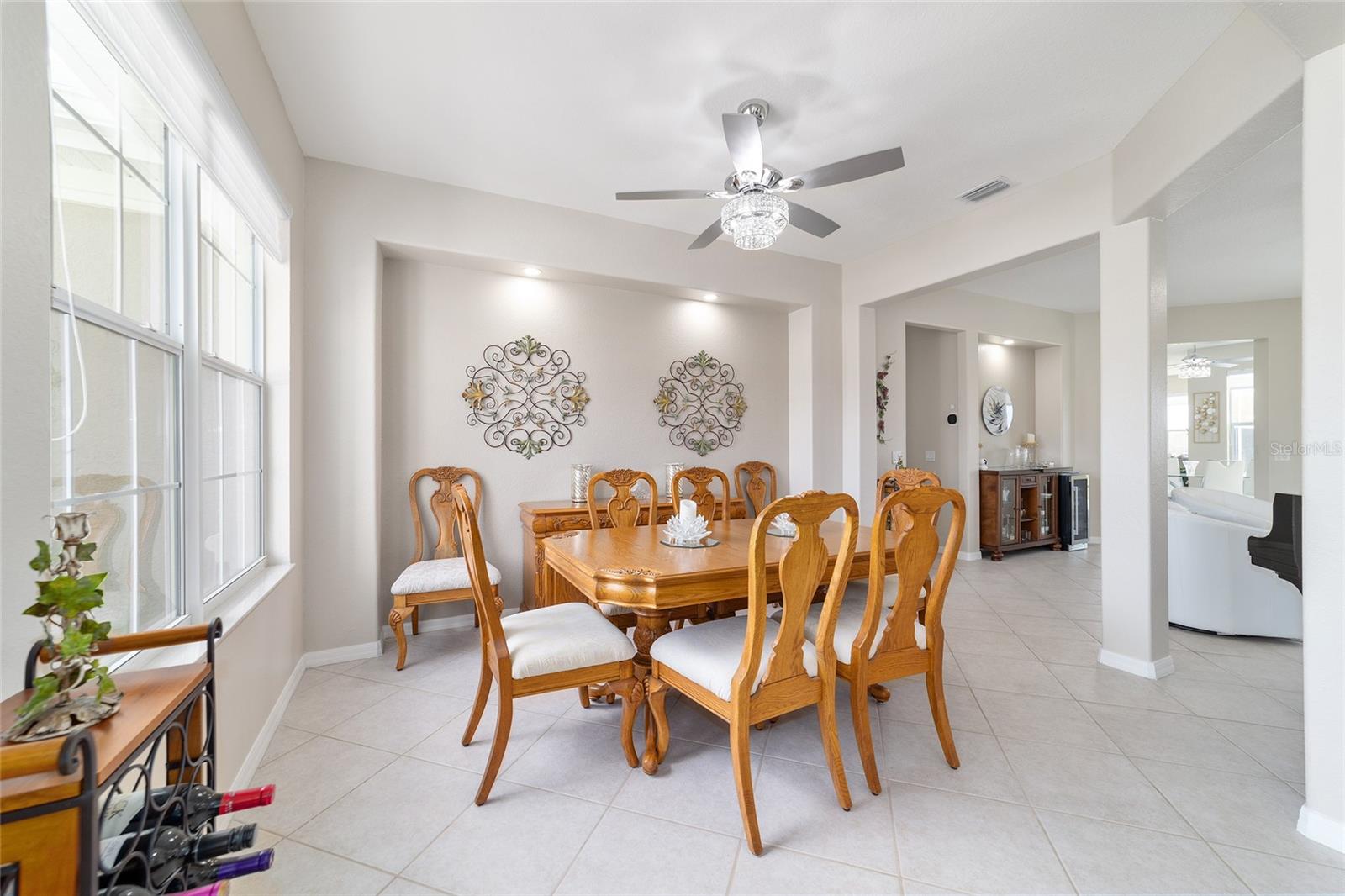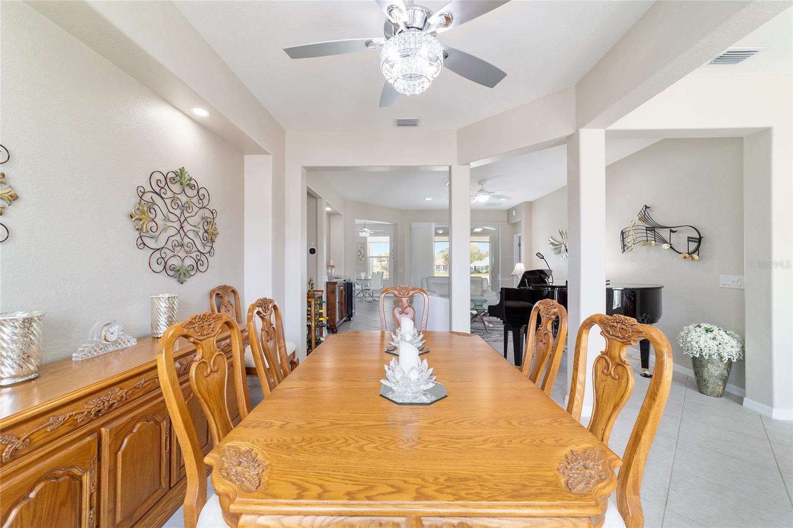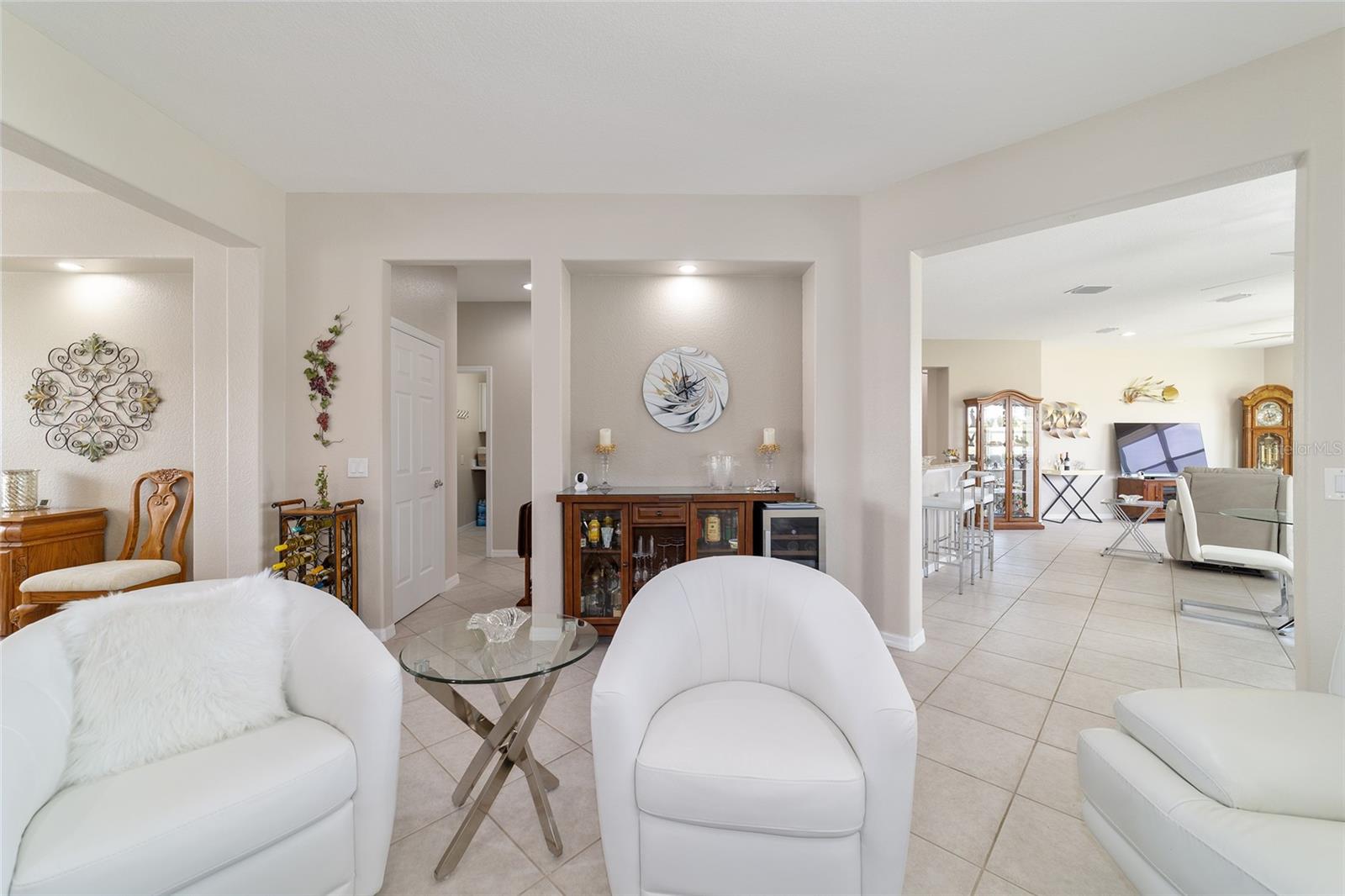 Some homes truly have it all, and this Kingston 3-bedroom, 2-bath home is one of them! A unique property with an unbeatable location just off the 5th green of the Memorial Golf Course, this home offers both stunning views and exceptional privacy. From the moment you step through the leaded glass front doors, the breathtaking golf course vista immediately captures your attention. The interior is equally impressive, featuring ceramic tile throughout, except for the three bedrooms, which boast engineered wood flooring.The dream kitchen is designed for both style and functionality, showcasing granite countertops, a tiled backsplash, top-of-the-line stainless steel appliances, white cabinets with double-rollout drawers, ample recessed lighting, and a solar tube for natural light. The kitchen flows effortlessly into the family room, a perfect spot to relax or enjoy golf course views. The living and dining rooms are enhanced by elegant silhouetted shades, while the family room, living room, and all bedrooms are equipped with fans featuring light packages.The primary suite is a showstopper, extending the entire length of the home and leading to a spacious primary bath with a large separate shower, an oval soaking tub, and raised double vanities. Outdoor living is just as spectacular, with a screened lanai opening to a designer concrete patio, ideal for grilling, soaking up the sun, or watching golfers up close. Recently, the lanai floor and patio received a fresh coat of paint, matching the newly painted designer driveway.The landscaping is professionally designed and meticulously maintained, complementing the home's pristine curb appeal. The garage, extended by 4 feet, also includes a separate golf cart garage. Both the garage and driveway feature a durable epoxy finish. Additional updates include a 5-year-old HVAC system, and to top it off, a brand-new roof was installed April 2025. Don’t miss out on this beautiful, move-in-ready home in a sought-after location! Call today to schedule your private showing.