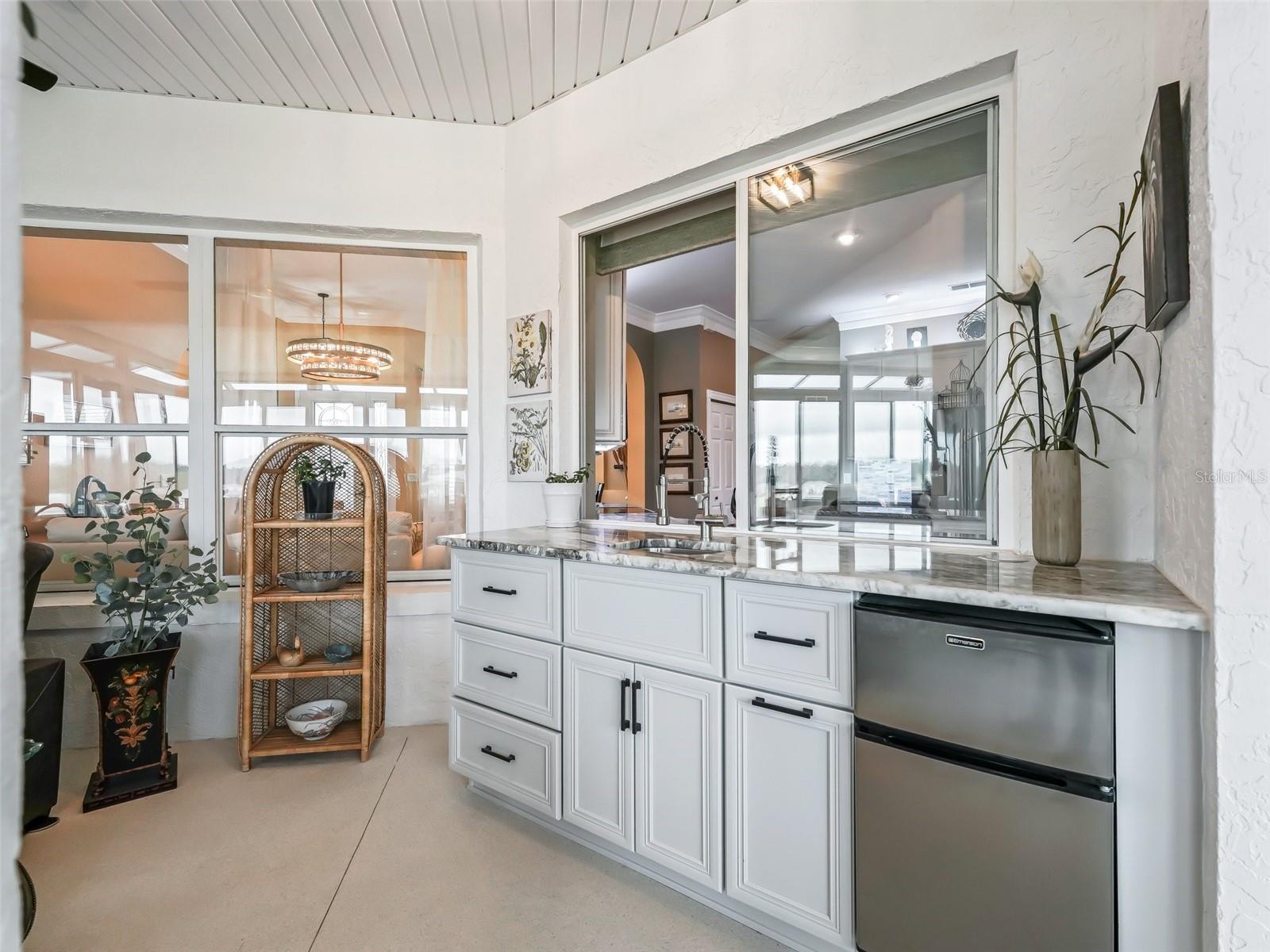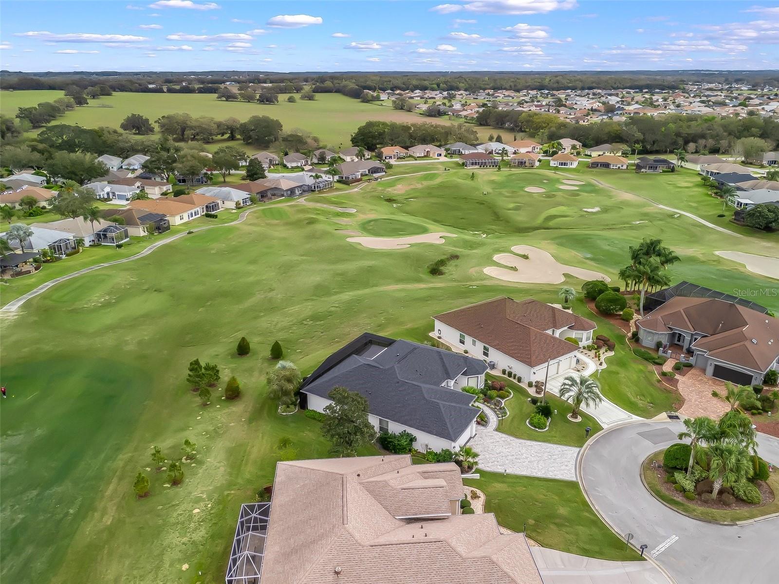 STONECREST is a 55+ Golf Course Community With All The Amenities, 4 Pools, and just a Bridge Away By Golf Cart To The Villages! You will be amazed at the quality and details in this beautiful CONCRETE BLOCK AND STUCCO San Marco Model on the CHAMPIONSHIP GOLF COURSE. Nestled in a private cul de sac the curb appeal will impress you the moment you drive up and onto the expanded paved driveway. Professionally landscaped with easy maintenance this tropical paradise prepares you for a breathtaking experience. Enter through the leaded glass door and your eye immediately catches the view of the golf course and the light and bright atmosphere of the home. New and newer describes this home upkeep, and renovations. Let's begin outside with the pavers in the driveway and walkway, exterior paint and lighting, and landscaping and the ROOF 2020, ENCLOSED LANAI WITH GLASS WINDOWS 2022, BIRDCAGE SCREEN PORCH WITH PAVERS 2024, NEW KITCHEN CABINETS, GRANITE, SINK, LIGHTING UPPER AND LOWER IN 2023, INSIDE PAINT, RESURFACE WOOD FLOORING 2023, NEW GUEST SHOWER 2023, 7 NEW WINDOWS 2018 AND 2024, NEW FANS AND LIGHTING 2023, PLANTATION SHUTTERS IN DINING ROOM AND PRIMARY BATHROOM 2023, CROWN MOLDING, NEW WET BAR WITH GRANITE AND SINK IN ENCLOSED LANAI IN 2024, LANAI UNDER HEAT AND AIR WITH MINI SPLIT (437 SQ FT), INTERIOR OF HOME ( 2071 SQ FT), TOTAL SQ FT UNDER HEAT AND AIR IS 2508 SQ FT. THE SOARING 12' AND 10' CEILINGS ENHANCE THE CHARACTER OF THIS PREMIER LAY OUT. THE FLOORING IN THE GARAGE AND THE ENCLOSED LANAI IS DESIGNER EXPOXY. The additions and improvements of this home are over 180,000. The seller spared no expense to details on the improvements. Truly, one of a kind home and it is move in ready. Stonecrest is a 55+ gated golf course community with all the amenities, pools, pickleball courts, softball, 18 hole championship golf course, Broad Stripes Golf & Social Club and over 80 different clubs to join! Stonecrest is just a bridge away by golf cart to the Villages. It is a community with Private Roads and 24 Hour Security! As a private gated golf course community, you can expect a high level of privacy and security. Overall, this home offers a combination of Tremendous Outdoor Space, luxurious features, a desirable location, and a secure community setting. A WONDERFUL LIFESTYLE AWAITS YOU IN STONECREST!