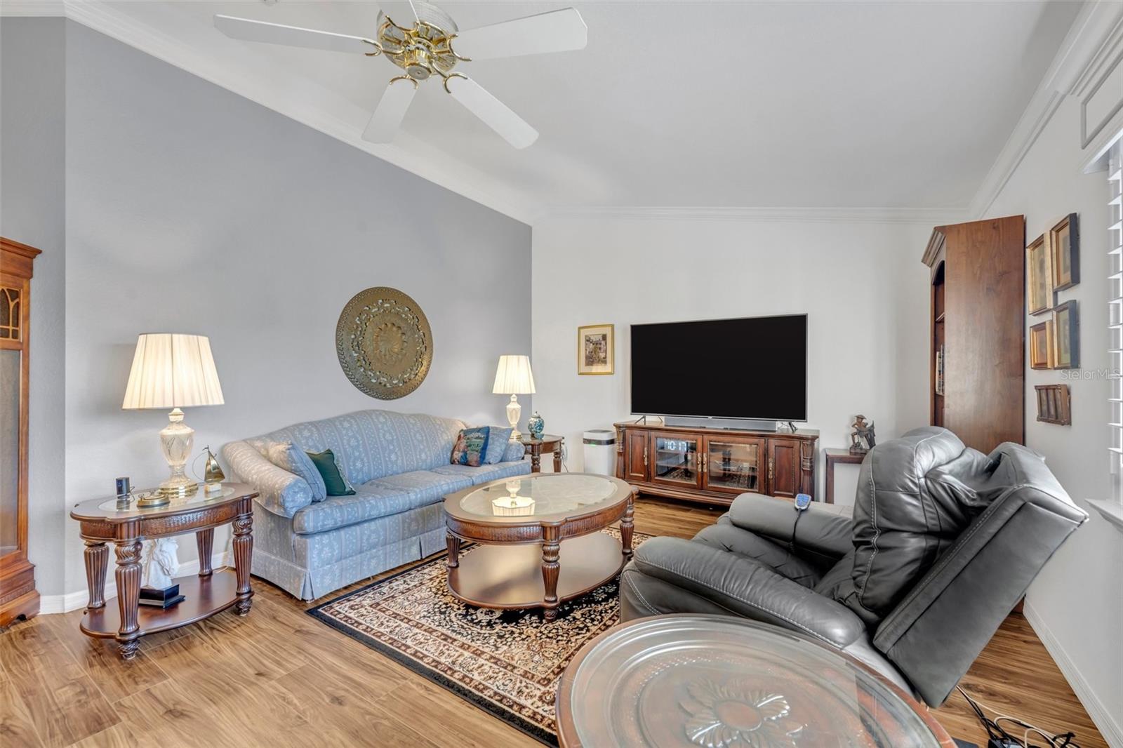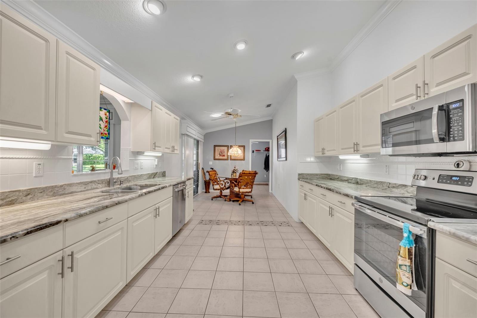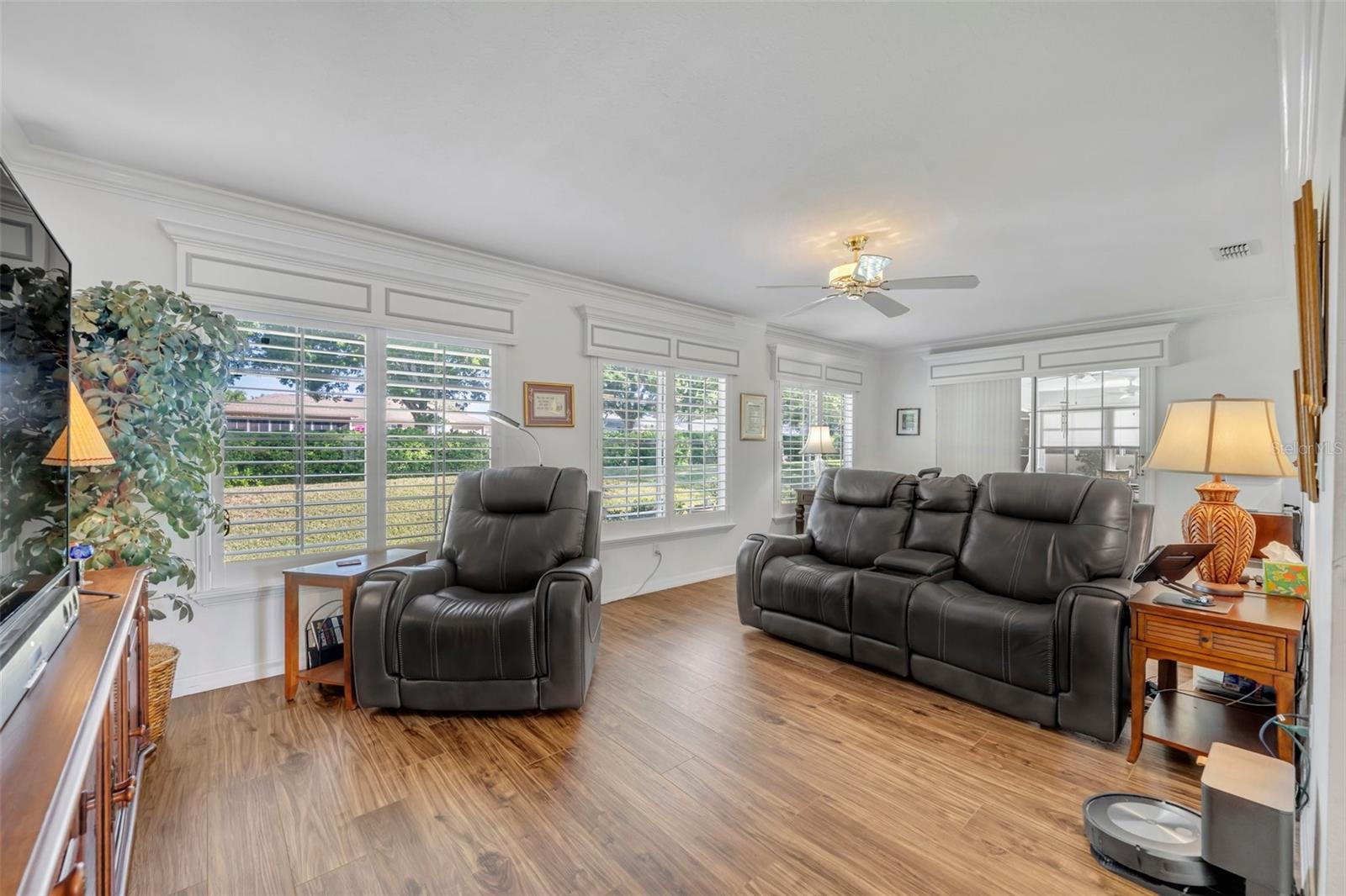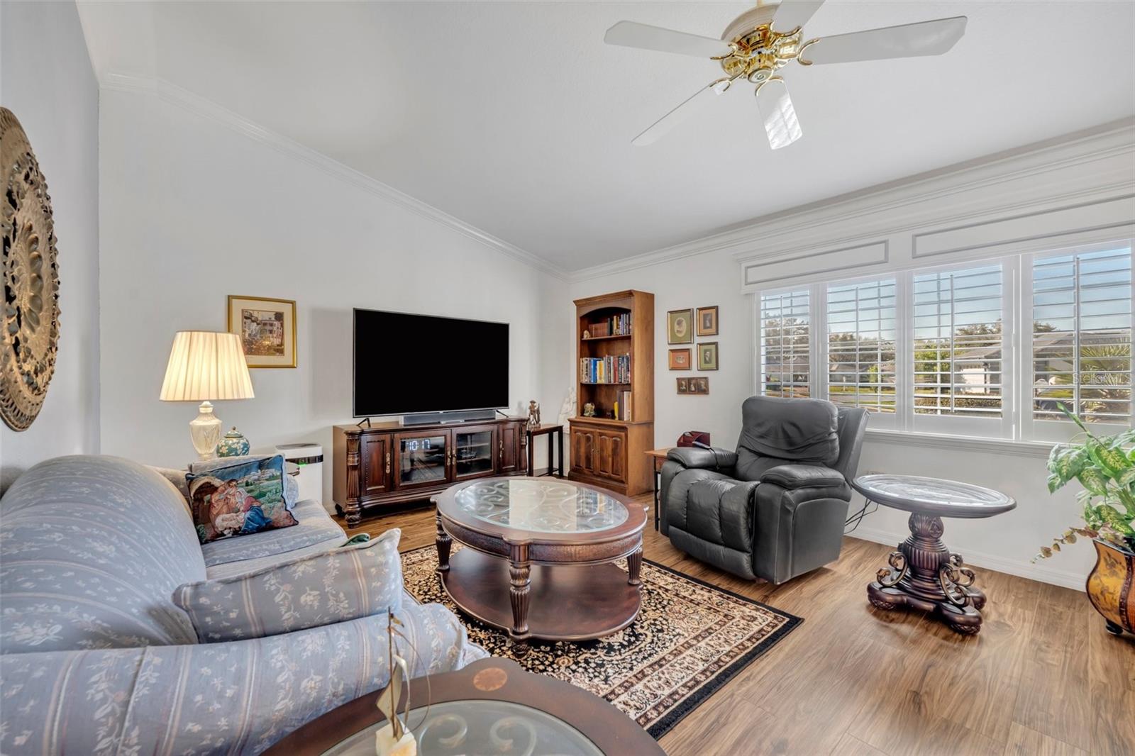Elegant & Upgraded Palm II Extended in Spruce Creek Golf & Country Club! Discover the perfect blend of luxury, comfort, and convenience in this beautifully upgraded 2-bedroom, 2-bathroom Palm II Extended model in the highly sought-after Spruce Creek Golf & Country Club—a premier 55+ gated community with top-tier amenities and 24-hour security. Boasting 1,942 sq. ft. of thoughtfully designed living space, this home shines with modern upgrades and timeless elegance. The updated kitchen features granite countertops, complemented by crown molding and plantation shutters throughout. Enjoy the durability and beauty of luxury vinyl flooring, a freshly painted interior, and spacious bedrooms designed for relaxation. The flex room offers the perfect space for a home office, hobby room, or den. Step into the 4-seasons lanai/patio—the perfect place to unwind and enjoy the Florida lifestyle year-round. Plus, with a 2014 roof, brand-new 2024 HVAC and water heater, this home is move-in ready and built for peace of mind. Beyond the home, experience resort-style living with incredible amenities, including a fitness center, clubhouse, pools, hot tubs, pickleball & tennis courts, a dog park, and on-site dining. The community also offers RV and boat storage for lease and convenient trash pickup three times a week. Located just minutes from The Villages, you'll have access to an array of shopping, dining, and entertainment options. Don’t miss this incredible opportunity—schedule your private showing today!