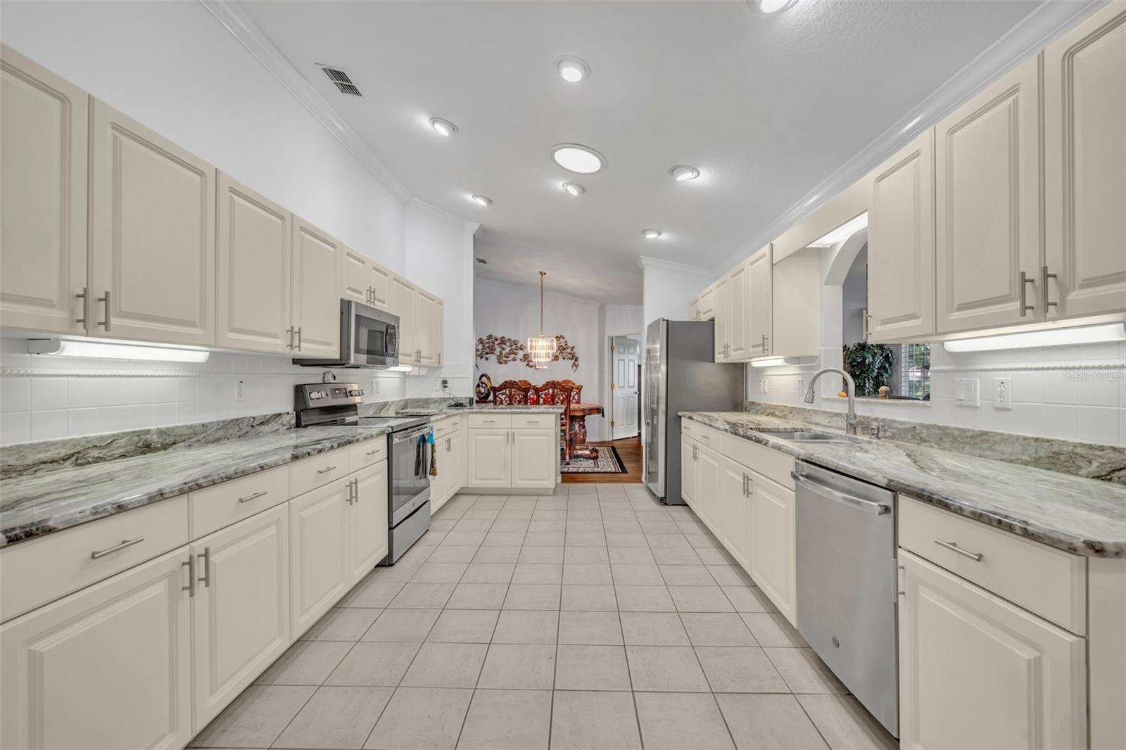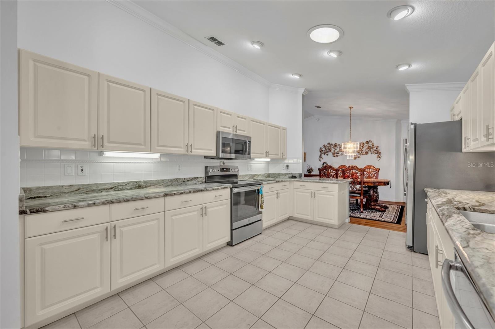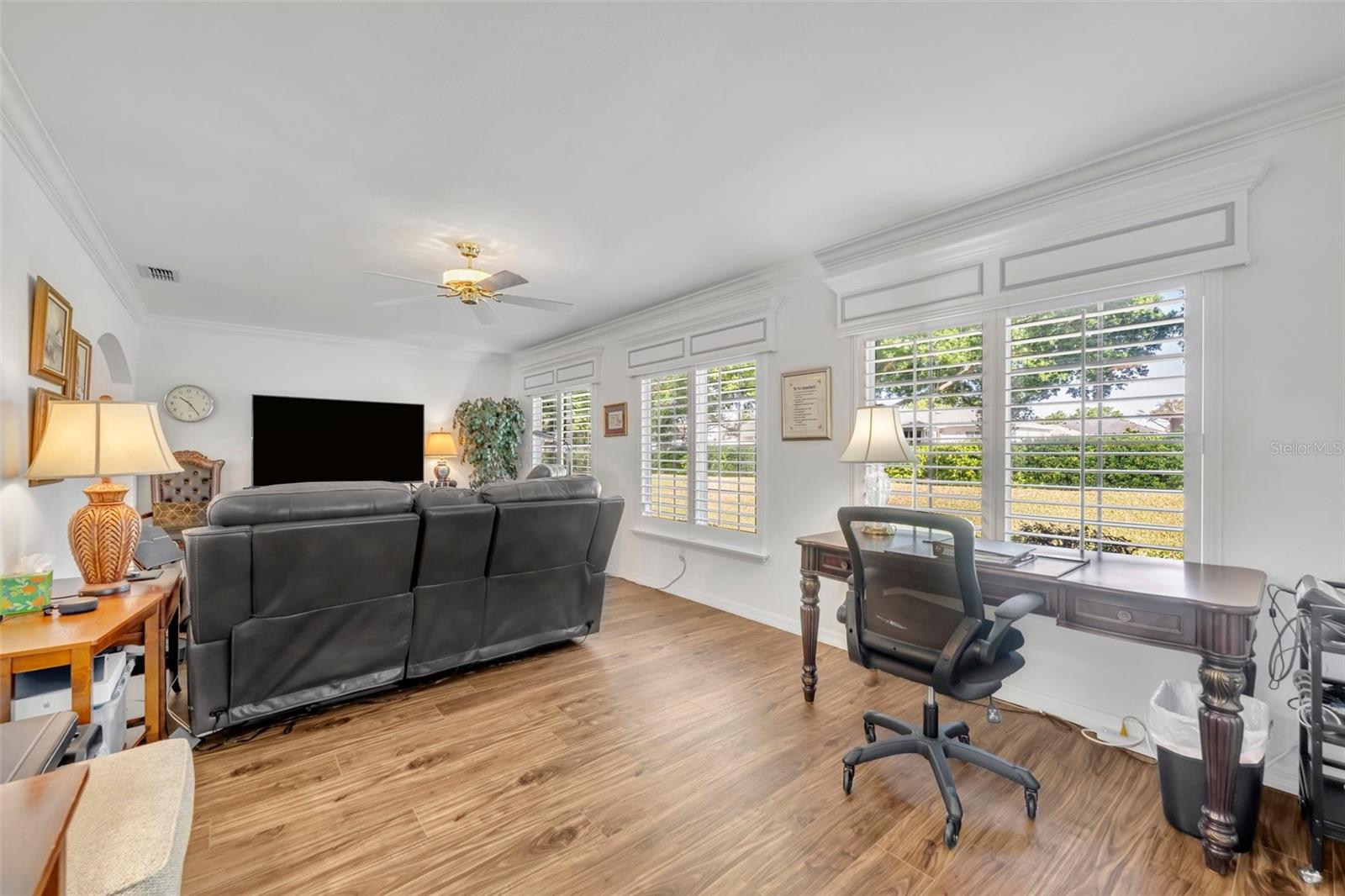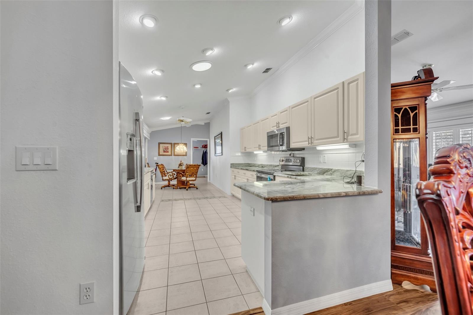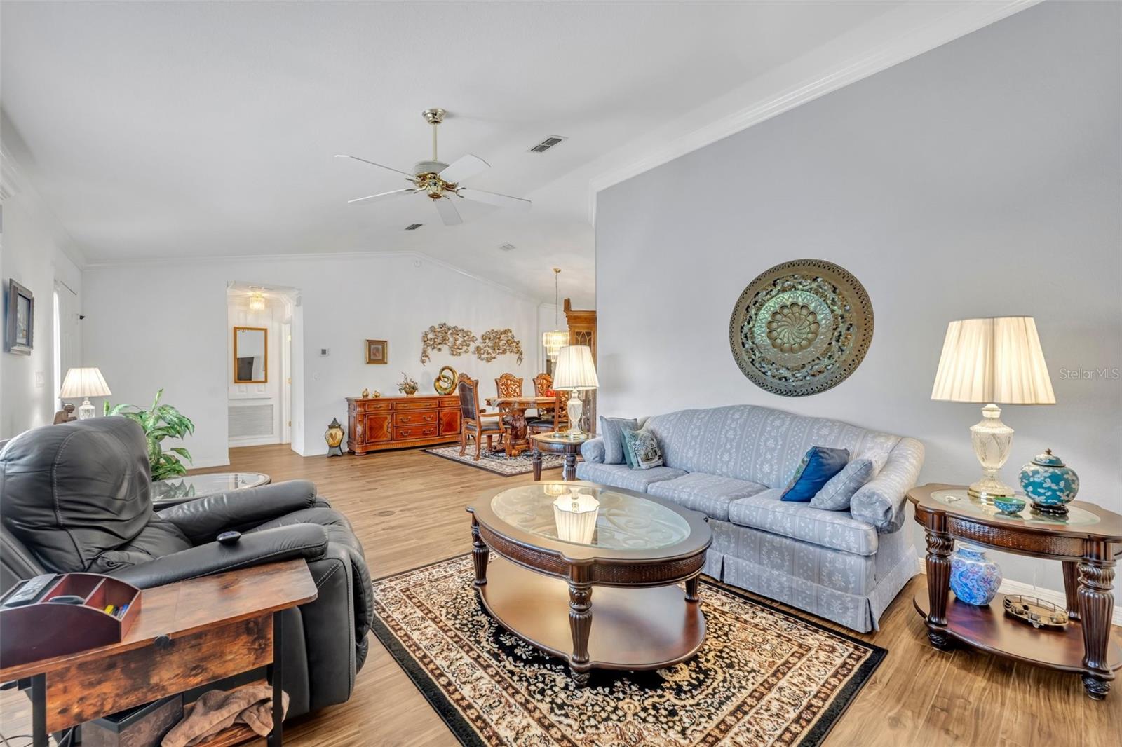 Elegant & Upgraded Palm II Extended in Spruce Creek Golf & Country Club! Discover the perfect blend of luxury, comfort, and convenience in this beautifully upgraded 2-bedroom, 2-bathroom Palm II Extended model in the highly sought-after Spruce Creek Golf & Country Club—a premier 55+ gated community with top-tier amenities and 24-hour security. Boasting 1,942 sq. ft. of thoughtfully designed living space, this home shines with modern upgrades and timeless elegance. The updated kitchen features granite countertops, complemented by crown molding and plantation shutters throughout. Enjoy the durability and beauty of luxury vinyl flooring, a freshly painted interior, and spacious bedrooms designed for relaxation. The flex room offers the perfect space for a home office, hobby room, or den. Step into the 4-seasons lanai/patio—the perfect place to unwind and enjoy the Florida lifestyle year-round. Plus, with a 2014 roof, brand-new 2024 HVAC and water heater, this home is move-in ready and built for peace of mind. Beyond the home, experience resort-style living with incredible amenities, including a fitness center, clubhouse, pools, hot tubs, pickleball & tennis courts, a dog park, and on-site dining. The community also offers RV and boat storage for lease and convenient trash pickup three times a week. Located just minutes from The Villages, you'll have access to an array of shopping, dining, and entertainment options. Don’t miss this incredible opportunity—schedule your private showing today!