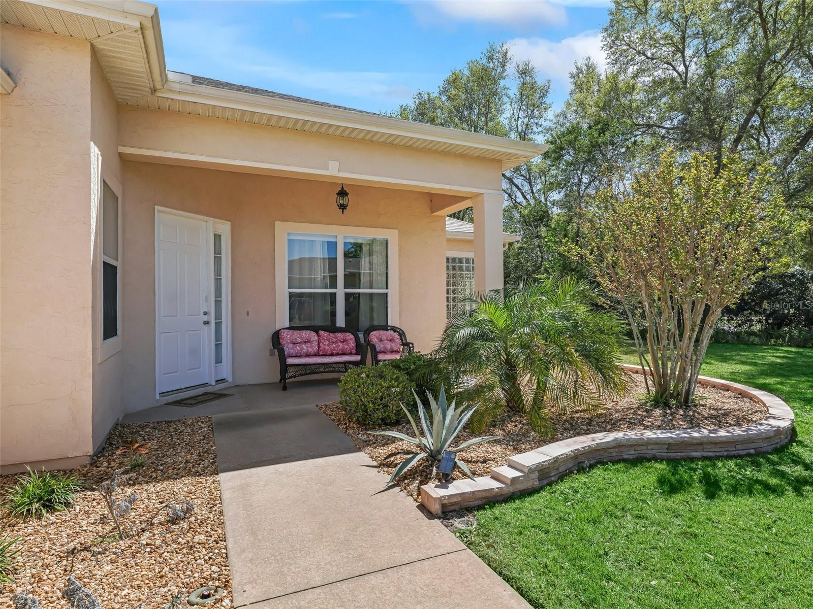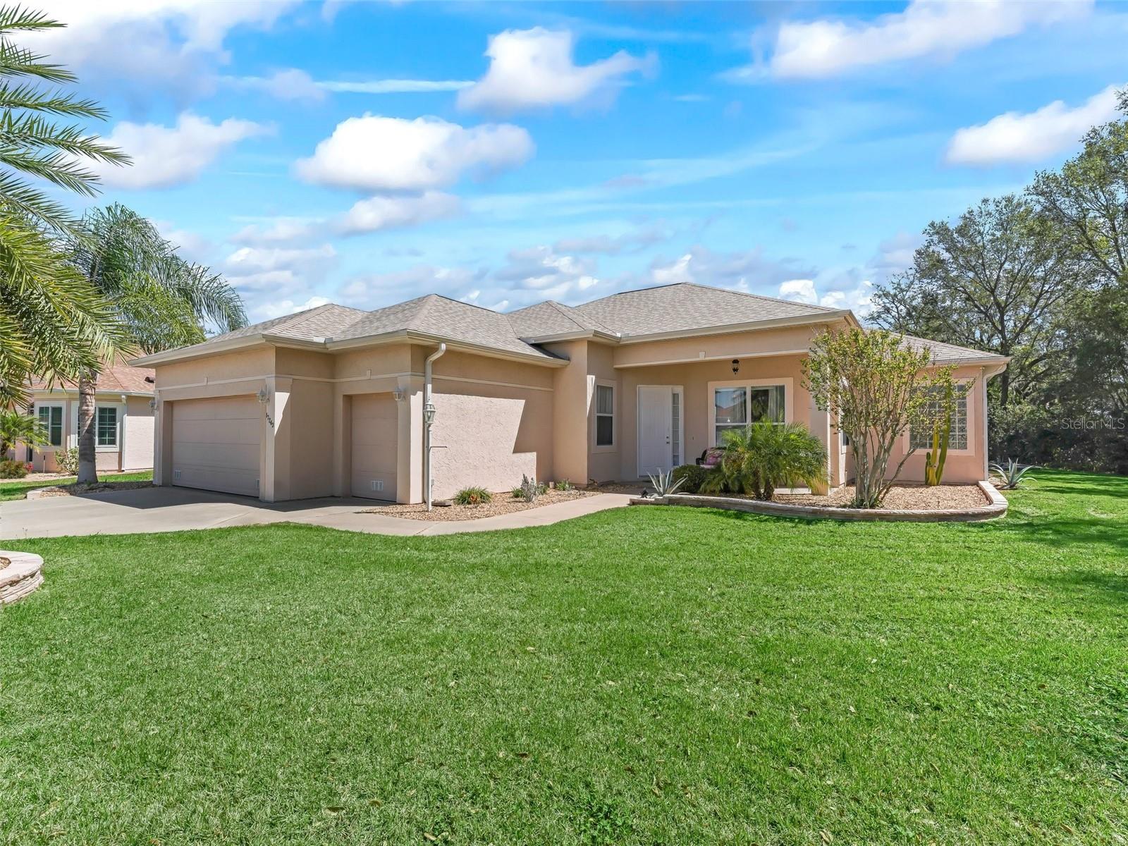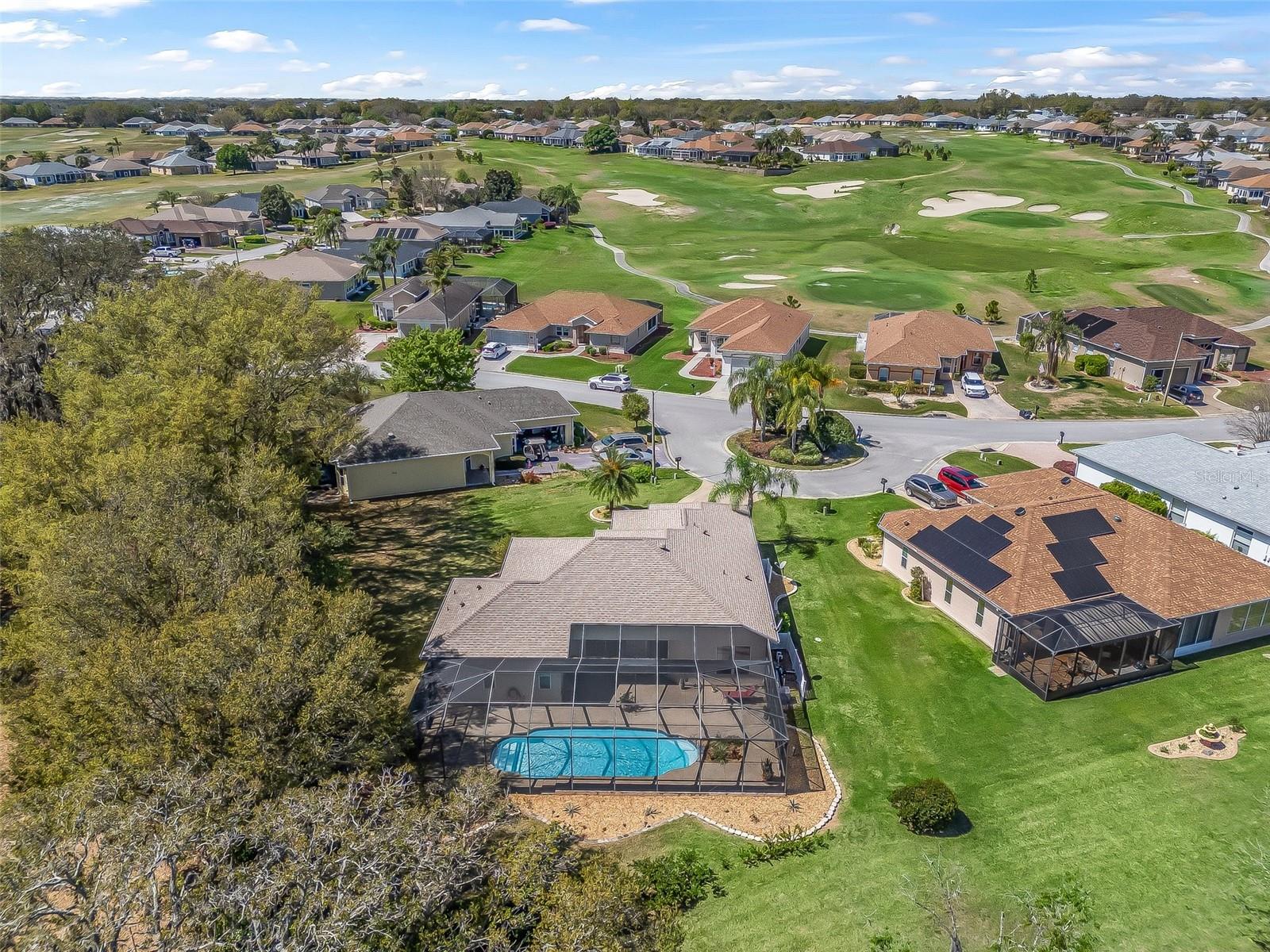 STONECREST 55+GOLF COURSE COMMUNITY WITH PRIVATE/SECURITY GATED ENTRANCE. 4 POOLS AND MULTIPLE PICKBALL COURTS, SOFTBALL TEAM FOR MEN AND WOMEN AND OVER 90 CLUBS TO JOIN. ONLY A GOLF CART BRIDGE AWAY FROM THE VILLAGES. THIS TURNKEY POOL HOME BOASTS 12 AND 10 FT CEILINGS, 3 BEDROOM 2 BATH SANIBEL MODEL, SPLIT PLAN, OPEN AND SPACIOUS AND A VIEW OF THE COUNTRY WITH COWS INCLUDED! TRULY MAGNIFICENT VIEW FROM THIS HOME NESTELD IN A CUL DE SAC. SITTING OUT ON YOUR LANAI LISTENING TO THE CASCADING WATERFALL FROM YOUR POOL AS YOU GAZE OUT TO A PASTURE OF MAGNIFICENT BEAUTY. YOU WILL PINCH YOURSELF AT YOUR GOOD FORTUNE! OVERSIZED IRREGULAR LOT WITH PROFESSIONAL LANDSCAPING. KITCHEN HAS 42' CABINETS AND GRANITE COUNTER TOPS. SPLIT BEDROOM PLAN. TWO CAR AND GOLF CART GARAGES. 8' SLIDING GLASS DOORS TO THE LANAI AND BIRD CAGE. ROOF NEW IN 2022 AND A/C NEW IN 2023. PRIMARY EN SUITE WITH HIS AND HER VANITY, TUB AND SHOWER AND HUGE WALK IN CLOSET. LIVING ROOM, DINING ROOM AND BREAKFAST NOOK. OPEN KITCHEN TO BOTH LIVING ROOM AND BREAKFAST NOOK. VIEW OF POOL FROM THE MOMENT YOU WALK INTO THIS HOME. A MUST SEE!