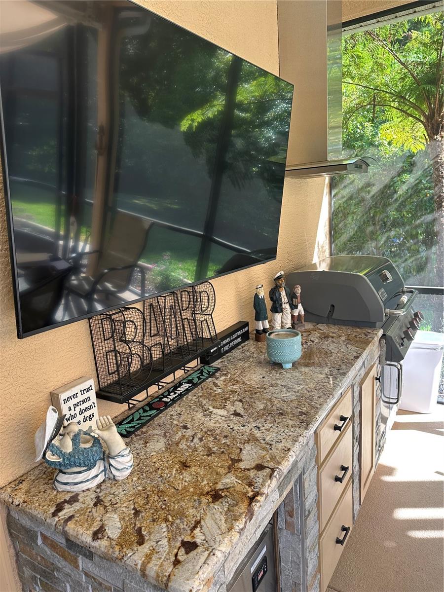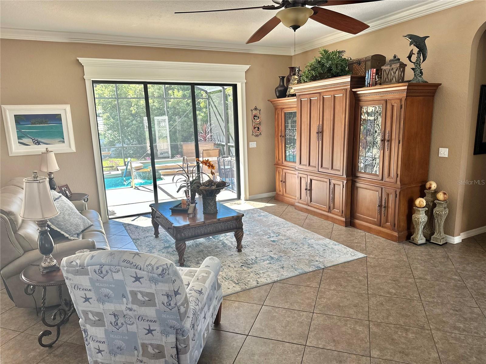 GORGEOUS POOL home located in the very desirable Stonecrest 55+ Golf and Country Club Community. This 3/2 Birch Model custom home has been completely renovated with a gorgeous new kitchen featuring all new cabinets, quartz counter tops, new appliances and fixtures. This open floor plan is PERFECT for entertaining and the third bedroom with Murphy bed can double as a office or flex room. The moment you step though the front door you will notice the gorgeous pool area with VERY PRIVATE semi-fenced yard that has been beautifully landscaped. Relax while soaking in your private swimming pool and hot tub that is heated by propane or while entertaining friends and family in your outdoor lanai with new decking, covered outdoor kitchen area with ice maker and retractable awning for added shade. The master suite is spectacular with new cabinetry, quartz counter tops, 2 person soaking tub, over-sized walk-in shower, separate water closet and door leading to the outdoor pool and spa area. The home is lovely and low maintenance with ceramic tile throughout! The oversized garage has added built ins and a additional GOLF CART GARAGE! Stonecrest is more than just a place to live....its a lifestyle with shopping, dining and entertainment all accessible by golf cart as well as just minutes from The Villages town Square at Spanish Springs. Stone crest offers a 18 hole championship golf course with the community having over 90 clubs to join, lighted pickle ball courts and SO much more!