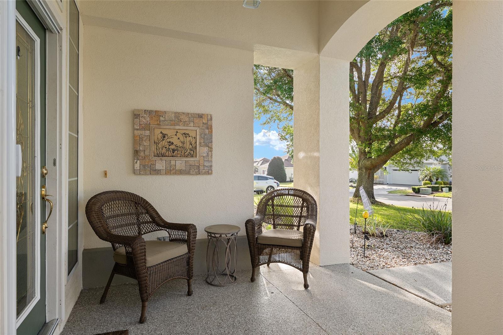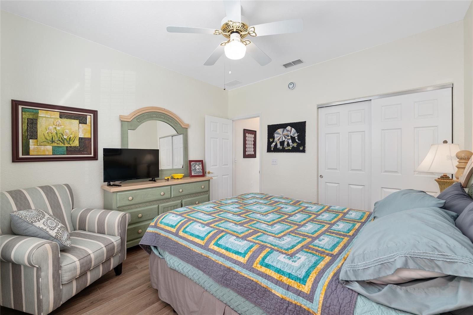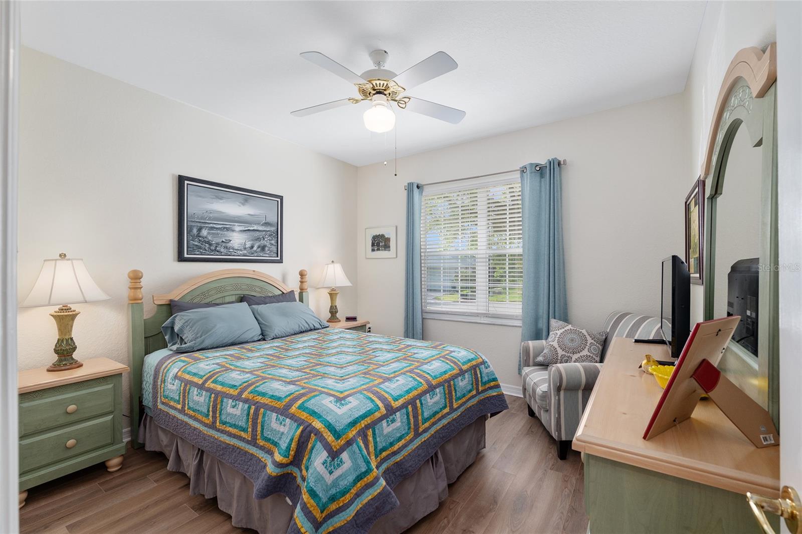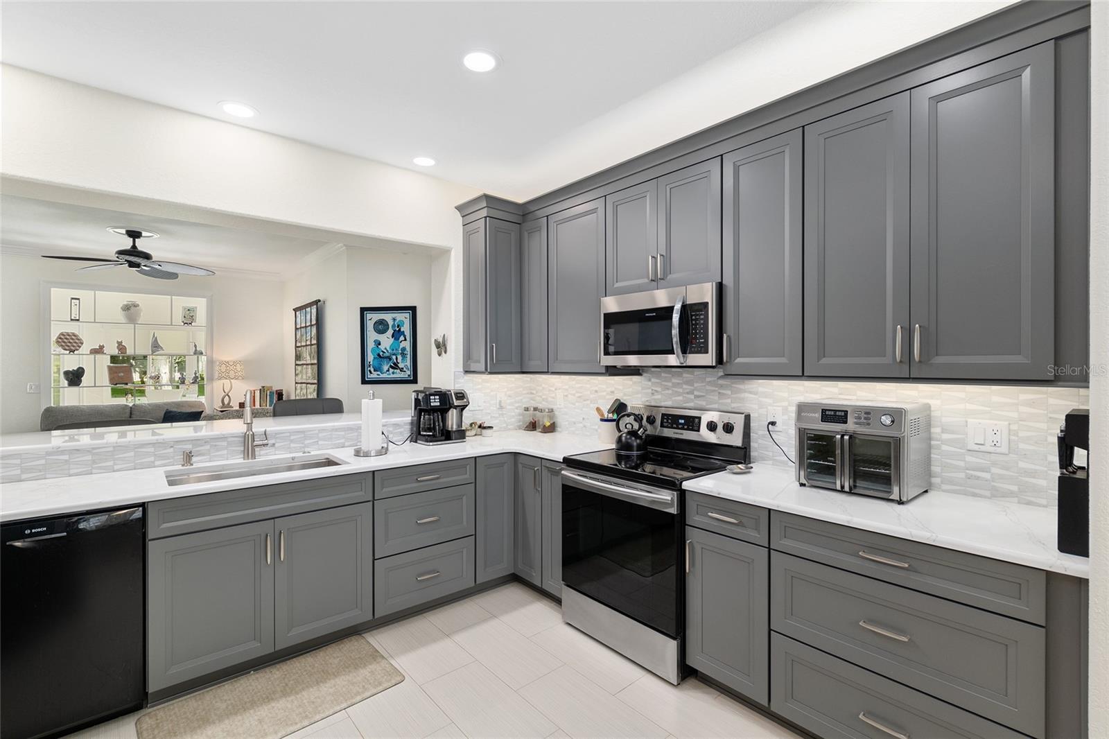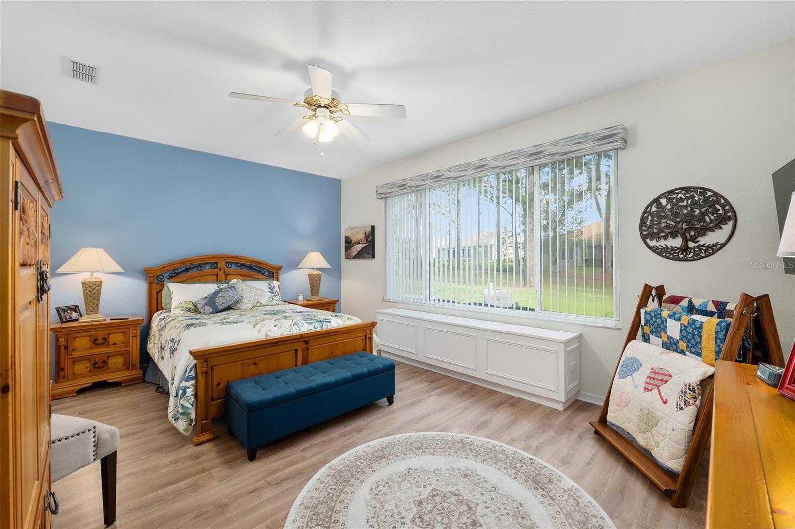 One-of-a-Kind Sanibel Model on Private Greenbelt – Must See! Welcome to this beautifully updated Sanibel model, perfectly situated on a serene greenbelt lot in the sought-after community of Del Webb Spruce Creek. This 2-bedroom, 2-bath home with a den has been thoughtfully remodeled with high-end finishes and a designer's touch. Step inside to find engineered wood flooring throughout, with custom tile in the bathrooms. The heart of the home is a gourmet kitchen, boasting quartz countertops, custom cabinetry with upgraded hardware, stainless steel appliances, and a stunning tile floor. Crown molding highlights the spacious living and dining area, which opens into a reimagined Florida Room—now under heat and air—with glass windows, a raised engineered wood floor that seamlessly flows from the great room, see-through walls, and a wide opening created by the removal of the former sliding glass doors. It’s the perfect space to relax or entertain year-roundThe den/studio features a custom Murphy bed with built-in shelving, providing flexible guest space when needed. The guest bathroom has been fully remodeled with a new custom vanity and flooring, ideally positioned between the second bedroom and den for privacy. The primary suite is located on the opposite side of the home, offering bay windows that frame tranquil views of the tall pines and greenbelt beyond. The utility room includes custom cabinets and a workspace, perfect for hobbies or organization. Enjoy a 27-foot extended garage with a remote-controlled screen, allowing fresh air to circulate while maintaining privacy. Outdoors, a large patio invites you to unwind, grill, enjoy cocktails, or read—all while soaking in peaceful greenbelt views. Recent updates include a new roof (2018) and HVAC system (2020). Del Webb Spruce Creek offers resort-style amenities including 36 holes of golf, 10 pickleball courts, tennis courts, three pools (including one indoors), and countless clubs and activities to suit every interest. This one-of-a-kind home won’t last long—schedule your private tour today!