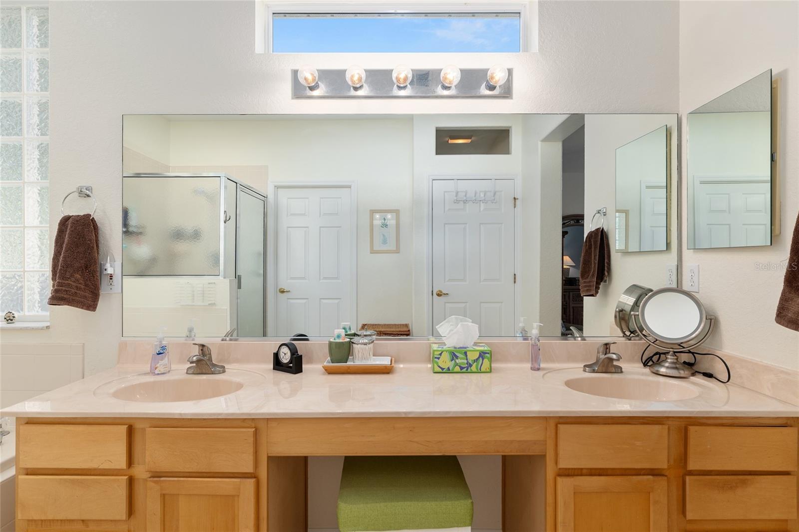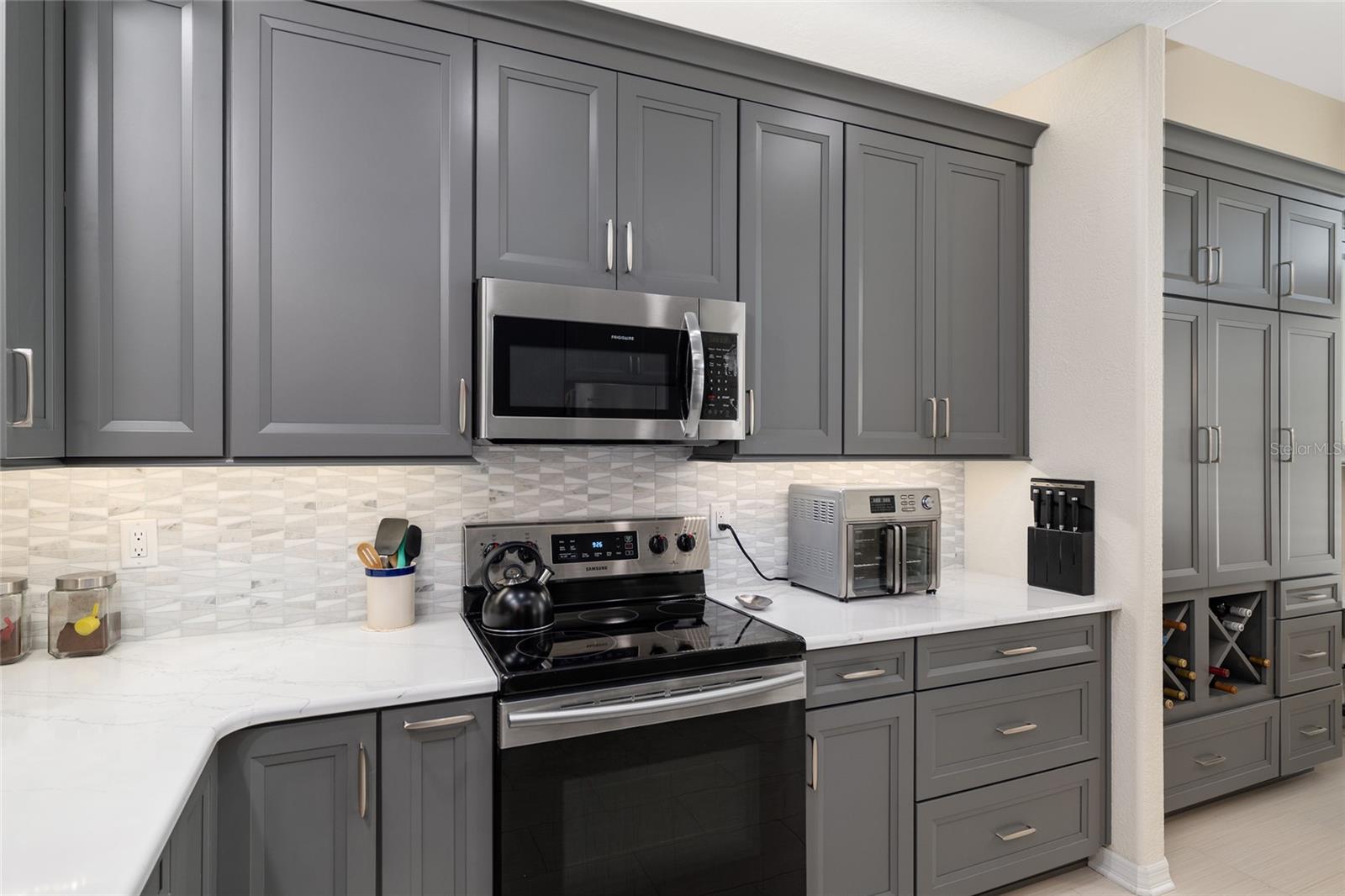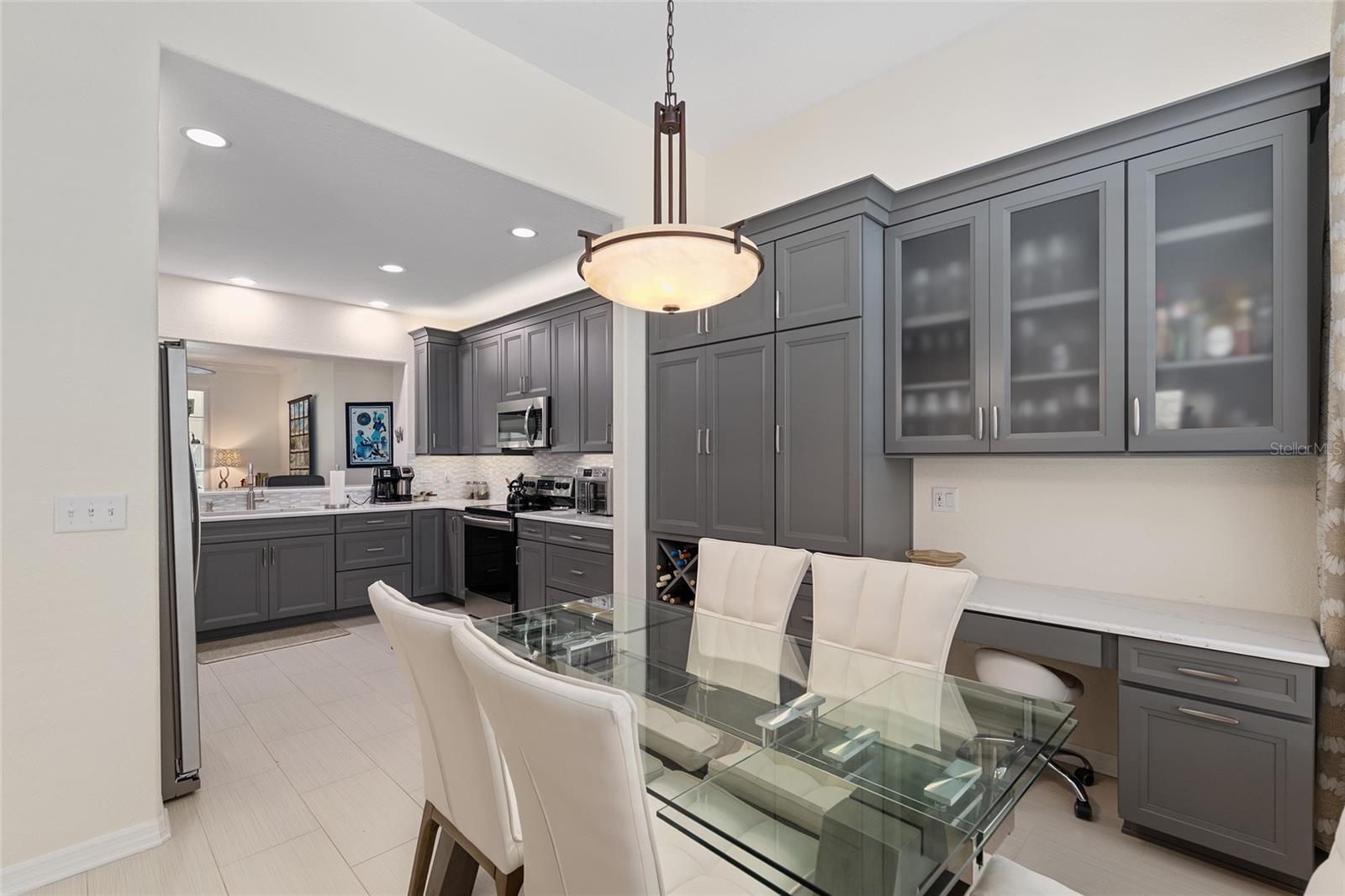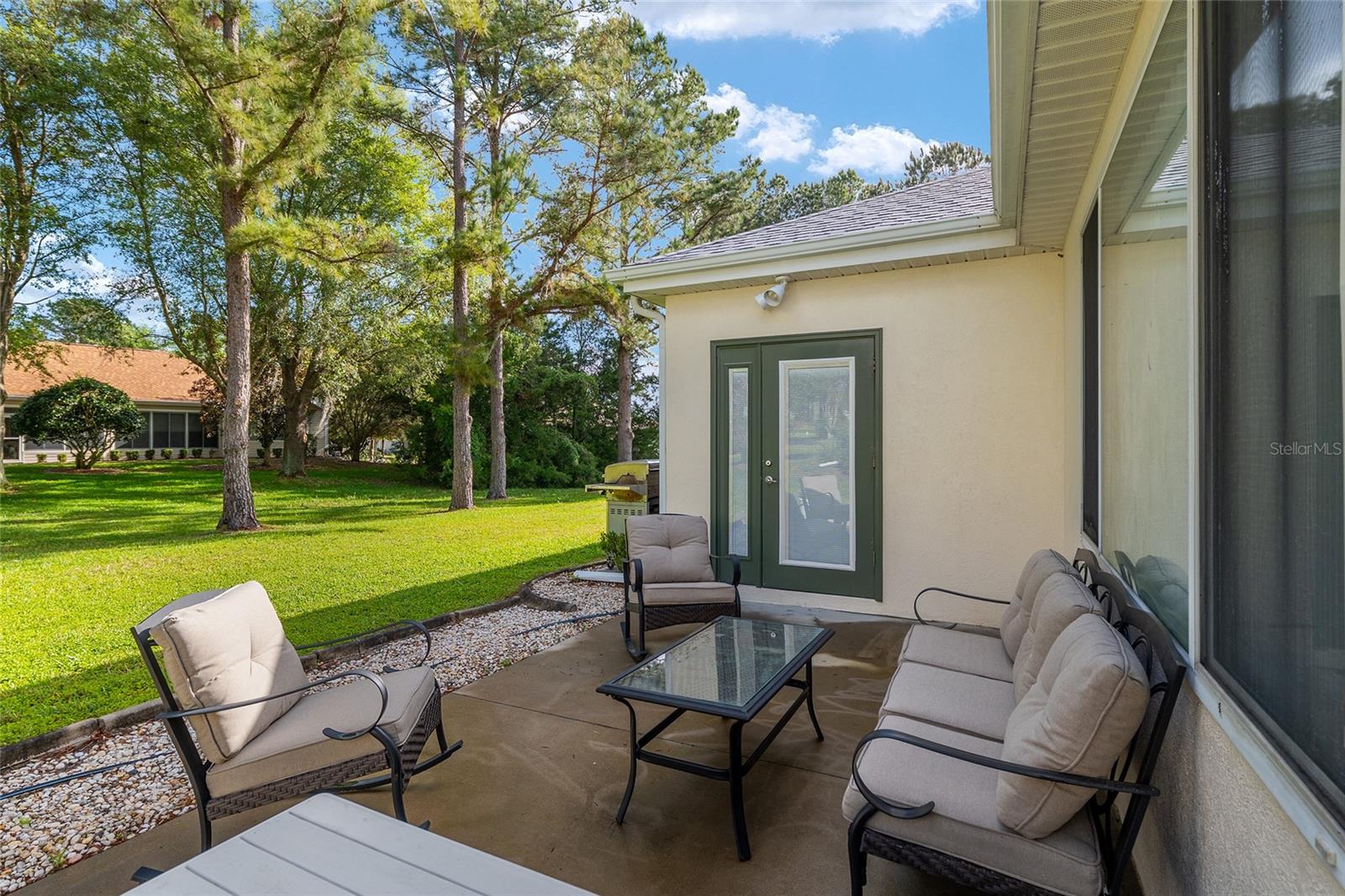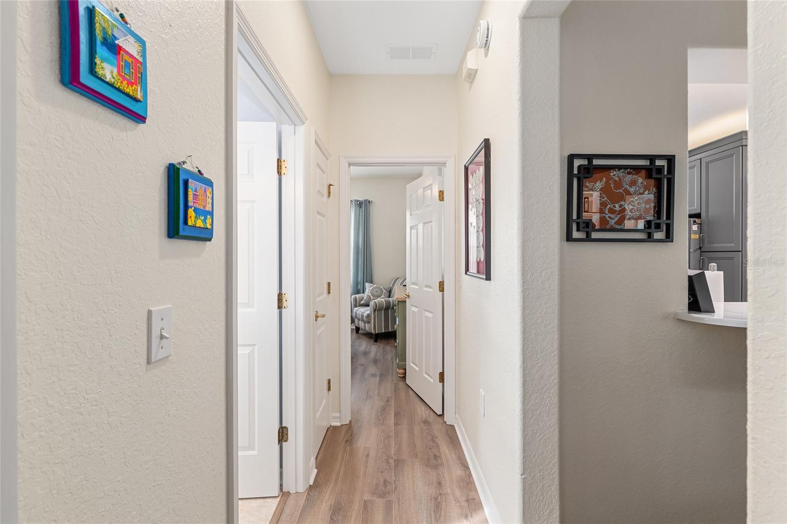 One-of-a-Kind Sanibel Model on Private Greenbelt – Must See! Welcome to this beautifully updated Sanibel model, perfectly situated on a serene greenbelt lot in the sought-after community of Del Webb Spruce Creek. This 2-bedroom, 2-bath home with a den has been thoughtfully remodeled with high-end finishes and a designer's touch. Step inside to find engineered wood flooring throughout, with custom tile in the bathrooms. The heart of the home is a gourmet kitchen, boasting quartz countertops, custom cabinetry with upgraded hardware, stainless steel appliances, and a stunning tile floor. Crown molding highlights the spacious living and dining area, which opens into a reimagined Florida Room—now under heat and air—with glass windows, a raised engineered wood floor that seamlessly flows from the great room, see-through walls, and a wide opening created by the removal of the former sliding glass doors. It’s the perfect space to relax or entertain year-roundThe den/studio features a custom Murphy bed with built-in shelving, providing flexible guest space when needed. The guest bathroom has been fully remodeled with a new custom vanity and flooring, ideally positioned between the second bedroom and den for privacy. The primary suite is located on the opposite side of the home, offering bay windows that frame tranquil views of the tall pines and greenbelt beyond. The utility room includes custom cabinets and a workspace, perfect for hobbies or organization. Enjoy a 27-foot extended garage with a remote-controlled screen, allowing fresh air to circulate while maintaining privacy. Outdoors, a large patio invites you to unwind, grill, enjoy cocktails, or read—all while soaking in peaceful greenbelt views. Recent updates include a new roof (2018) and HVAC system (2020). Del Webb Spruce Creek offers resort-style amenities including 36 holes of golf, 10 pickleball courts, tennis courts, three pools (including one indoors), and countless clubs and activities to suit every interest. This one-of-a-kind home won’t last long—schedule your private tour today!