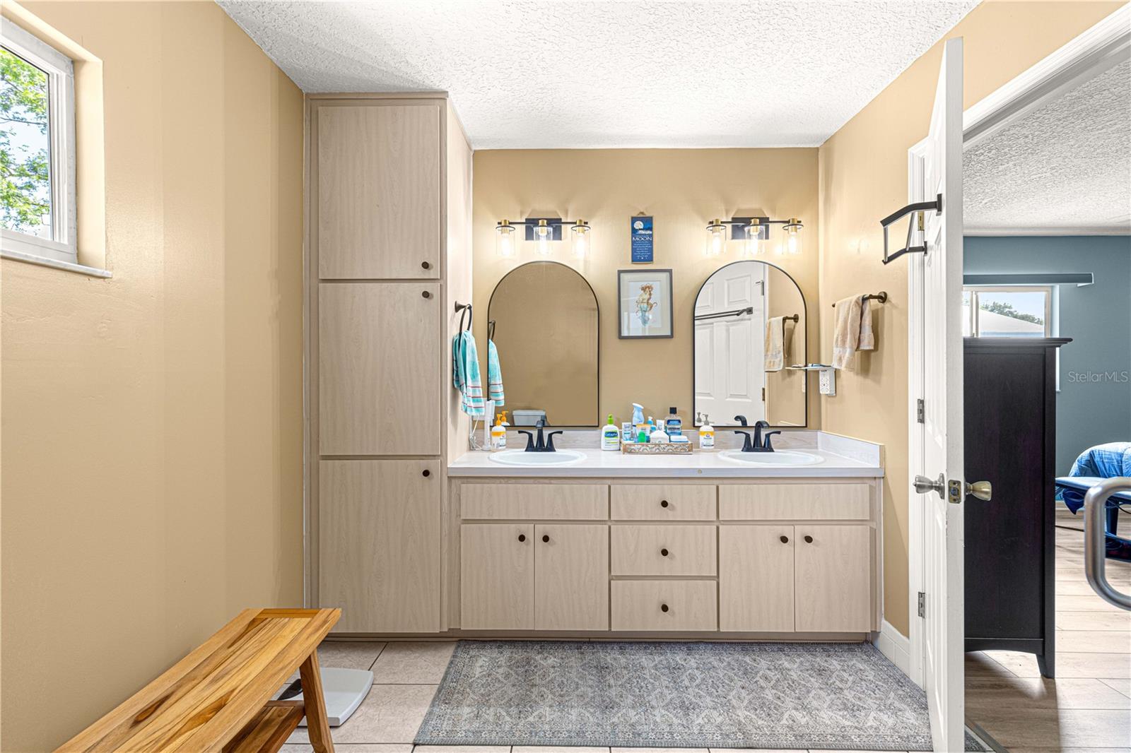 This spacious and updated home is available for third Bedroom as an office. This Bedroom has arched doorway into dining room and great for an office or Media area. The home also has an open feel with breakfast bar and plenty of cabinet area. New flooring has also been installed. There is an open and bright Florida room inside and a patio out. Stainless appliances and breakfast bar and extra storage make this a great kitchen for cooking and entertaining. Designer backsplash and neutral counter top off this kitchen. The lanai or Florida Room operates on it's own split zone for UV efficient air cleaner. The updated tile master bath includes a shower with heavy duty safety glass and sit down bench. There is a whole house water filtration system Roof replace in 2012. Location is toward the back of community with a retention pond near and great natural walking trail for those long and/or short afternoon walk.