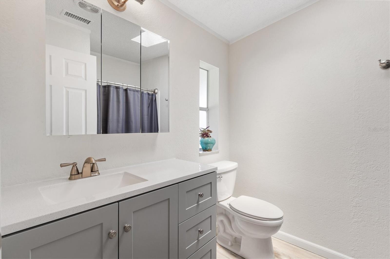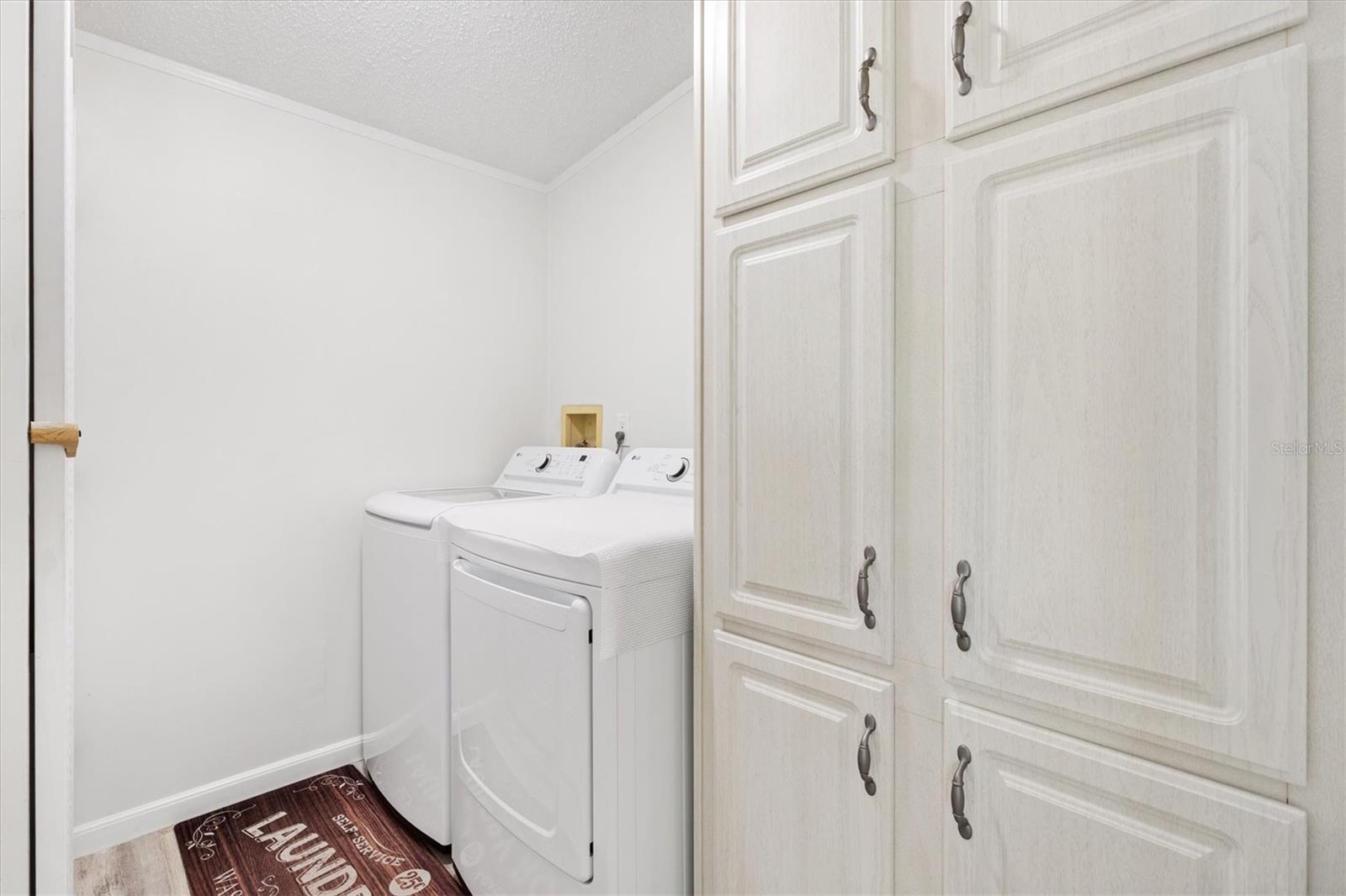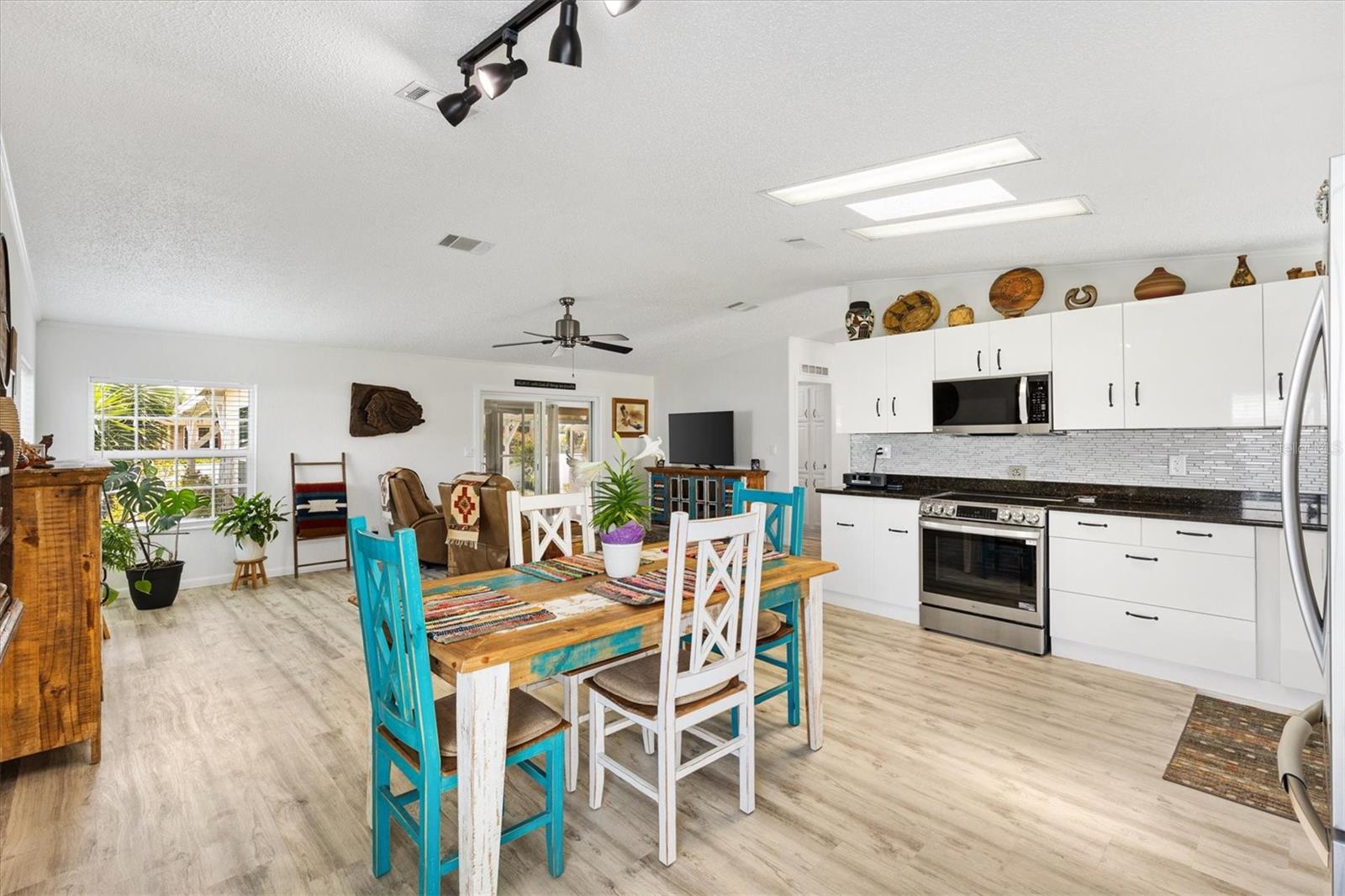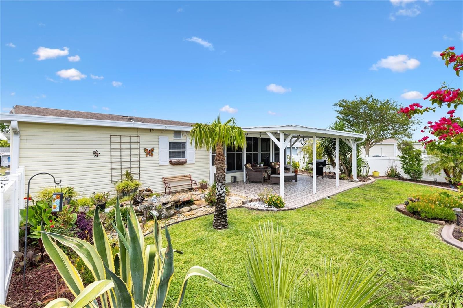 HILLTOP ESTATES in Summerfield, FL is a 55+ COMMUNITY just outside The Villages! NO BOND, NO CDD FEES! WATER, TRASH AND SEWER INCLUDED IN THE HOA FEE of just $130 per month! This beautifully updated 2 Bed/2 bath home has an open concept floorplan and is move in ready. Luxury vinyl plank flooring throughout with freshly painted walls, doors, crown moulding and base boards. The updated kitchen features granite countertops, newer appliances and cabinets with soft closed doors. The Owner’s Suite has dual closets with an updated en-suite bathroom. The Guest Bath has been updated with a newer vanity sink. There is an inside laundry room with extra cabinetry for storage. You will enjoy how open and bright the home is with skylights throughout. The large lanai has an a/c mini split system and sliding windows for year-round comfort. The beautiful private backyard has been meticulously maintained with a functioning Koi Pond! Plenty of parking in the expanded carport as well as a golf cart garage on the side of home. The garage also includes a workbench and newly added shelving for extra storage. A/C 2023, Expanded Carport 2024, Roof 2016, Roof over patio 2022. The community offers a club house, tennis, racquetball, pickleball, pool, shuffleboard and much more! Hilltop Estates located conveniently to shopping, medical and of course The Villages entertainment.Adorable and Affordable living in Central Florida!