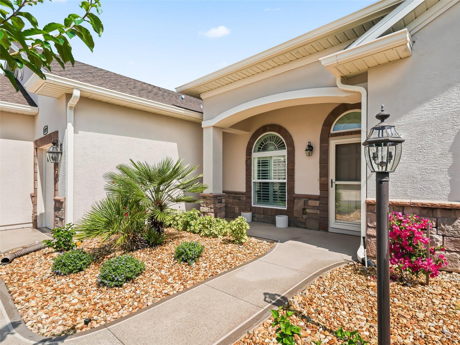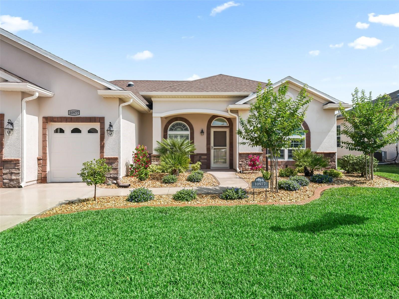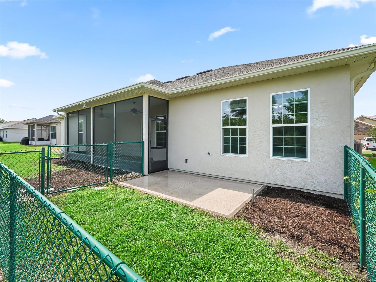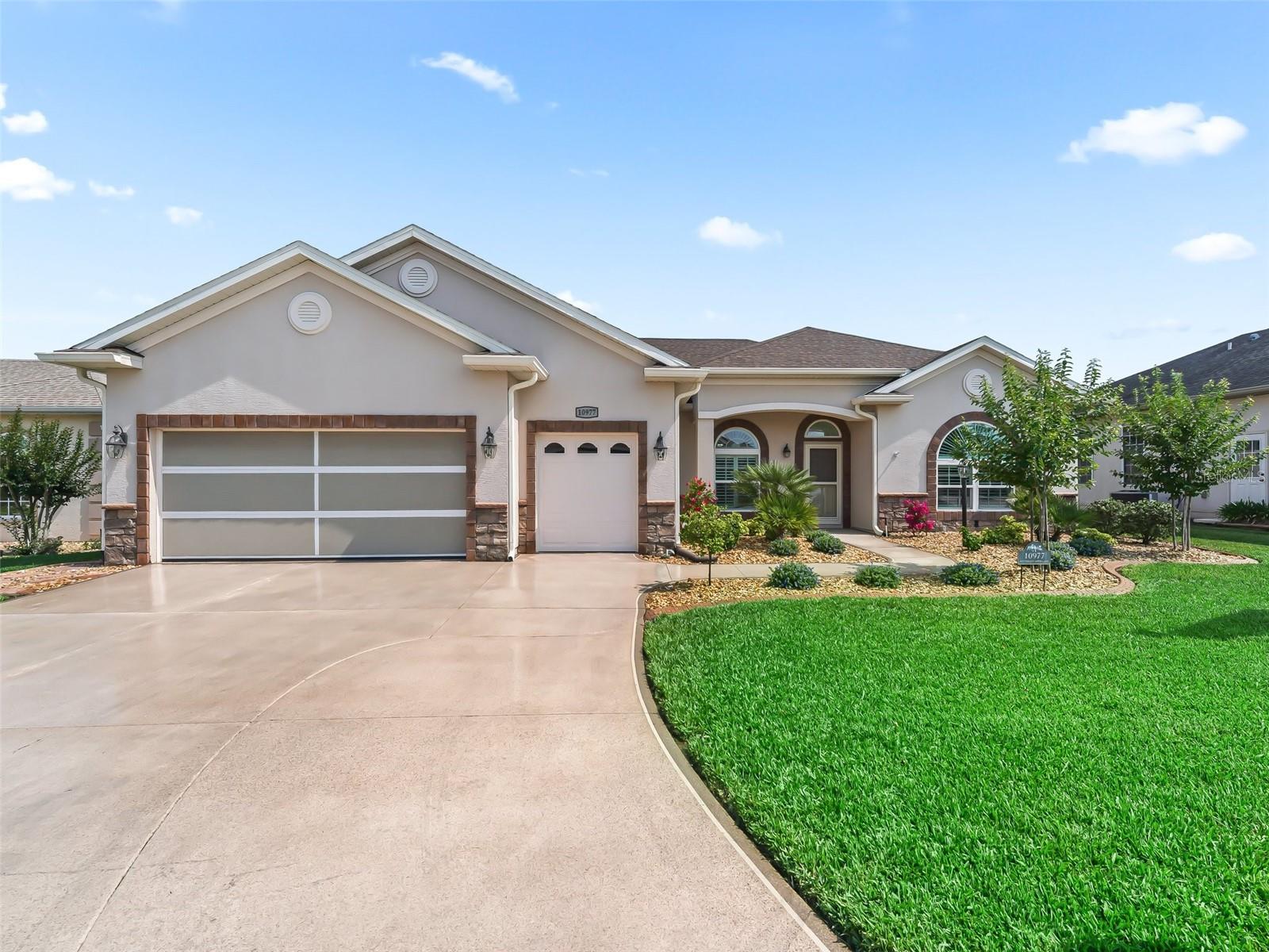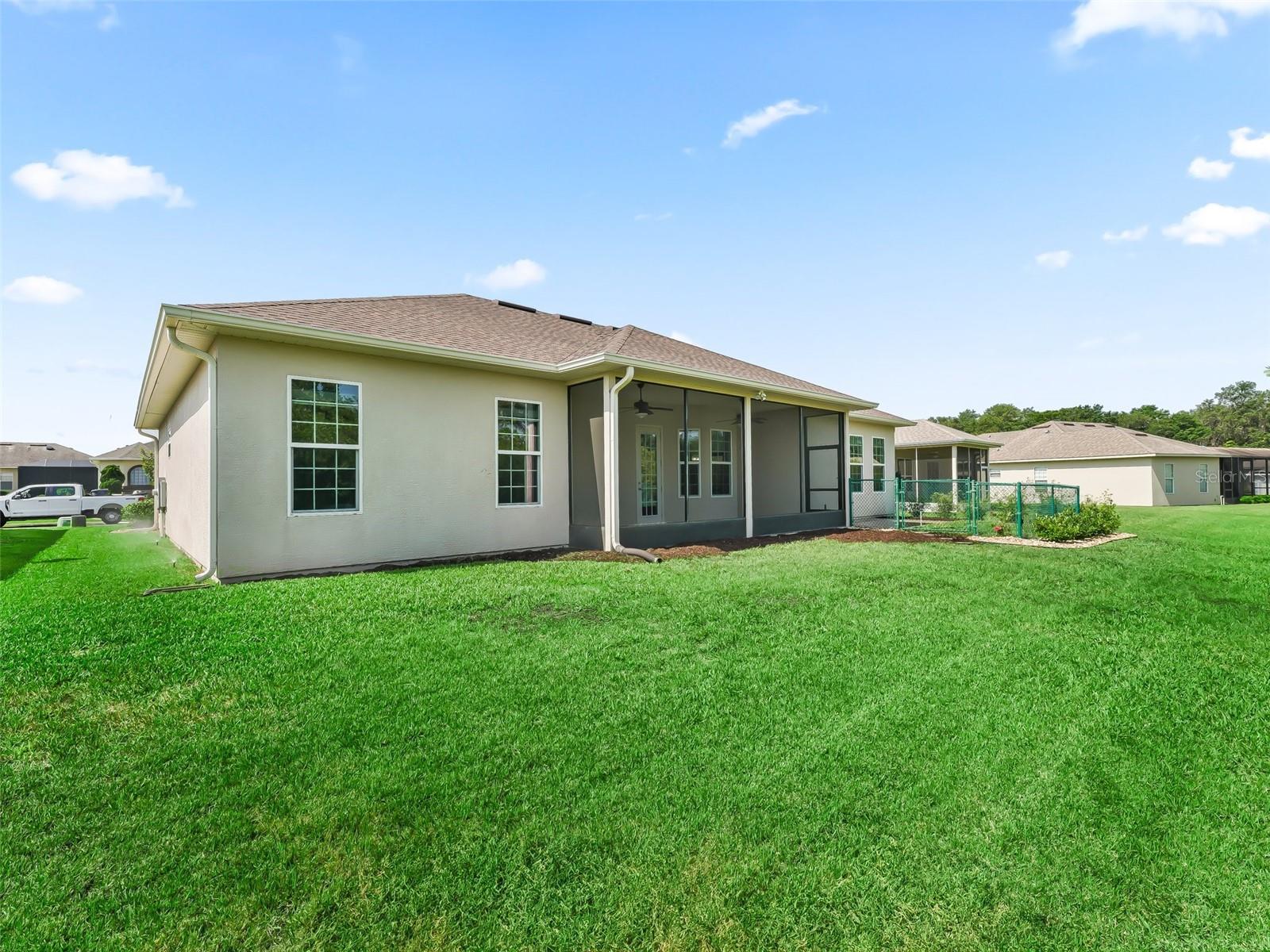 Welcome to Stonecrest – where neighbors become lifelong friends in a vibrant, active adult community! Please be aware of the entry/exit gate as you stop at the guard station and enter and exit the community. This beautifully upgraded CEDAR model home offers 3 bedrooms, 2 bathrooms, and a spacious den, ideally located in the sought-after NV II neighborhood. From the moment you arrive, the curb appeal and attention to detail will impress—this is one of the newer homes in the area and it shows. Step inside and fall in love with the open floor plan designed for both comfort and entertaining. Guests and extended family will appreciate the second primary suite complete with a walk-in closet, and your furry friends will enjoy the partially fenced backyard play area. The chef’s kitchen is a dream, featuring tall cabinets with roll-out shelves, pot drawers, a garbage receptacle cabinet, full-extension drawers, and a large granite breakfast bar—perfect for buffet-style serving. Recessed lighting and extra outlets add even more function to this beautiful space. This home is packed with energy-efficient features, including: Two solar, thermostat-controlled attic fans, Extra attic insulation throughout (including garage), Double-pane tinted windows, Solar tubes in kitchen and owner's suite, Tankless on-demand water heater with remote, Insulated garage doors. Additional upgrades include: Exterior painted 5/2025, Plantation shutters, water softener, gutters, utility sink, sealed/painted garage floor, and stone landscaping with a privacy hedgerow. The extended screened lanai (24.9’ x 9.3’) and 8’ x 12’ grilling patio make outdoor living a pleasure. Even the front post light is on a convenient wall timer. There is an active ring camera/video at the frt. door which will not convey at closing. Enjoy the oversized 2-car garage with golf cart bay, ideal for storage for all your things. Notice the extra storage racks. This gated, deed-restricted, golf community includes: 4 swimming pools (including an indoor saltwater pool & spa), Fitness center, Clubhouse with casual dining and entertainment, 18-hole championship golf course, Over 90 clubs & activities, Pickleball courts and softball field, Golf cart access to shopping and more. Today could be the start of your best chapter yet. If you’re seeking a luxury, energy-efficient home in a private, amenity-rich community, welcome to your new lifestyle—welcome to Stonecrest!