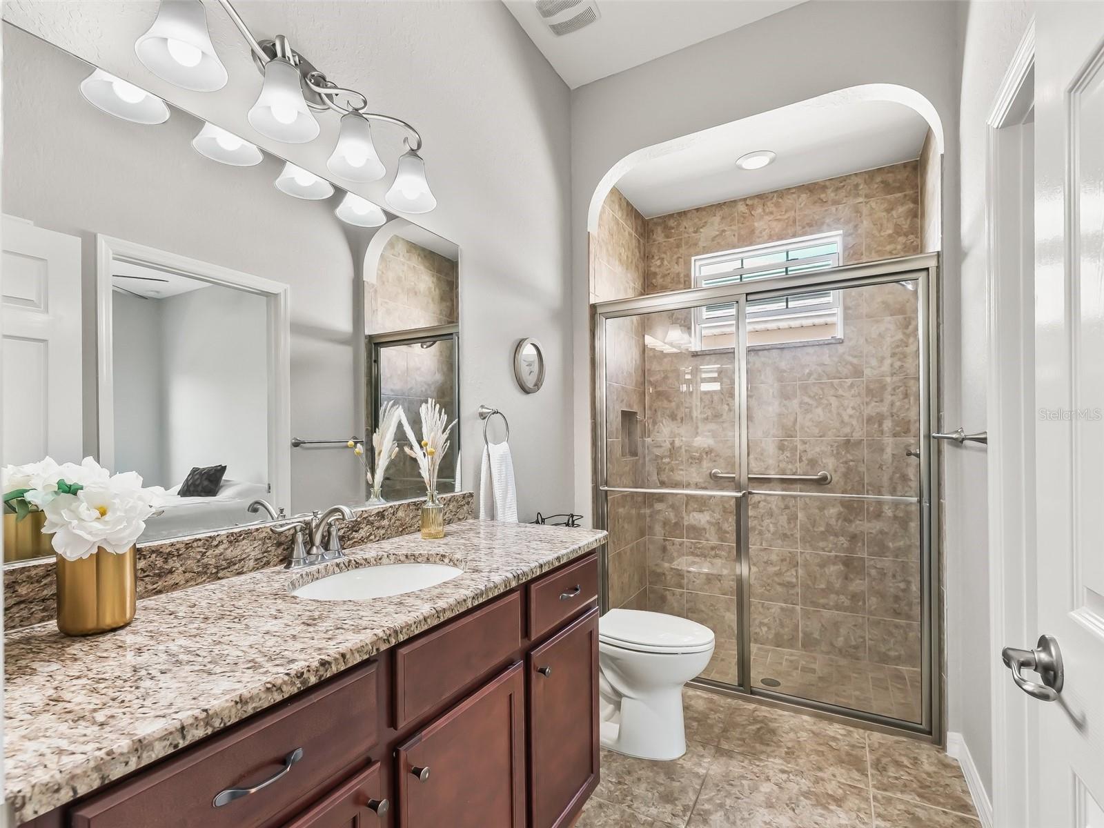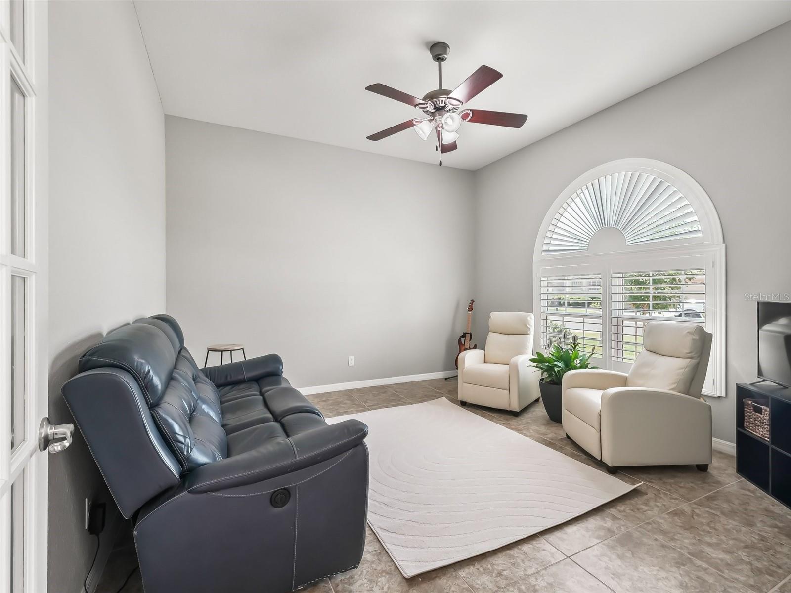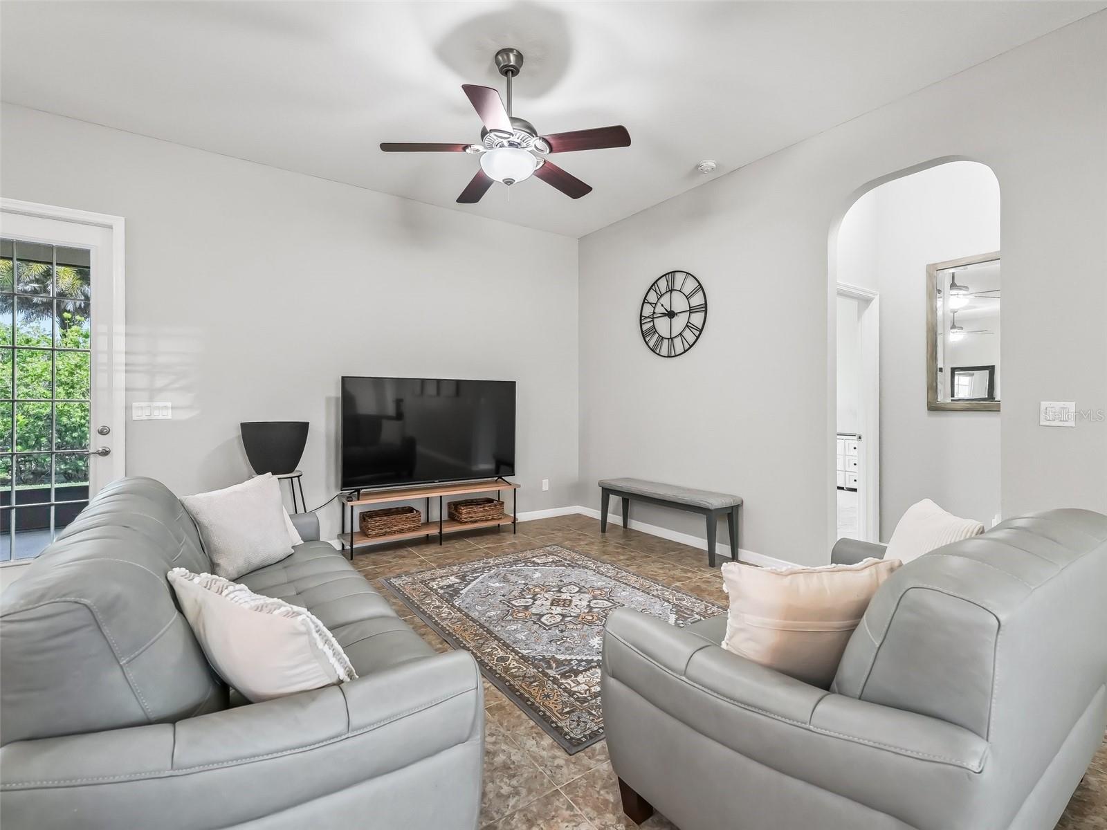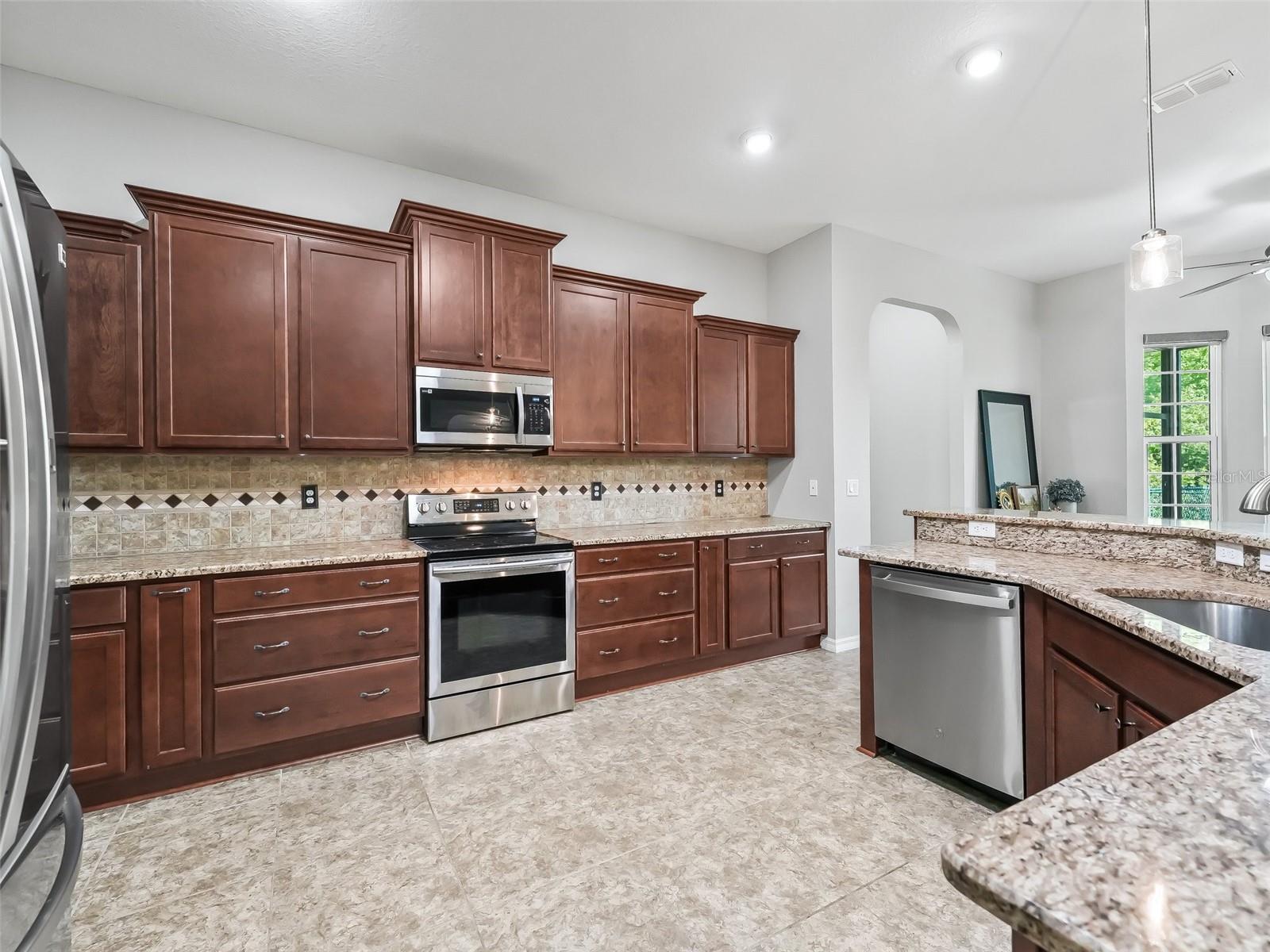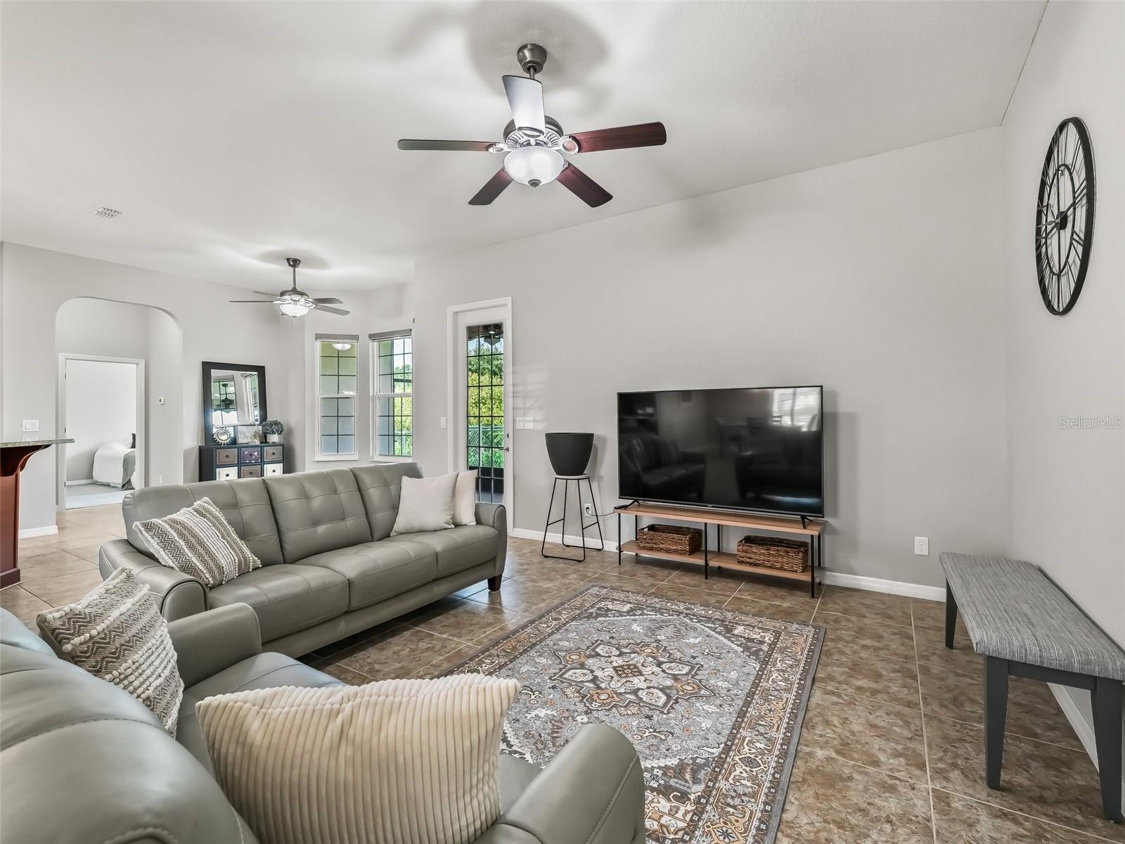 Welcome to Stonecrest – where neighbors become lifelong friends in a vibrant, active adult community! Please be aware of the entry/exit gate as you stop at the guard station and enter and exit the community. This beautifully upgraded CEDAR model home offers 3 bedrooms, 2 bathrooms, and a spacious den, ideally located in the sought-after NV II neighborhood. From the moment you arrive, the curb appeal and attention to detail will impress—this is one of the newer homes in the area and it shows. Step inside and fall in love with the open floor plan designed for both comfort and entertaining. Guests and extended family will appreciate the second primary suite complete with a walk-in closet, and your furry friends will enjoy the partially fenced backyard play area. The chef’s kitchen is a dream, featuring tall cabinets with roll-out shelves, pot drawers, a garbage receptacle cabinet, full-extension drawers, and a large granite breakfast bar—perfect for buffet-style serving. Recessed lighting and extra outlets add even more function to this beautiful space. This home is packed with energy-efficient features, including: Two solar, thermostat-controlled attic fans, Extra attic insulation throughout (including garage), Double-pane tinted windows, Solar tubes in kitchen and owner's suite, Tankless on-demand water heater with remote, Insulated garage doors. Additional upgrades include: Exterior painted 5/2025, Plantation shutters, water softener, gutters, utility sink, sealed/painted garage floor, and stone landscaping with a privacy hedgerow. The extended screened lanai (24.9’ x 9.3’) and 8’ x 12’ grilling patio make outdoor living a pleasure. Even the front post light is on a convenient wall timer. There is an active ring camera/video at the frt. door which will not convey at closing. Enjoy the oversized 2-car garage with golf cart bay, ideal for storage for all your things. Notice the extra storage racks. This gated, deed-restricted, golf community includes: 4 swimming pools (including an indoor saltwater pool & spa), Fitness center, Clubhouse with casual dining and entertainment, 18-hole championship golf course, Over 90 clubs & activities, Pickleball courts and softball field, Golf cart access to shopping and more. Today could be the start of your best chapter yet. If you’re seeking a luxury, energy-efficient home in a private, amenity-rich community, welcome to your new lifestyle—welcome to Stonecrest!