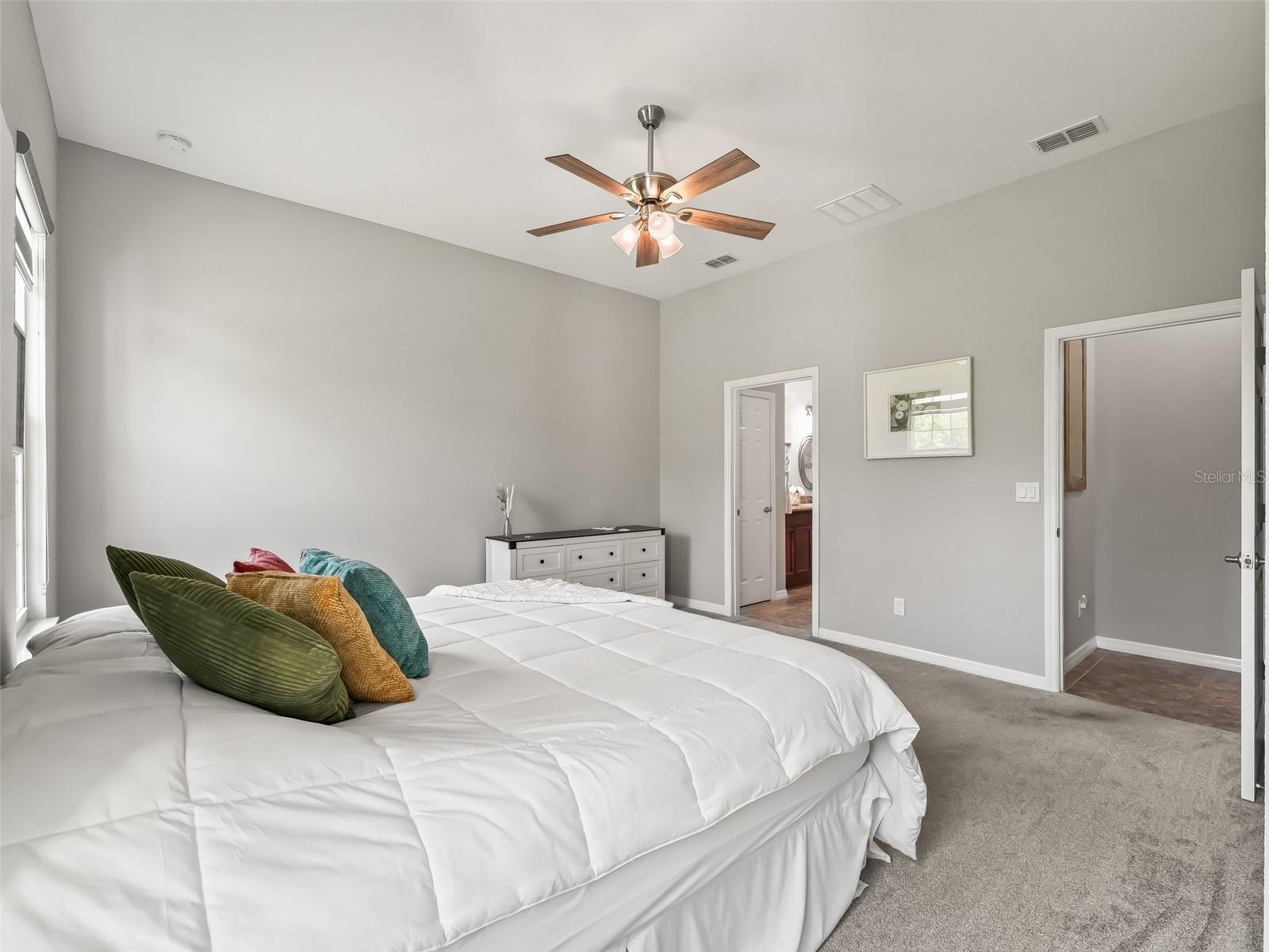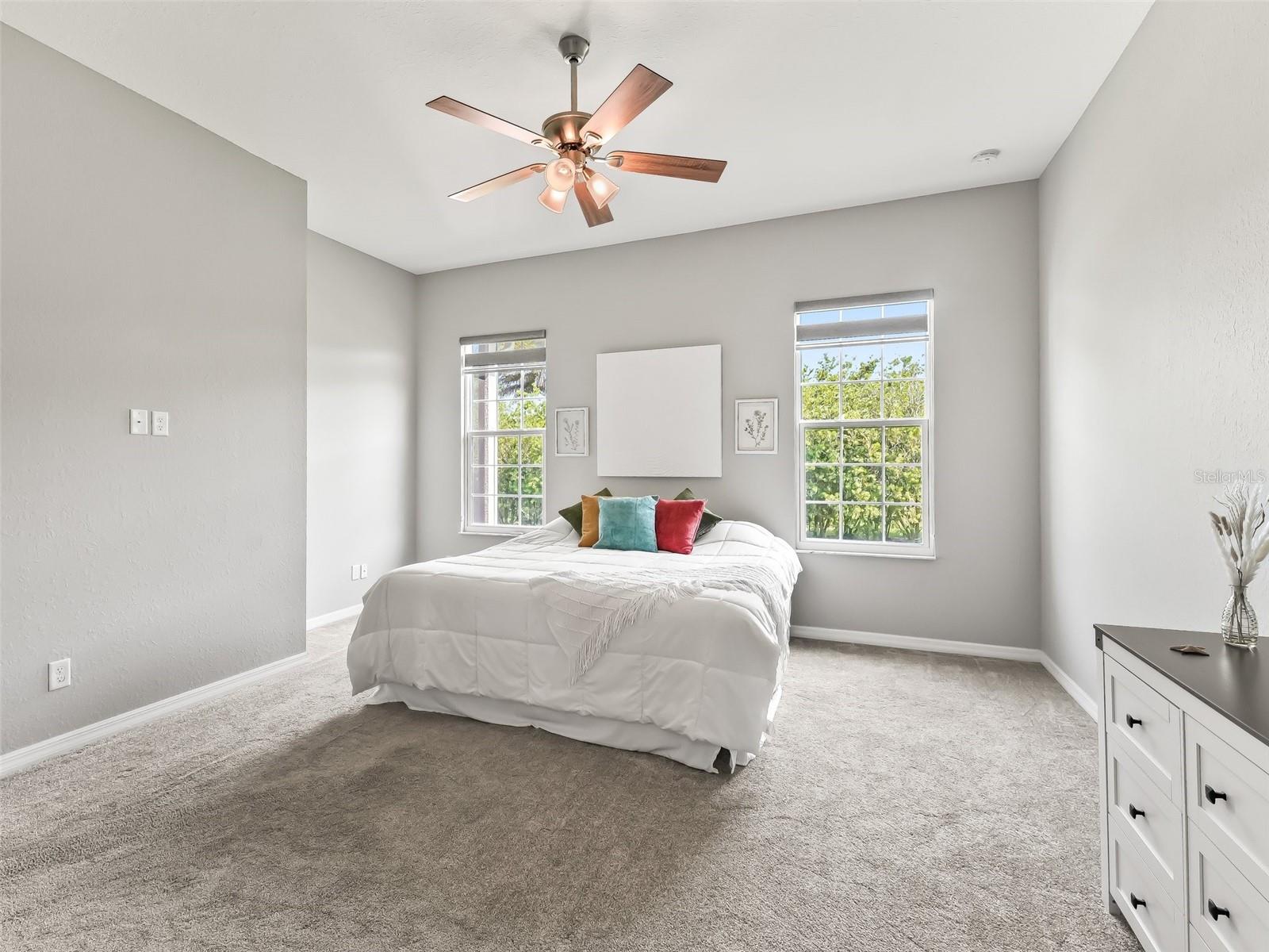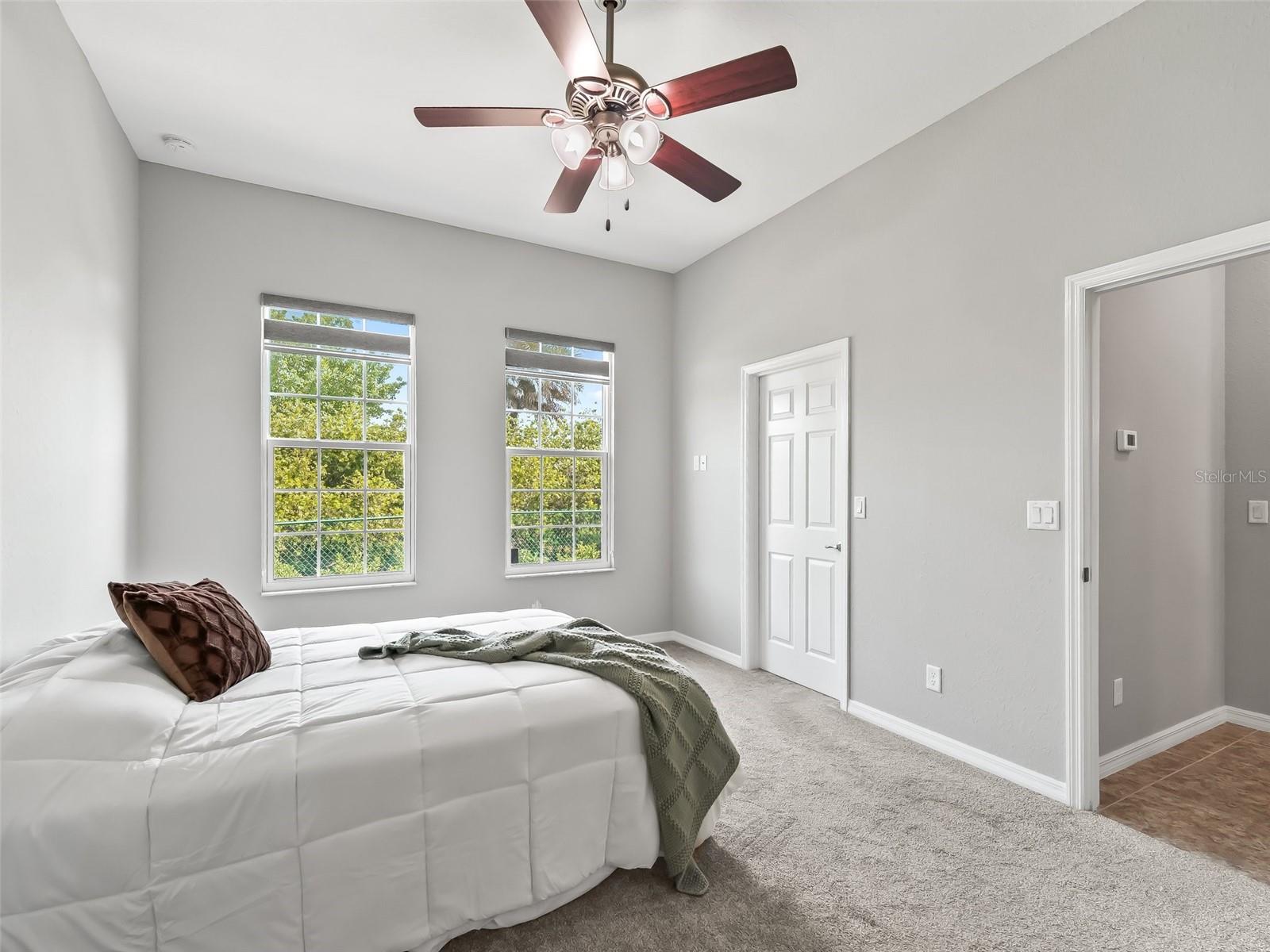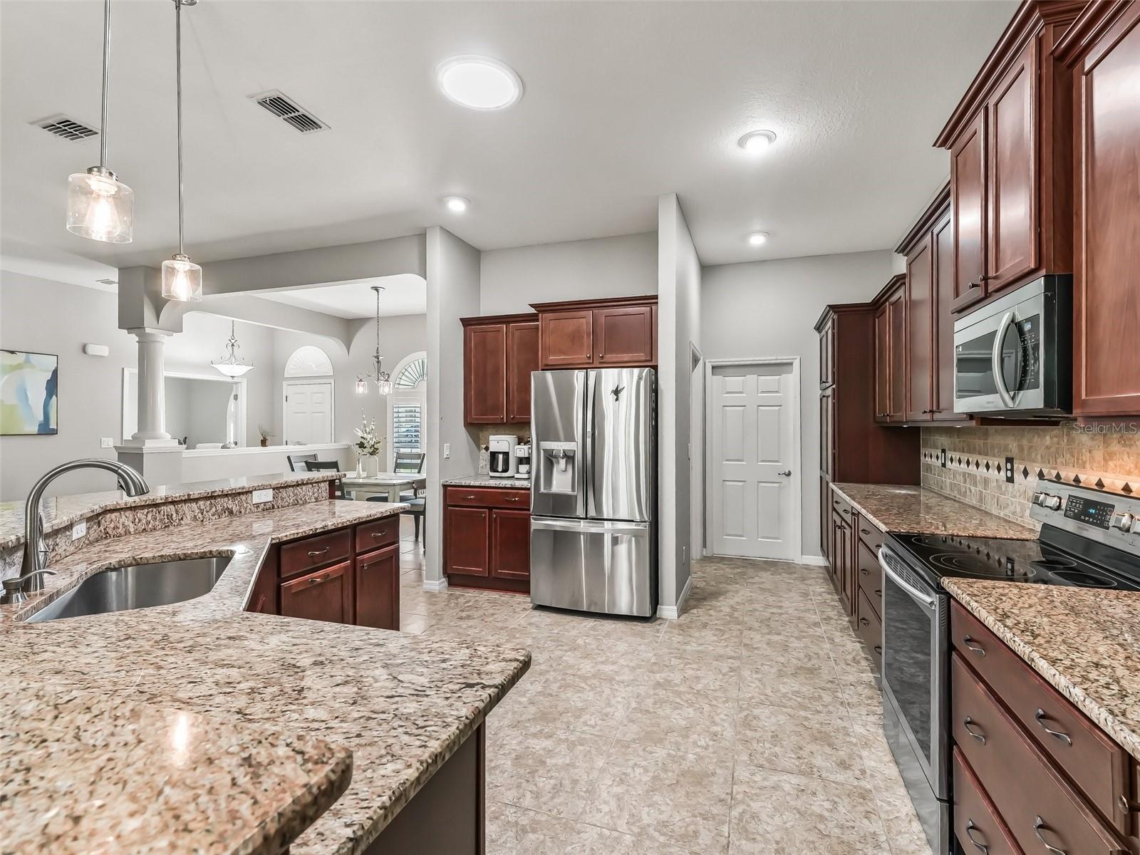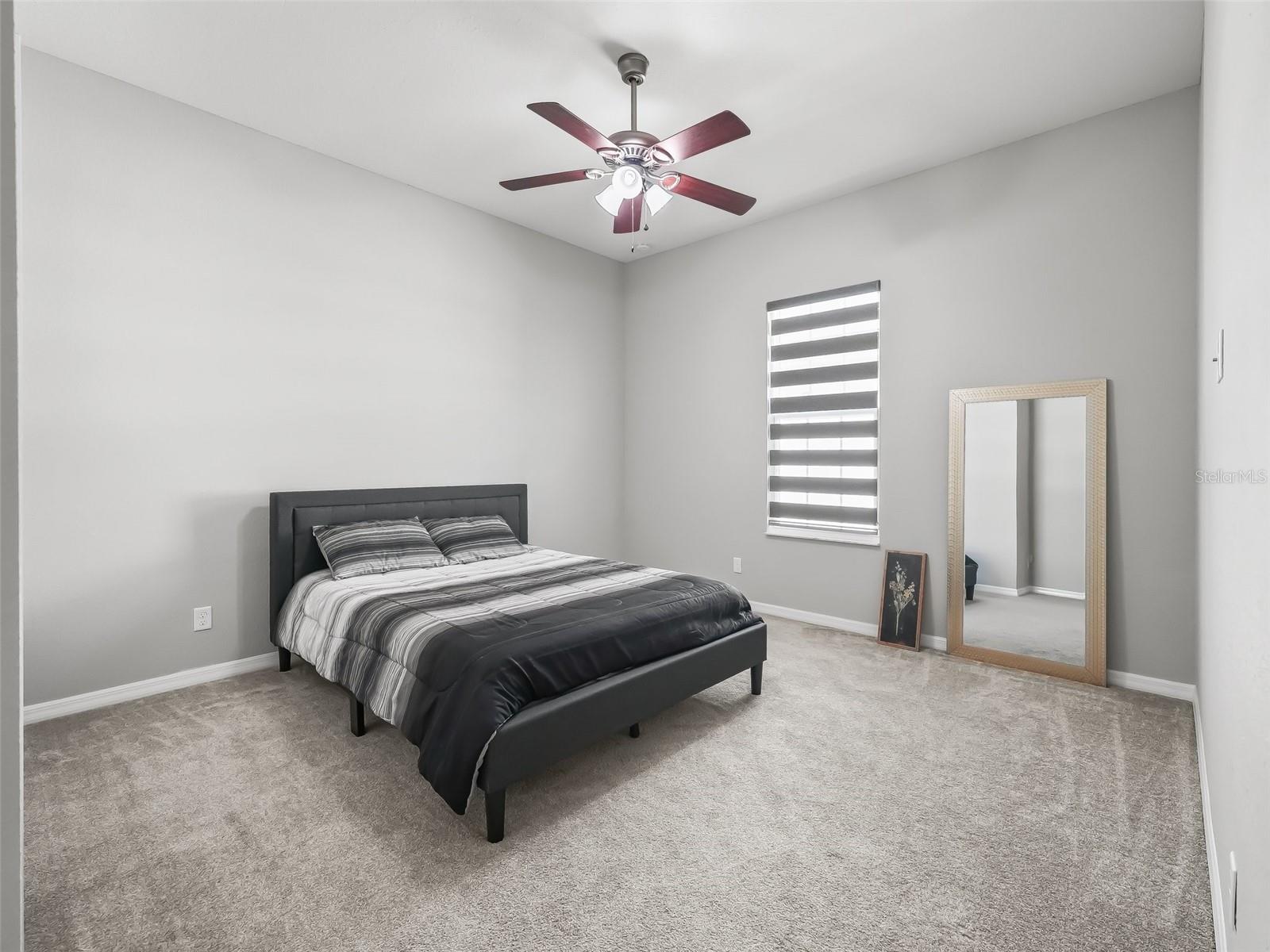 Welcome to Stonecrest – where neighbors become lifelong friends in a vibrant, active adult community! Please be aware of the entry/exit gate as you stop at the guard station and enter and exit the community. This beautifully upgraded CEDAR model home offers 3 bedrooms, 2 bathrooms, and a spacious den, ideally located in the sought-after NV II neighborhood. From the moment you arrive, the curb appeal and attention to detail will impress—this is one of the newer homes in the area and it shows. Step inside and fall in love with the open floor plan designed for both comfort and entertaining. Guests and extended family will appreciate the second primary suite complete with a walk-in closet, and your furry friends will enjoy the partially fenced backyard play area. The chef’s kitchen is a dream, featuring tall cabinets with roll-out shelves, pot drawers, a garbage receptacle cabinet, full-extension drawers, and a large granite breakfast bar—perfect for buffet-style serving. Recessed lighting and extra outlets add even more function to this beautiful space. This home is packed with energy-efficient features, including: Two solar, thermostat-controlled attic fans, Extra attic insulation throughout (including garage), Double-pane tinted windows, Solar tubes in kitchen and owner's suite, Tankless on-demand water heater with remote, Insulated garage doors. Additional upgrades include: Exterior painted 5/2025, Plantation shutters, water softener, gutters, utility sink, sealed/painted garage floor, and stone landscaping with a privacy hedgerow. The extended screened lanai (24.9’ x 9.3’) and 8’ x 12’ grilling patio make outdoor living a pleasure. Even the front post light is on a convenient wall timer. There is an active ring camera/video at the frt. door which will not convey at closing. Enjoy the oversized 2-car garage with golf cart bay, ideal for storage for all your things. Notice the extra storage racks. This gated, deed-restricted, golf community includes: 4 swimming pools (including an indoor saltwater pool & spa), Fitness center, Clubhouse with casual dining and entertainment, 18-hole championship golf course, Over 90 clubs & activities, Pickleball courts and softball field, Golf cart access to shopping and more. Today could be the start of your best chapter yet. If you’re seeking a luxury, energy-efficient home in a private, amenity-rich community, welcome to your new lifestyle—welcome to Stonecrest!