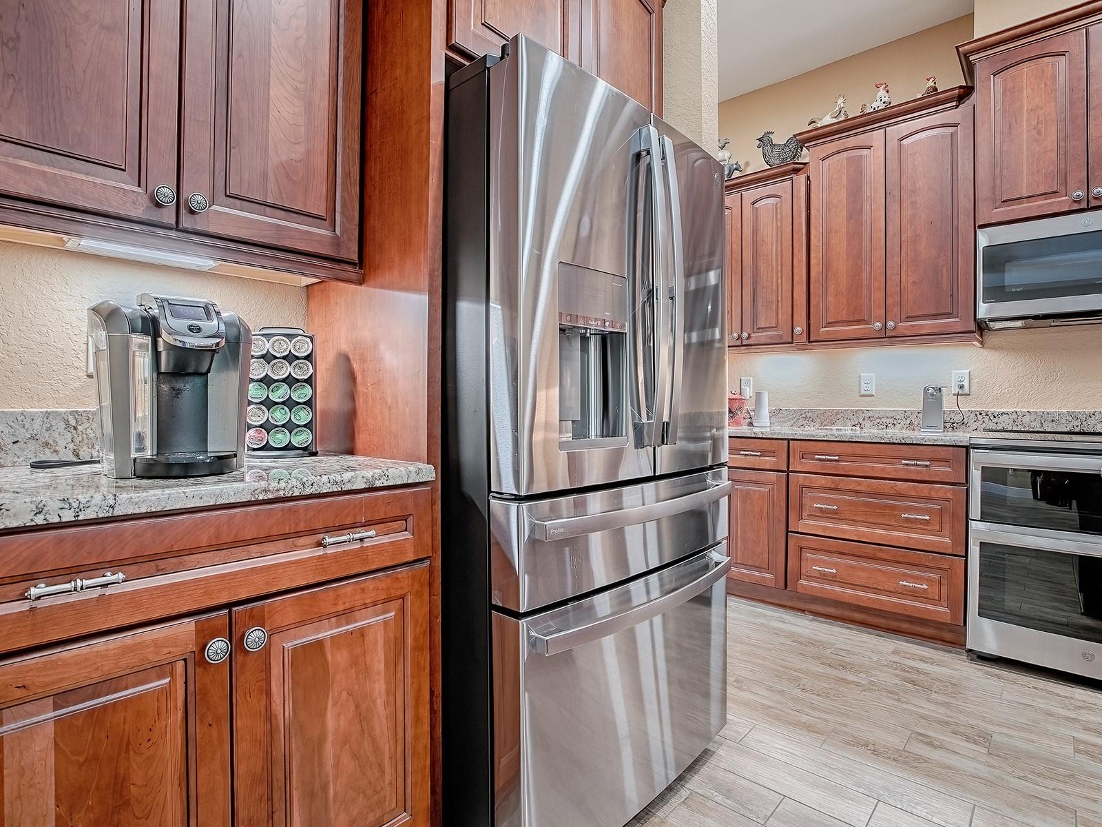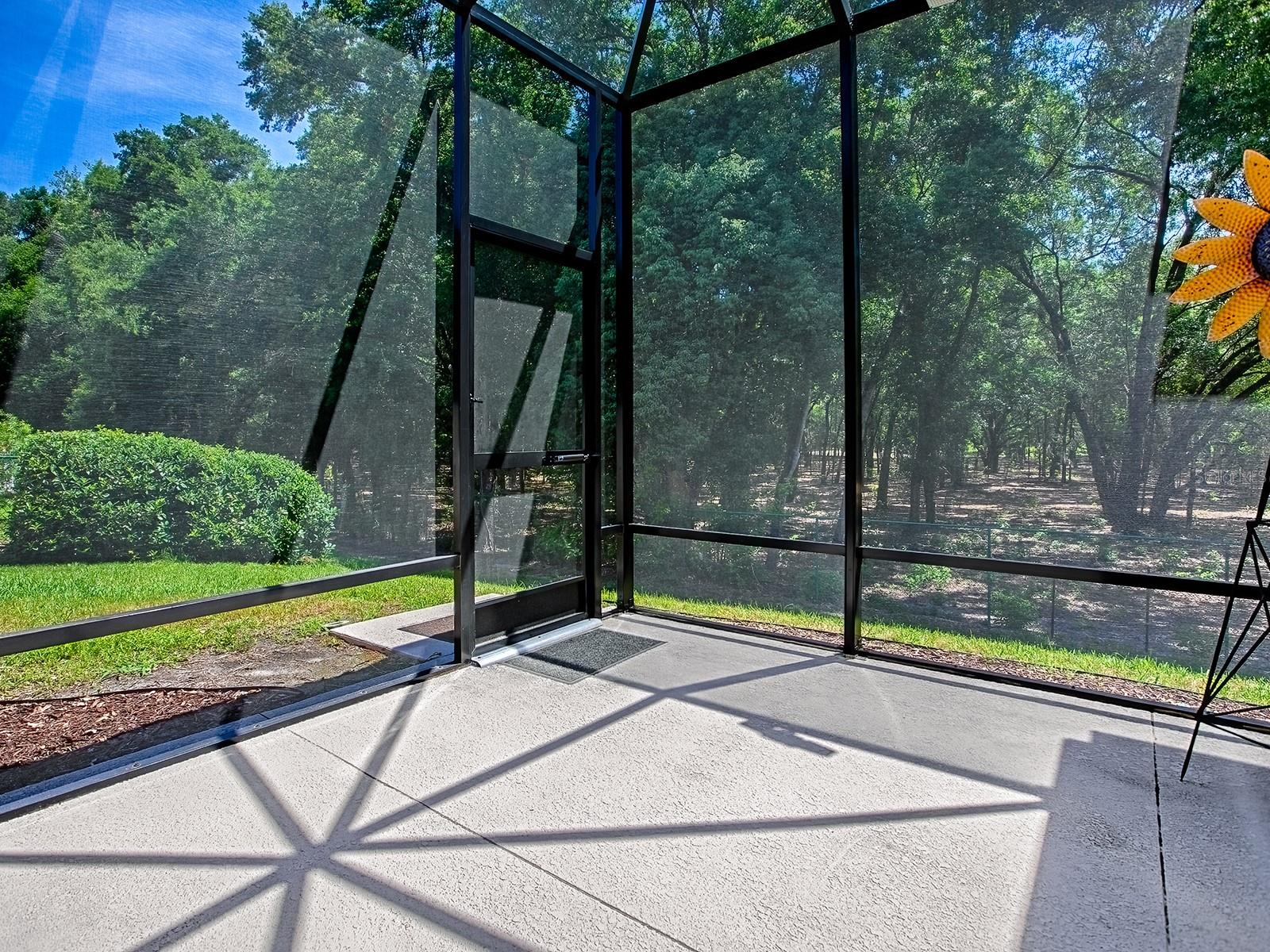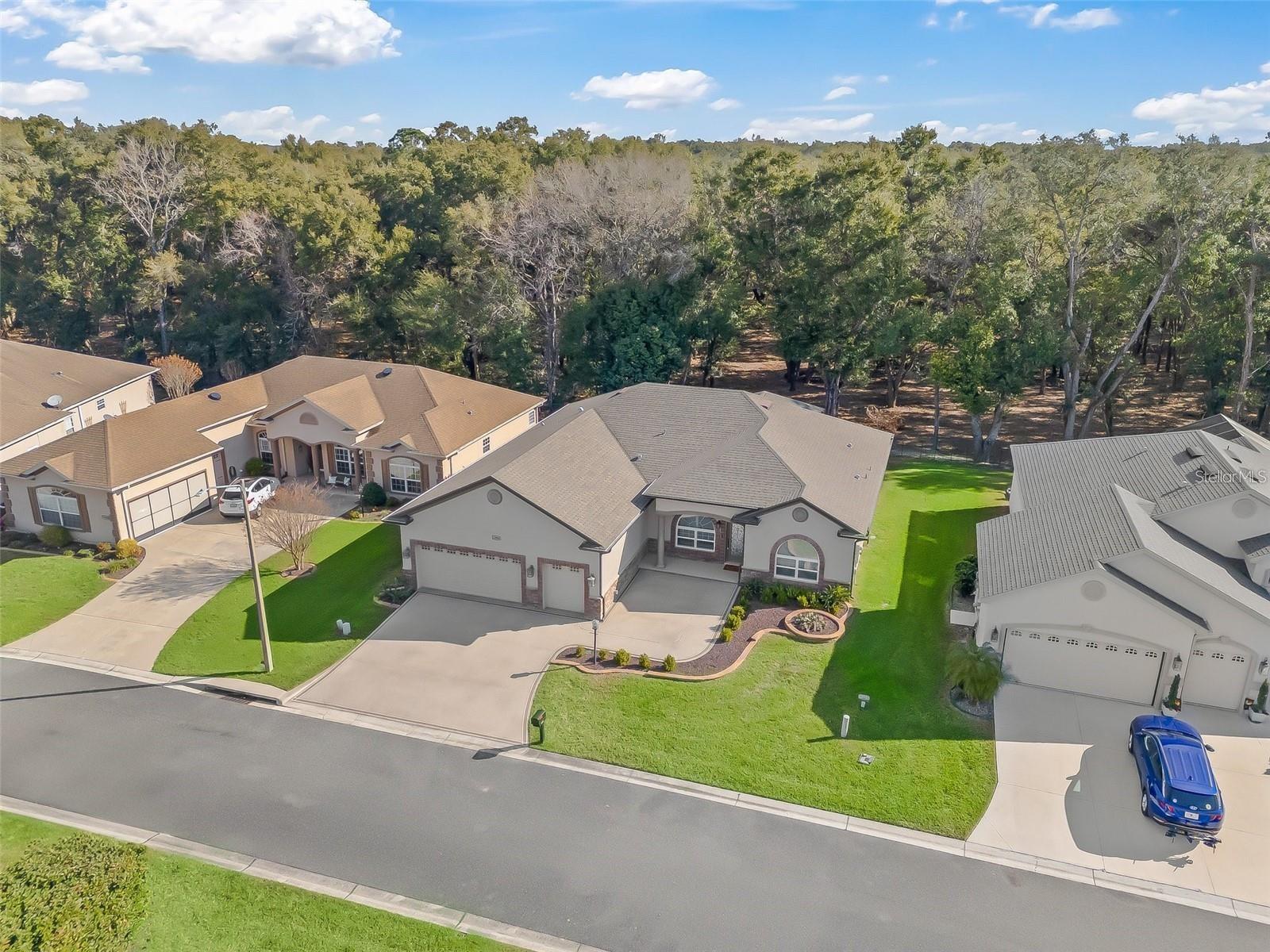 LOOKING FOR AN INCREDIBLE VALUE - AMAZING PRIVATE LOT with VIEW of NATURE AND WOODS! AMAZING PREMIER STONECREST NEIGHBORHOOD! AMAZING HOME - BLOCK/STUCCO, 3 BEDROOM, 3 BATH CUSTOM HOME WITH 2 CAR + GOLF CART GARAGE! IMPRESSIVE CURB APPEAL with Tasteful Low Maintenance Landscaping! OPEN FLOOR PLAN! 10ft Ceilings, 5" Baseboards, Plantation Shutters, Wood-Look Tile Flooring throughout Main Living area and Cozy Carpet in the Bedrooms. LARGE "COOKS" KITCHEN with a 9' Center Island, Staggered CHERRY WOOD/ SOFT CLOSE CABINETS with Built-in SPICE RACKS, GRANITE COUNTERTOPS, Deep Sink, Appliance Garage, & STAINLESS APPLIANCES. TWO DINING AREAS off the Kitchen - on one side you will find a good-sized Nook with Bay Windows for INFORMAL DINING and a FORMAL DINING Area on the other side of the Kitchen. TWO LIVING AREAS - The Main Living Room which is open to the Dining Room & Kitchen and an Expansive Family Room Addition with an Oversized Picture Window capturing PEACEFUL VIEWS OF WOODS & NATURE! THE SPLIT FLOOR PLAN extends Maximum Privacy for both Owners & Guests, with the PRIMARY SUITE on one side of the home while Guest Bedrooms & Guest Baths are located on the opposite side. The PRIVATE PRIMARY EN-SUITE has plenty of windows and a Custom Closet with a Bonus Flex Room (Owners used as a Home Office). The EN-SUITE BATH has Dual Sink Vanity, Specialty Granite Countertop, Walk-in Shower. The Guest Suite which includes one EN-SUITE GUEST BEDROOM with Tiled Walk-in Shower. The Secondary Guest Bedroom has a hall bath adjacent. There is a Covered Screened Birdcage out back perfect for outdoor dining and/or relaxing while taking in the views. The GARAGE has Epoxy Floors & Built-in Cabinets for Extra Storage. Bonus: Simply Safe Doorbell & Alarm System; Rainy Day Sprinklers, Nest Thermostat! STONECREST is a 55+ Golf Course Community with plenty of Amenities, 4 pools (one indoor), 80 different Clubs, and is just a Bridge Away by Golf Cart to THE VILLAGES!!