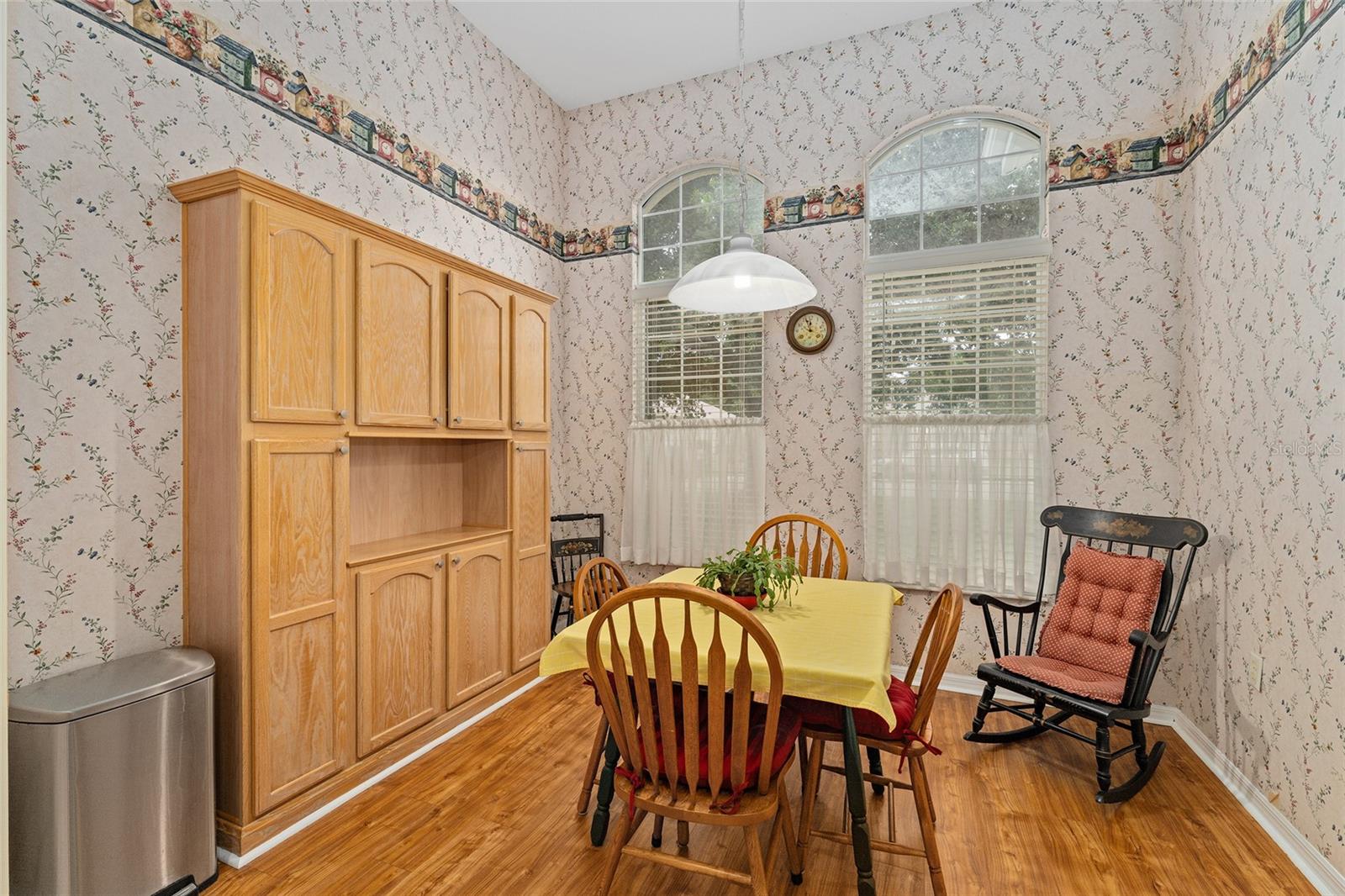 Spacious and thoughtfully designed, this popular Sanibel model offers 2 bedrooms, 2 baths, and a versatile den, making it the perfect Florida retreat or full-time residence. The split floor plan provides privacy for owners and guests alike, with the primary suite on one side of the home and the guest bedroom and den on the other. The kitchen features granite counters, a tile backsplash, abundant cabinetry, and a cheerful breakfast nook filled with natural light. The great room easily accommodates both a large dining table and a comfortable living area for entertaining or relaxing. Step out to the screened lanai and enjoy the open space and privacy between homes. One standout feature is the extended garage—one side measures 32 feet long, the other 26 feet—offering ample room for two cars, a golf cart, a workbench area, and includes a utility sink and drop-down attic stairs for extra storage. The primary bathroom is upgraded with a built-in closet system, double granite vanity, and a modern cultured marble shower with a bench. Located just a short walk—3 to 5 minutes—to the fitness center, indoor heated pool, softball field, walking trails, and more. Roof replaced in 2021, HVAC in 2026, and a new hot water heater was added in 2009. Enjoy the vibrant lifestyle of Del Webb Spruce Creek, featuring 36 holes of golf, 10 pickleball courts, 12 tennis courts, 2 outdoor heated pools, and an abundanc of actiivites,. VINYL PLANKING FLOORING INSTALLED IN LIVING ROOM DINING ROOM, HALLWAYS. Only the bedrooms have carpeting. Call today to see it. The wallpaper that was seen previously is gone.