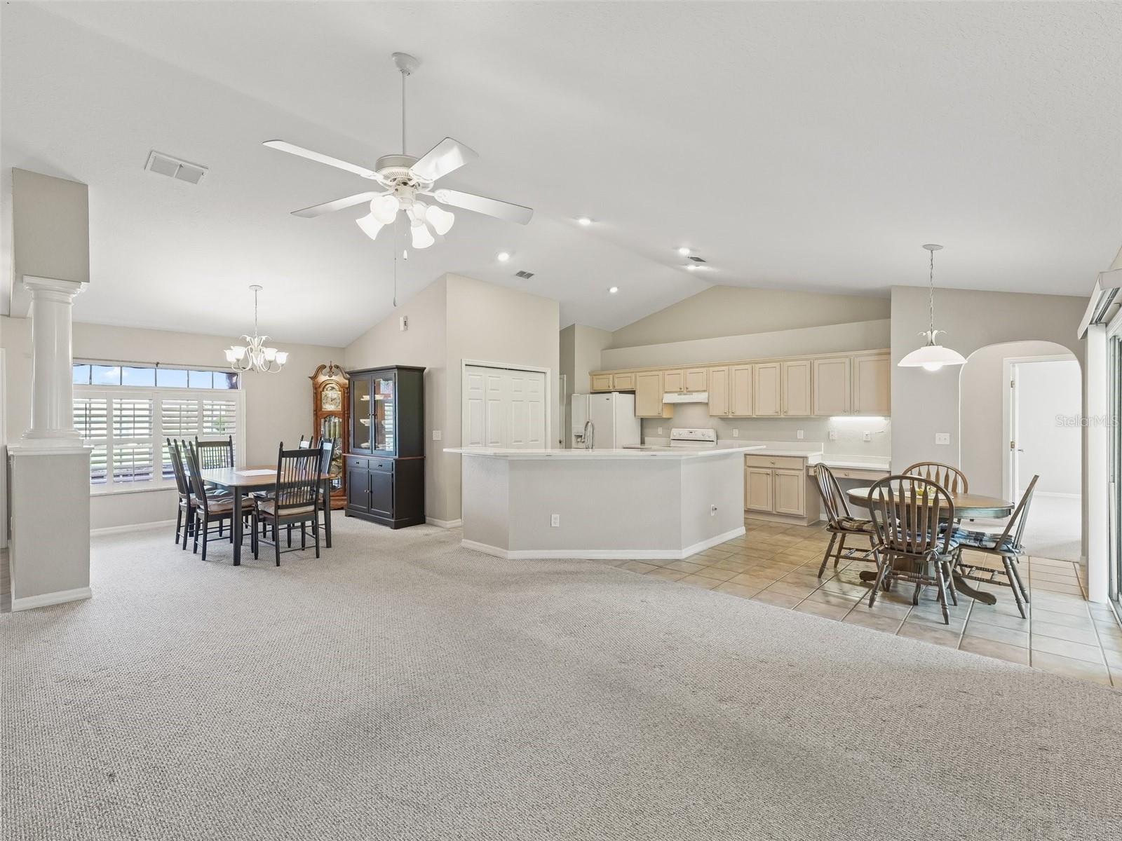 One or more photo(s) has been virtually staged. Stonecrest is a private, gated community w/ controlled access. Welcome to your perfect opportunity in this sought-after adult, private gated community! Whether you're hosting extended family or simply enjoy ample space for guests, this well-maintained 3-bedroom, 3 full-bathroom home offers exceptional flexibility and comfort. Situated on a desirable corner lot, .26 of an ac., the thoughtfully designed open floor plan features cathedral ceilings, split-bedroom layout, two primary suites, a versatile den, and an inside laundry room with a utility sink, a lanai and more. HOA $152. Enjoy the plantation shutters on the windows, a convenient back-door coat closet, and a dedicated golf cart garage. The garage measures 543 sf., offers shelving, lighting, attic shuttle dropdown stairs, aceiling fan, and two hot water heaters, as well as a utility door, and an exterior key pad to open the door. Notice the screen and the garage door are on one shared track when opening and closing. Recent major updates include a 4-ton Trane HVAC system installed in 2021 and a brand-new roof in 2025, giving you peace of mind for years to come. Located directly across from a peaceful retention pond, this home truly showcases pride of ownership from the original owner. Discover Your New Lifestyle at Stonecrest! Today could be the BEST DAY OF THE REST OF YOUR LIFE! If you're searching for a home in a private, gated, golf community, look no further—you've found your dream lifestyle at Stonecrest. Stonecrest private gated community offers gate attended staff as well as virtural staffing for entry. Nestled in the heart of Central Florida, Stonecrest is a deed-restricted, active adult golf community that offers the perfect blend of luxury, convenience, and recreation. Imagine waking up every morning in a community designed for those who cherish an active lifestyle, where golf cart access takes you to nearby shopping and more. At Stonecrest, you'll have access to an array of world-class amenities, including four community pools, one of which is a serene indoor pool—along with a spa and a fully equipped fitness center. Whether you're looking to stay fit, relax, or meet new friends, you'll find it all here. With over 90 clubs to join, you'll never run out of opportunities to explore your passions and hobbies. The clubhouse is a hub of social activity, featuring a popular, casual dining restaurant where you can enjoy great food and even better company. For the golf enthusiast, Stonecrest boasts 18 holes of championship golf, providing a challenging and scenic experience. The fun doesn’t stop there—enjoy lighted pickleball courts, softball, and so much more. Welcome to Stonecrest, where every day feels like a vacation and the best years of your life are just beginning.