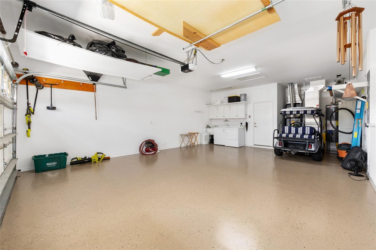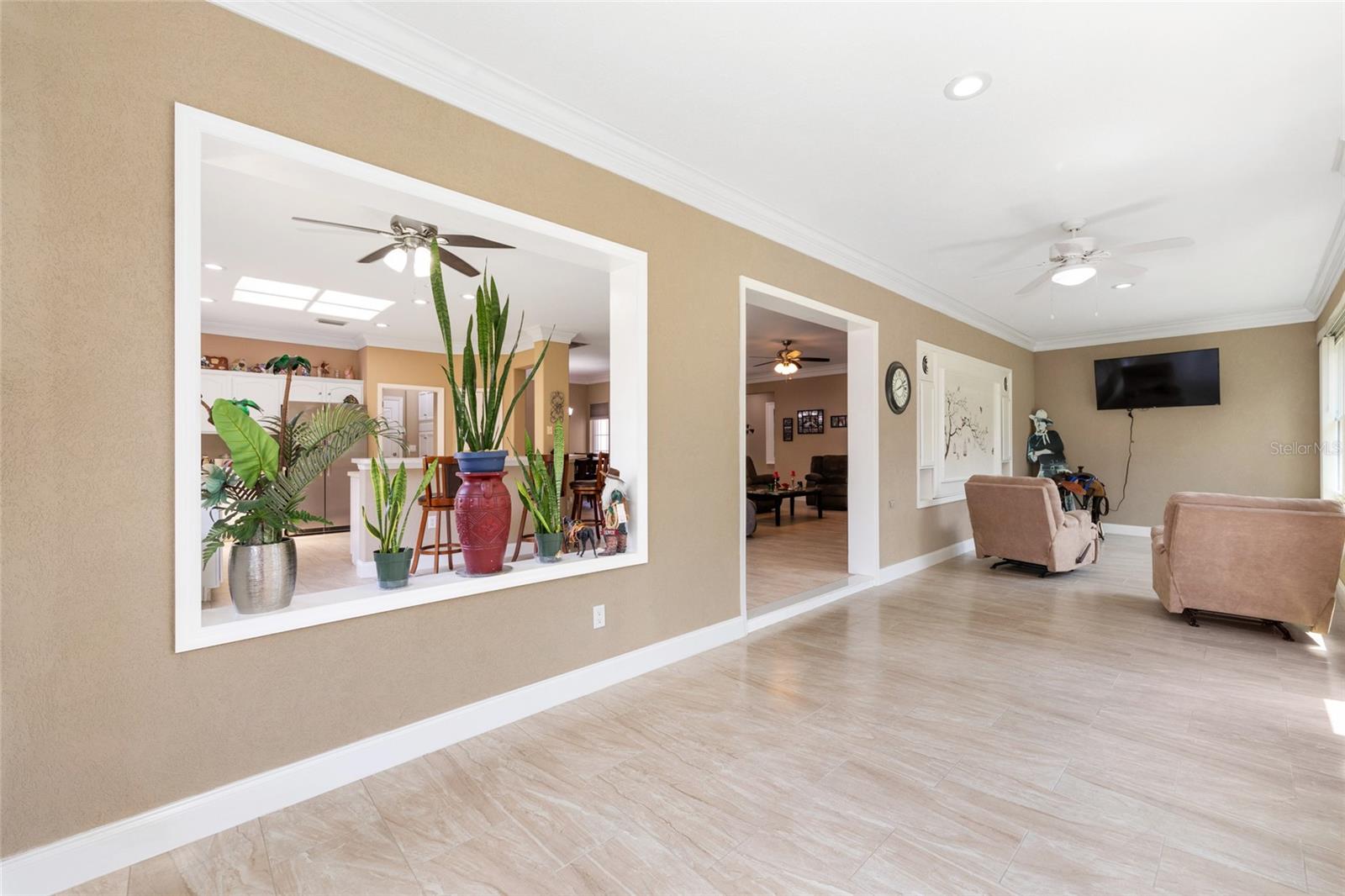There are Madeira homes… and then there are SPECIAL Madeira homes. This is one of the special ones! As you arrive, you’ll notice the spotless driveway and walkway leading to a welcoming front patio seating area. Step inside and you’ll be impressed with the attention to detail throughout — crown molding, 5-inch baseboards, and ceramic tile flooring flow seamlessly through the home. The tiled lanai, complete with crown molding, newer single-hung double pane glass windows, and a finished ceiling, feels like an extension of the living space. A clever Murphy-style bed offers extra sleeping accommodations for guests without sacrificing room. All lighting has been upgraded to energy-efficient LED. The kitchen was updated in 2021 with crisp white cabinets, brushed nickel hardware, and newer stainless-steel appliances. Both bathrooms have been refreshed with new tops on the vanities that look like granite, and raised-height counters, while the primary bath boasts a newer shower. Additional updates include: • New roof (2024) • HVAC (2019) • Hot water heater (2019) • Exterior paint (2021) and interior paint (2020) • Insulation added over lanai and garage ceilings, plus insulated garage door • 6-inch gutters with underground drainage This home is truly move-in ready with upgrades already done for you. Don’t miss your chance to see one of the finest Madeira models available!