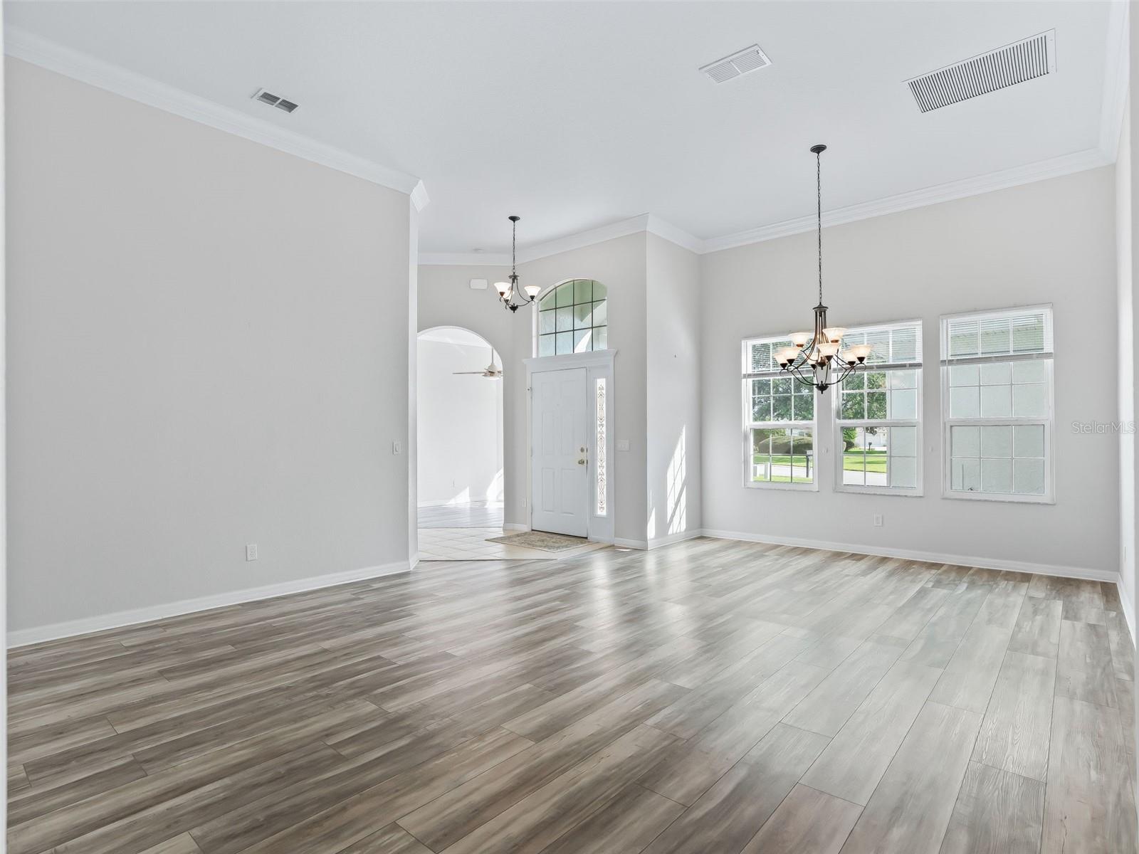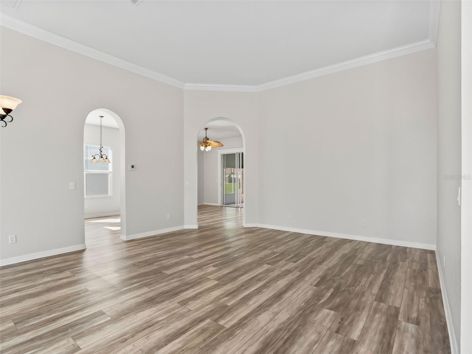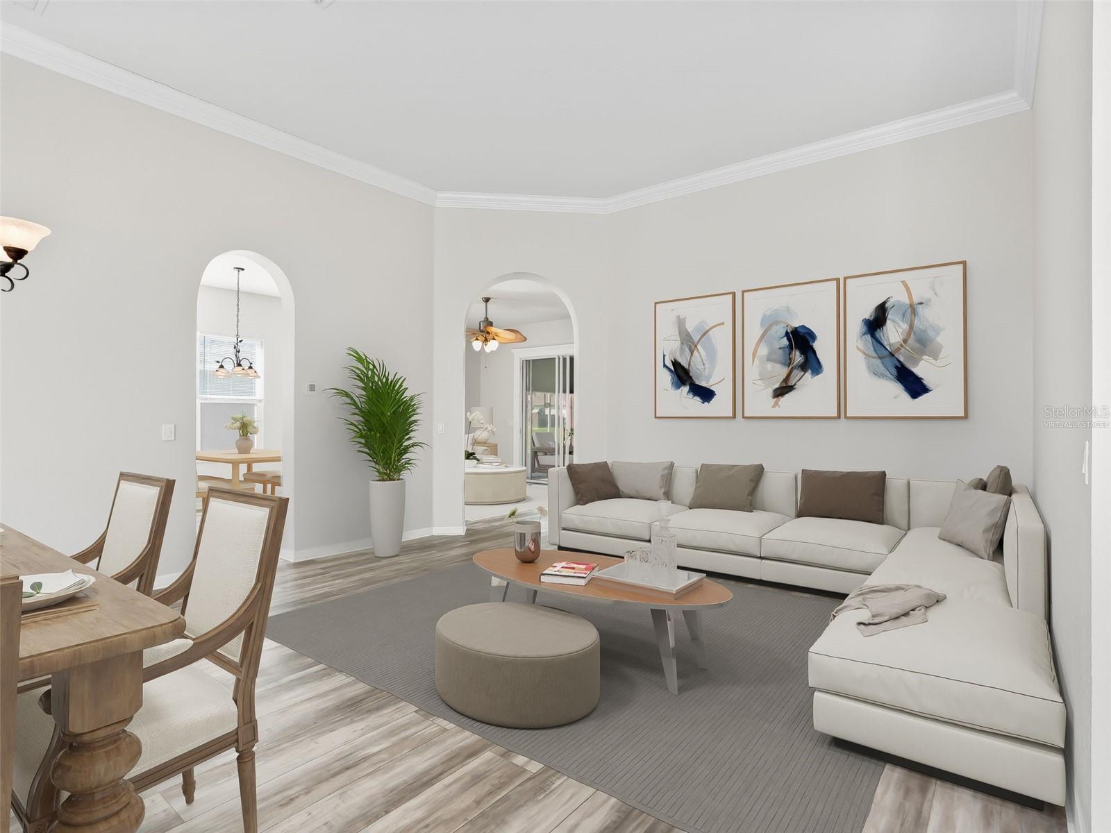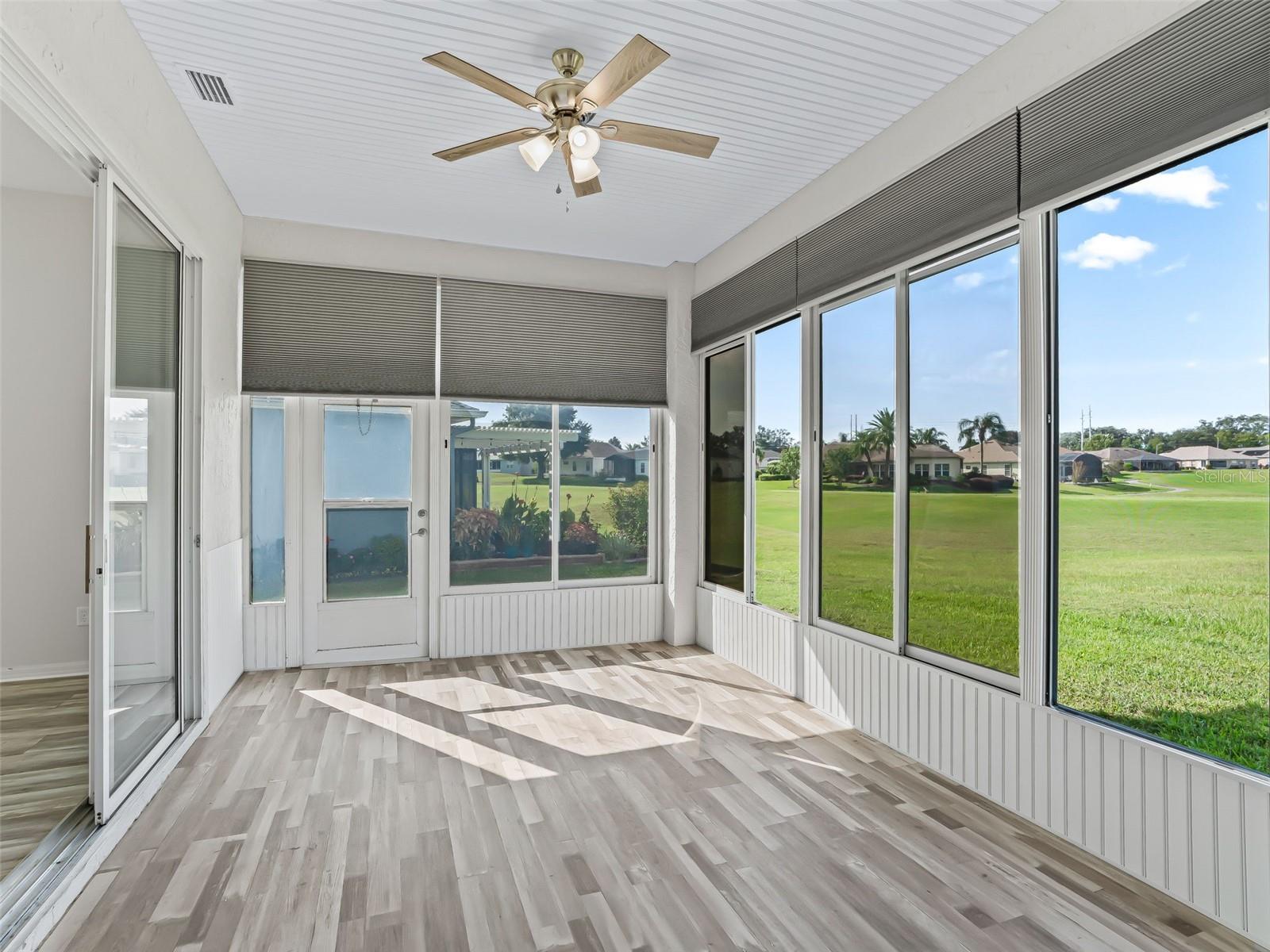 One or more photo(s) has been virtually staged. BONUS-- NEW CARPET in bedrooms 12/25. HOA FEE $152.00/MO. GOLF VIEWS. Quick close possible! Ideal QUIET location in STONECRESTS' COVETED NEIGHBORHOOD OF OVERLOOK III! LOCATED ON A CUL DE SAC, WITH A larger than usual PARK IN THE CENTER CIRCLE IN THE FRONT OF THE HOME AND THE BACK HAS VIEWS OF THE GOLF COURSE BETWEEN THE 5TH AND THE 17TH GREENS. This home is surrounded by the Championship golf course, offers an open floor plan WHICH INCLUDES A DEN/OFFICE/swing room(sleeping area without a closet) filled with thoughtful upgrades and modern finishes. The kitchen is a chef’s delight, w/ quartz countertops, tall cabinets with over/under and inside remote contolled led colored lighting, a S/S single bowl sink, backsplash, LED recessed lighting, and a newer refrigerator with internal water dispenser* The common living areas offer luxury vinyl plank flooring, while 10’ and 12’ ceilings, crown molding, and arched entryways add elegance. The enclosed FLORIDA RM is enhanced with HEAT AND AIR, WHICH ADDS AN ADDITIONAL 176 SF OF MAKING THIS HOME APPROX. 2,080 SF. of enjoyable space. SEE FL. PLAN & PA INFO. The Florida room w/ H&A also offers new LVP flooring, 2 sets of sliding glass doors offering 5 panes of glass, energy-efficient remote-controlled sunscreen, wainsott trim and pleated shades, provides the perfect year-round retreat. The oversized garage is a dream come true for the car enthusiast, with golf cart storage space, a mini split A/C (2024), insulated ceiling, pull-down attic stairs, additional electrical outlets, a utility sink, and an electric remote-controlled garage screen AND KEYPAD. Major updates include a new roof (2024), new HVAC (2024), and new windows (2022) in dining room, dinette,& garage. Outdoor features include decorative pavers creating a beautiful patio or additional parking spaces, improved landscaping with stone accents, exterior lighting, gutters, a private mailbox, and a turn around extension on the driveway.* Additional highlight incl. a spacious primary suite with an oversized closet and keyed safe, plenty of storage, motion lights and fine finishing touches throughout. This home is truly a gem waiting to be discovered—offering both comfort and style in a highly desirable location! Today could be the BEST DAY OF YOUR LIFE. If you're searching for a home in a private, gated, golf community, look no further—you've found your dream lifestyle at Stonecrest. Nestled in the heart of Central Florida, Stonecrest is a deed-restricted, active adult golf community that offers the perfect blend of luxury, convenience, and recreation. Imagine waking up every morning in a community designed for those who cherish an active lifestyle, where golf cart access takes you to nearby shopping and more. At Stonecrest, you'll have access to an array of world-class amenities, including four community pools, one of which is a serene indoor saltwater pool—along with a spa and a fully equipped fitness center. Whether you're looking to stay fit, relax, or meet new friends, you'll find it all here. With clubs to join, you'll never run out of opportunities to explore your passions and hobbies. The clubhouse is a hub of social activity, featuring a popular, casual dining restaurant where you can enjoy great food and even better company. For the golf enthusiast, Stonecrest boasts 18 holes of championship golf, providing a challenging and scenic experience.The fun doesn’t stop there—enjoy lighted pickleball courts, softball, and so much more.