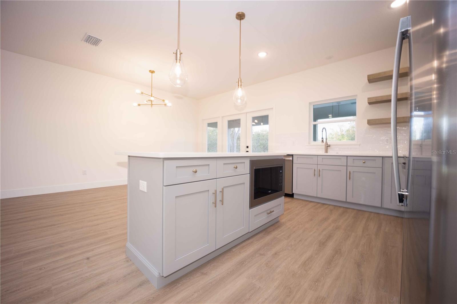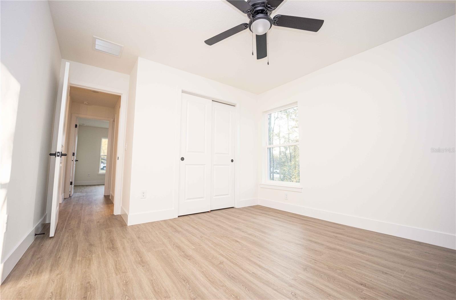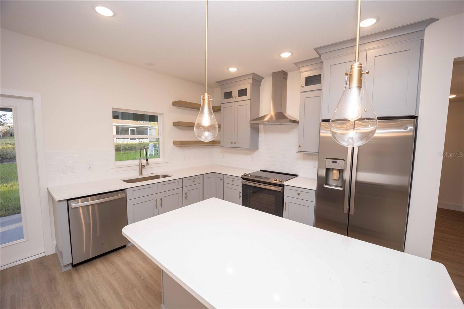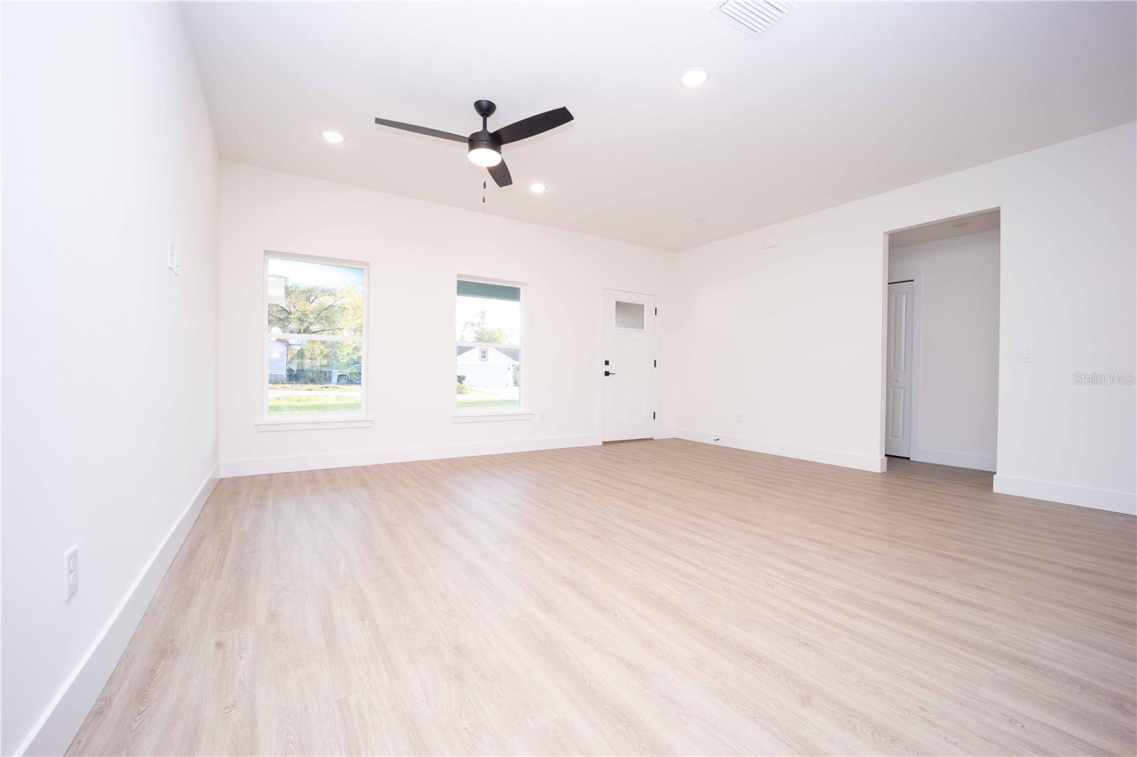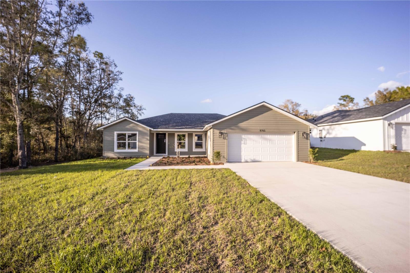 Welcome to your modern dream home! This stunning 3-bedroom, 2-bathroom residence offers 1,530 sq. ft. of beautifully designed living space and is move-in ready. Nestled in the highly sought-after Orange Blossom Hills with NO HOA nor DEED RESTRICTIONS, this home is just minutes from The Villages, with convenient access to shopping, dining, and major roads like HWY 441. The exterior boasts a charming Craftsman-style design and sits on a generous 0.22-acre lot. Step inside to discover an open-concept layout that seamlessly flows throughout, featuring high ceilings, sleek black accents, and premium LVP flooring. Modern two-panel doors enhance the contemporary feel, creating a stylish and inviting atmosphere. The kitchen is a chef’s dream—highlighted by elegant quartz countertops, shaker-style cabinetry, recessed lighting, and top-of-the-line stainless steel appliances. The expansive kitchen island is perfect for entertaining and overlooks the spacious living and dining areas. The luxurious master suite offers plenty of space, complemented by an impressive ensuite bathroom with dual vanities, a large walk-in closet, and a show-stopping walk-in shower. The two additional bedrooms are well-sized, with ample closet space and a shared guest bathroom. Practicality meets convenience in the large laundry room, which doubles as a mudroom, leading to the oversized two-car garage. Step outside to the backyard where you’ll find a covered patio—ideal for outdoor gatherings or relaxing in your private oasis.With newer homes in high demand, this one is sure to impress. Don’t wait—call today to schedule a tour before it’s gone!