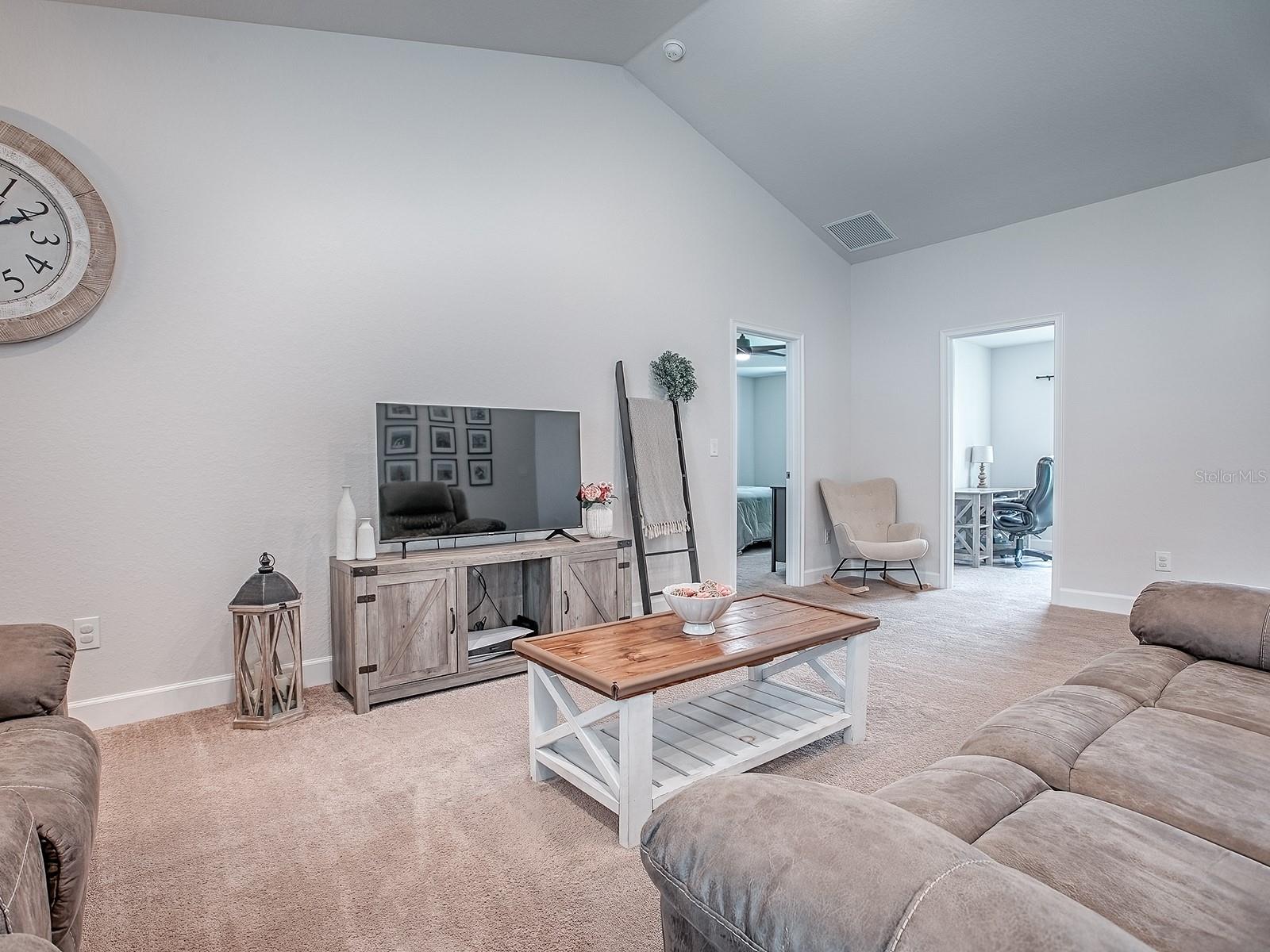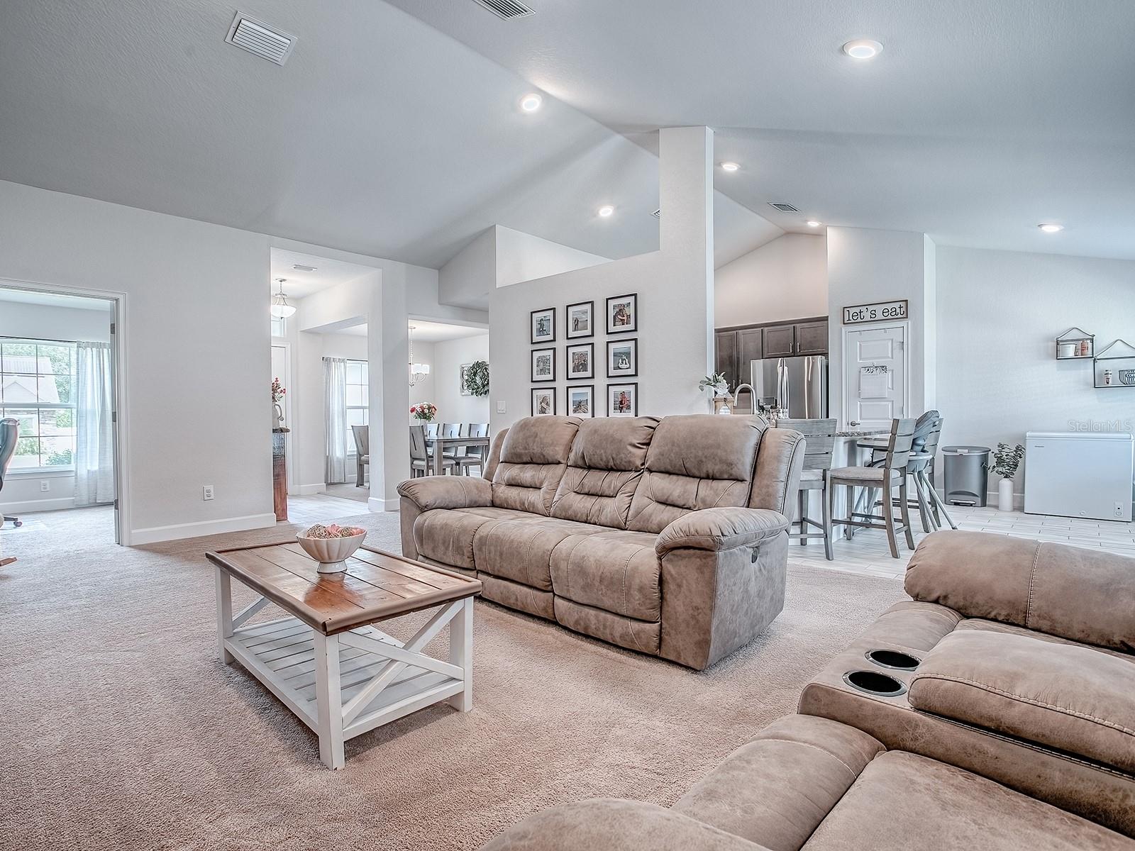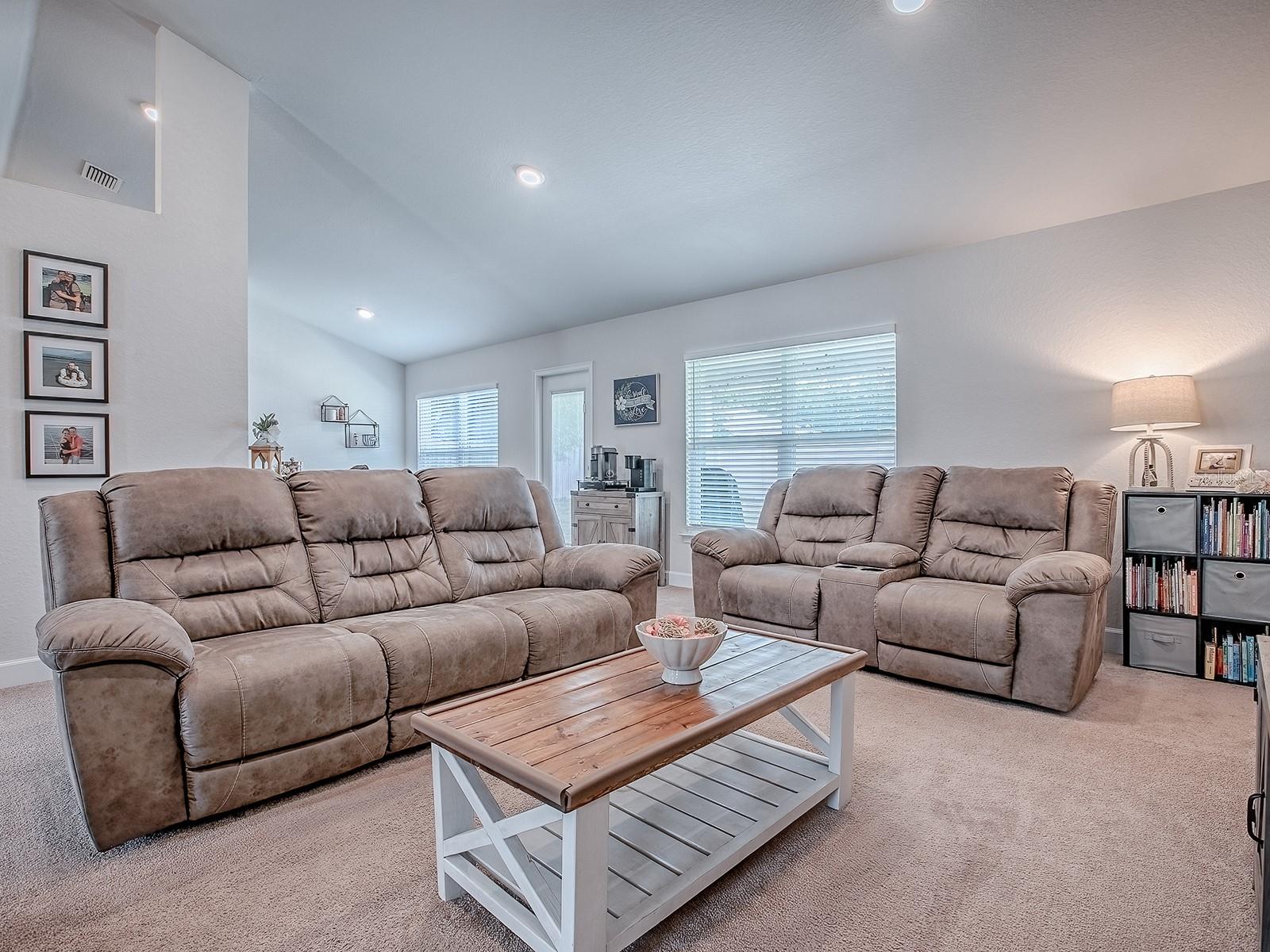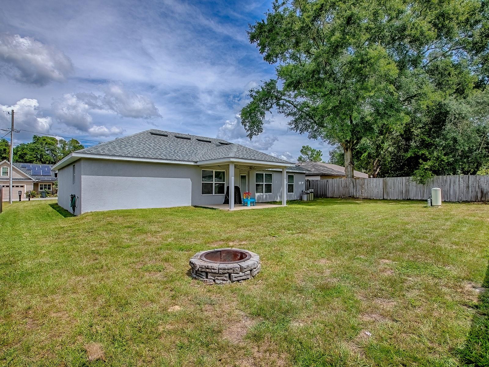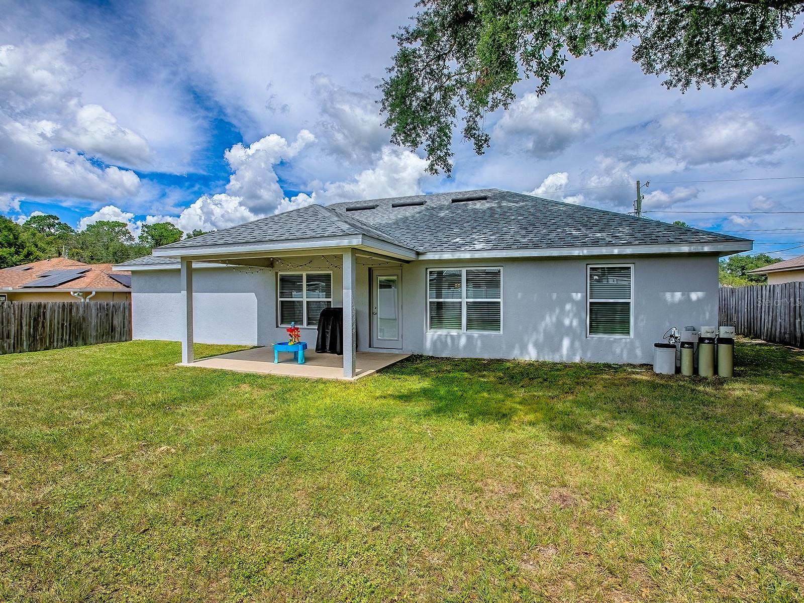 Why wait for new construction when this beautiful 2023 block home is move-in ready and loaded with upgrades? This spacious 4 bedroom, 2 bathroom property offers modern style, thoughtful features, and a desirable location near The Villages—all with no HOA or CDD fees. Plus, it comes with the RARE opportunity to assume an existing loan at only 4.99%, a huge advantage compared to today’s interest rates! Step inside and you’ll immediately notice the bright and open floor plan, perfect for both everyday living and entertaining. The living room flows seamlessly into the dining area and upgraded kitchen, where you’ll find rich wood cabinetry, stainless steel appliances, and plenty of counter space. Unlike many new builds, this home has been thoughtfully upgraded with details that make a big difference, including ceiling fans, a whole-house water softener and filtration system, and even plywood flooring in the attic for additional storage. The flexible floor plan includes a 4th bedroom without a built-in closet, making it ideal for use as a guest bedroom, office, hobby space, or den. The split-bedroom layout ensures privacy, with the master suite tucked away from the guest rooms. The master bedroom is a true retreat, featuring a tray ceiling, dual walk-in closets, and a spa-like ensuite bathroom with double vanities and a modern walk-in shower. The guest bedrooms are well-sized and comfortable, offering plenty of space for family or visitors. Additional upgrades include a built-in TAEXX in-wall pest control system, giving you peace of mind and convenience. The nearly fully fenced backyard is generously sized and ready for pets, play, or outdoor entertaining. Located just minutes from The Villages, you’ll enjoy quick access to shopping, dining, medical facilities, and entertainment while still being tucked away in a peaceful residential community. With no HOA restrictions or costly CDD fees, you’ll have the freedom to truly enjoy your property. This home combines the best of both worlds: the benefits of a new build without the wait, plus thoughtful upgrades you won’t find in standard construction. And with the assumable 4.99% loan, this is an incredible opportunity for qualified buyers to secure lower monthly payments. Don’t miss your chance—schedule your private showing today!