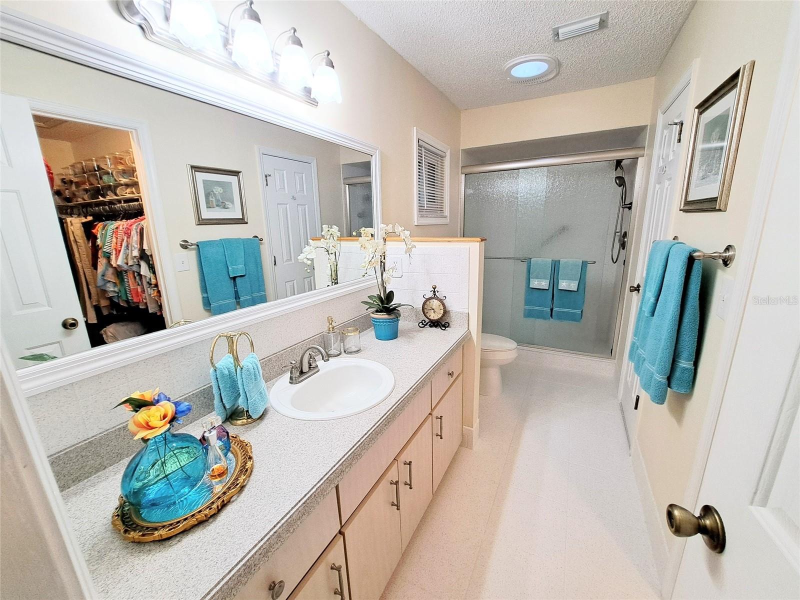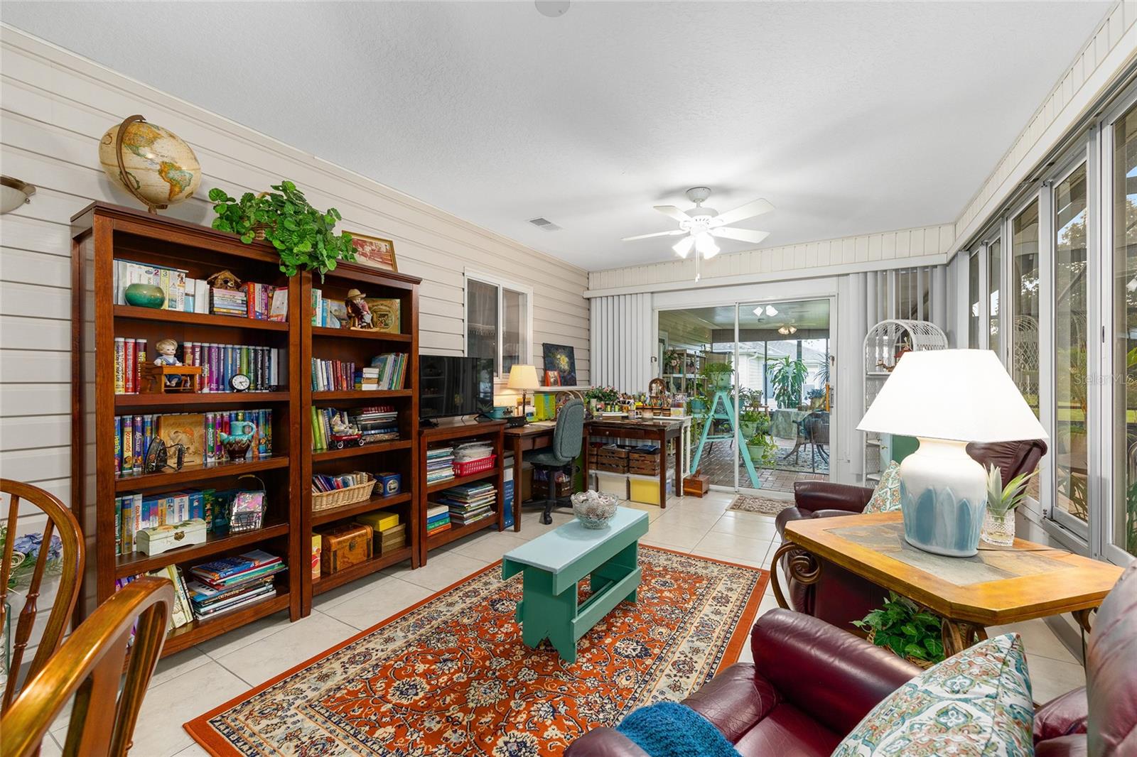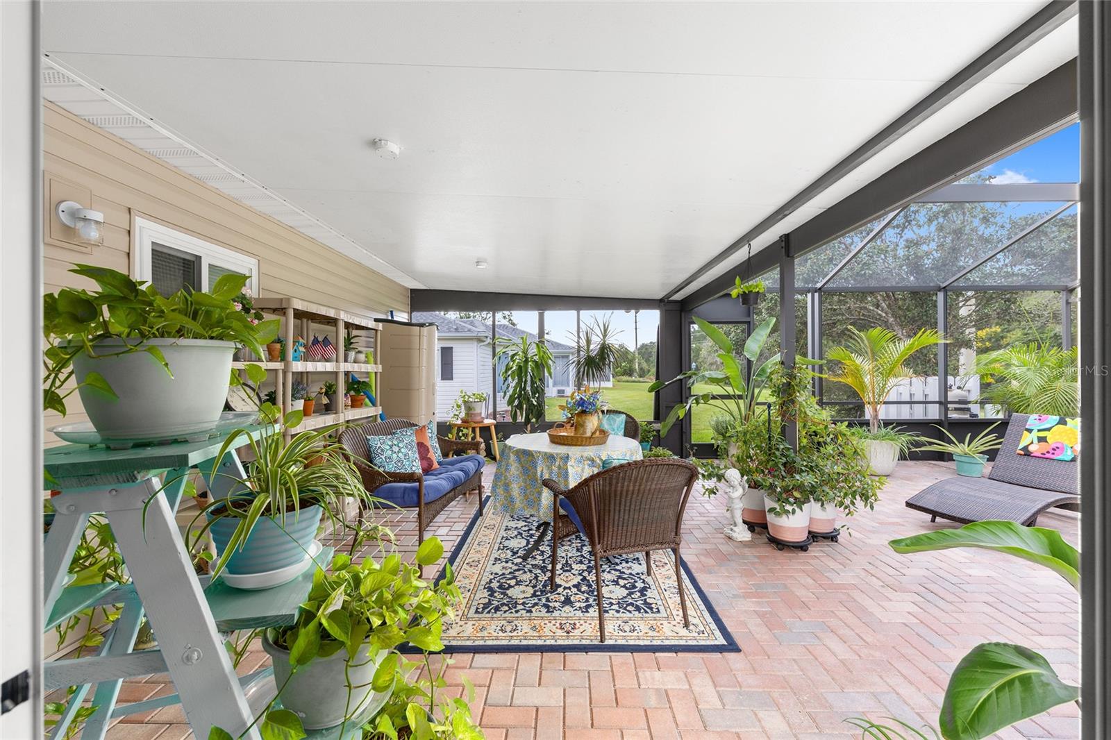 FLORIDA PARADISE AT ITS BEST! THIS 2-BEDROOM, 2-BATHROOM, SALTWATER POOL HOME WELCOMES YOU! Located just 1 mile from The Villages ®, in the sought-after 55+ Spruce Creek South community offers perfect blend of comfort, convenience & Florida living. The elegant crystal windowed Front Door invites you into the Entry Area showcasing luxury vinyl floors that flow seamlessly throughout the home. The Entry opens into a spacious Living room with vaulted ceiling, ample space to accommodate large furniture, oversized window brings in ample light with a 4-light ceiling fan adds to extra comfort. The living room flows into a specious Dining room with ample wall space, vaulted ceiling and bright 6-1-light chandelier. Beautiful Eat-in Kitchen has generous counter space and cabinets, custom pantry with pull-out drawers, Whirlpool appliances, double sink, skylight with ceiling fan and light. The Florida room opens to a stunning outdoor retreat with a large covered Lanai, Birdcage, and a SOLAR HEATED, SALTWATER IN-GROUND POOL overlooking a private backyard with no rear neighbor. The pool area is paved with beautiful pink bricks. The Florida room under air, with acrylic windows, and tile flooring, perfect for relaxing with your morning coffee, or as game room, or accommodate guests. The bright 2-fan lights may easily convert it into an art-crafts room. The speciose Primary Suite features a window to the backyard, large shirt closet, ceiling fan, en-suite bathroom (Resurfaced in December 2025) with step-in tiled shower with double rain glass doors (2025), solar tube/exhaust fan (2024), single sink with large mirror, and 2-walk-in closets (clothing/utility). The Guest bedroom is also nice size with 2 windows, ceiling fan, and walk-in closet. Both bathrooms completely resurfaced. Guest Bathroom features 1 sink with large mirror, walk-in resurfaced shower (2025) with double rain glass doors (2025), solar tube (2024), and exhaust fan (2025). The Garage houses the Washer and Dryer (2025), Sink, Water Heater, Wall Cabinets and Shelves, Overhead Storage Rack, Attic has R38 sprayed insulation, attic pulldown for extra storage, and 2-Ceiling Fans with Lights. The Garage Door (2025) has 2-remote openers, and screen outside doors. The Outside has long Custom Painted Driveway, Street Light, house lights (2024) and the Mailbox. The landscaping has been meticulously maintained all around the house. New double pane windows installed by Window World, New awnings and shutters by Whyte Aluminum, 25 commercial white roof above the lanai. This beautifully updated home offers Country Club living with the convenience of nearby shopping, dining, VA and medical facilities, all accessible by golf cart. Spruce Creek South offers resort style amenities, including: 24/7 guard house, Restaurant, Clubhouse with fitness center, RV Storage, his/her sauna, card game room, art/crafts room, library, billiard room, kitchen, entertainment center with stage, outdoor picnic area with pool and jacuzzi, 18-hole golf course, Volleyball/Pickleball/Tennis courts, Shuffle Board, Softball field, Gated storage for RVs and extra vehicles (at low cost), Dog park, Dozens of Clubs and Social events, and more to enjoy year-round. Roof(2024), Vinyl Siding (2024), Gutters, Leafguard & Downspouts(2024). All Pool equipment including solar heat panel(2023), Birdcage(2022), additional insulation (2024).