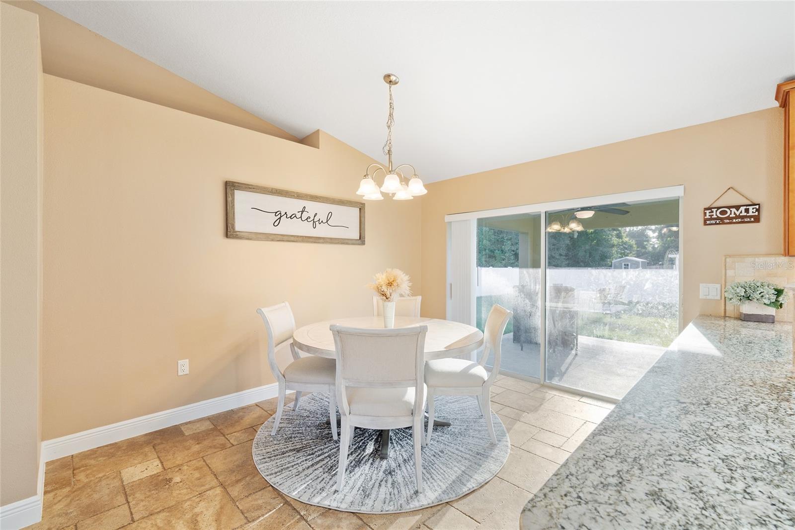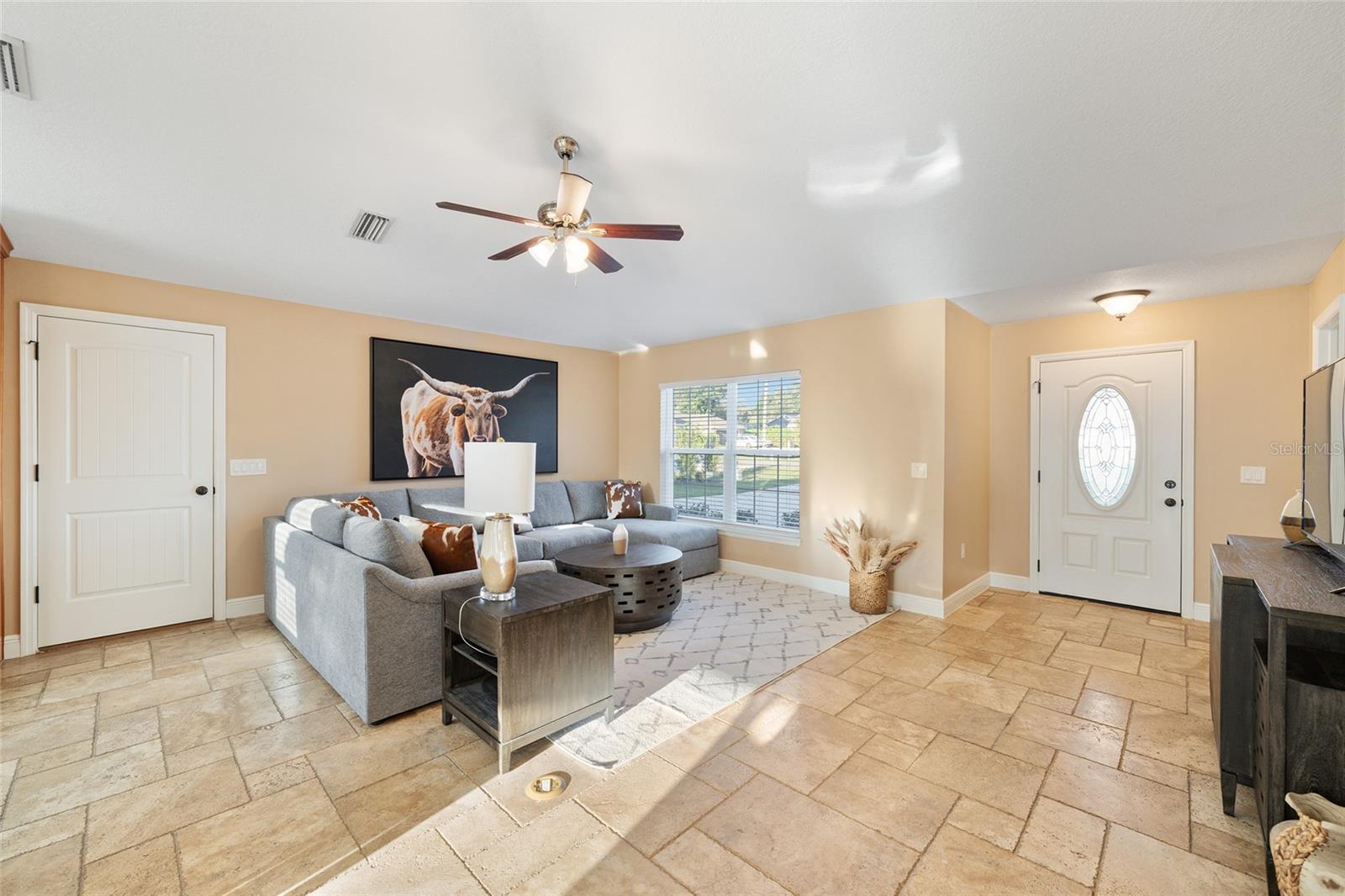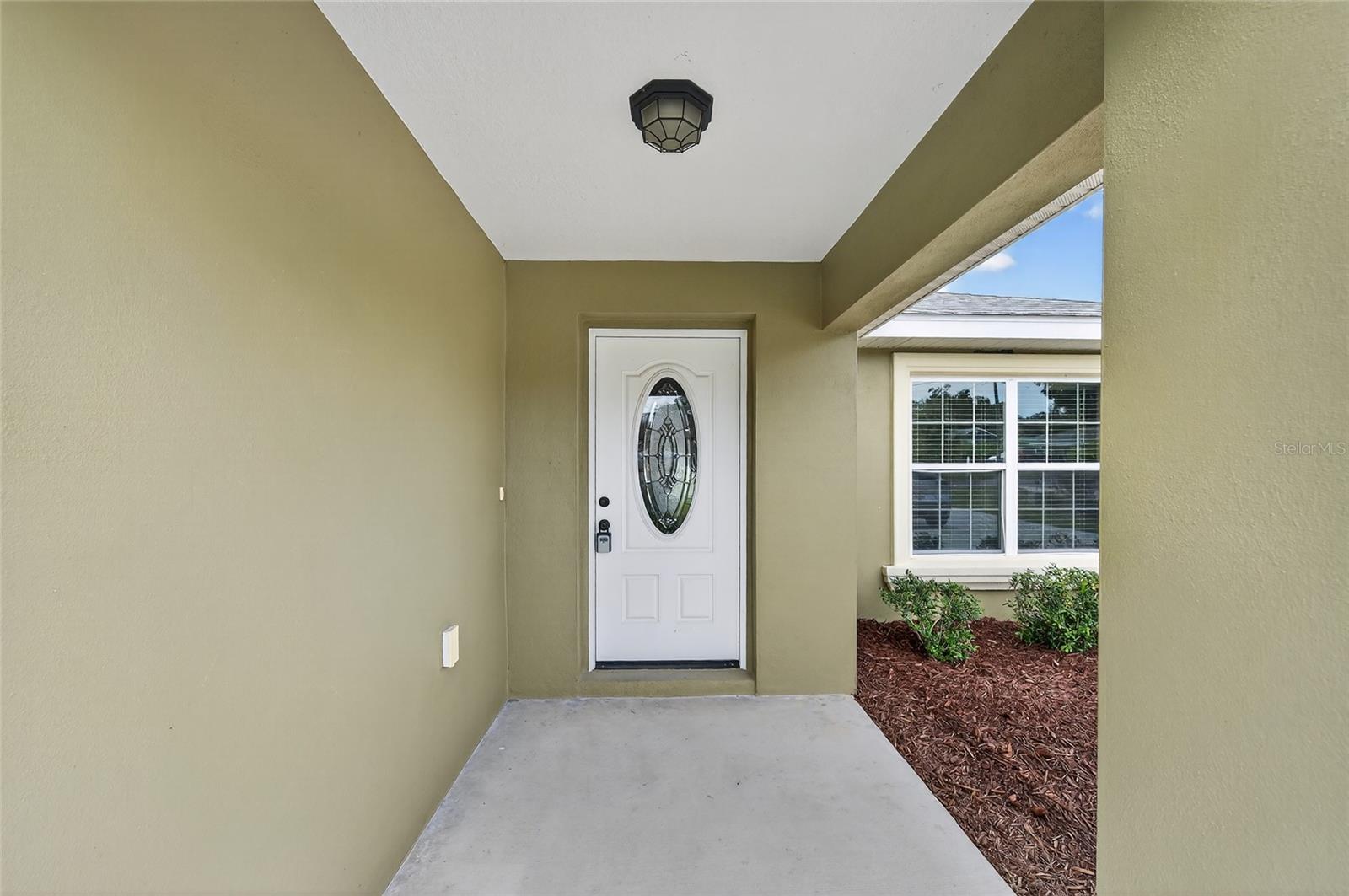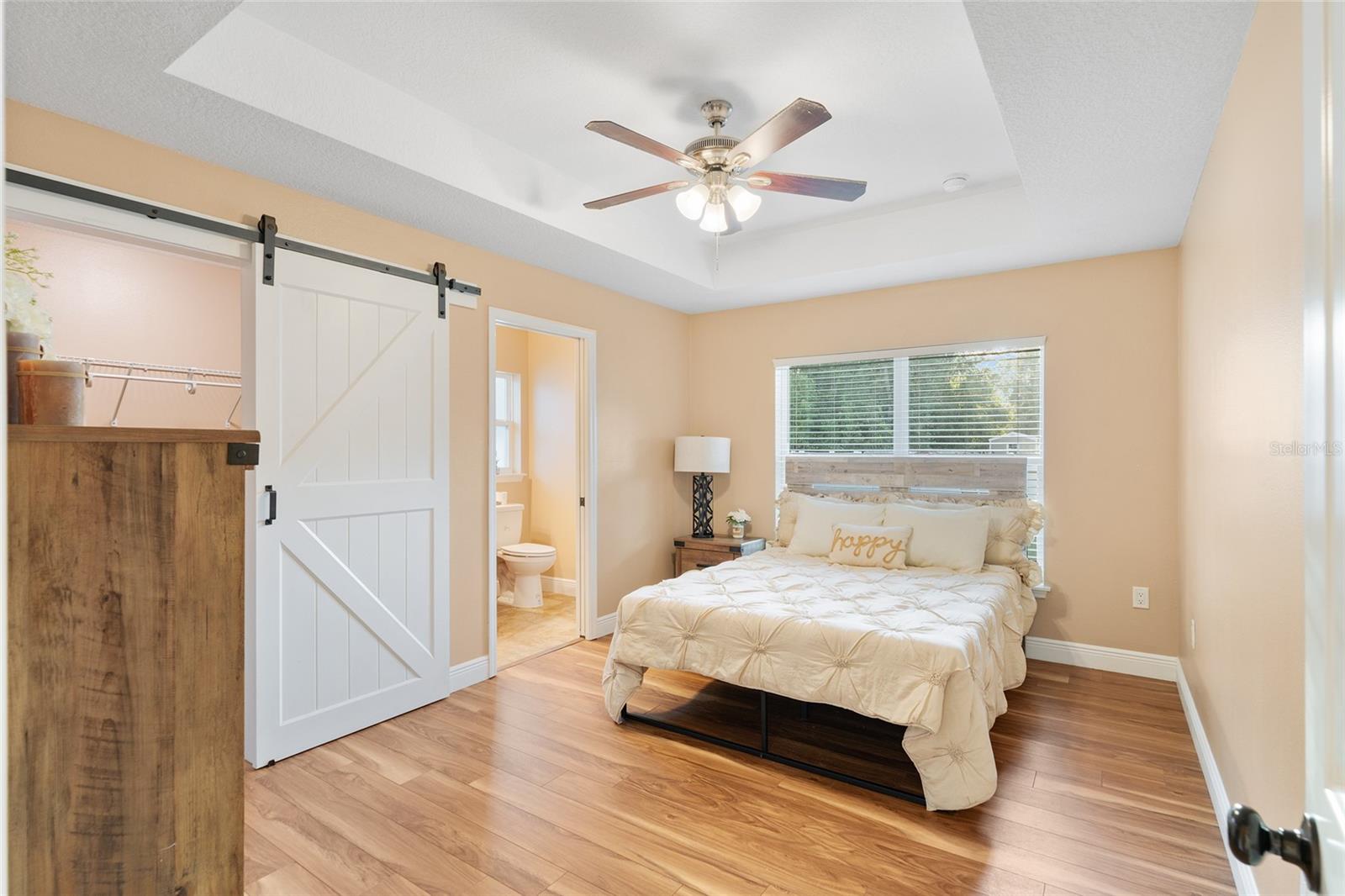 BETTER THAN NEW! This stunning 3-bedroom, 2-bath home built in 2021 offers an OPEN FLOOR PLAN with thoughtful upgrades throughout. Inside, you’ll find DESIGNER CERAMIC TILE in the main living areas and bathrooms paired with WATERPROOF LUXURY VINYL PLANK in the bedrooms—NO CARPET ANYWHERE! The interior has been FRESHLY PAINTED in a neutral palette and features UPDATED DORRS AND LIGHTING that give the home a clean, modern feel. The kitchen is a showpiece with SOFT-CLOSE CABINETRY, UNDER-CABINET LIGHTING, and a spacious bar for casual dining and entertaining. The primary suite includes a WALK-IN CLOSET with modernized sliding barn door, while both guest bedrooms offer large BUILT-IN CLOSETS, giving everyone plenty of storage. Soaring VAULTED CEILINGS enhance the main living area, and a TRAY CEILING in the primary suite adds an elegant touch. Outside, enjoy your covered back porch, NEW VINYL PRIVACY FENCING, and CUSTOM FIREPIT area—perfect for gatherings or quiet evenings. Additional highlights include a 2-car garage, convenient location near The Villages and Lake Weir, and the freedom of no HOA fees.