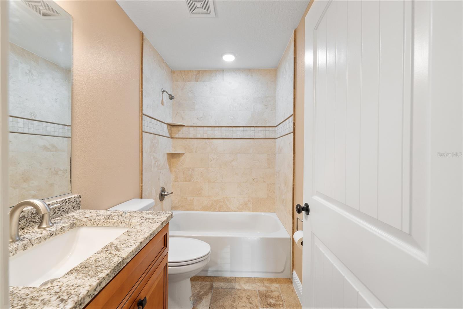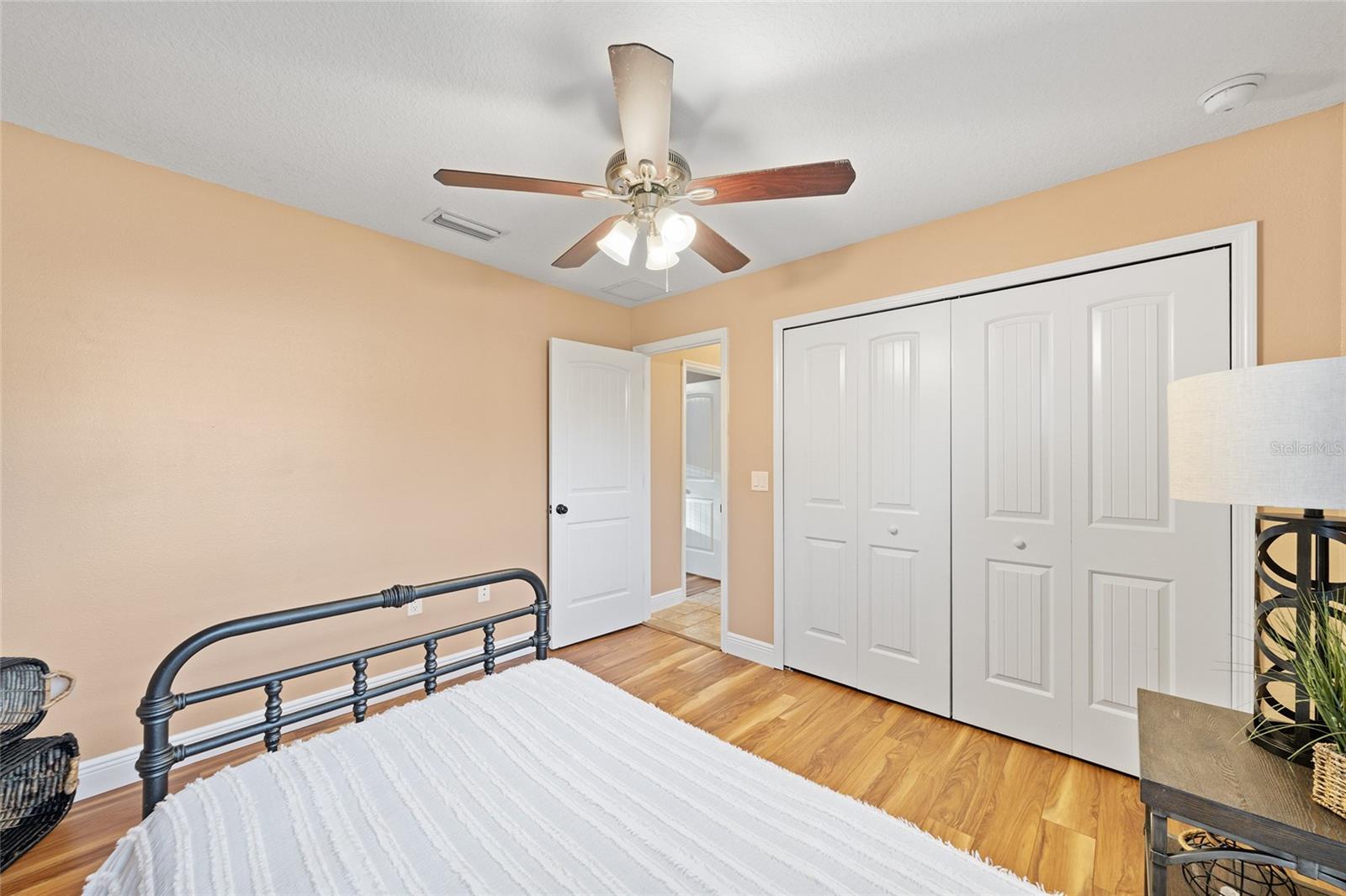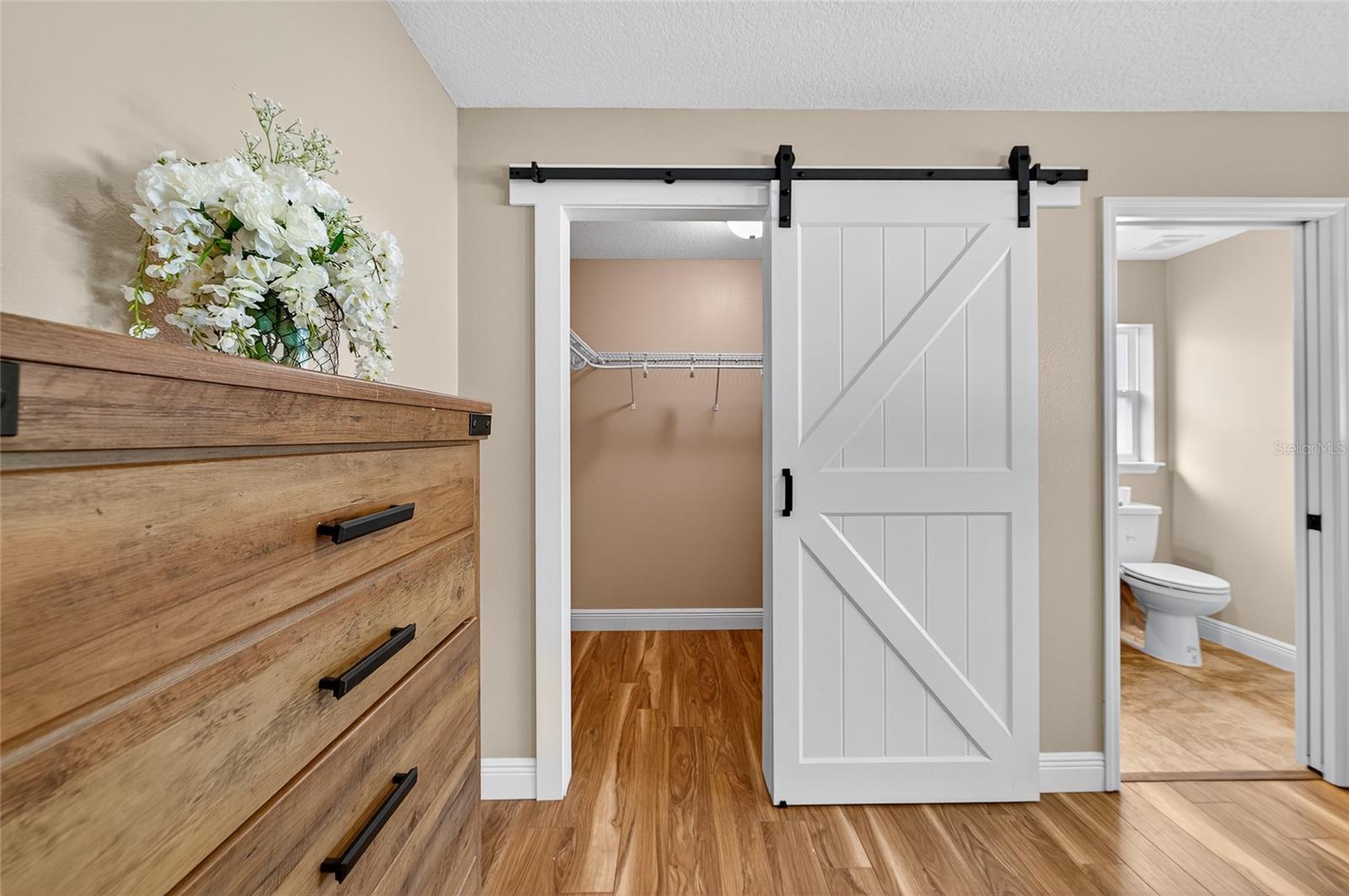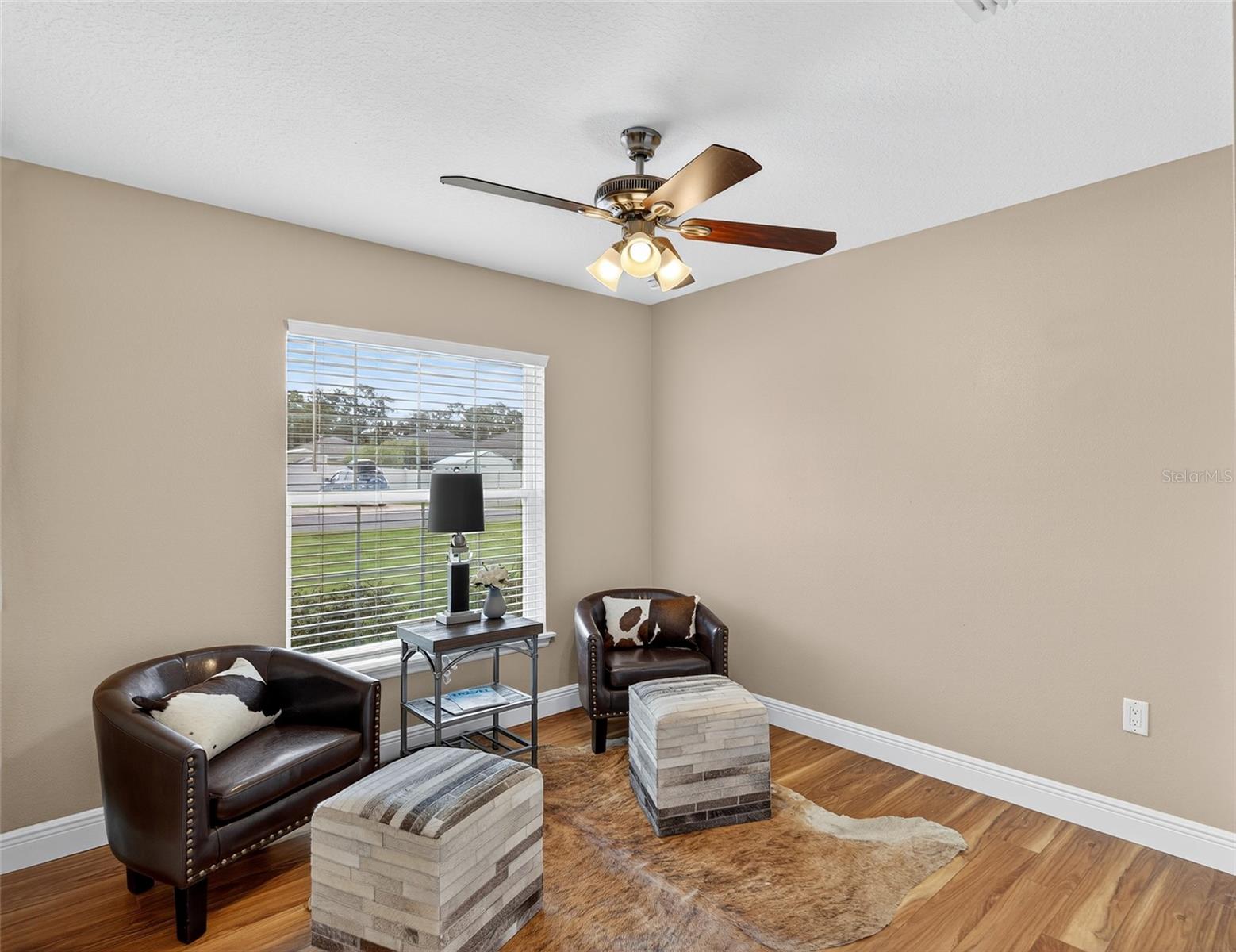 BETTER THAN NEW! This stunning 3-bedroom, 2-bath home built in 2021 offers an OPEN FLOOR PLAN with thoughtful upgrades throughout. Inside, you’ll find DESIGNER CERAMIC TILE in the main living areas and bathrooms paired with WATERPROOF LUXURY VINYL PLANK in the bedrooms—NO CARPET ANYWHERE! The interior has been FRESHLY PAINTED in a neutral palette and features UPDATED DORRS AND LIGHTING that give the home a clean, modern feel. The kitchen is a showpiece with SOFT-CLOSE CABINETRY, UNDER-CABINET LIGHTING, and a spacious bar for casual dining and entertaining. The primary suite includes a WALK-IN CLOSET with modernized sliding barn door, while both guest bedrooms offer large BUILT-IN CLOSETS, giving everyone plenty of storage. Soaring VAULTED CEILINGS enhance the main living area, and a TRAY CEILING in the primary suite adds an elegant touch. Outside, enjoy your covered back porch, NEW VINYL PRIVACY FENCING, and CUSTOM FIREPIT area—perfect for gatherings or quiet evenings. Additional highlights include a 2-car garage, convenient location near The Villages and Lake Weir, and the freedom of no HOA fees.