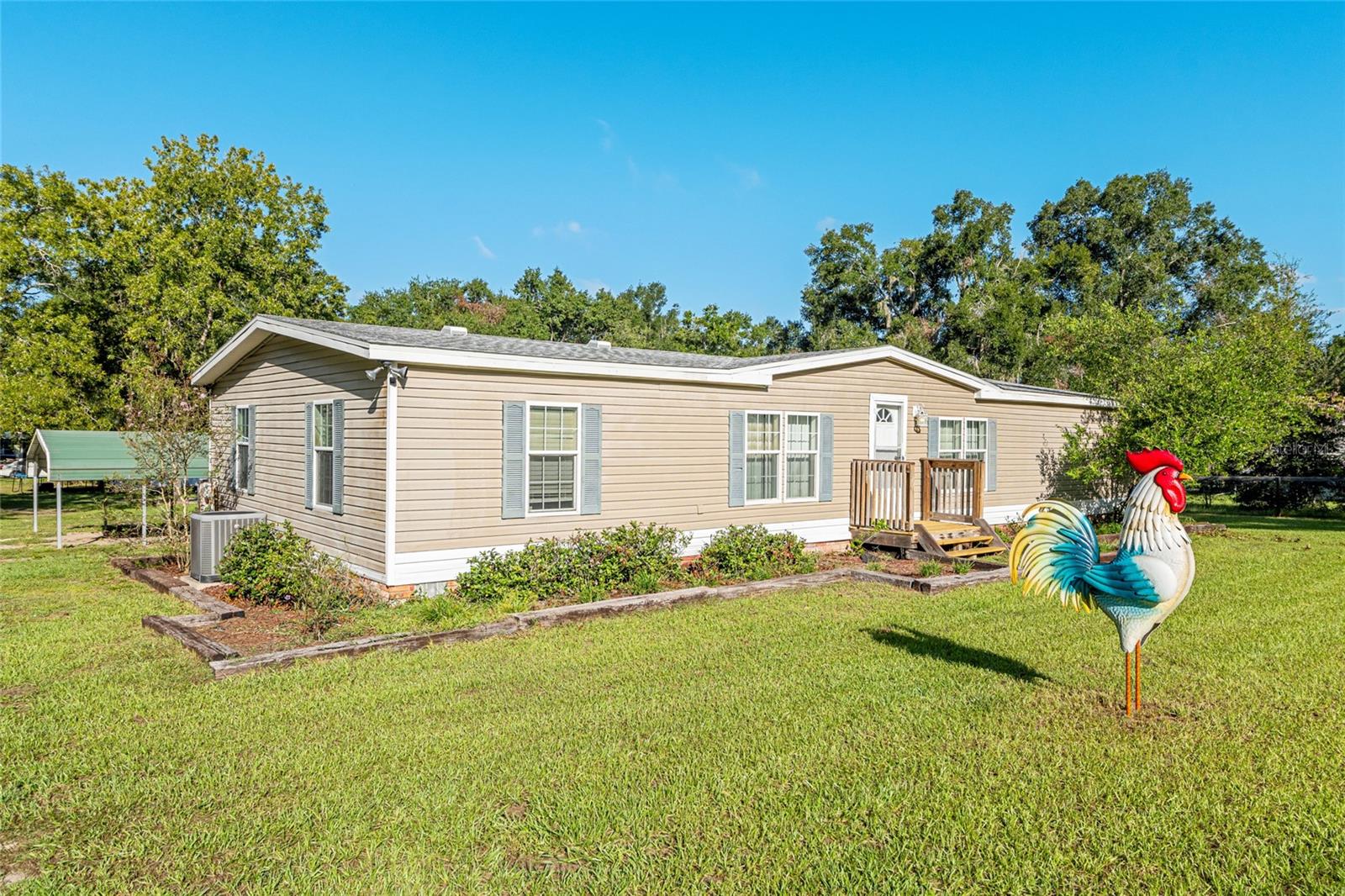 MOVE IN READY!! This 3 bedroom 2 bath Home is Sitting on Just under 1 Acre Completely Fenced. This is THE PERFECT Location for Easy Commuting to Ocala and The Villages. This Home Has New Roof 2025, HVAC 2018, Whole House Renovation 2017, Includes: New Electrical Service and Wiring Throughout, Completely Re-Plumbed, New Sub-Floors, Drywall, Bathrooms, Kitchen, Water Heater, Paint and Flooring Throughout. Newer Deck Around Large Above Ground Pool. The Fantastic 900+ sq ft Workshop/Garage has Commercial Grade Concrete Floor along with Electric, Water and Septic Hook-Ups. Also There is an RV Hook Up with Water and Electric on the Property. The Home has Nice Size Chicken Coop and Garden Area for Those Who Love The Farm Life. This Home Had Strapping and Skirting Brought Up to HUD Codes in 2021 to Qualify for FHA and VA Mortgage. This Home is Perfect For A Family Looking For a Quiet Country Setting but Close to Restaurants, Shopping, Healthcare, and Places of Woship. THIS GEM WLL NOT LAST, HURRY! CALL TODAY FOR YOUR PRIVATE TOUR!
