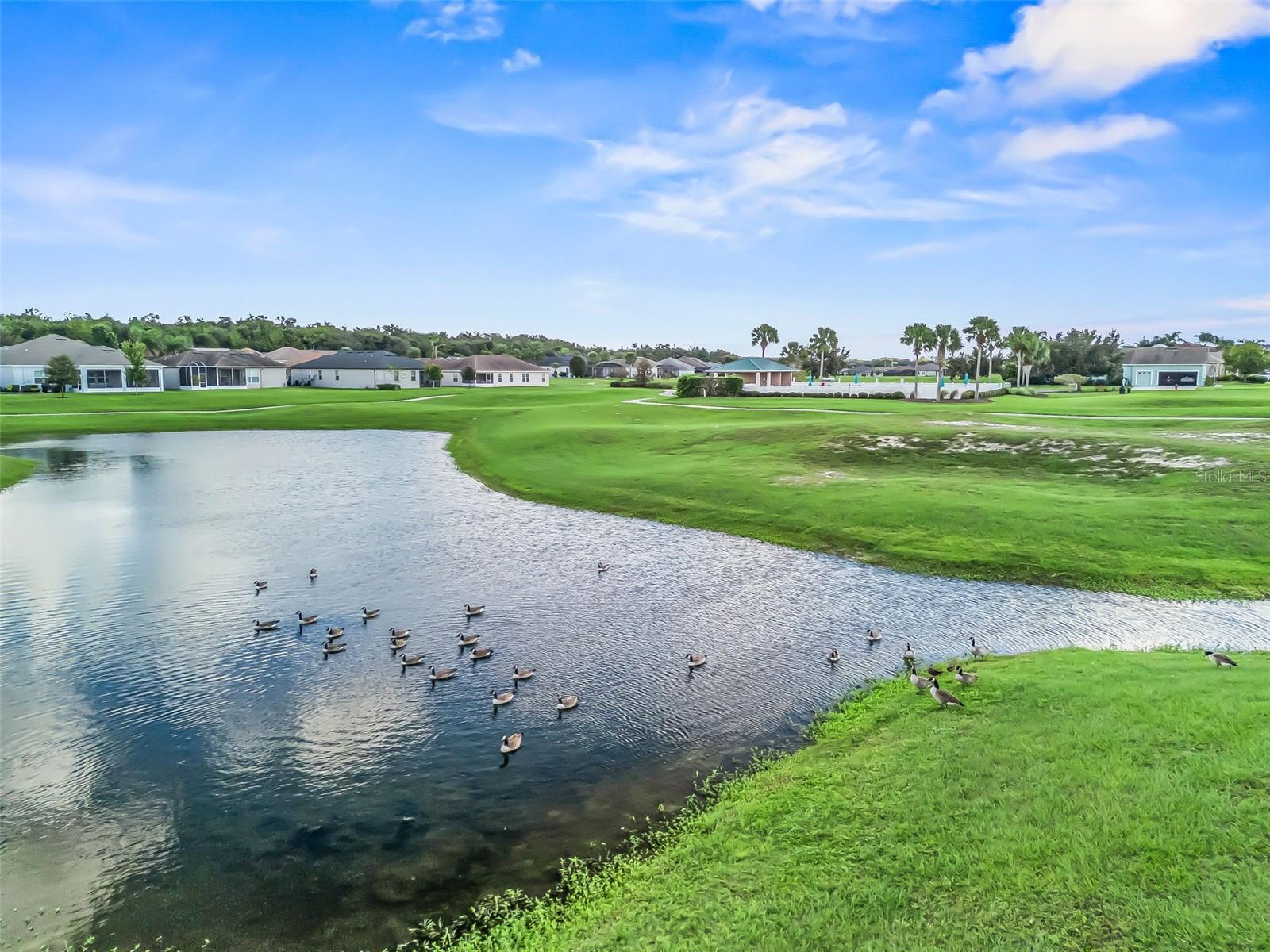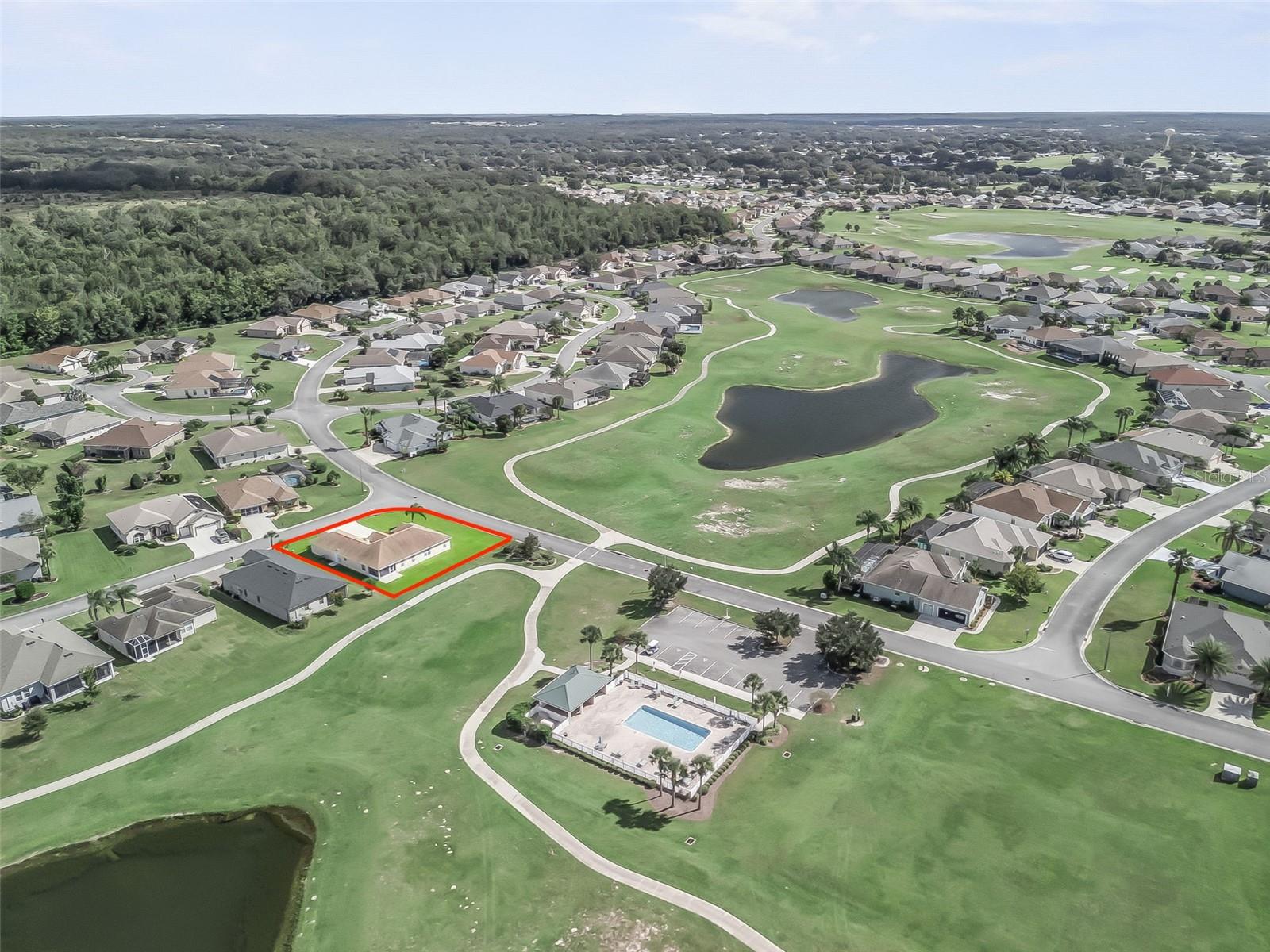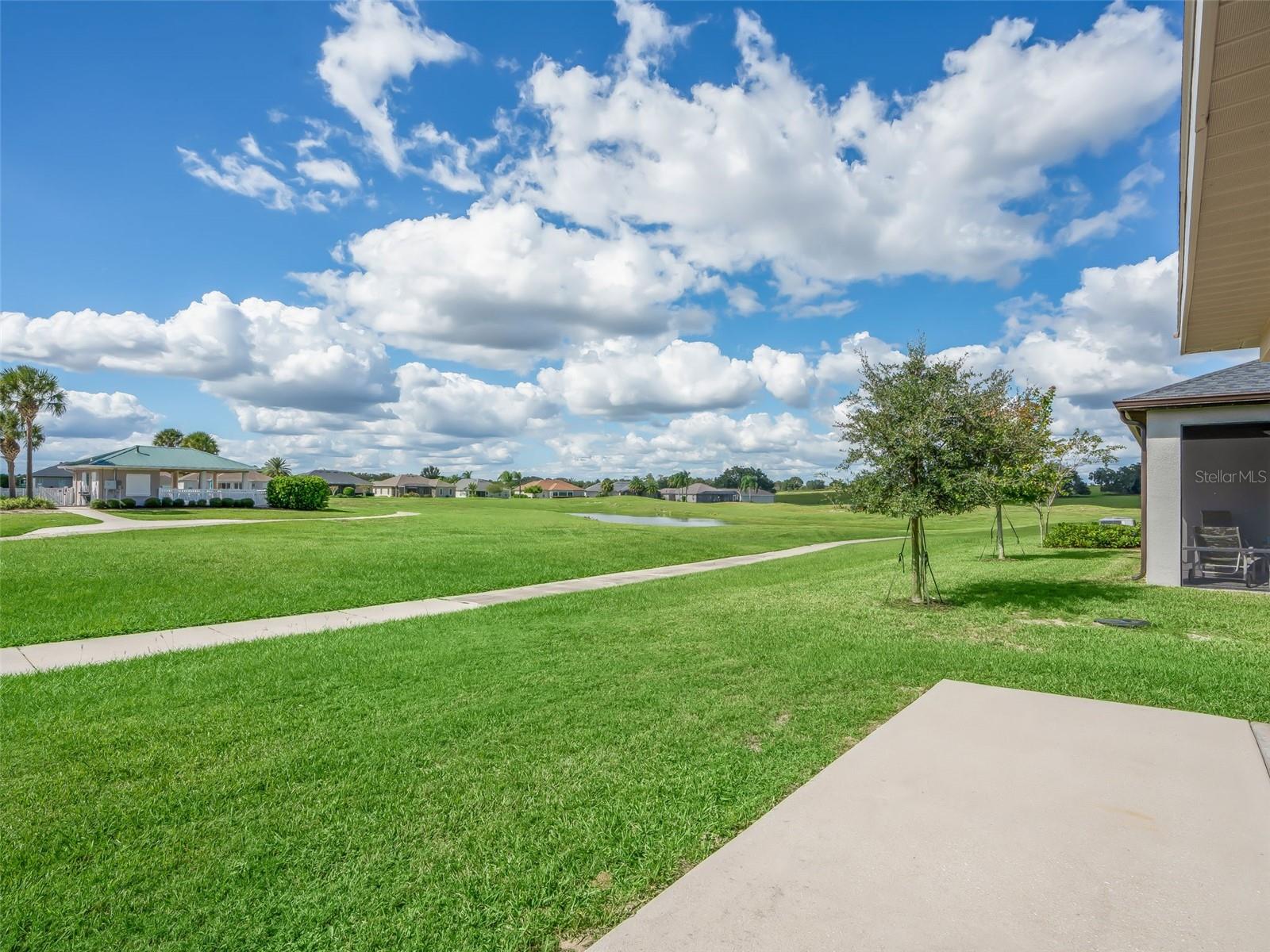 Stonecrest is a 55+ gated golf course community with all the amenities and 4 pools (one indoor), and just a Bridge Away By Golf Cart To The Villages! Charming 3/2 Birch on a Corner Lot with a Side Facing 2 Car + Golf Cart Garage, Freshly Painted Exterior, No Rear Neighbors, Open Concept Floor Plan, and Overlooks the Meadows Community Pool & a Pond! You will Love This Open Concept Floor Plan that is Spacious, Light and Bright, just perfect for Entertaining Friends and Family! This well appointed home boasts Tremendous Curb appeal featuring an Oversized Double Driveway, Meticulous Professional Landscaping, an Elegant Covered Front Entrance with Sidelight accented Front Door, and an Upgraded Overhead Porch light. As you enter into the home you are greeted with a Stunning Sparkling Chandelier, an Open Concept Floor Plan, and a spacious Dining area accented by a Huge Designer Chandelier. The New Updated Kitchen showcases Corian countertops, White Shaker cabinetry, Generous breakfast bar, a Pantry closet and an Eat -In area with French door access to the Screened Lanai! The Luxurious Primary suite offers a lovely Green space view, Walk in Closet, and an En Suite bathroom. The En Suite bathroom offers a Two Sink Vanity, Tiled Walk in Shower, and Soaking Tub. The two additional bedrooms feature nice size built in closets, Bedroom Three offers an Elegant French door entry, and provides ample space for your guests to be comfortable. Retreat to the Screened Lanai with freshly painted concrete flooring to relax in Plenty of Privacy, with No Rear Neighbors, and Beautiful Green Space, and Pond View! Enjoy backyard BBQ's, and Fabulous Florida Sunsets from the nice size back patio! If you are looking for a Well-Designed Freshly Painted Elegant home with a Fantastic Open Concept Floor Plan, No Rear Neighbors, and Close to a community pool, then this is the Home for You! New Roof at Closing! Stonecrest is a 55+ gated golf course community with all the amenities, pools, pickleball courts, softball, 18 hole championship golf course, Broad Stripes Golf & Social Club and over 80 different clubs to join! It is a community with Private Roads! As a private gated golf course community, you can expect a high level of privacy and security. A WONDERFUL LIFESTYLE AWAITS YOU IN STONECREST!