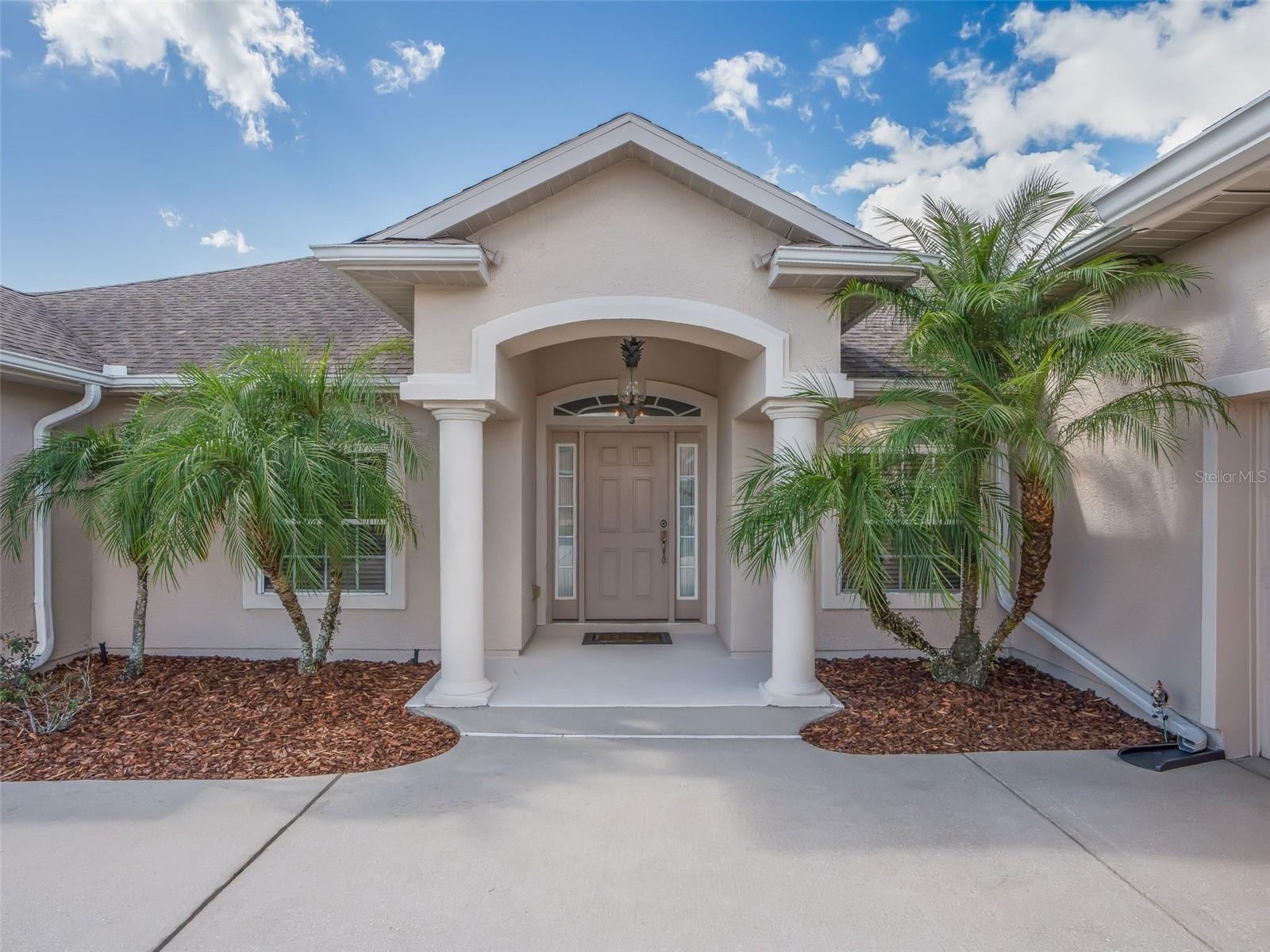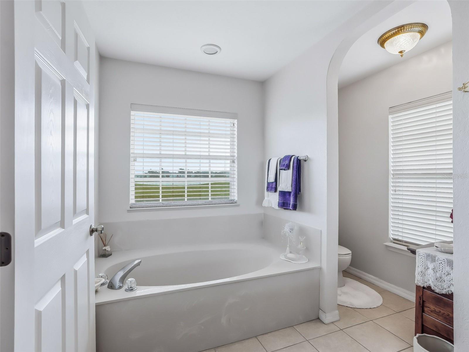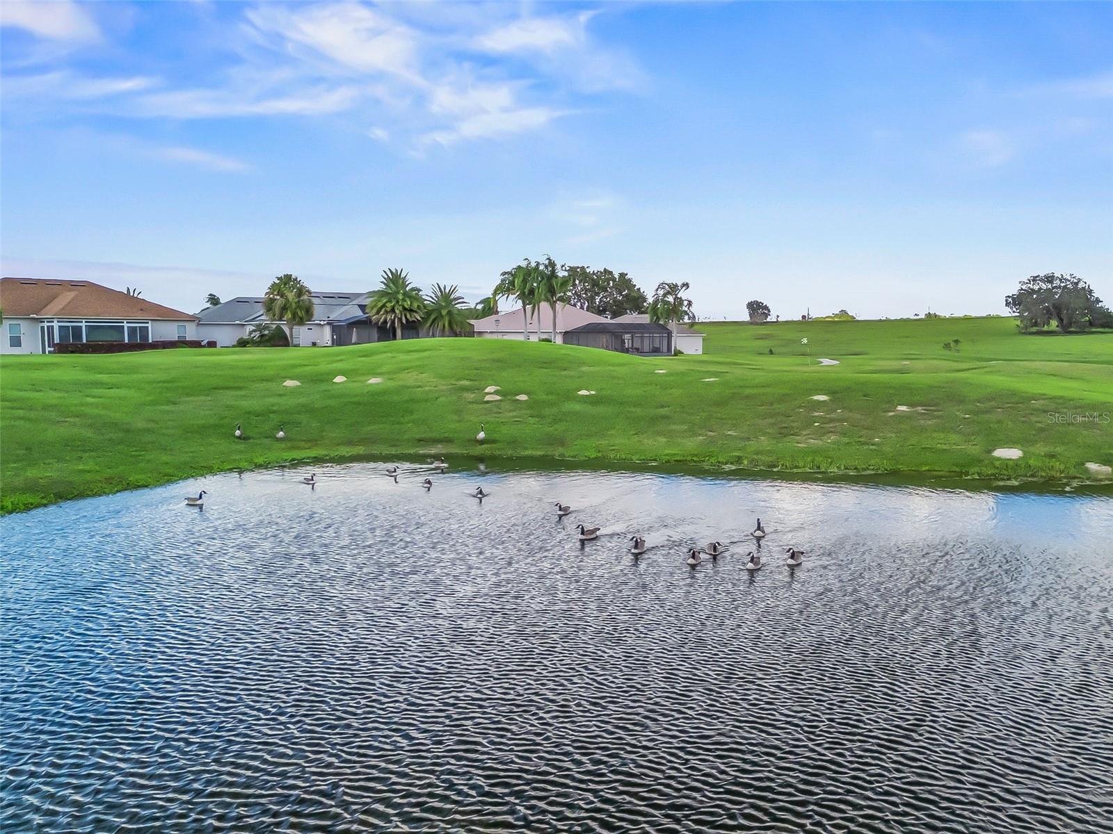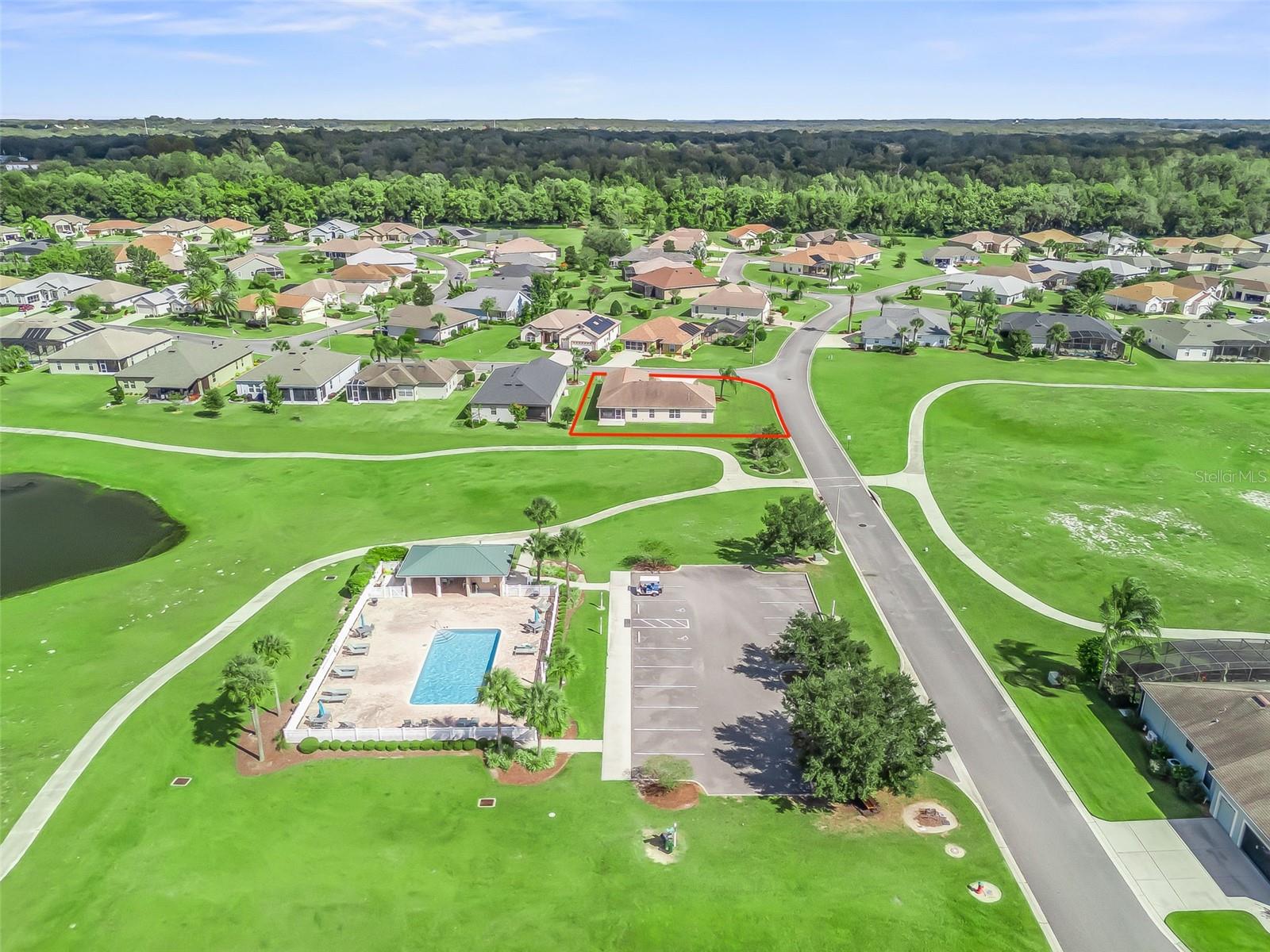 Stonecrest is a 55+ gated golf course community with all the amenities and 4 pools (one indoor), and just a Bridge Away By Golf Cart To The Villages! Charming 3/2 Birch on a Corner Lot with a Side Facing 2 Car + Golf Cart Garage, Freshly Painted Exterior, No Rear Neighbors, Open Concept Floor Plan, and Overlooks the Meadows Community Pool & a Pond! You will Love This Open Concept Floor Plan that is Spacious, Light and Bright, just perfect for Entertaining Friends and Family! This well appointed home boasts Tremendous Curb appeal featuring an Oversized Double Driveway, Meticulous Professional Landscaping, an Elegant Covered Front Entrance with Sidelight accented Front Door, and an Upgraded Overhead Porch light. As you enter into the home you are greeted with a Stunning Sparkling Chandelier, an Open Concept Floor Plan, and a spacious Dining area accented by a Huge Designer Chandelier. The New Updated Kitchen showcases Corian countertops, White Shaker cabinetry, Generous breakfast bar, a Pantry closet and an Eat -In area with French door access to the Screened Lanai! The Luxurious Primary suite offers a lovely Green space view, Walk in Closet, and an En Suite bathroom. The En Suite bathroom offers a Two Sink Vanity, Tiled Walk in Shower, and Soaking Tub. The two additional bedrooms feature nice size built in closets, Bedroom Three offers an Elegant French door entry, and provides ample space for your guests to be comfortable. Retreat to the Screened Lanai with freshly painted concrete flooring to relax in Plenty of Privacy, with No Rear Neighbors, and Beautiful Green Space, and Pond View! Enjoy backyard BBQ's, and Fabulous Florida Sunsets from the nice size back patio! If you are looking for a Well-Designed Freshly Painted Elegant home with a Fantastic Open Concept Floor Plan, No Rear Neighbors, and Close to a community pool, then this is the Home for You! New Roof at Closing! Stonecrest is a 55+ gated golf course community with all the amenities, pools, pickleball courts, softball, 18 hole championship golf course, Broad Stripes Golf & Social Club and over 80 different clubs to join! It is a community with Private Roads! As a private gated golf course community, you can expect a high level of privacy and security. A WONDERFUL LIFESTYLE AWAITS YOU IN STONECREST!