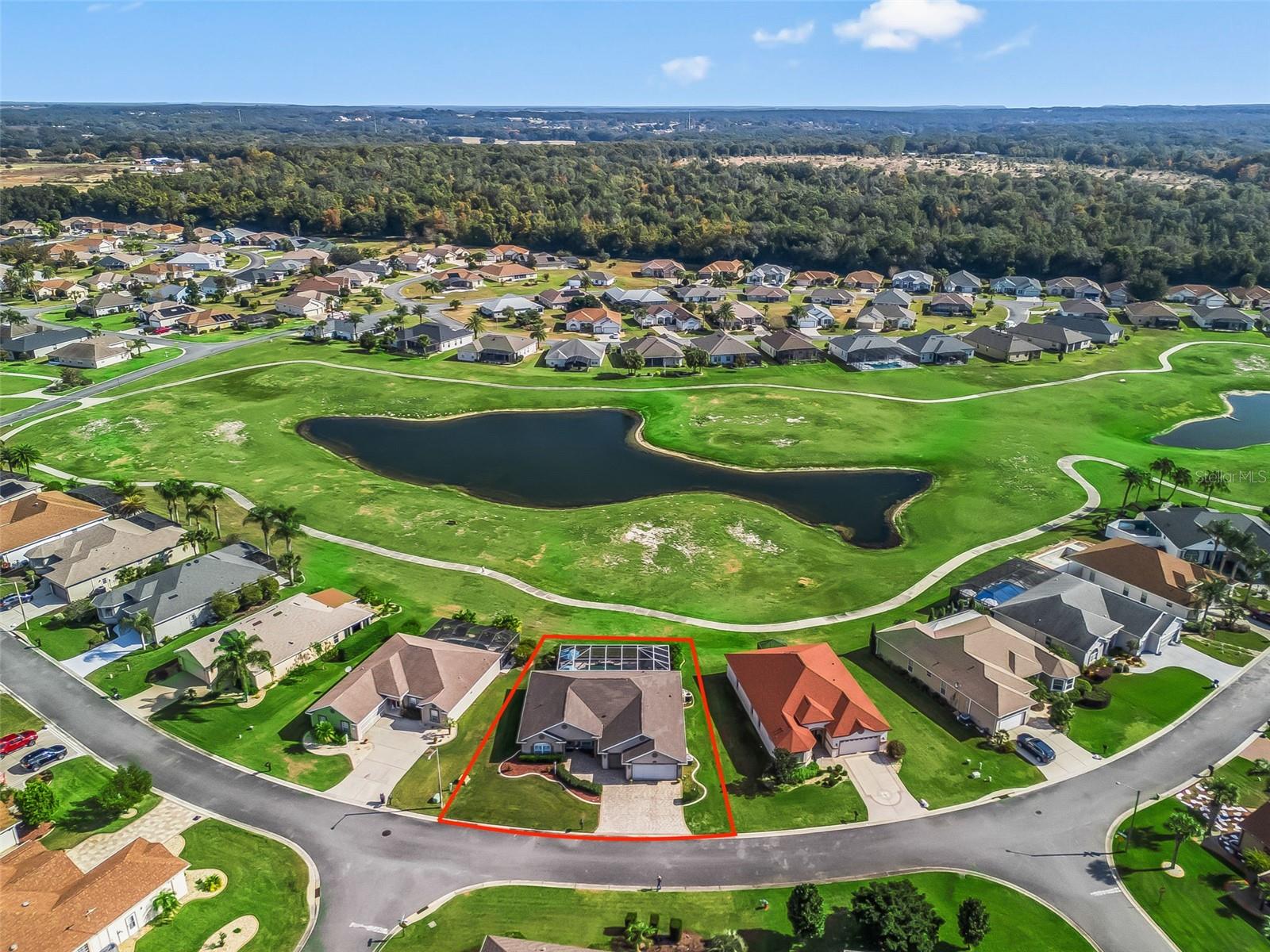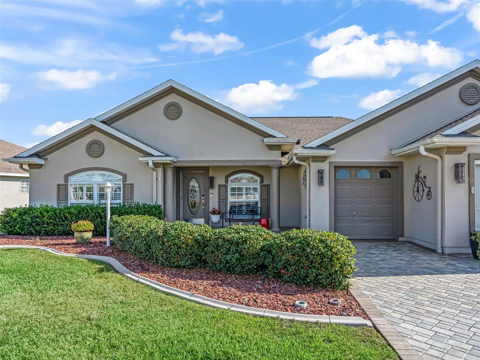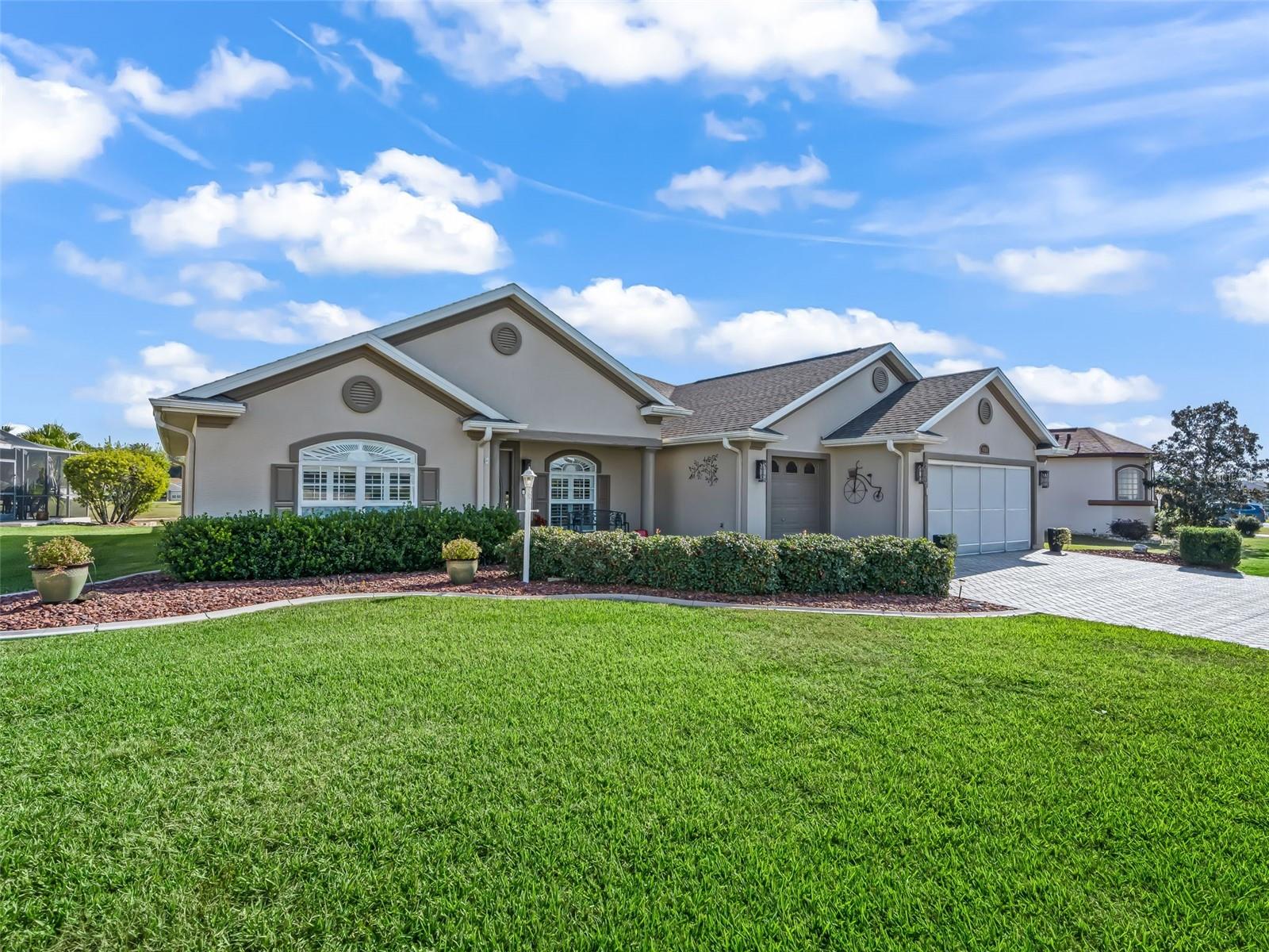 Stonecrest is a 55+ gated golf course community with all the amenities and 4 pools (one indoor), and just a Bridge Away By Golf Cart To The Villages! Come See this Stunning Water Front POOL HOME! 3/3 + Den updated Cedar model with a 2 Car + Golf Cart Garage, ROOF 2022, Vaulted Ceilings, Plantation Shutters, Pool Heater 2022, Pool Pump 2024, No Carpet, No Rear Neighbors, New Lighting & Ceiling Fans, Open Concept, and Split Floor Plan! This Spectacular Home offers Tremendous curb appeal featuring Low Maintenance Professional Tropical Landscaping, Paver Driveway & Walkway, and Covered Front Entrance with an Elegant Leaded Glass Door. This Home Has It All! Exceptional Outdoor Living Space featuring Water Views, a Heated Inground Pool with Water Feature, Enclosed Lanai with Birdcage, Professionally installed Gazebo with a Metal Roof and Accent Lighting, Enhancing the Outdoor Living Experience! You will Love This Open Concept Floor Plan which is Spacious, Light and Bright, just perfect for Entertaining Friends and Family! The Open Updated Kitchen showcases Quartz Countertops, White Wood Cabinetry with Accent Lighting, Stainless Appliances, Generous Breakfast Bar with a Designer Pendant Light Fixture, Pantry Closet, Coffee Bar, an Eat -In Area with a Designer Chandelier, and Stackable Sliders to the Lanai! A Gorgeous Designer Chandelier Adorns the spacious Dining Area which flows to the Huge Great Room featuring Vaulted ceilings with LED top lights, and flows to the Spacious Living area which opens to the 24 x 11 Enclosed Lanai. The Split Floor Plan offers maximum Privacy for both the Owners and their Guest, with the Primary suite commanding one side of the home while the guest bedrooms and guest bathrooms are located on the opposite side of the home. The Luxurious Primary suite boasts a Custom California Walk in Closet, and a New Remodeled En Suite Bathroom showcasing a Huge Tiled Walk in Shower, Private Water Closet, and a Two Sink Vanity featuring Stunning Vessel sinks! The two additional bedrooms feature nice size built in closets. Guest bedroom 2 offers an En suite bathroom with a stunning Tiled Walk in shower, providing your guests with Convenience, and Privacy! Guest bedroom 3 provides a Built in Murphy bed, and is conveniently situated next to the additional guest bath room, which offers Private access to the Lanai, and Pool area. The Enclosed Lanai showcases a Mini Split, Dry Bar, and Insulated Sliding doors providing an Exceptional Additional Living Space, and opens to Your Own Private Oasis! This Gorgeous Tropical Backyard Paradise can be yours! Call now for a private showing. The pool is maintained weekly by "Backyard Pools", HVAC 2016 with UV light for germ eradication. Stonecrest is a 55+ gated golf course community with all the amenities, pools, pickleball courts, softball, 18 hole championship golf course, Broad Stripes Golf & Social Club and over 80 different clubs to join! As a private gated golf course community, you can expect a high level of privacy and security. Overall, this home offers a combination of Exceptional Outdoor Space, Luxurious Features, a Fantastic Location, and a Secure Community Setting. A WONDERFUL LIFESTYLE AWAITS YOU IN STONECREST!