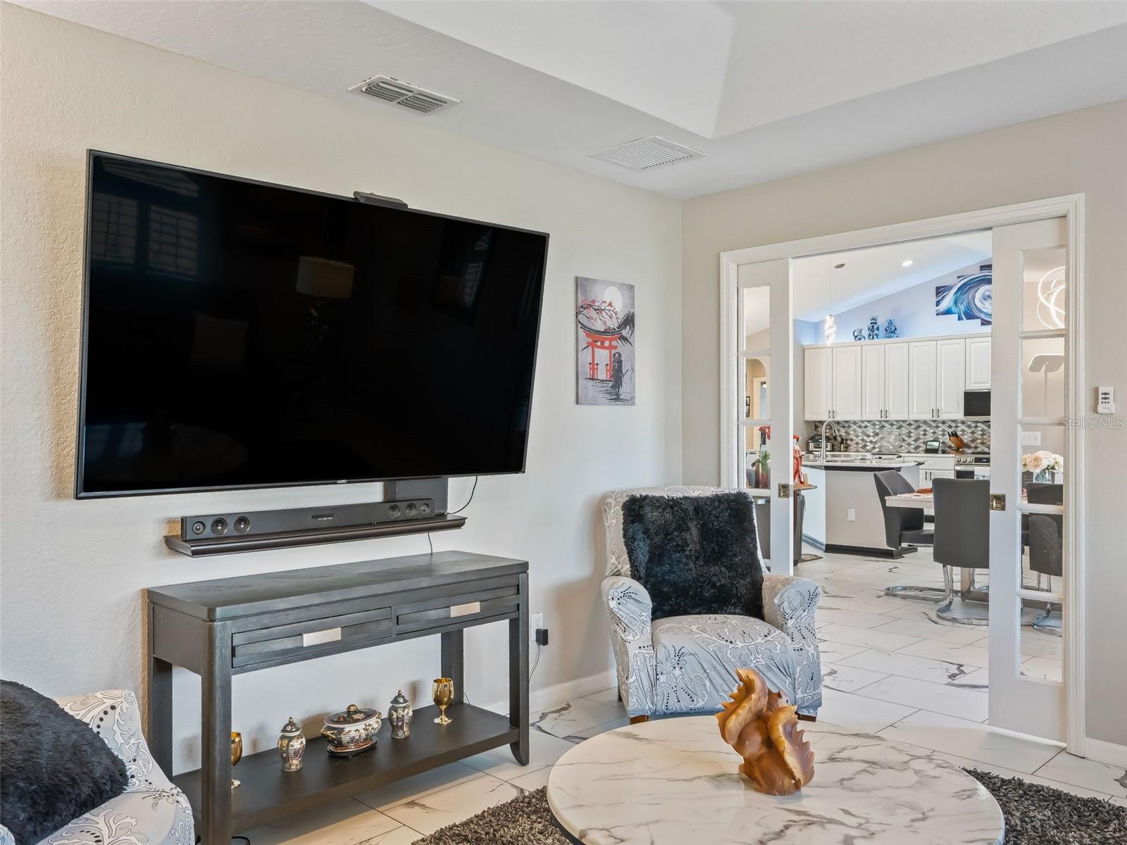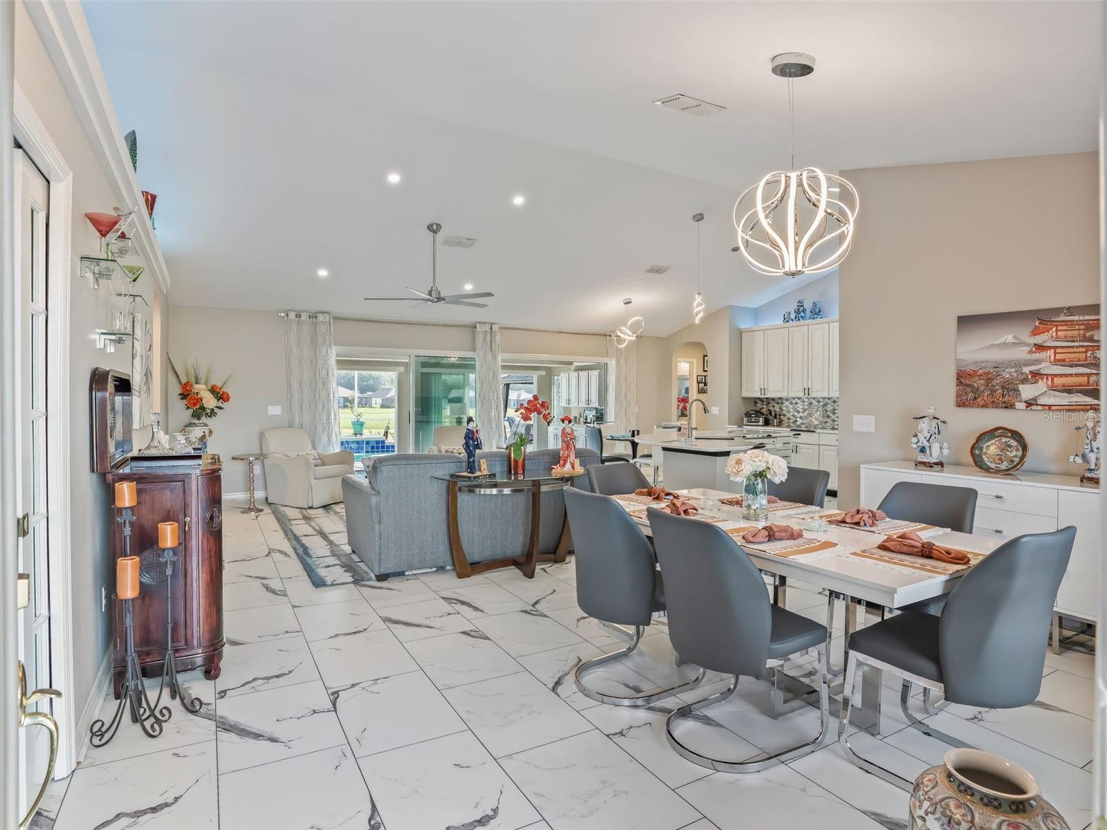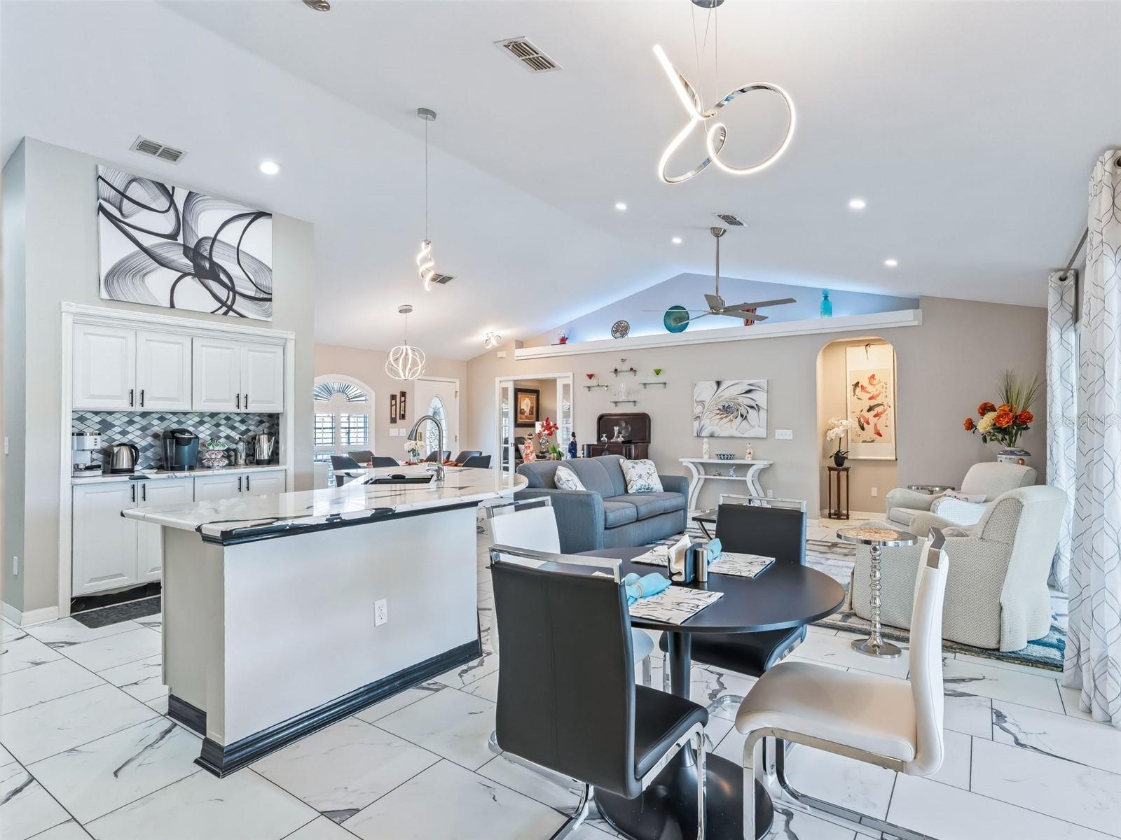 Stonecrest is a 55+ gated golf course community with all the amenities and 4 pools (one indoor), and just a Bridge Away By Golf Cart To The Villages! Come See this Stunning Water Front POOL HOME! 3/3 + Den updated Cedar model with a 2 Car + Golf Cart Garage, ROOF 2022, Vaulted Ceilings, Plantation Shutters, Pool Heater 2022, Pool Pump 2024, No Carpet, No Rear Neighbors, New Lighting & Ceiling Fans, Open Concept, and Split Floor Plan! This Spectacular Home offers Tremendous curb appeal featuring Low Maintenance Professional Tropical Landscaping, Paver Driveway & Walkway, and Covered Front Entrance with an Elegant Leaded Glass Door. This Home Has It All! Exceptional Outdoor Living Space featuring Water Views, a Heated Inground Pool with Water Feature, Enclosed Lanai with Birdcage, Professionally installed Gazebo with a Metal Roof and Accent Lighting, Enhancing the Outdoor Living Experience! You will Love This Open Concept Floor Plan which is Spacious, Light and Bright, just perfect for Entertaining Friends and Family! The Open Updated Kitchen showcases Quartz Countertops, White Wood Cabinetry with Accent Lighting, Stainless Appliances, Generous Breakfast Bar with a Designer Pendant Light Fixture, Pantry Closet, Coffee Bar, an Eat -In Area with a Designer Chandelier, and Stackable Sliders to the Lanai! A Gorgeous Designer Chandelier Adorns the spacious Dining Area which flows to the Huge Great Room featuring Vaulted ceilings with LED top lights, and flows to the Spacious Living area which opens to the 24 x 11 Enclosed Lanai. The Split Floor Plan offers maximum Privacy for both the Owners and their Guest, with the Primary suite commanding one side of the home while the guest bedrooms and guest bathrooms are located on the opposite side of the home. The Luxurious Primary suite boasts a Custom California Walk in Closet, and a New Remodeled En Suite Bathroom showcasing a Huge Tiled Walk in Shower, Private Water Closet, and a Two Sink Vanity featuring Stunning Vessel sinks! The two additional bedrooms feature nice size built in closets. Guest bedroom 2 offers an En suite bathroom with a stunning Tiled Walk in shower, providing your guests with Convenience, and Privacy! Guest bedroom 3 provides a Built in Murphy bed, and is conveniently situated next to the additional guest bath room, which offers Private access to the Lanai, and Pool area. The Enclosed Lanai showcases a Mini Split, Dry Bar, and Insulated Sliding doors providing an Exceptional Additional Living Space, and opens to Your Own Private Oasis! This Gorgeous Tropical Backyard Paradise can be yours! Call now for a private showing. The pool is maintained weekly by "Backyard Pools", HVAC 2016 with UV light for germ eradication. Stonecrest is a 55+ gated golf course community with all the amenities, pools, pickleball courts, softball, 18 hole championship golf course, Broad Stripes Golf & Social Club and over 80 different clubs to join! As a private gated golf course community, you can expect a high level of privacy and security. Overall, this home offers a combination of Exceptional Outdoor Space, Luxurious Features, a Fantastic Location, and a Secure Community Setting. A WONDERFUL LIFESTYLE AWAITS YOU IN STONECREST!