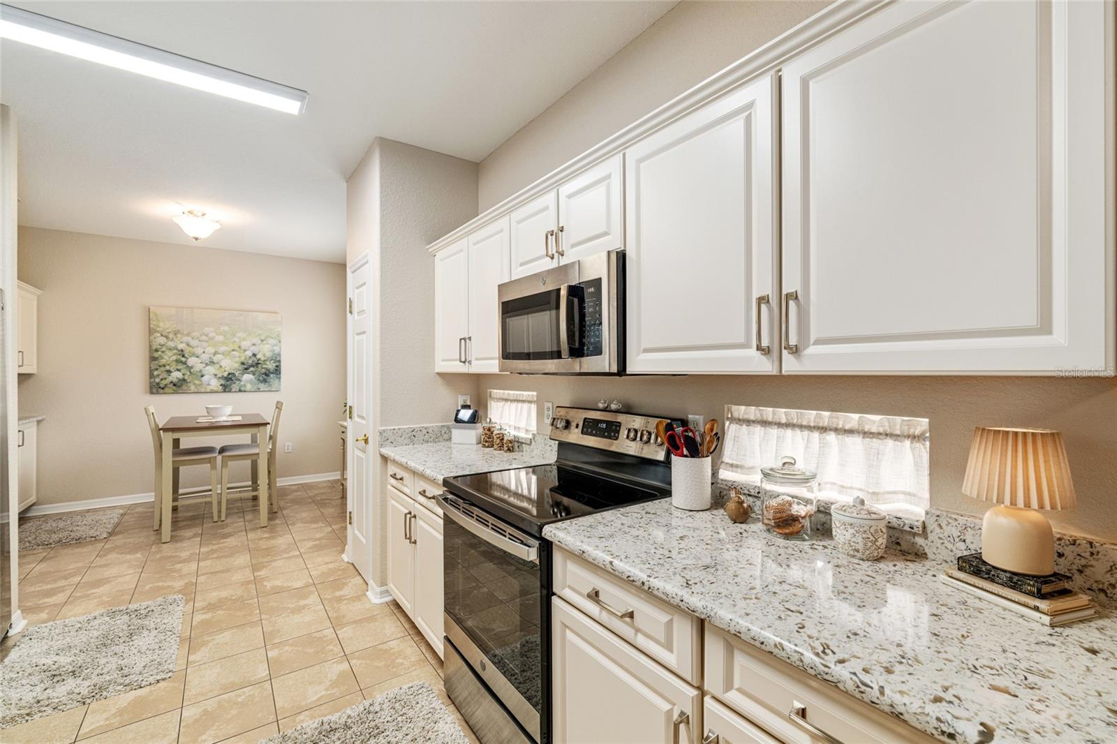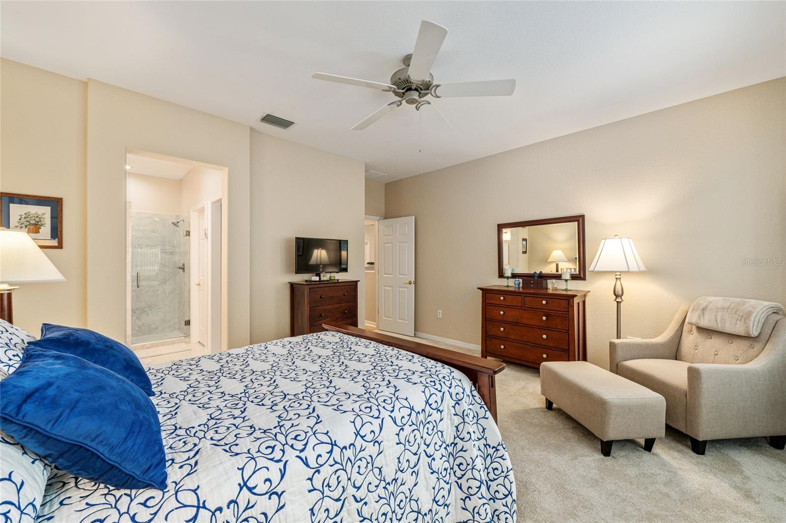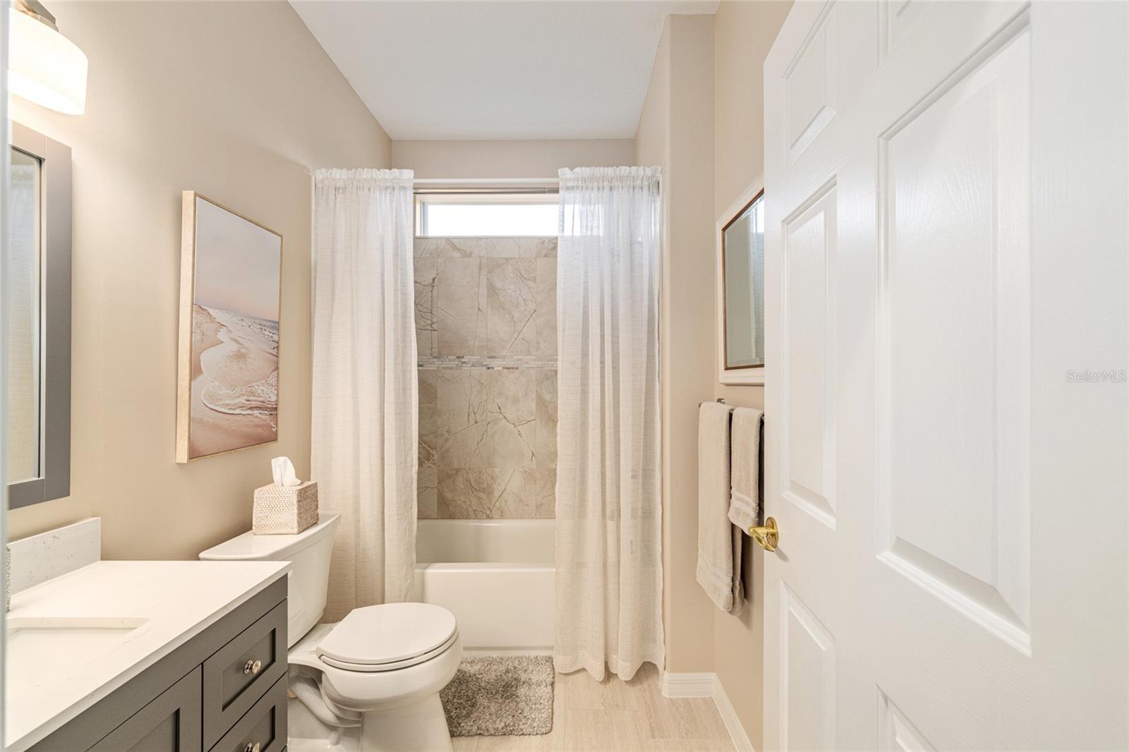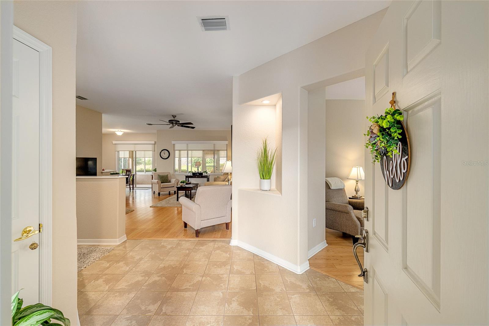 One of Del Webb’s most popular models is now available and truly a must-see. Situated on a very private lot with room for a pool, this beautifully upgraded home offers exceptional indoor and outdoor living. From the moment you review the description, photos, and video, you’ll want to schedule a personal tour. The upgraded kitchen features tall white refaced cabinets with custom hardware, granite countertops, stainless steel appliances, recessed lighting, and ceramic tile flooring. The spacious primary suite includes bay windows, a ceiling fan, carpeted flooring, and a completely renovated ensuite with a large walk-in shower, skylight, and tile flooring. The guest bedroom, located at the front of the home, offers carpeted flooring, wood valances, and a ceiling fan. The fully remodeled guest bath features tile flooring. A versatile study/den with engineered wood flooring is positioned between the bedrooms and provides ample space for an office, seating area, and even a hide-a-bed. The living and dining areas feature engineered wood flooring, mini blinds, and white wood valances. The enclosed lanai is under heat and air with acrylic windows and sunshades, overlooking a private fenced area just inside the boundary lines. An adjacent outdoor patio provides the perfect spot for grilling and enjoying the Florida sunshine. Additional highlights include beautifully manicured landscaping, a designer concrete driveway and walkway, fresh interior paint, and recently painted exterior. Major updates provide peace of mind with a new roof in 2021 and a new HVAC system and electric hot water heater installed in 2025 (converted from gas). Some furniture is available. Termite Bond with Massey is assumable. This move-in-ready home has been thoughtfully maintained with no major expenses anticipated. Call today to schedule your private showing.