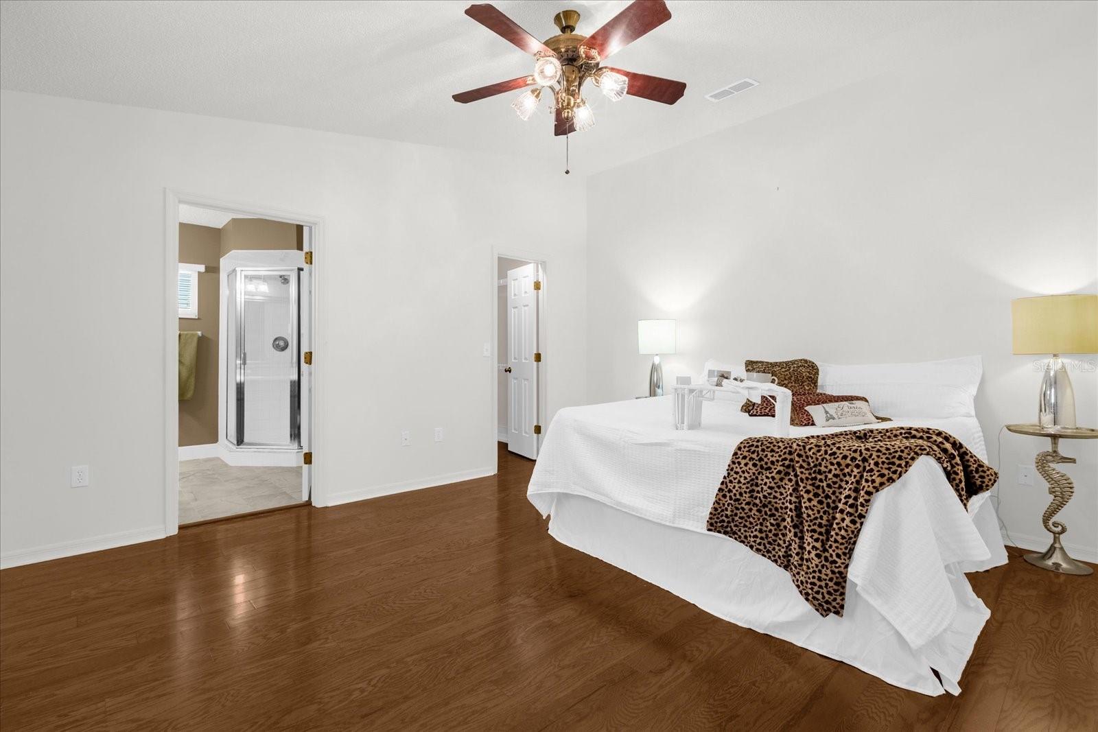 Discover the charm of Spruce Creek South, an intimate, quiet, and affordable gated 55+ community just a golf-cart ride from The Villages—reachable in minutes yet offering a calmer, more close-knit atmosphere with NO TRAFIC! This beautifully updated 3-bedroom, 2-bath home features VAULTED ceilings and CONTINUOUS HARDWOOD flooring throughout the main living areas and bedrooms. A spacious living room anchors the home, while the redesigned kitchen offers NEWER and abundant cabinetry, SILESTONE counters, an undermount double sink, and updated appliances including a 2025 dishwasher, 2024 microwave, and 2019 range. The prime suite includes hardwood floors, an ensuite bath, and a large walk-in closet with new shelving. The guest bedroom is generously sized, and the third bedroom provides ideal flexibility for hobbies, office, or extra guests. Enjoy exceptional indoor-outdoor living with a glassed-and-screened, air-conditioned Florida room that flows to a second covered lanai enclosed with screening and plexiglass for year-round comfort. Low maintenance landscaping, perfect for SNOWBIRDS. Ample two car garage hosts washer and dryer and is air conditioned and has two fan lights for year round comfort. Major updates include a Dec 2023 ROOF and 2021 HVAC. Spruce Creek South offers outstanding amenities: a 25,000 SF clubhouse with fitness center, hobby and game rooms, library, and ballroom; an 18-hole golf course with pro shop and The Links restaurant; pickleball, bocce, volleyball, basketball, tennis, a heated pool/spa, walking and biking trails, lakes, parks, and 30+ clubs plus popular TRAVELING softball and horseshoe teams. Golf-cart access leads directly to shopping, dining, medical offices, Walmart, Aldi, Lowe’s, and THE VILLAGES, where you can enjoy free concerts 365 days a year! Close to multiple golf courses, Silver Springs State Park, THE WORLD EQUESTRIAN CENTER, Lake Weir recreation, and major healthcare facilities and OCALA. With its unbeatable location, peaceful atmosphere, and active lifestyle, this home delivers exceptional value just moments from The Villages. Spruce Creek South is a 55+ community. Thinking of buying, please do your due diligence and check all measurements and facts.