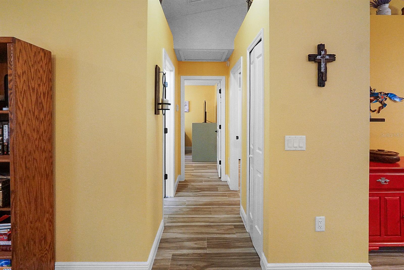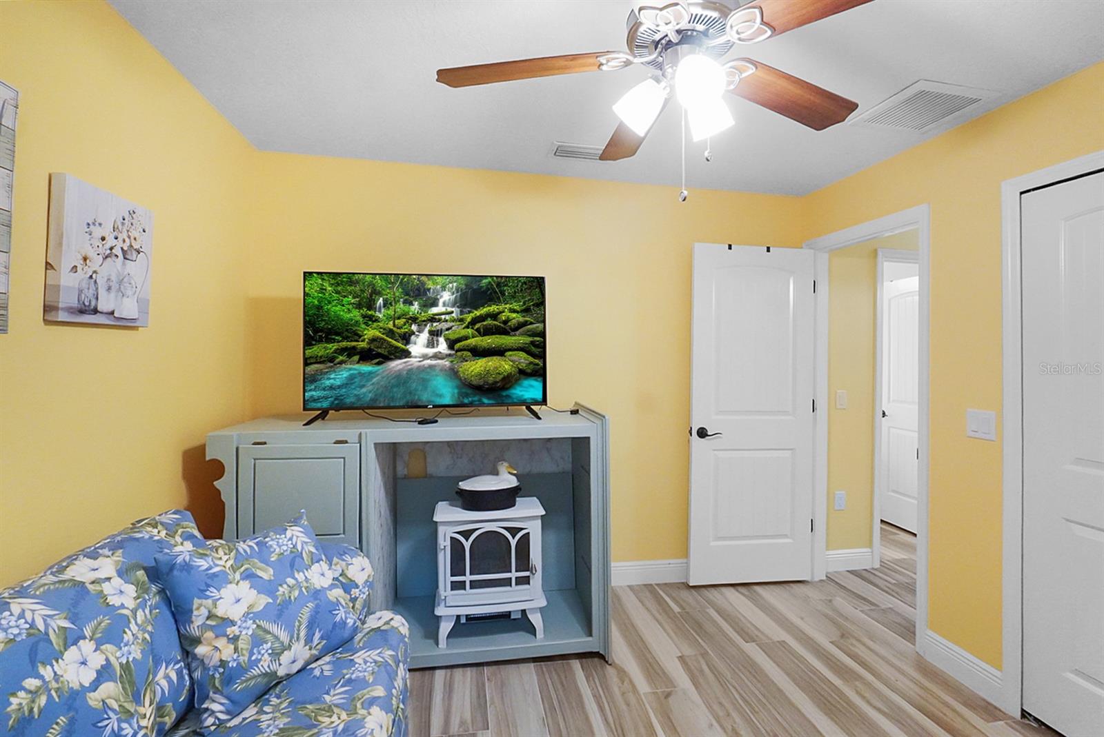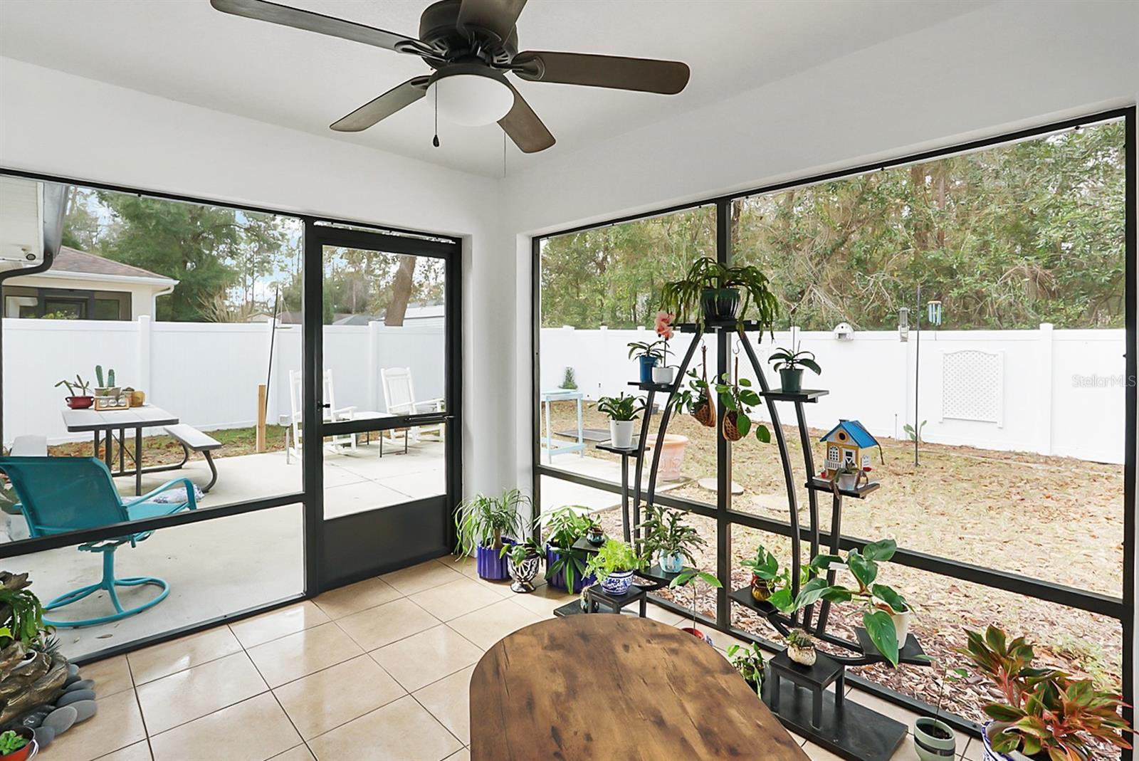 Charming 3-bedroom, 2-bath home with 1,214 sq ft, built in 2018, featuring durable block and stucco construction and elegant ceramic/porcelain tile flooring throughout. Enjoy the freedom of NO HOA on this desirable corner lot with a fully fenced yard. This move-in ready home offers a 20x16 prefabricated storage shed with electricity, installed 3/13/2024, and a brand-new rain guard gutter system. Shutters adorn every window, and matching tile in the bedrooms creates a seamless, cohesive look. Well-maintained and thoughtfully designed, the functional layout is perfect for first-time buyers, downsizers, or investors. Ideally located near shopping, dining, schools, and major roadways, this home combines comfort, convenience, and style. Schedule your private showing today! Furniture available separately. 3rd Bedroom does not contain a closet!