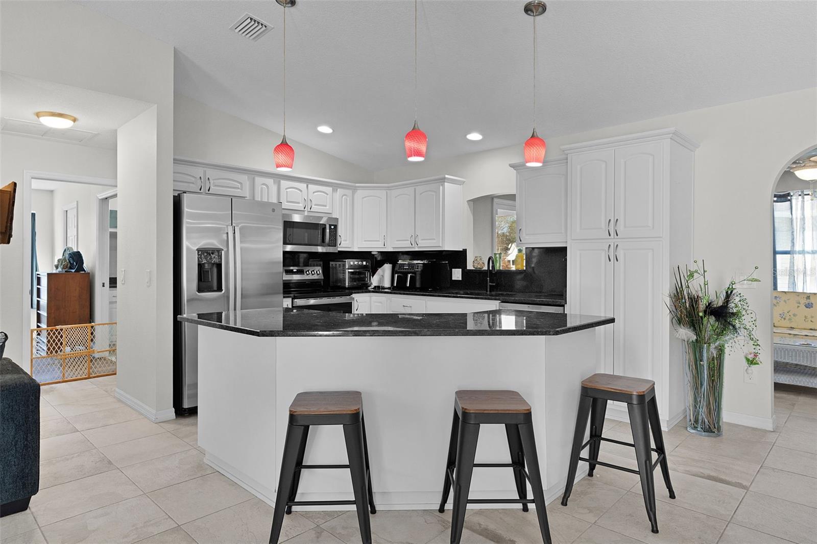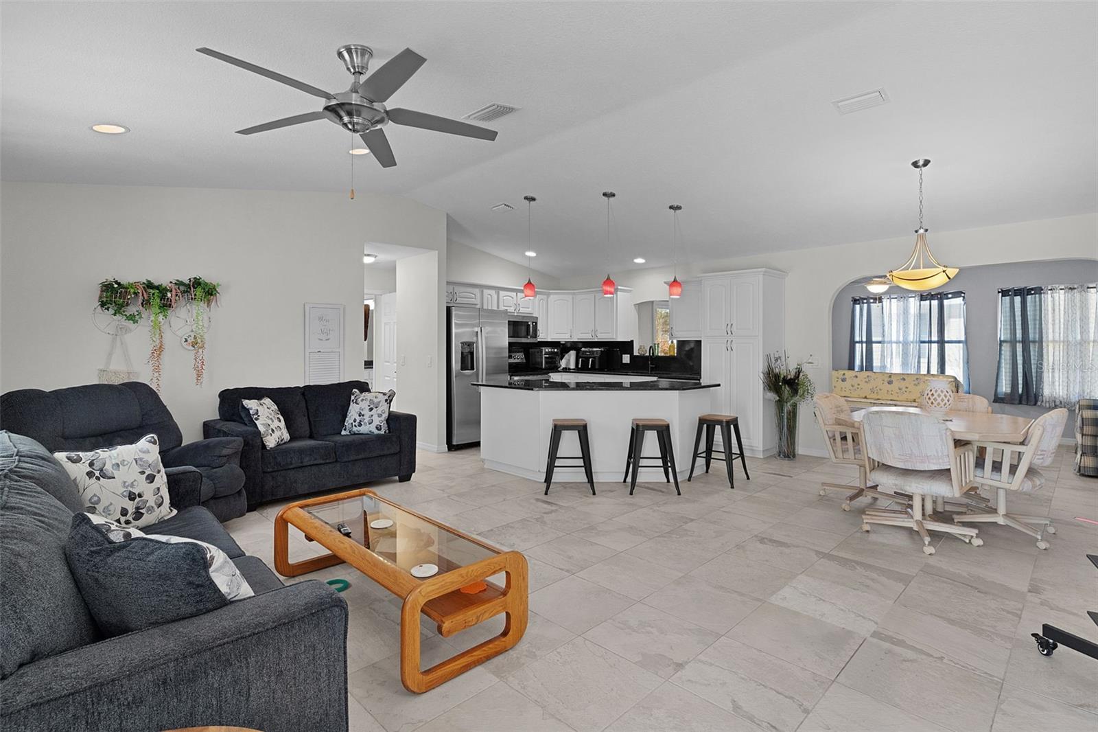 NEW ROOF in 2024 makes this 3-bedroom, 2-bath home in Spruce Creek South an easy yes. Inside, you’ll love the open floor plan with cathedral ceilings that keep everything bright and airy. The kitchen and bathrooms feature granite countertops, and the bedrooms have wood laminate flooring for a clean, modern feel. One of the best parts? Two great outdoor spaces. Enjoy your morning coffee in the Florida room or unwind in the evening on the screened-in lanai—perfect for true Florida living. Spruce Creek South delivers the lifestyle with multiple pools, golf, pickleball, tennis, a fitness center, and nonstop clubs and activities. And you’re just minutes from The Villages and Ocala, giving you easy access to shopping, dining, and entertainment—without the congestion. Come see it for yourself—you may not want to leave!