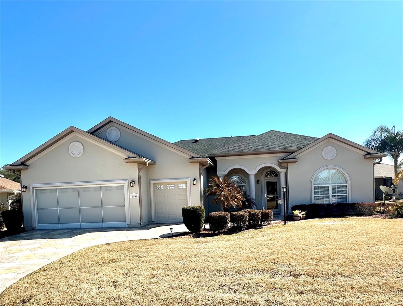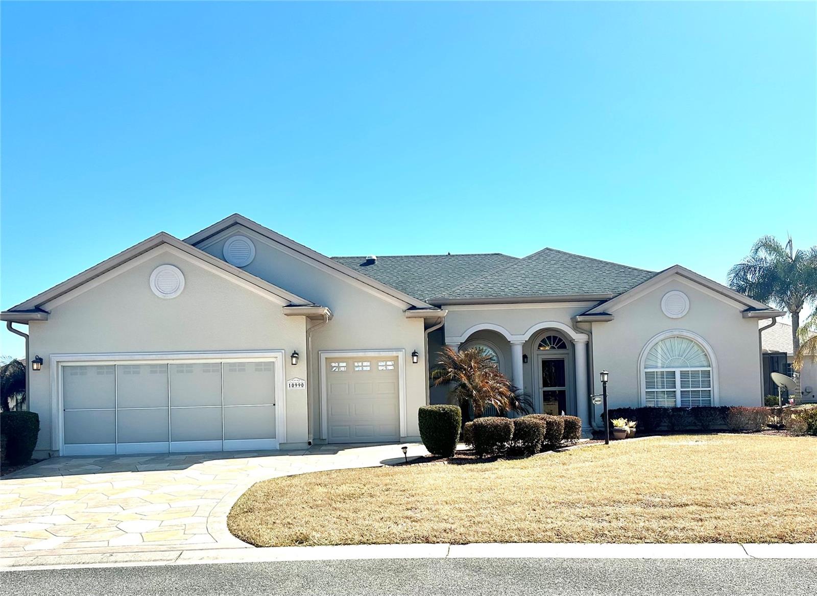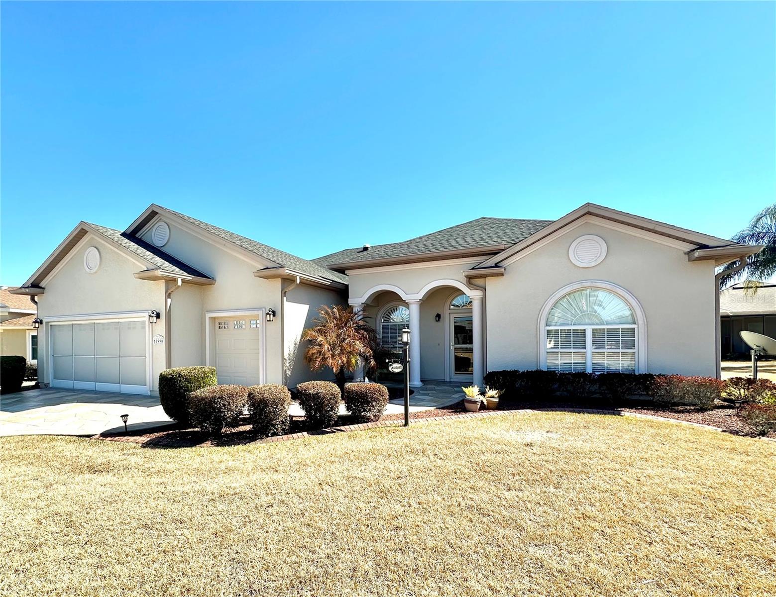 This stunning CEDAR model home offers 3 Bedrooms, 3 FULL Bathrooms and a spacious den located in the exclusive North Valley of STONECREST, a 55+ Gated Golf Community. From the moment you step inside you will fall in love with this open floor plan! This highly desired model boasting its 3 bedrooms, 3 Bathrooms, 2 living areas, beautiful open kitchen with bar equipped with stainless appliances and solid wood cabinetry is sure to impress. The Primary Suite has a oversized walk-in closet and lovely en-suite bath featuring a large soaking tub, oversized separate shower, double sinks, linen closet and private water closet. Bedrooms 2 and 3 are spacious with 2 additional bathrooms one of which leads to the outside enclosed lanai and extended bird cage making this the perfect home for entertaining. The oversized lot has plenty of room for a pool! You will appreciate the curb appeal with custom painted drive, nice landscaping, 2 car garage an additional 3rd GOLF CART GARAGE! New Roof in 2021, newer appliances and lovely neutral paint throughout. STONECREST is a very active 55+ golf cart community with access to all your favorite shopping accessible by golf cart and just minutes from The Villages! Enjoy this lovely community with low association fees has NO BONDS or additional unexpected annual maintenance fees. STONECREST boasts 4 swimming pools (one indoors) hot tub, pickleball and tennis courts, newly renovated fitness center, softball field, dog parks, walking trails, community center, BROAD STRIPES GOLF & SOCIAL CLUB and over 90 groups offering something for everyone. Enjoy the retirement you have dreamed of in beautiful STONECREST!
