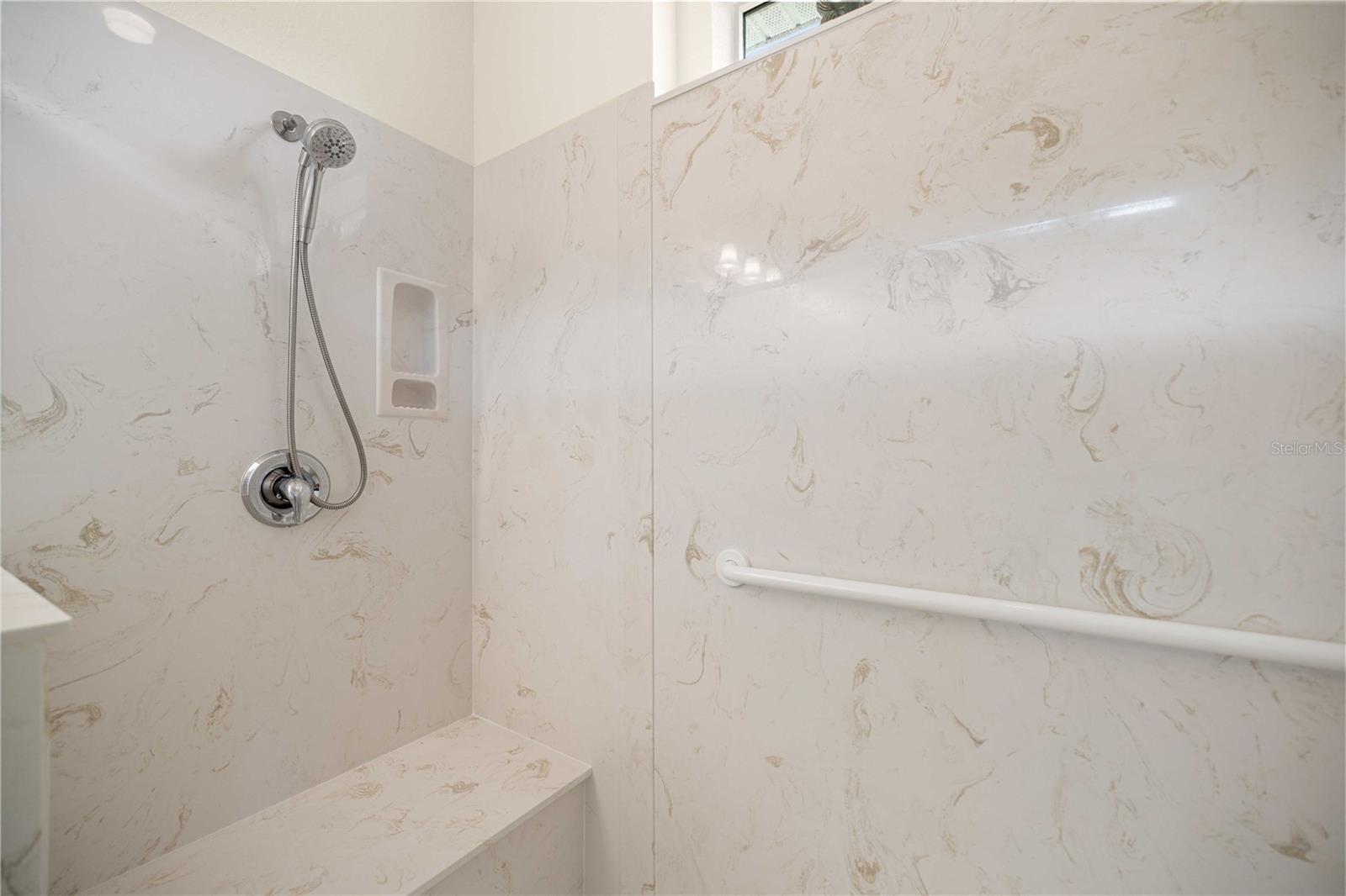 This charming HANOVER model offers three bedrooms and two bathrooms, Roof 2021, AC 2021, large kitchen equipped with beautiful CORIAN countertops, with added extra storage, perfect for the avid chef. Plantation shutters adorn the windows, adding a touch of elegance throughout the home. As you enter through the impressive double front doors with storm doors, you are greeted by a large foyer leading to the living area with engineered hardwood flooring. High ceilings create a spacious and airy ambiance. The master suite is a true retreat, featuring a double vanity and an expansive walk-in shower with two shower-heads and two seats, providing a spa-like experience. The guest bathroom is designed with convenience and comfort in mind, offering a shower-tub combo with a window above to let in natural light. Additional features include an inside laundry room for your convenience, attic stairs for extra storage space, and an enclosed lanai with pull-down sliders and tinted windows, perfect for enjoying Florida’s beautiful weather year-round. Step outside to the brick slab patio, ideal for grilling and entertaining in privacy. For your peace of mind, the home is equipped with a water softener system. Nestled in the sought-after Spruce Creek South community, residents enjoy access to a championship golf course, on-site dining, and a vibrant clubhouse filled with social events and activities. Whether you’re hitting the links, playing pickleball, or unwinding by the pool, this community offers the perfect blend of recreation and relaxation. Don't miss this opportunity to own a piece of paradise.