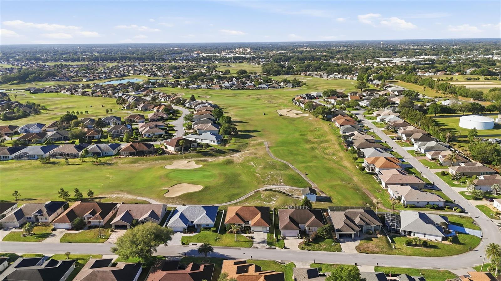 3 bedroom, 2 bathroom block/stucco home located on the 15th green in the 55+ gated community of Stonecrest! Roof replaced in 2019. Step into the home and find HIGH CEILINGS that show off the spacious living room space and dinette in front. Sliding doors off of the living room take you into the enclosed lanai with windows (east side are thermal pane) with views of the golf course and backyard. The kitchen features tile flooring, a closet pantry, storage closet, wood cabinets, white appliances and leads into the dining room with more beautiful back views and another door to the enclosed lanai. Primary bedroom features two walk-in closets, and an en suite bathroom with walk-in shower, separate sink vanities, tub, storage closet and toilet room. Both guest bedrooms have built-in closets and guest bathroom features tub/shower combo and a linen closet in guest hallway. Inside laundry leads out to the garage with sliding screen that features a utility sink, storage closet with shelving (under air) and a bolted down safe. Additional features and upgrades include new smoke detectors throughout, new garage door opener/springs/rollers, updated light fixtures, new storm door on lanai, exterior painted with cool to touch paint, in wall pest system, added insulation in attic and above the lanai. The 55+ gated community of Stonecrest is home to the 18-hole CHAMPIONSHIP GOLF COURSE of Broad Stripes Golf & Social Club and onsite restaurant and has NO CDD or BOND. Amenities include a clubhouse, fitness center, one indoor pool, three outdoor pools, spa, fishing at Crestview Lake, pickleball courts, tennis courts, bocce ball courts, shuffleboard courts, softball field, dog park, cornhole, and over 75 different clubs and activity groups and RV storage(additional low fee applies*). Stonecrest residents enjoy private golf cart access to grocery stores, restaurants, retail shops and is ONLY 2.5 MILES from The Villages and Spanish Springs Town Square! You will love relaxing, entertaining and enjoying this BEAUTIFUL home!